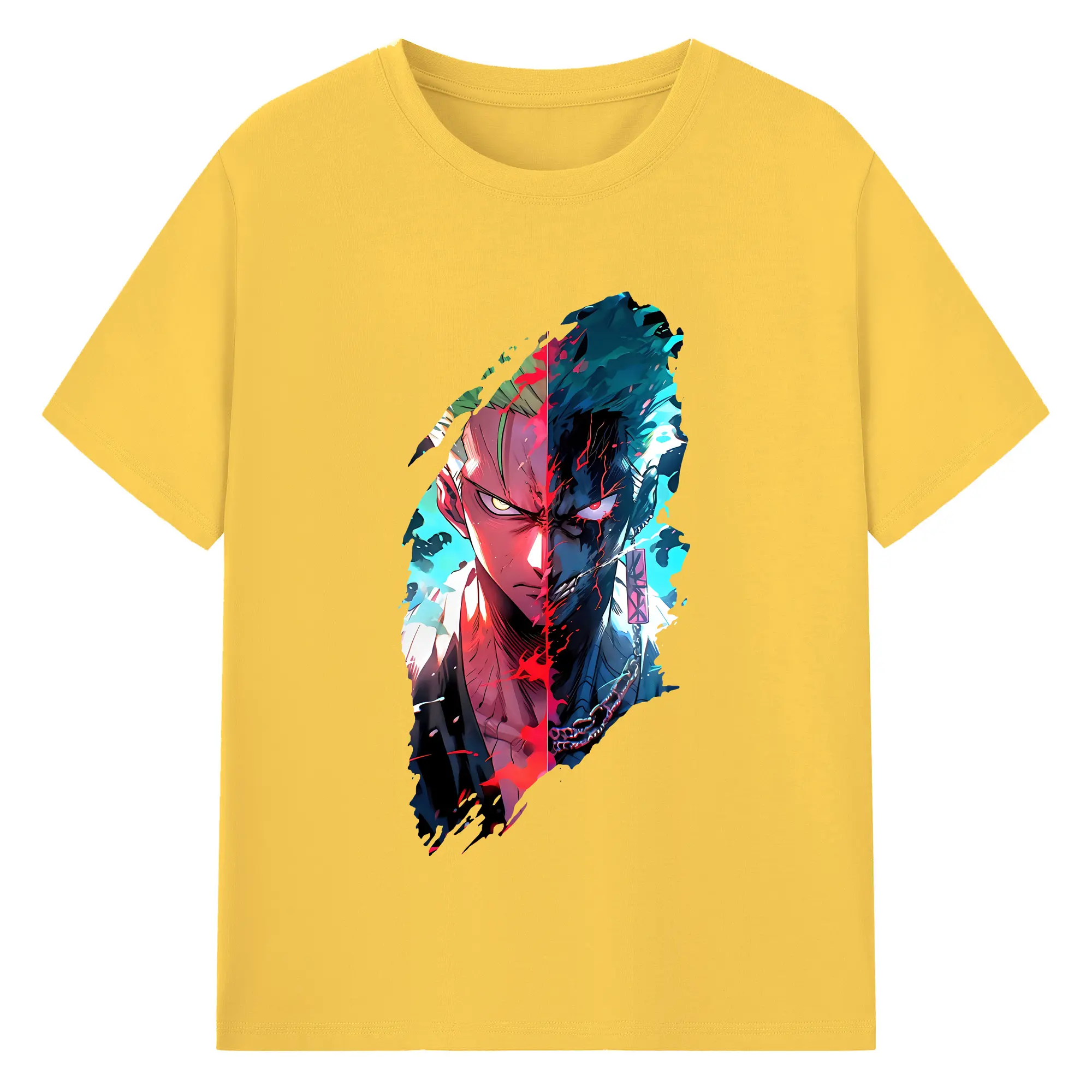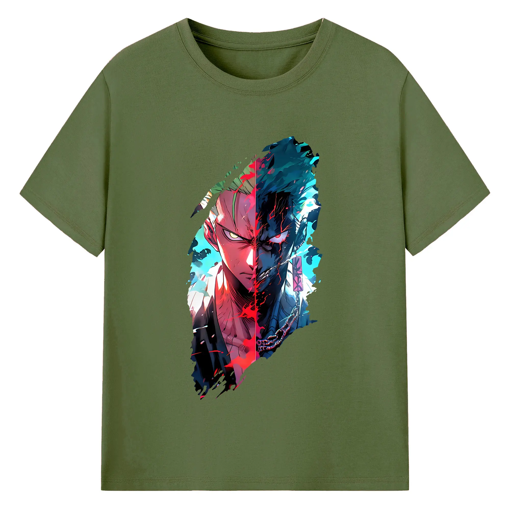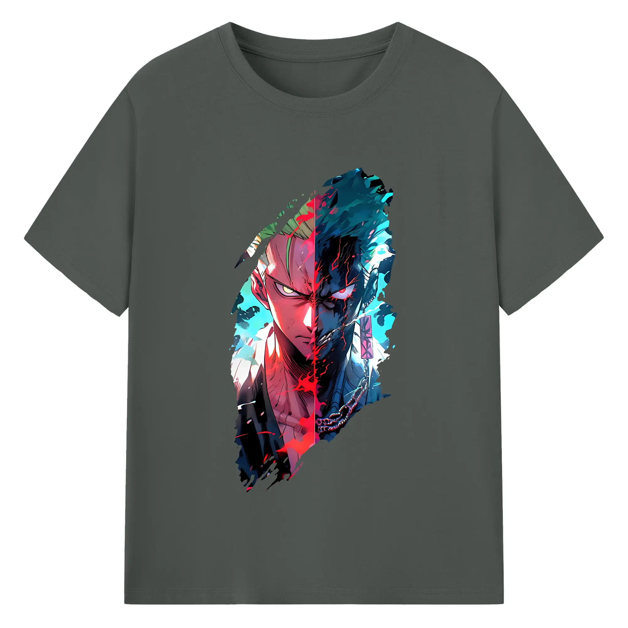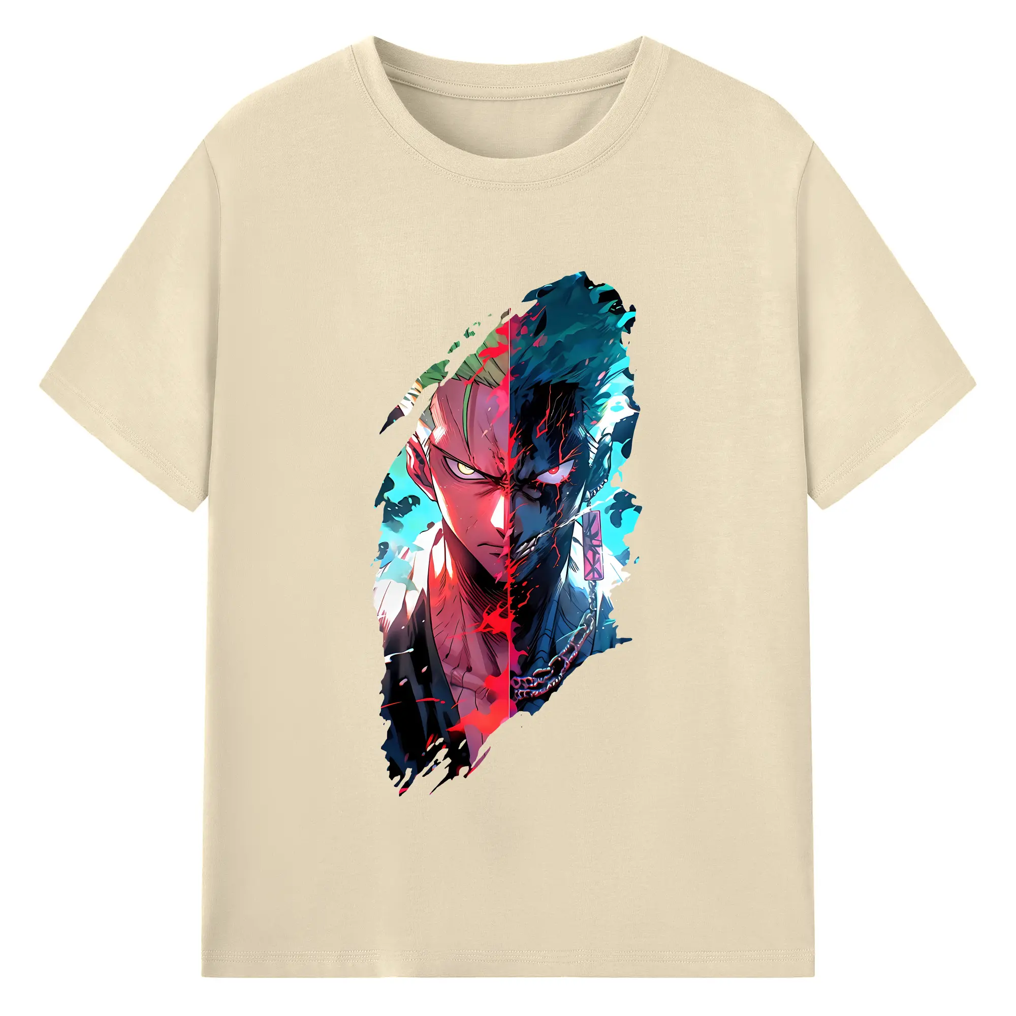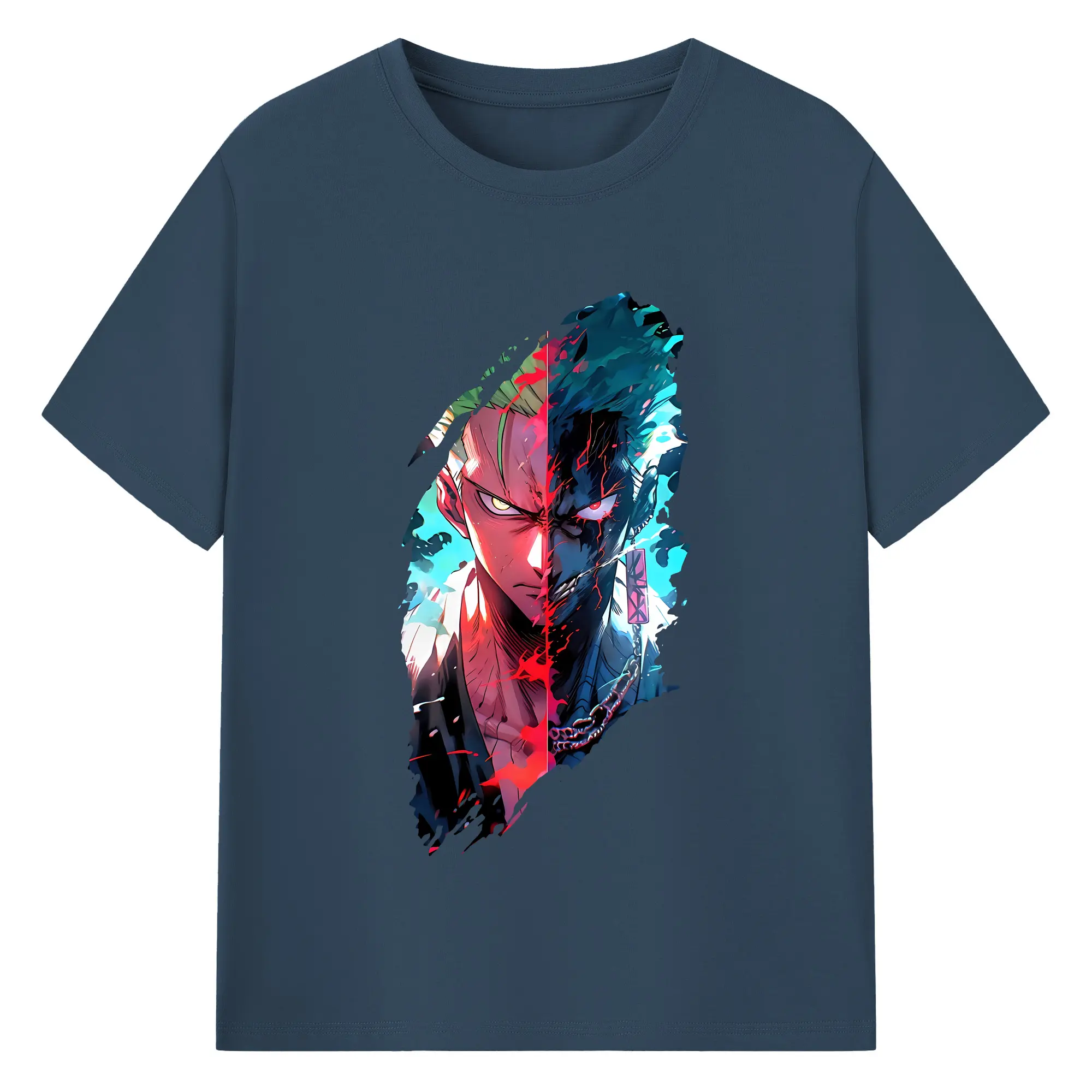 ワンピース グッズ ロロノア・ゾロ - 綿100% ヴィンテージ風 半袖Tシャツ ・ フロントプリント ・ 柔らか肌触り ・ 通気性 快適 ・ スポーツ カジュアル 外出用