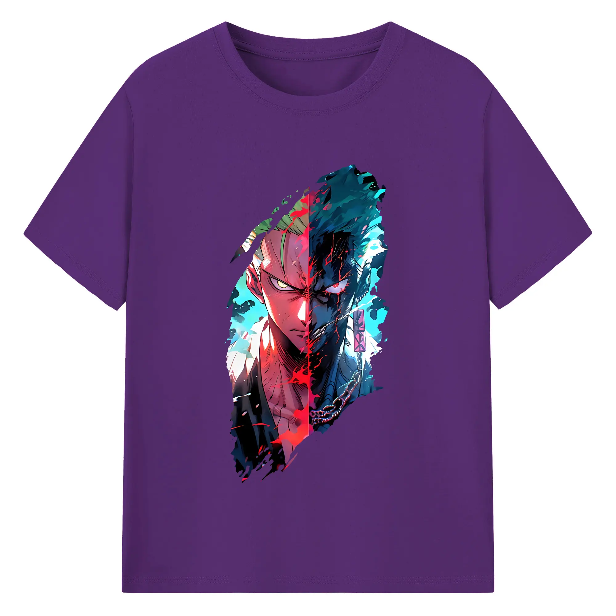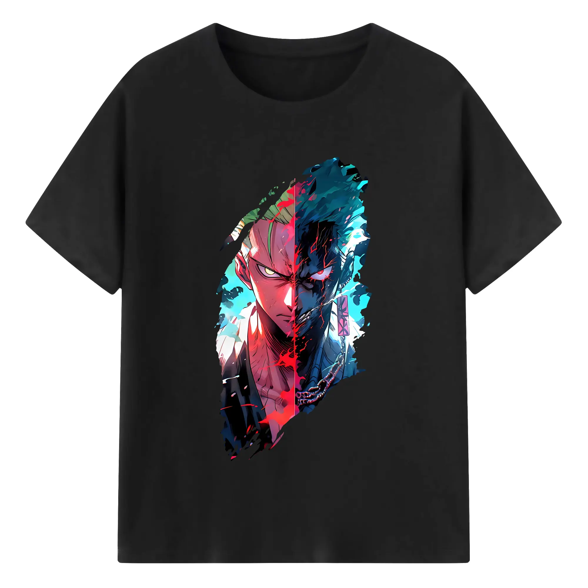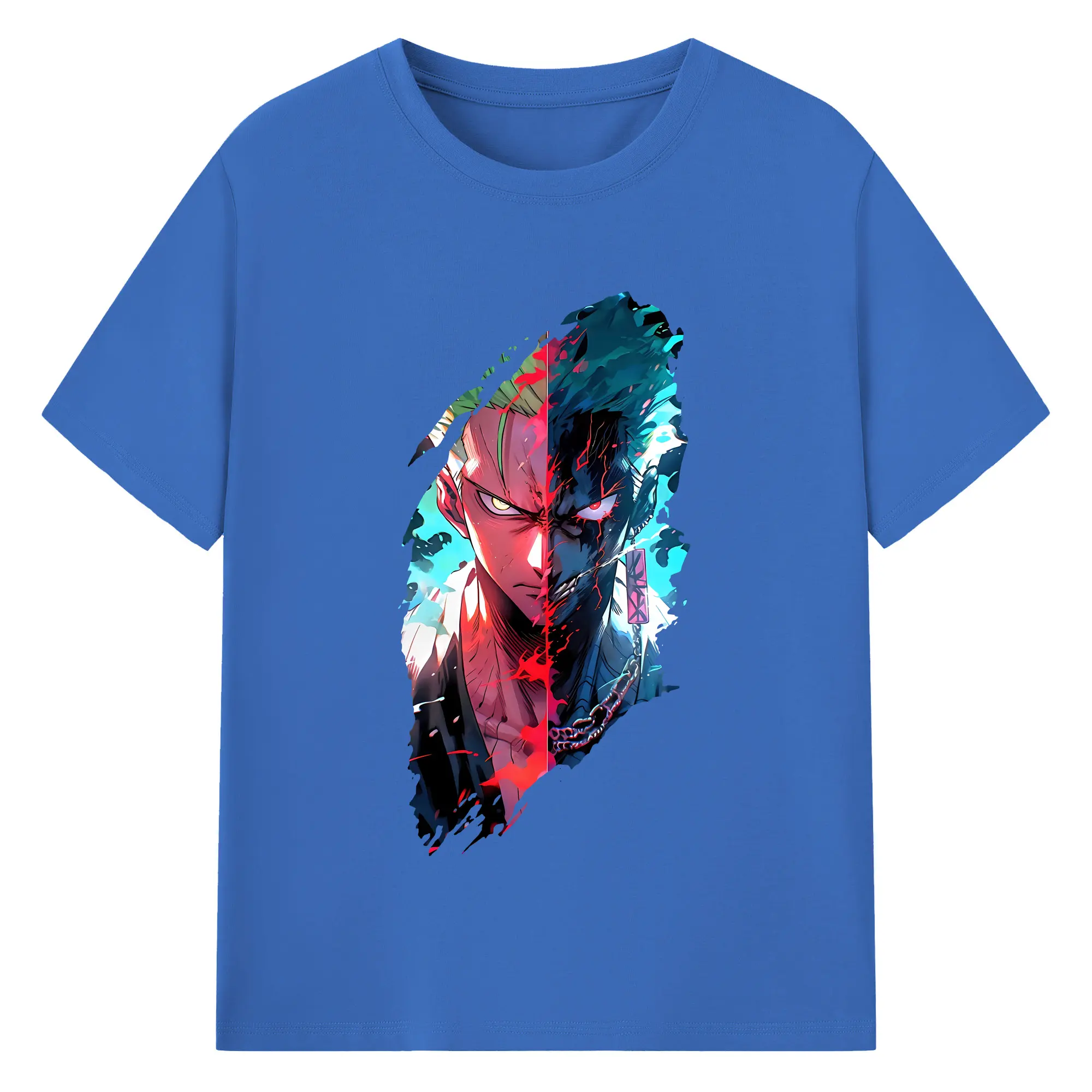 ワンピース グッズ ロロノア・ゾロ - 綿100% 半袖Tシャツ ・ バックプリント ・ 快適 通気性 ・ 日常使い 散歩 スポーツ用