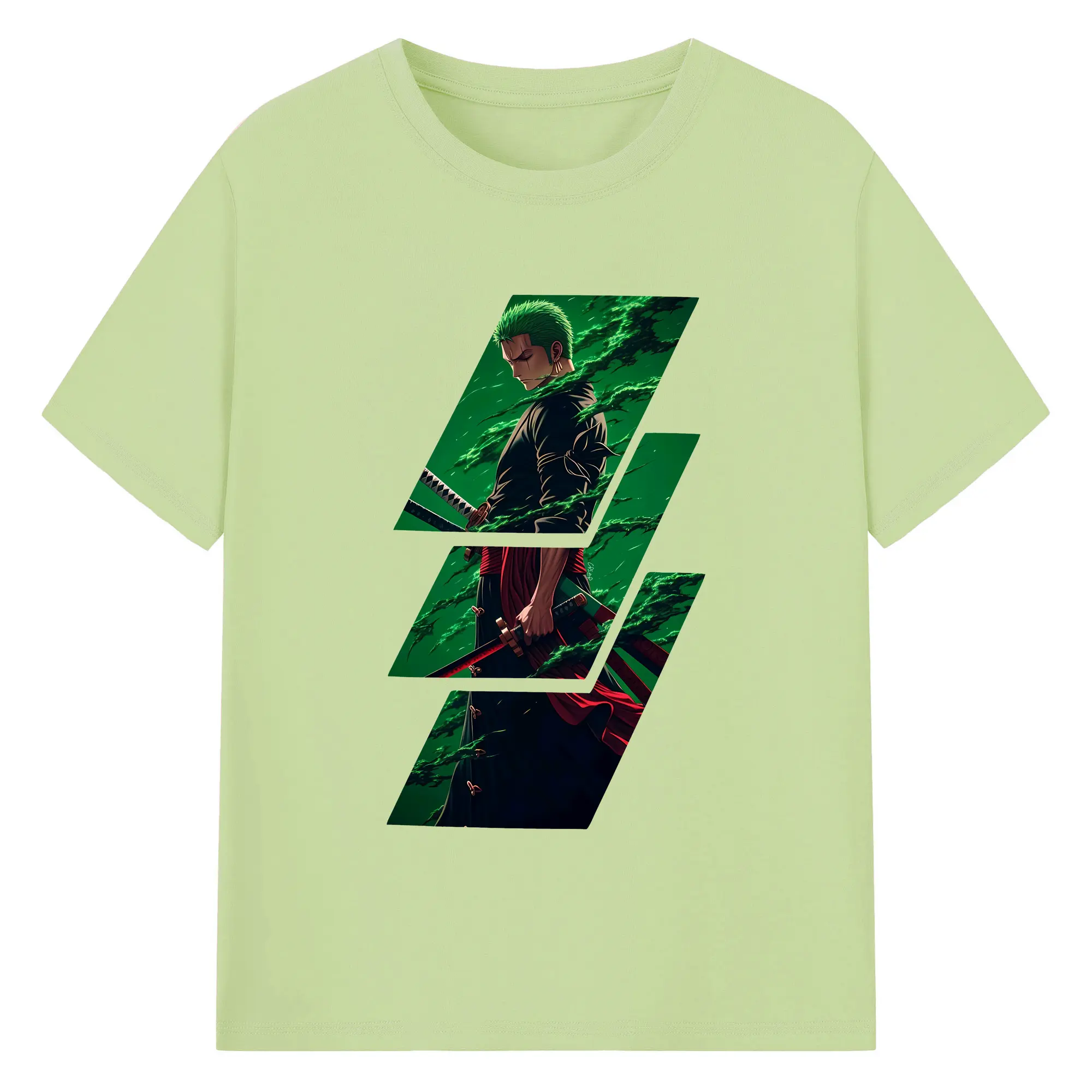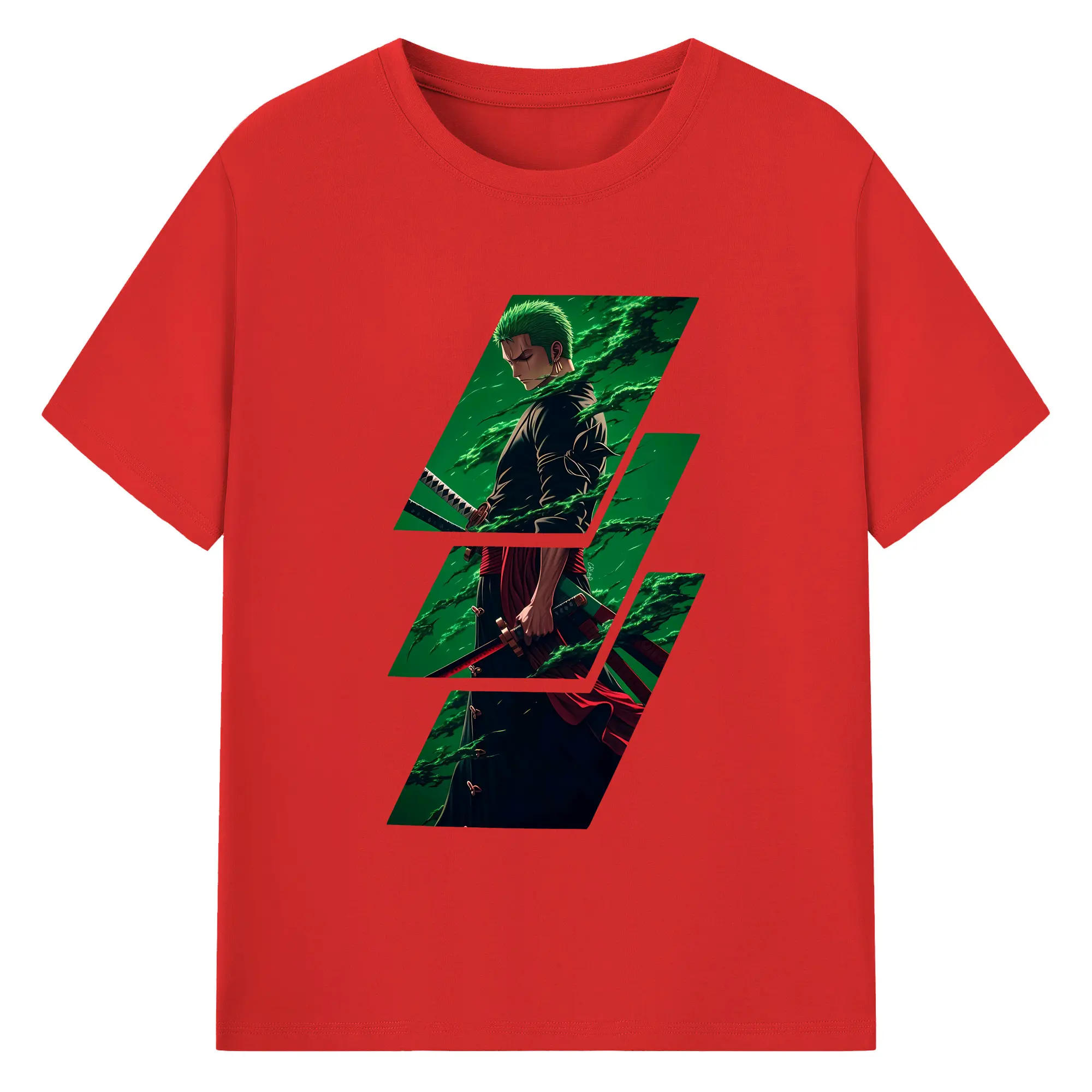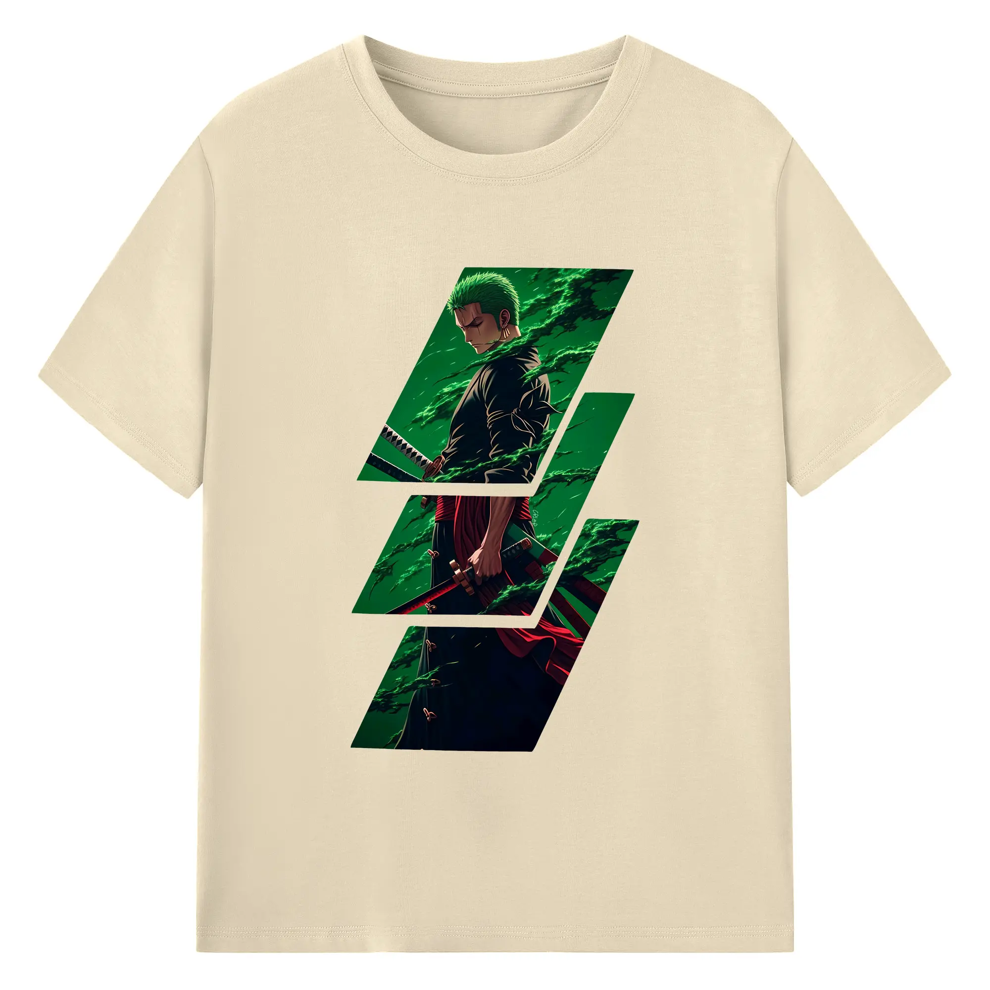 ワンピース グッズ ロロノア・ゾロ - 綿100% ヴィンテージ風 半袖Tシャツ ・ フロントプリント ・ 柔らか肌触り ・ 通気性 快適 ・ スポーツ カジュアル 外出用