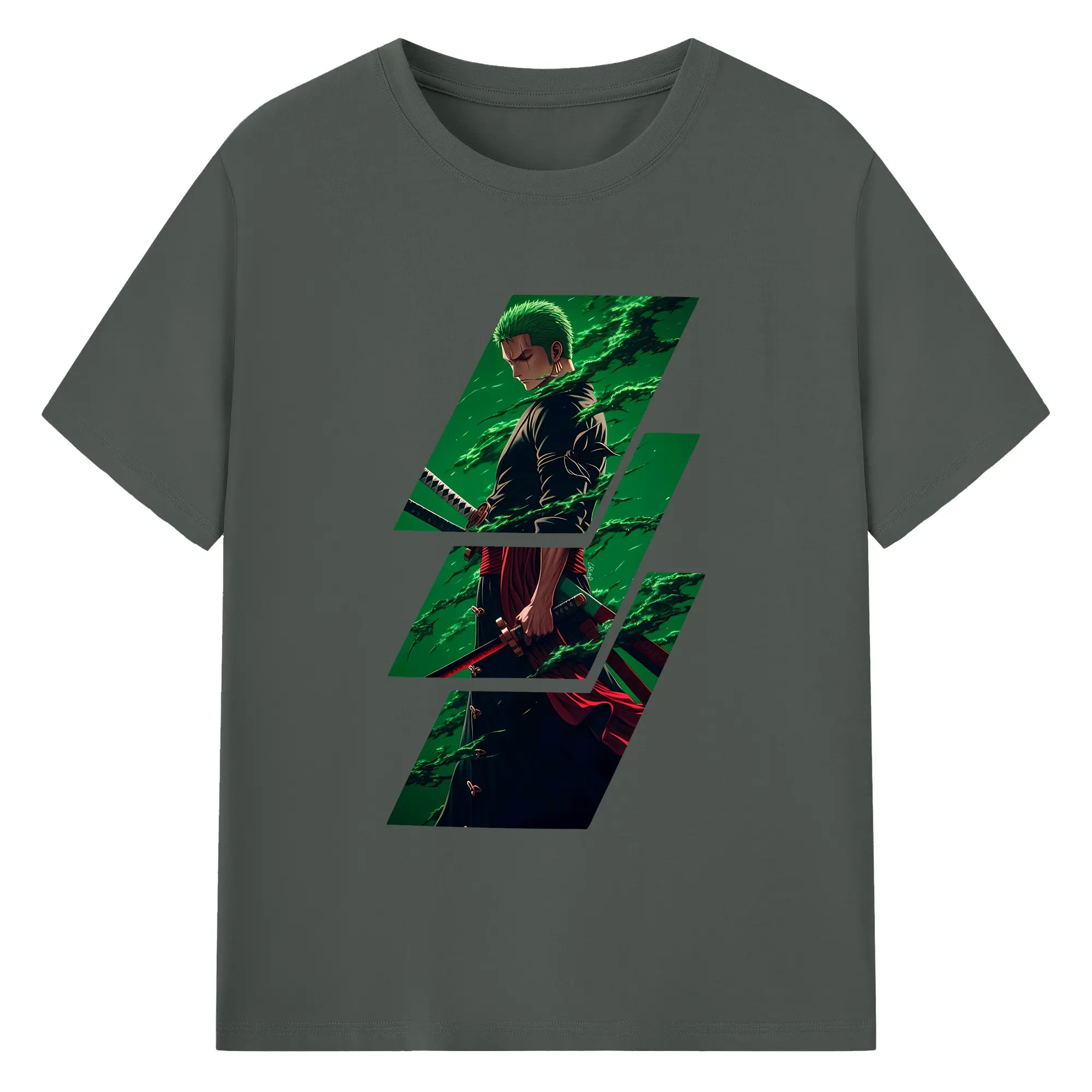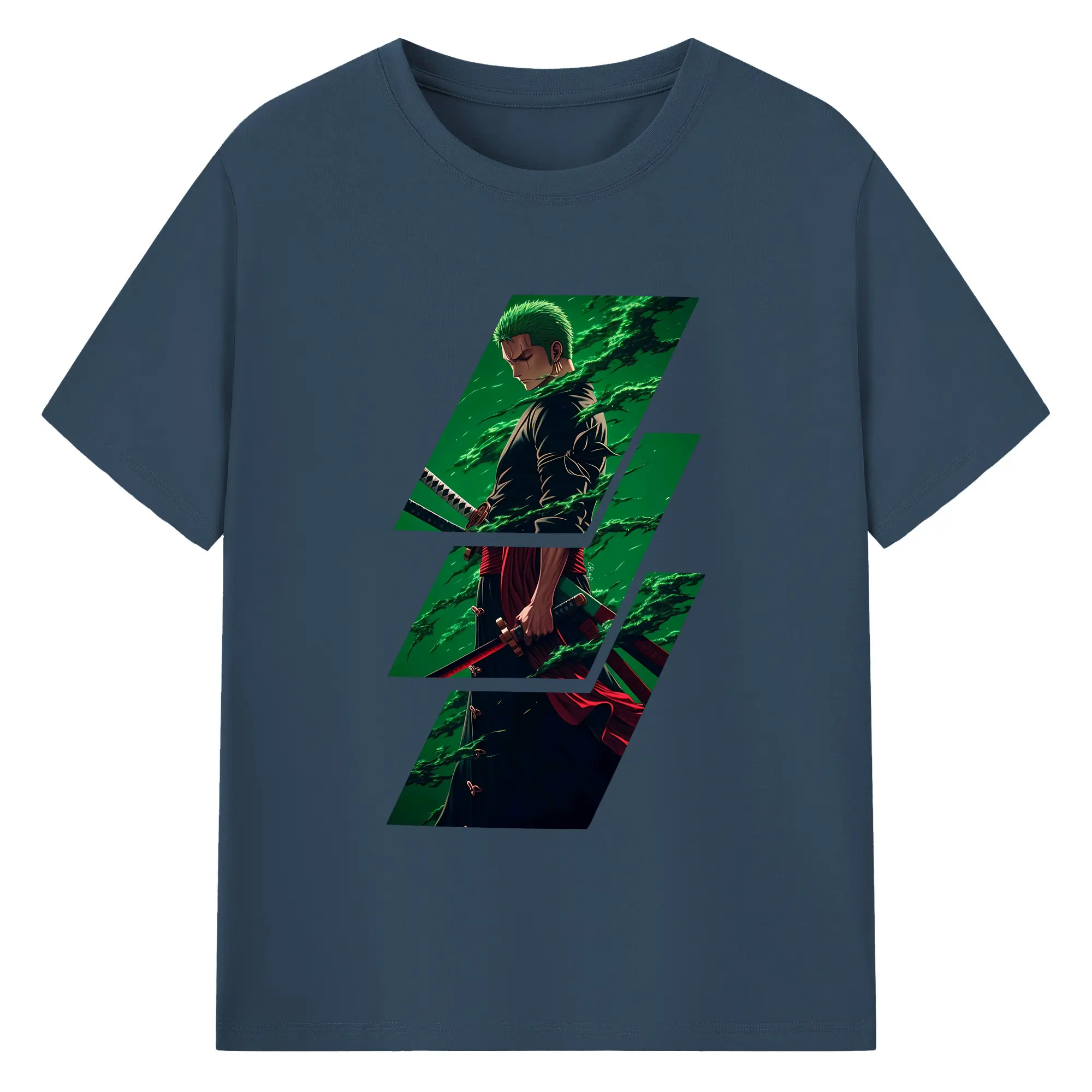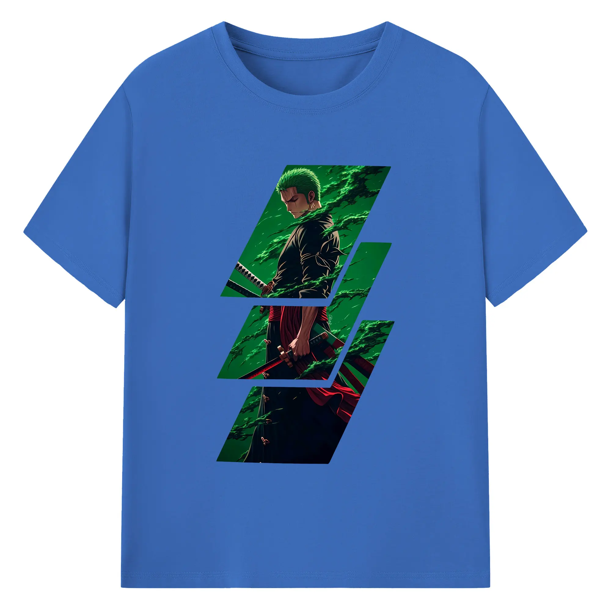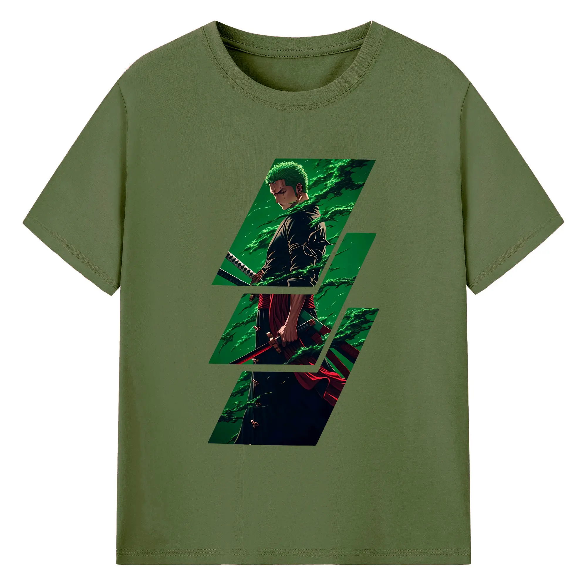 ワンピース グッズ ロロノア・ゾロ - 綿100% ヴィンテージ風 半袖Tシャツ ・ フロントプリント ・ 柔らか肌触り ・ 通気性 快適 ・ スポーツ カジュアル 外出用