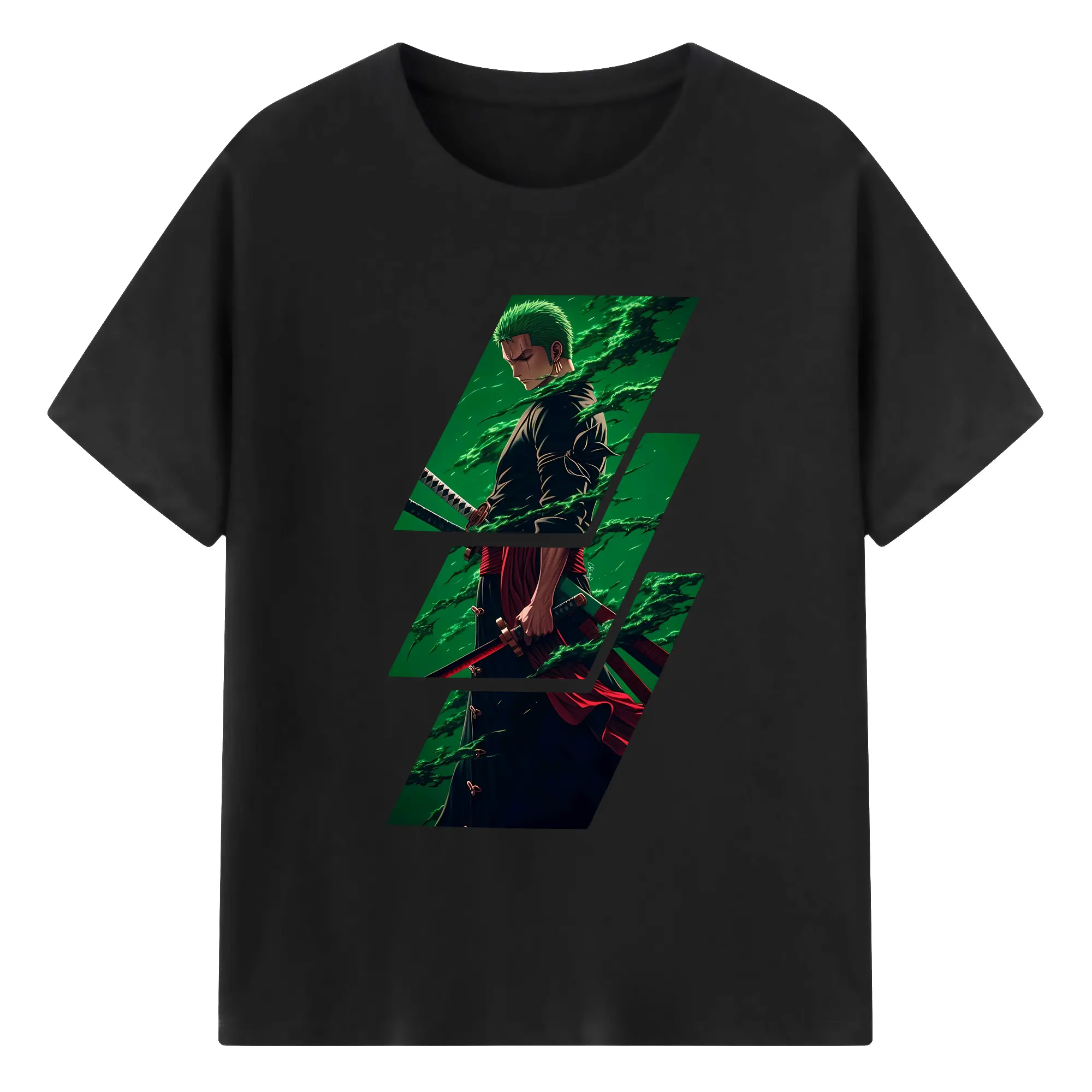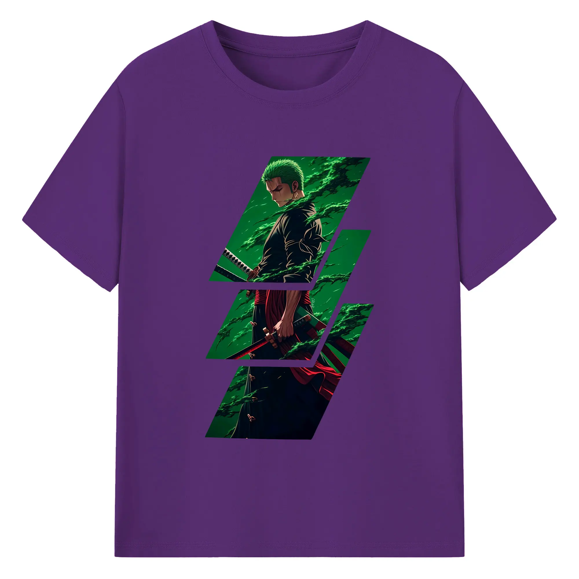 ワンピース グッズ ロロノア・ゾロ - 綿100% 半袖Tシャツ ・ バックプリント ・ 快適 通気性 ・ 日常使い 散歩 スポーツ用