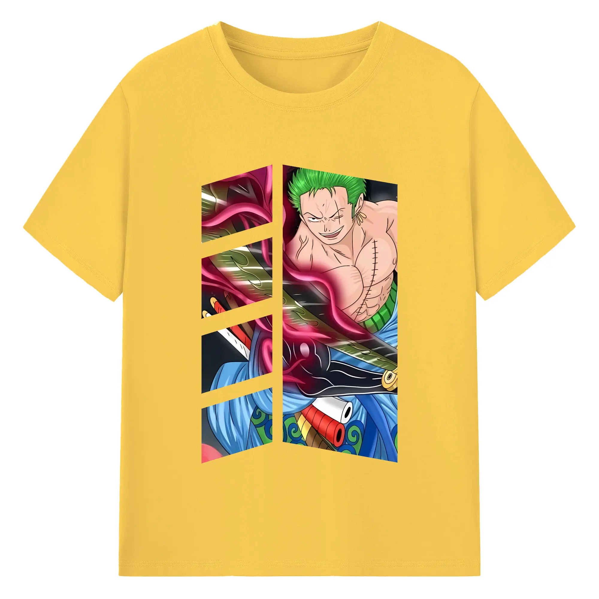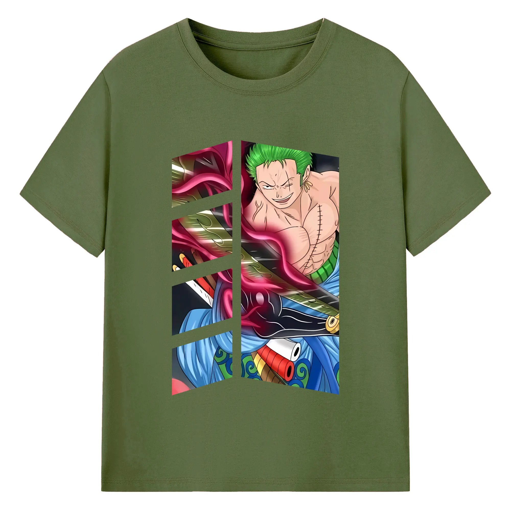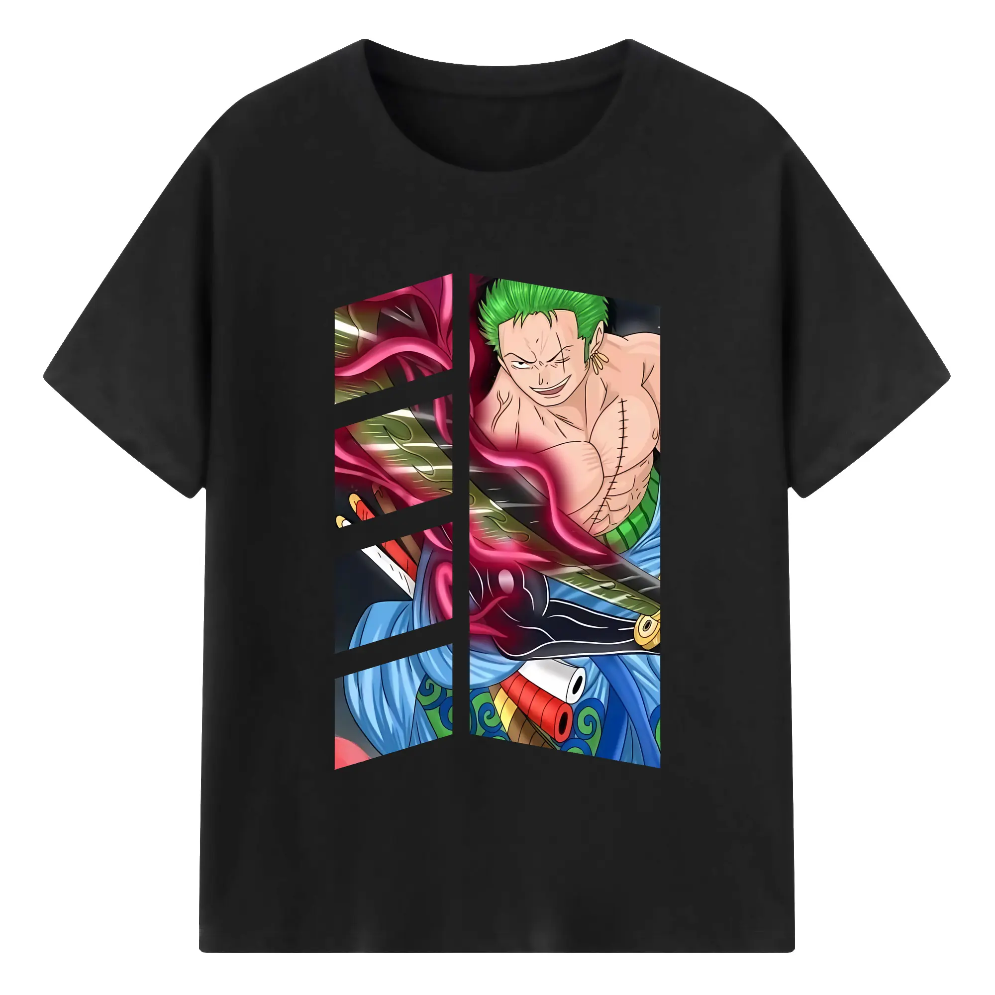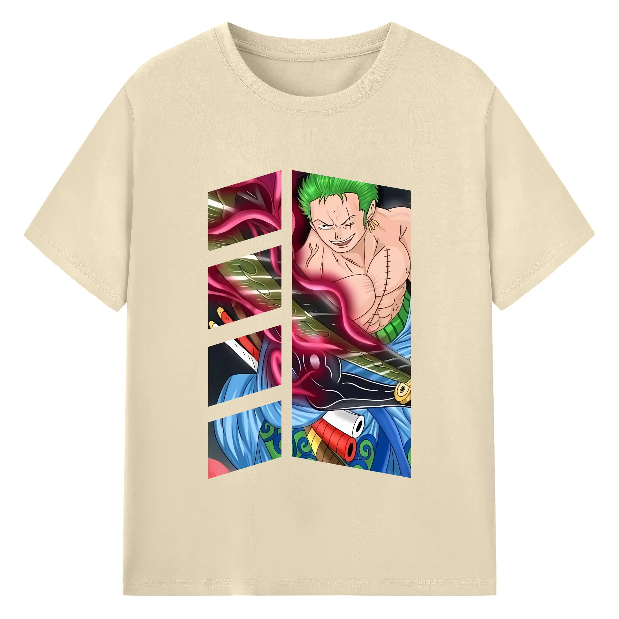 ワンピース グッズ ロロノア・ゾロ - 綿100% ヴィンテージ風 半袖Tシャツ ・ フロントプリント ・ 柔らか肌触り ・ 通気性 快適 ・ スポーツ カジュアル 外出用