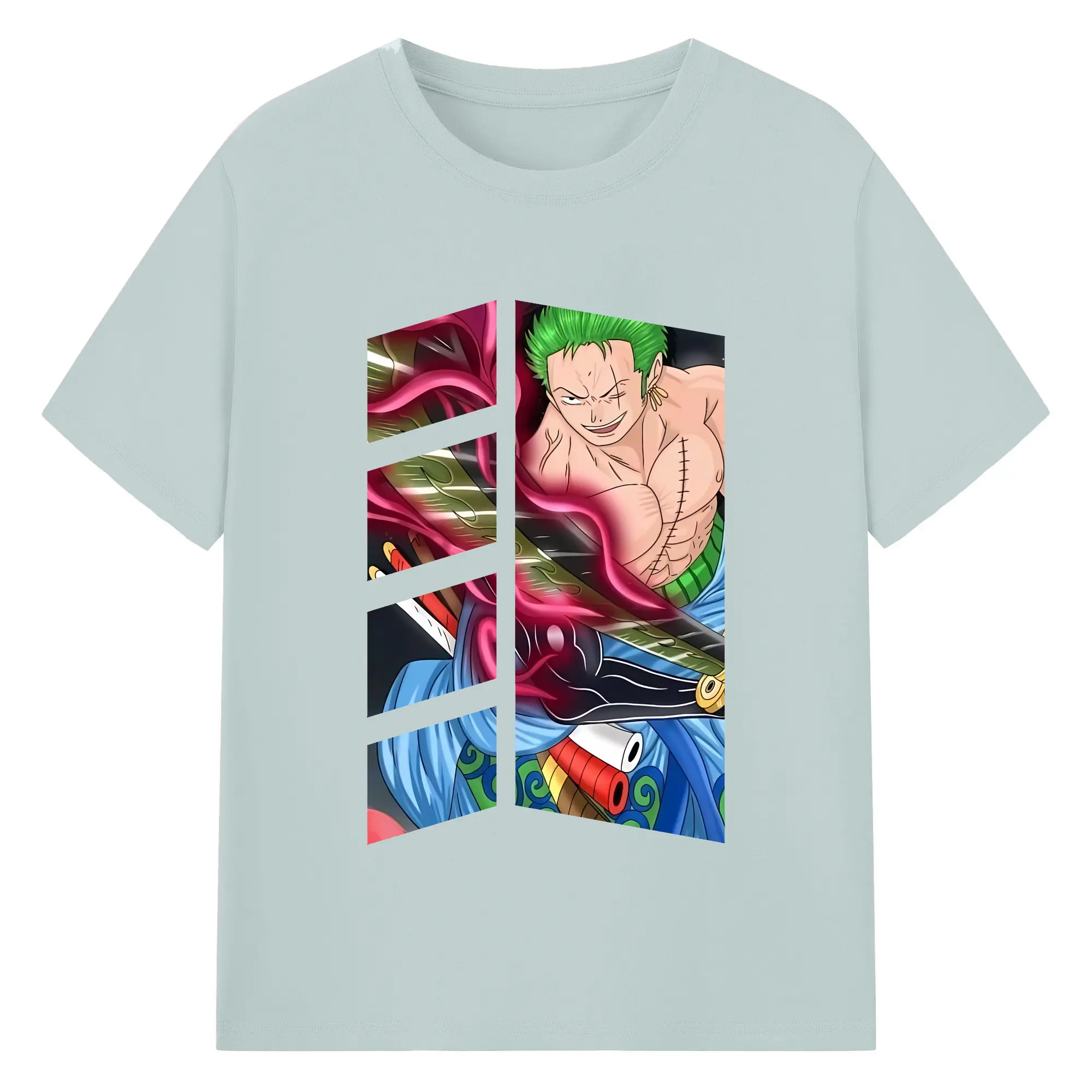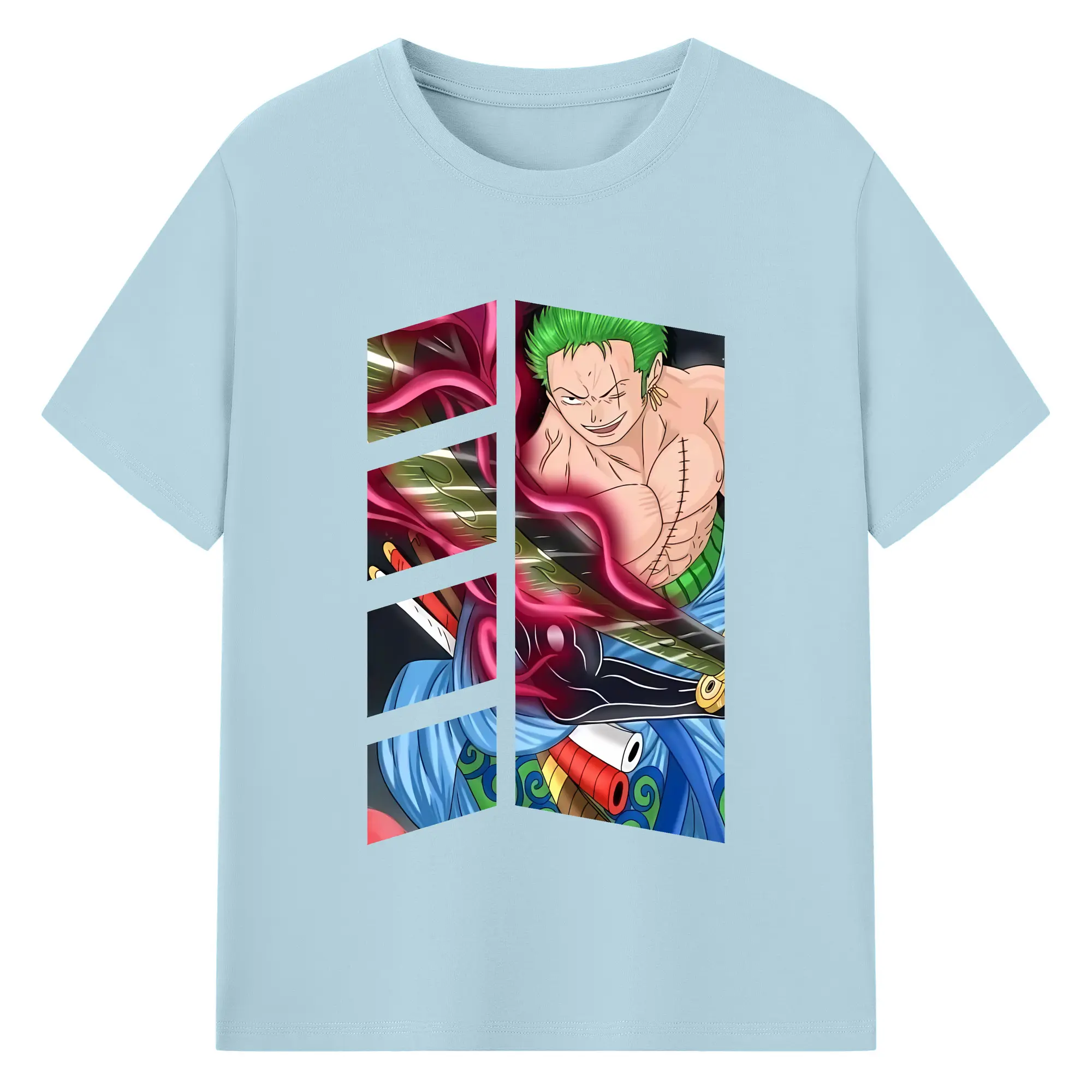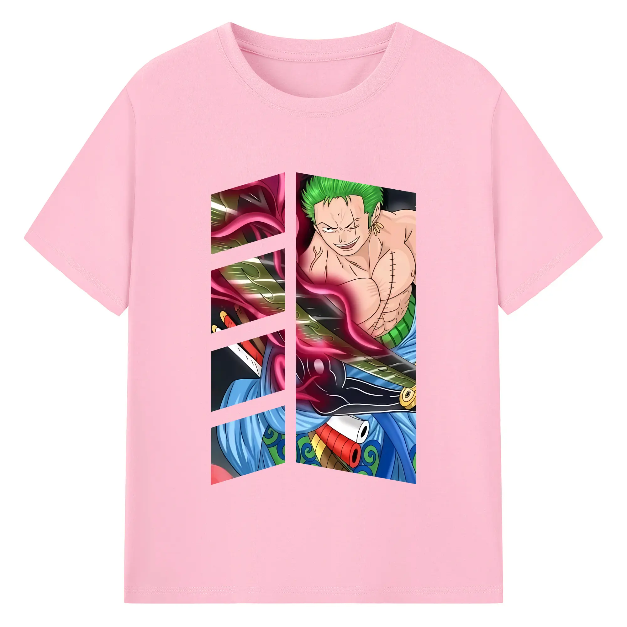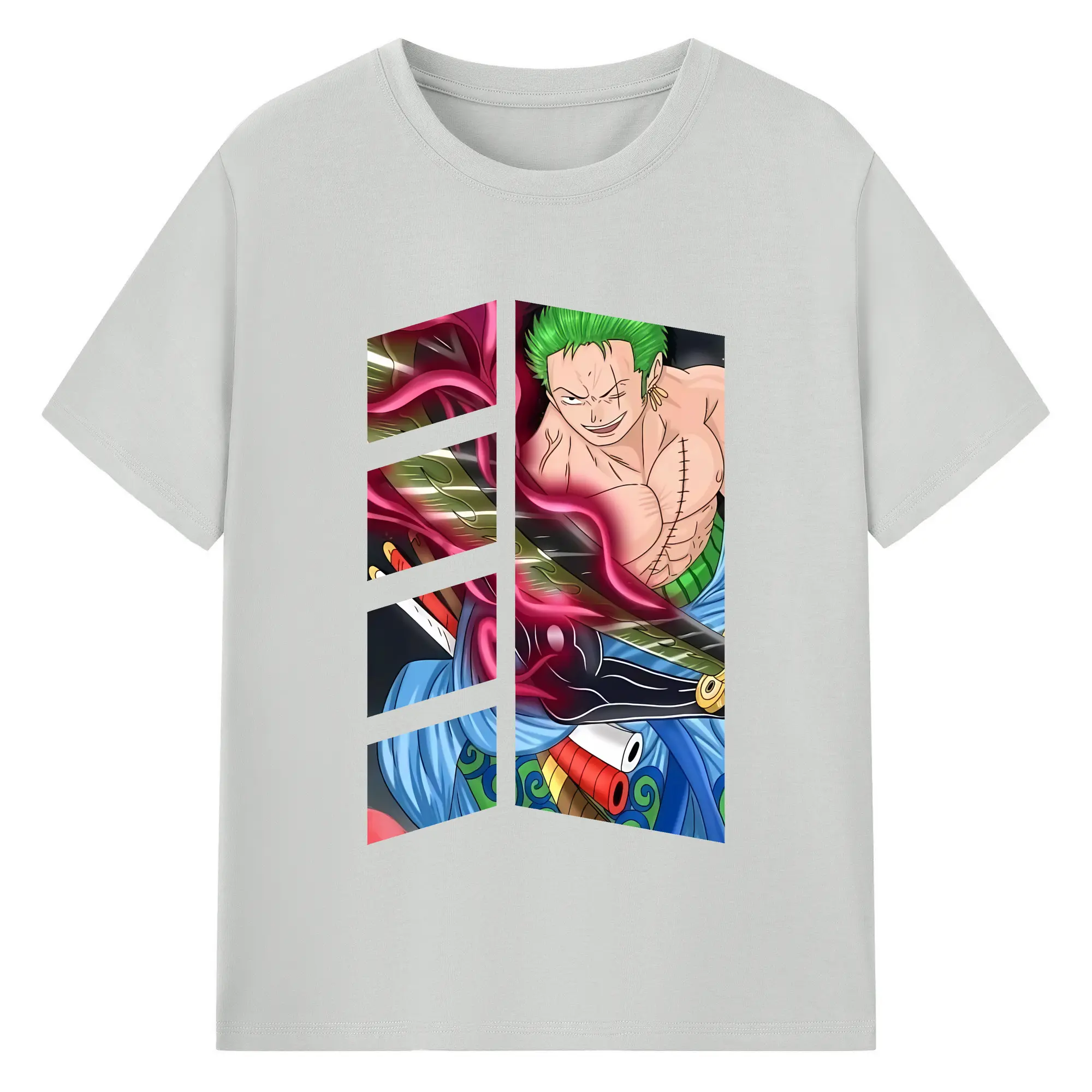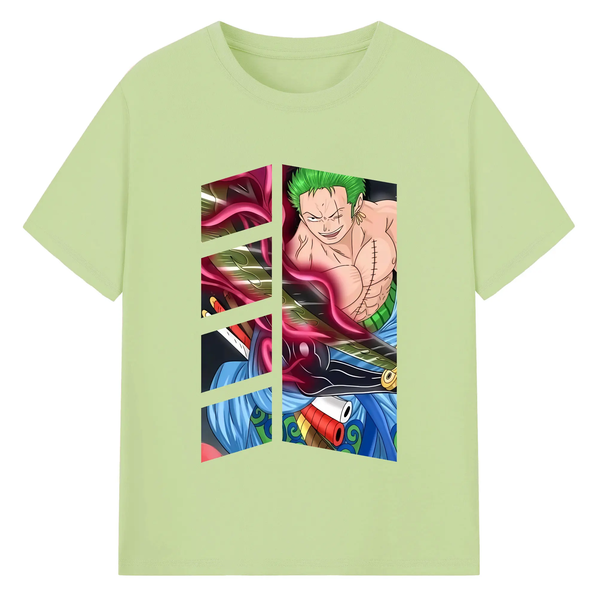 ワンピース グッズ ロロノア・ゾロ - 綿100% ヴィンテージ風 半袖Tシャツ ・ フロントプリント ・ 柔らか肌触り ・ 通気性 快適 ・ スポーツ カジュアル 外出用