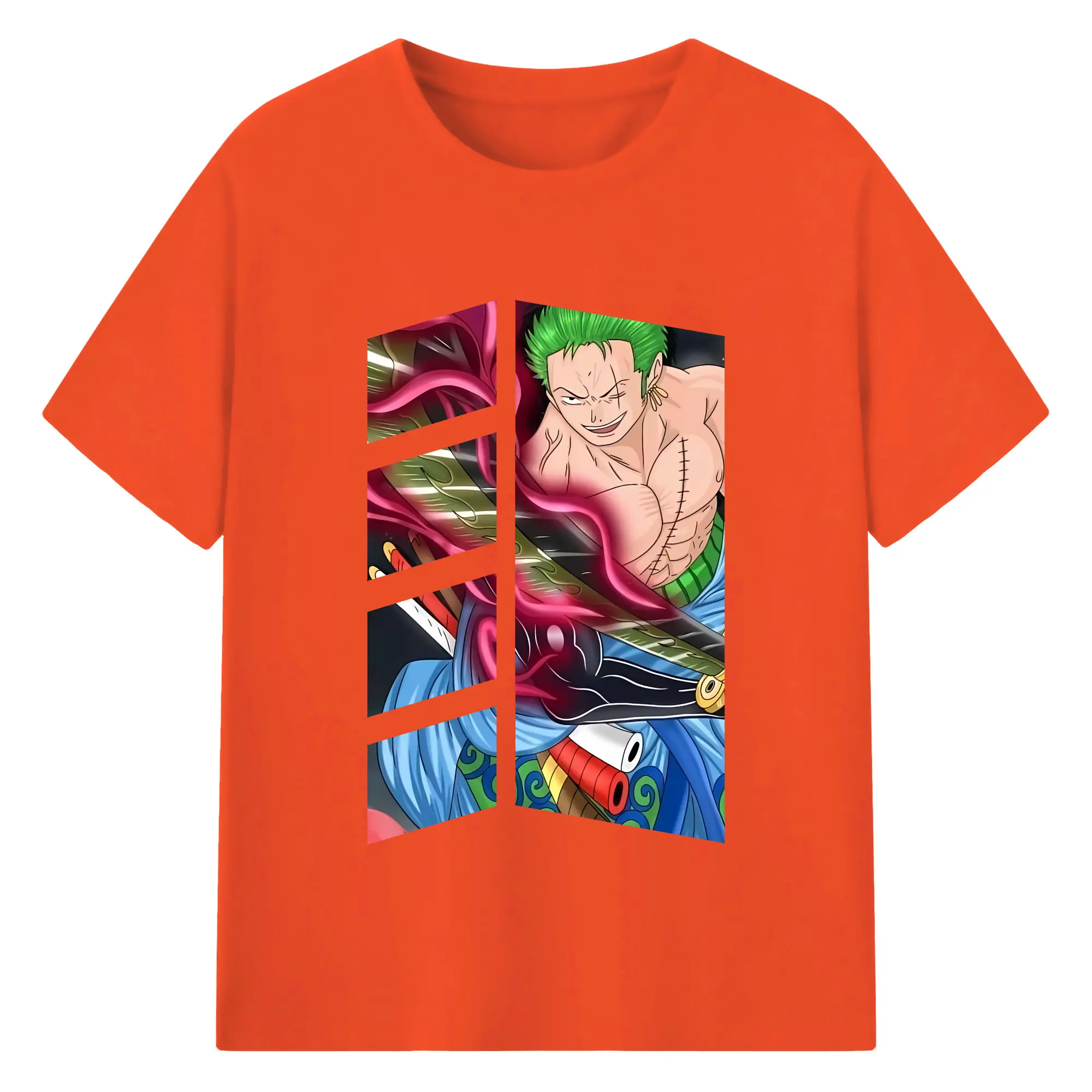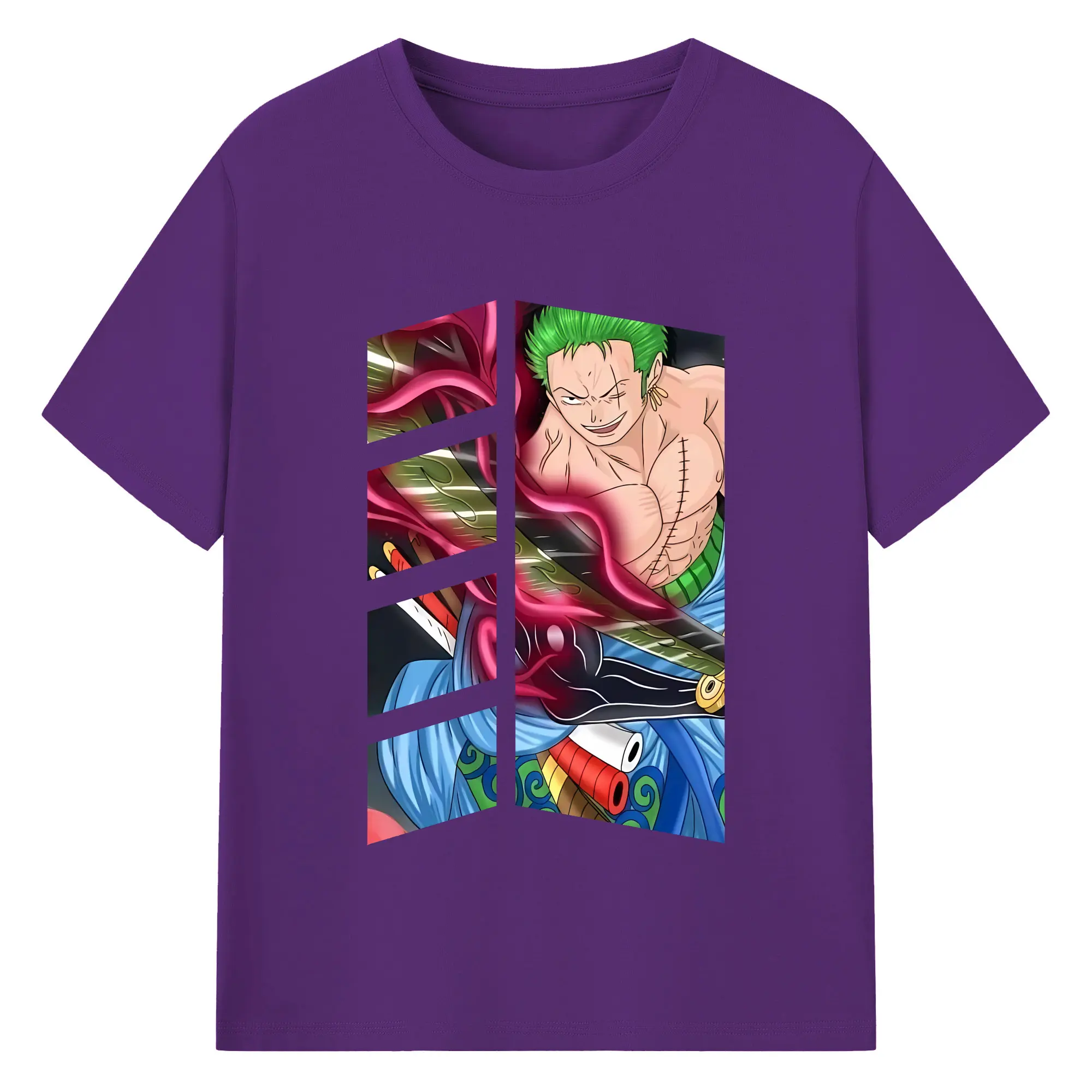 ワンピース グッズ ロロノア・ゾロ - 綿100% 半袖Tシャツ ・ バックプリント ・ 快適 通気性 ・ 日常使い 散歩 スポーツ用