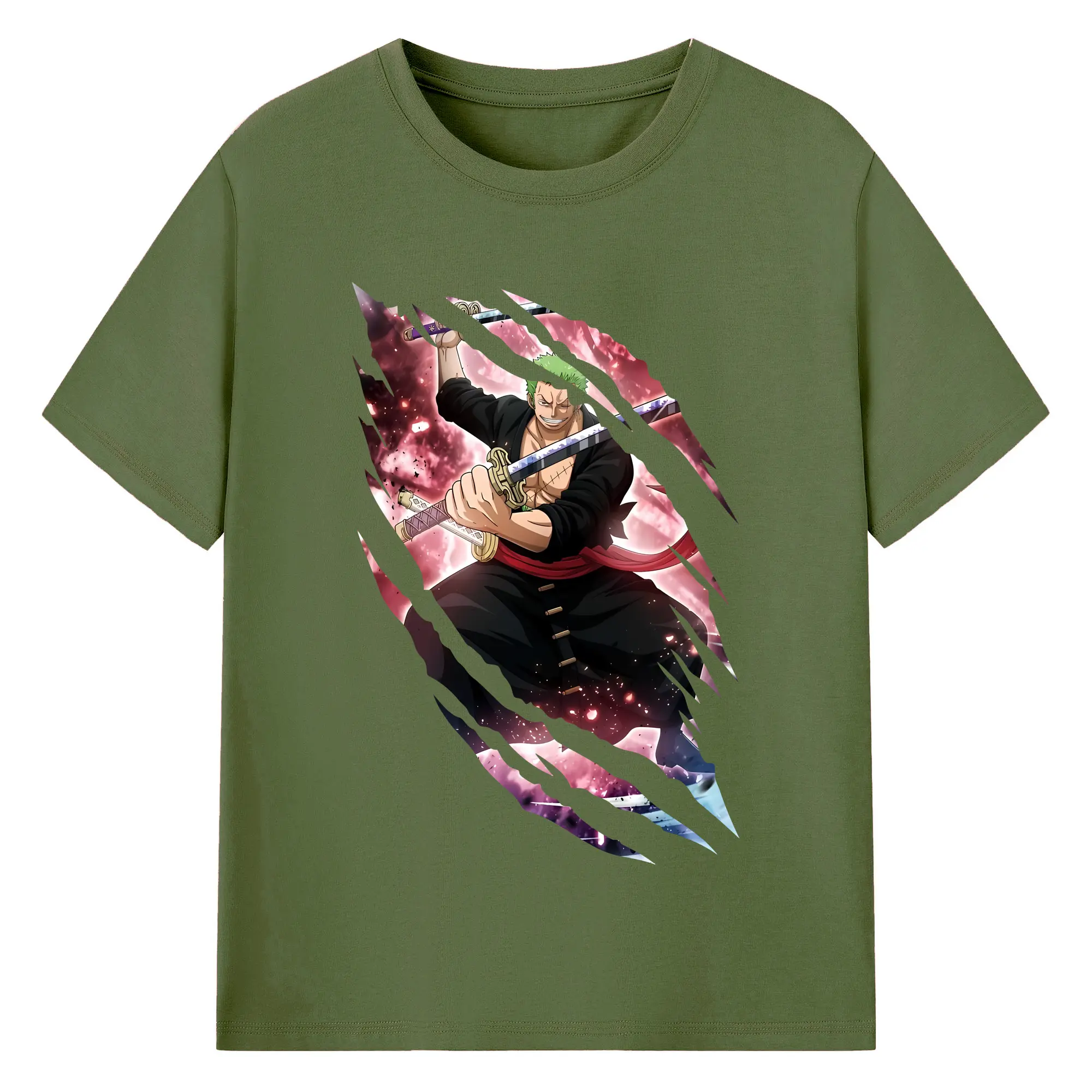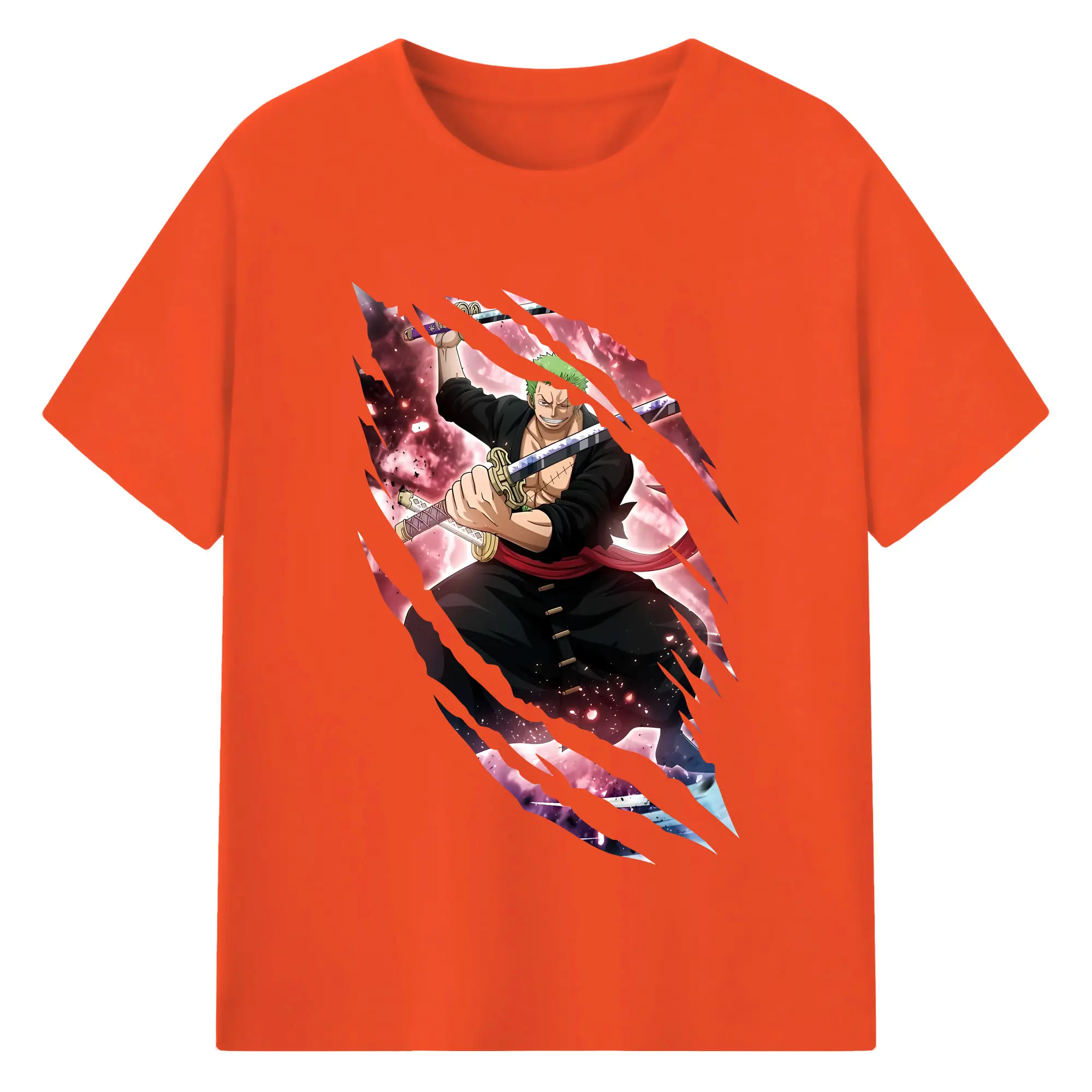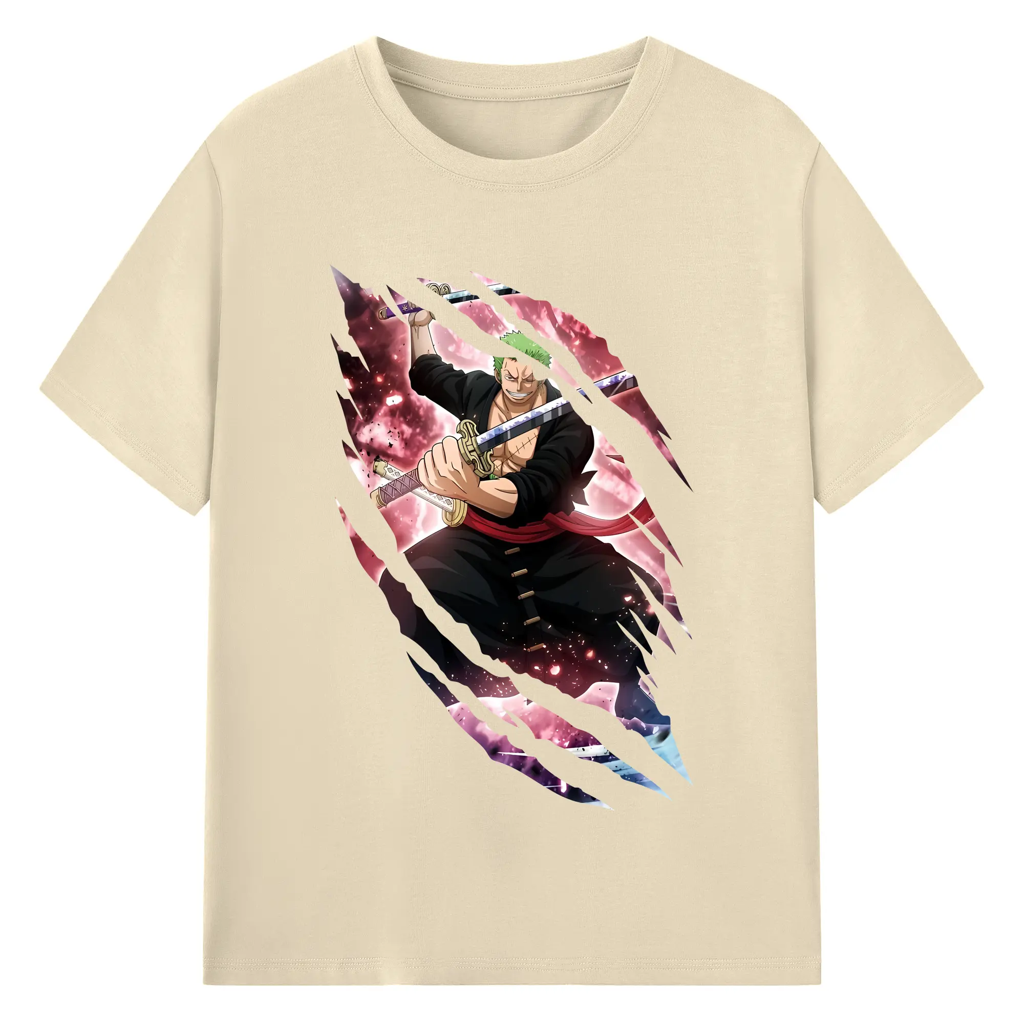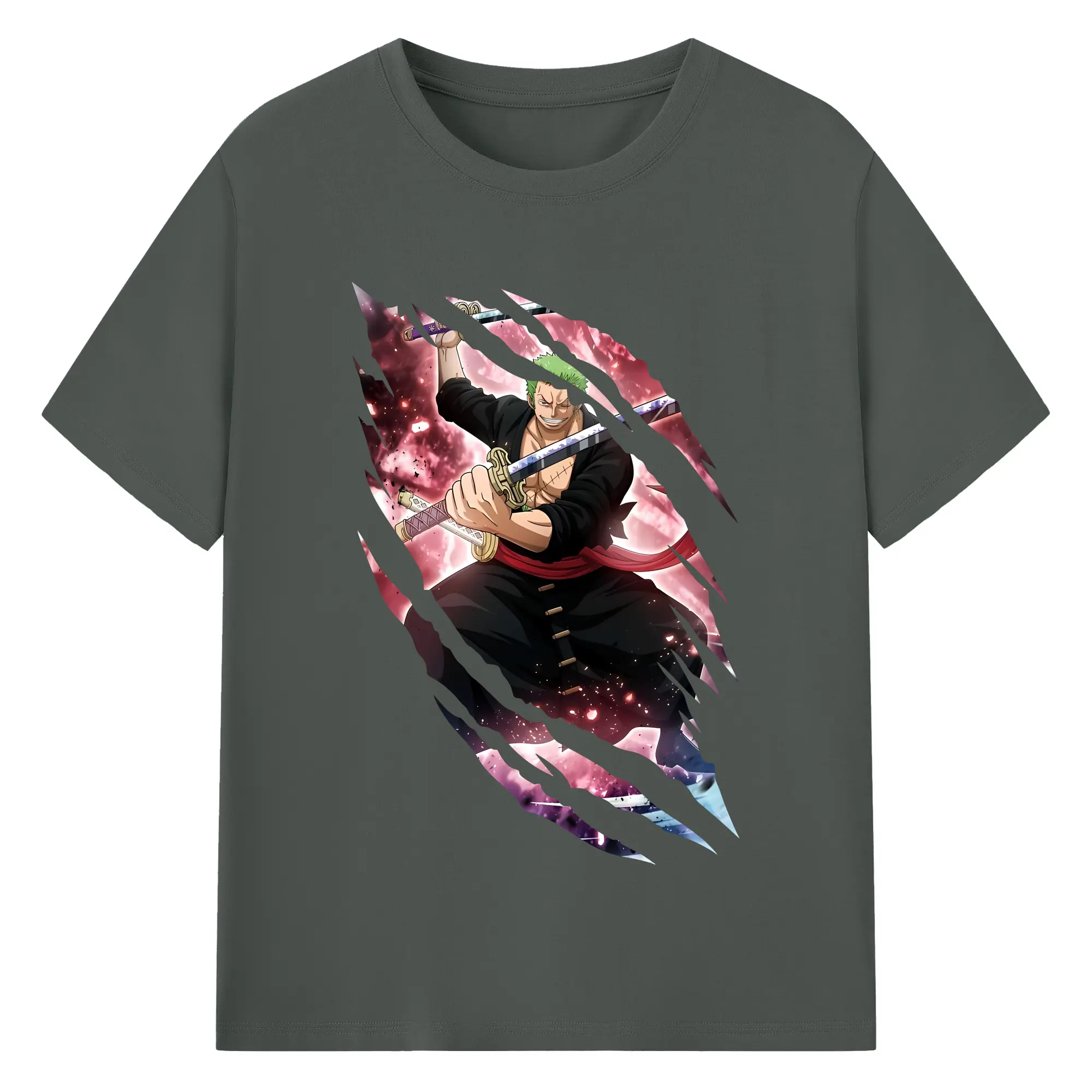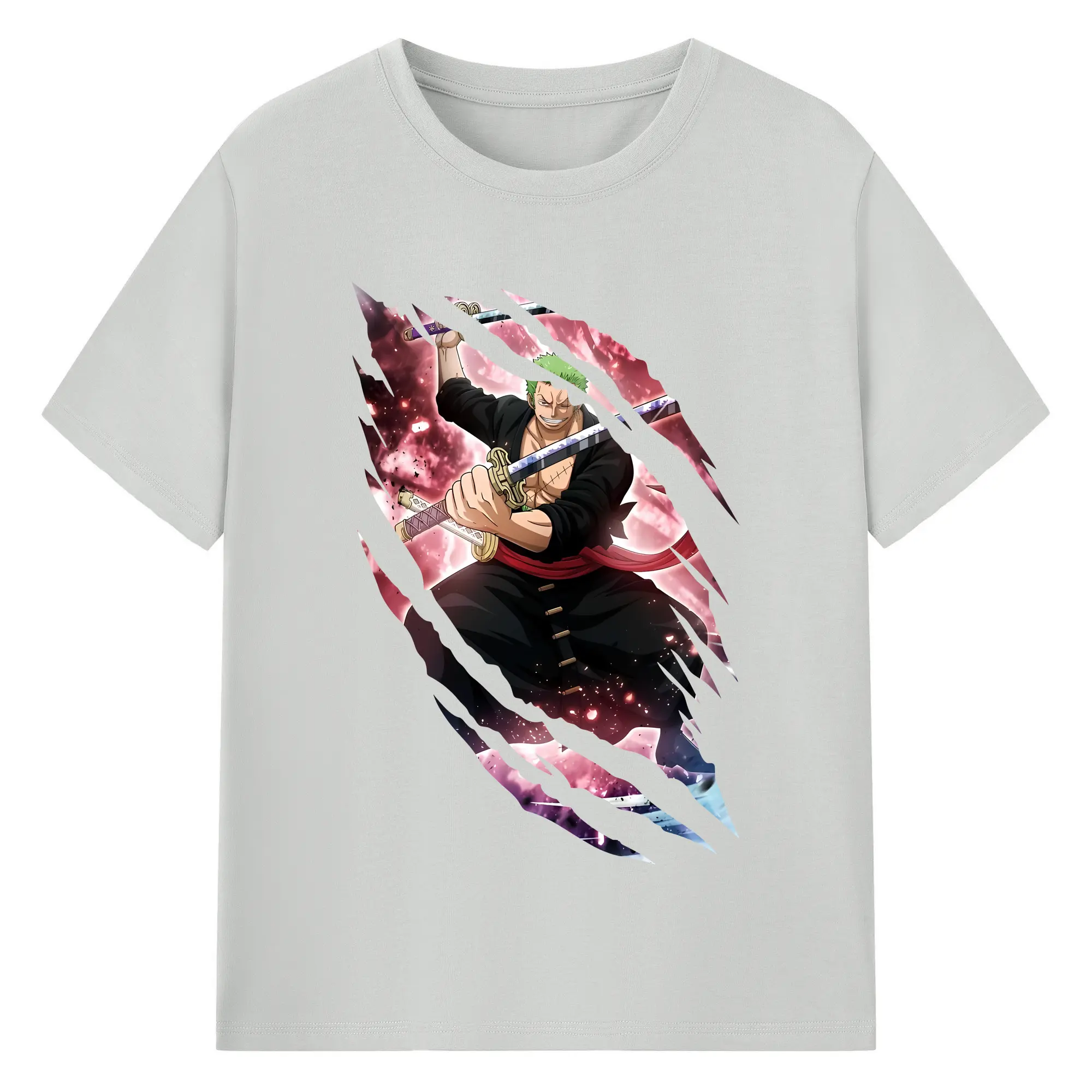 ワンピース グッズ ロロノア・ゾロ - 綿100% 半袖Tシャツ ・ バックプリント ・ 快適 通気性 ・ 日常使い 散歩 スポーツ用