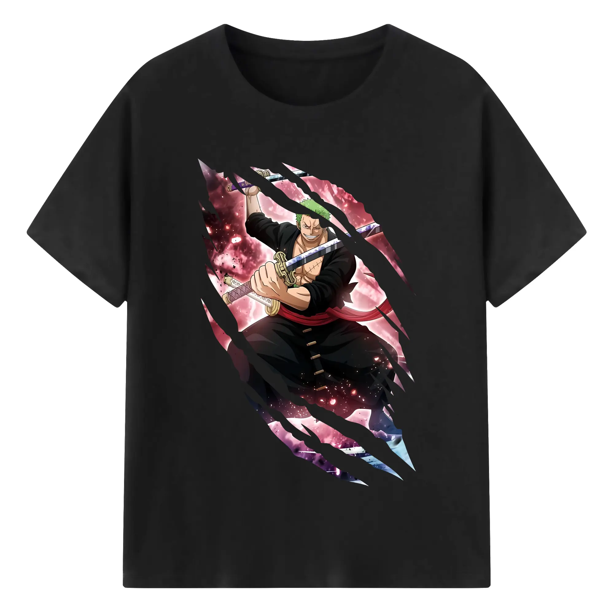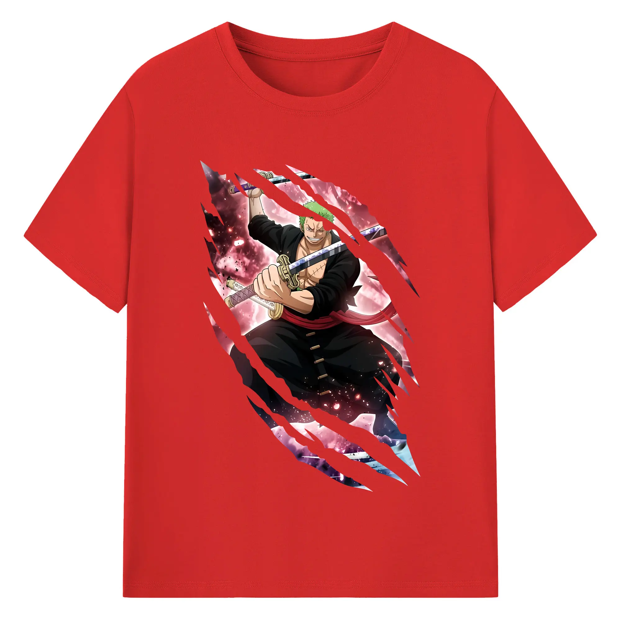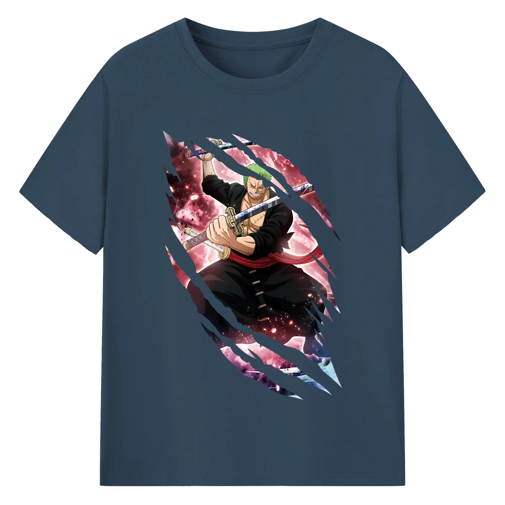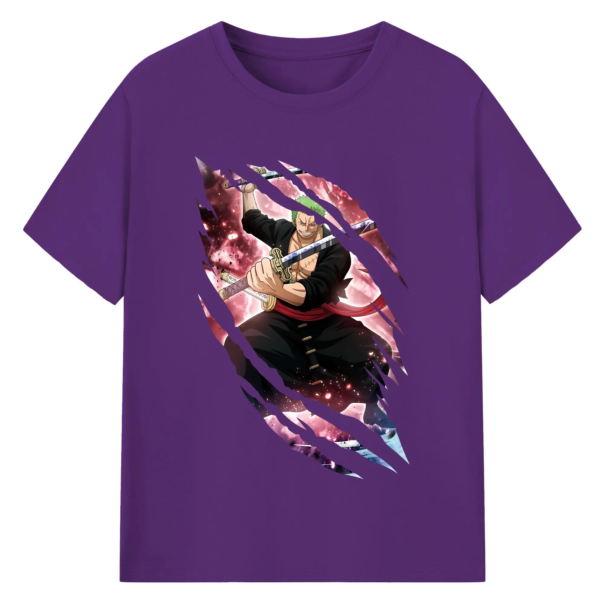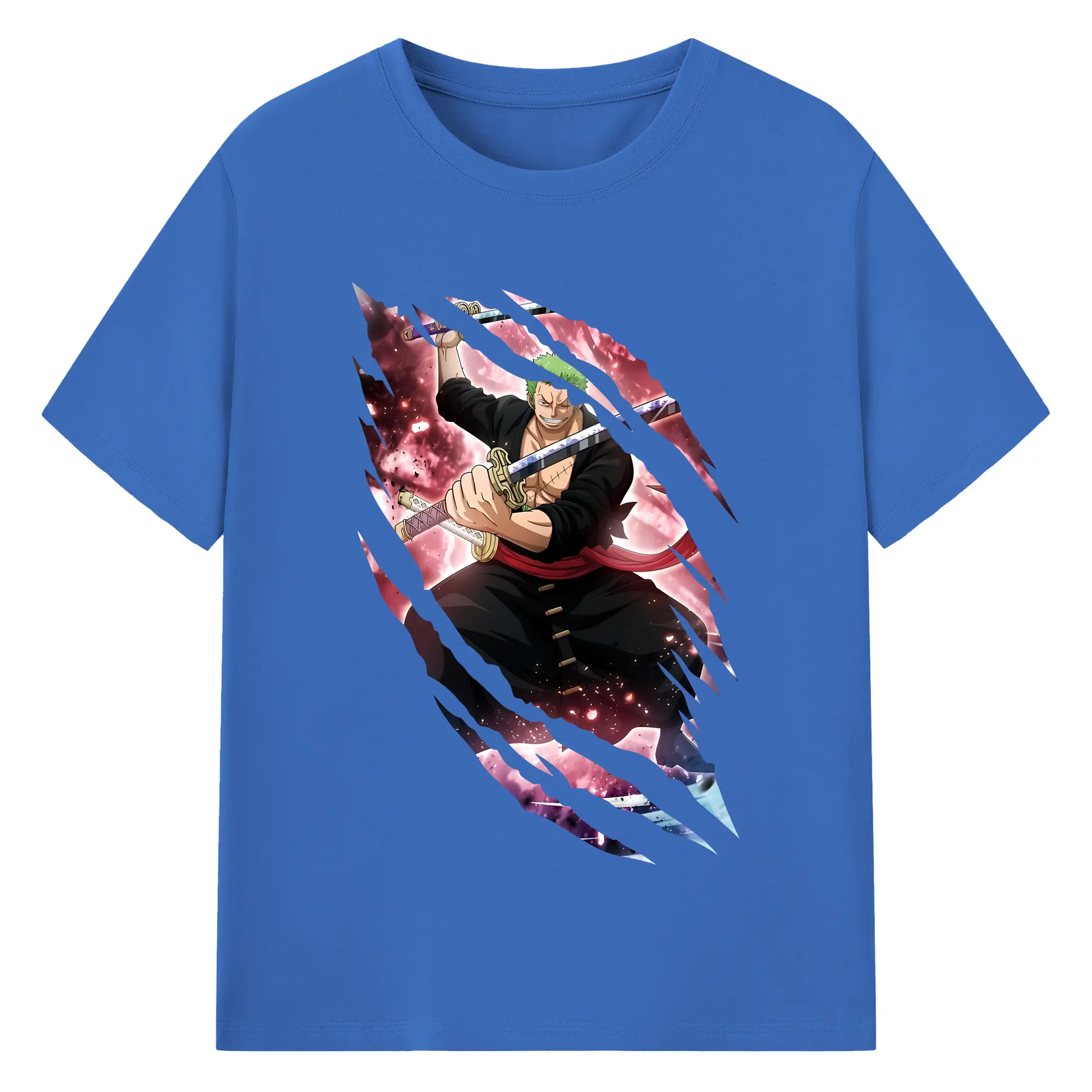 ワンピース グッズ ロロノア・ゾロ - 綿100% 半袖Tシャツ ・ バックプリント ・ 快適 通気性 ・ 日常使い 散歩 スポーツ用