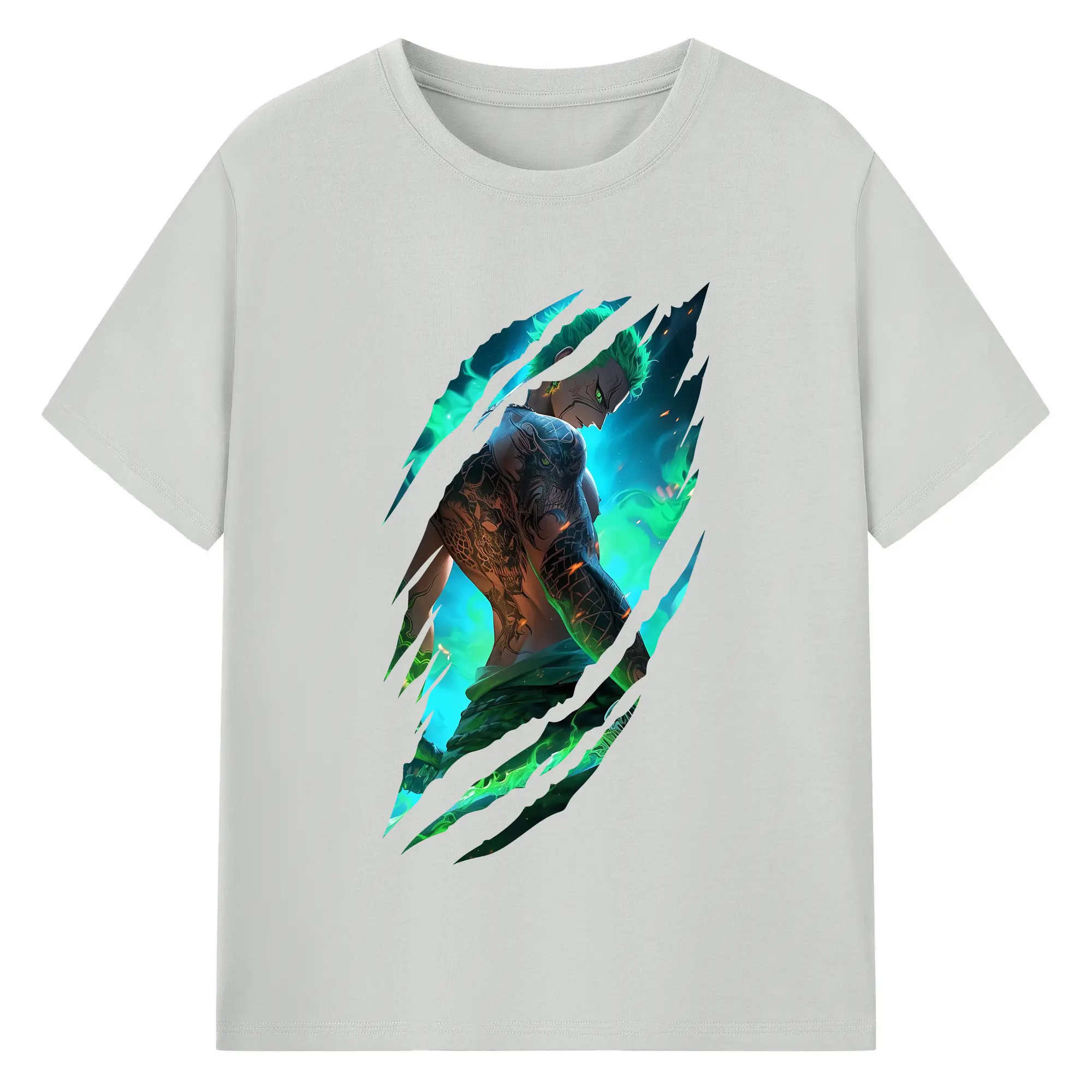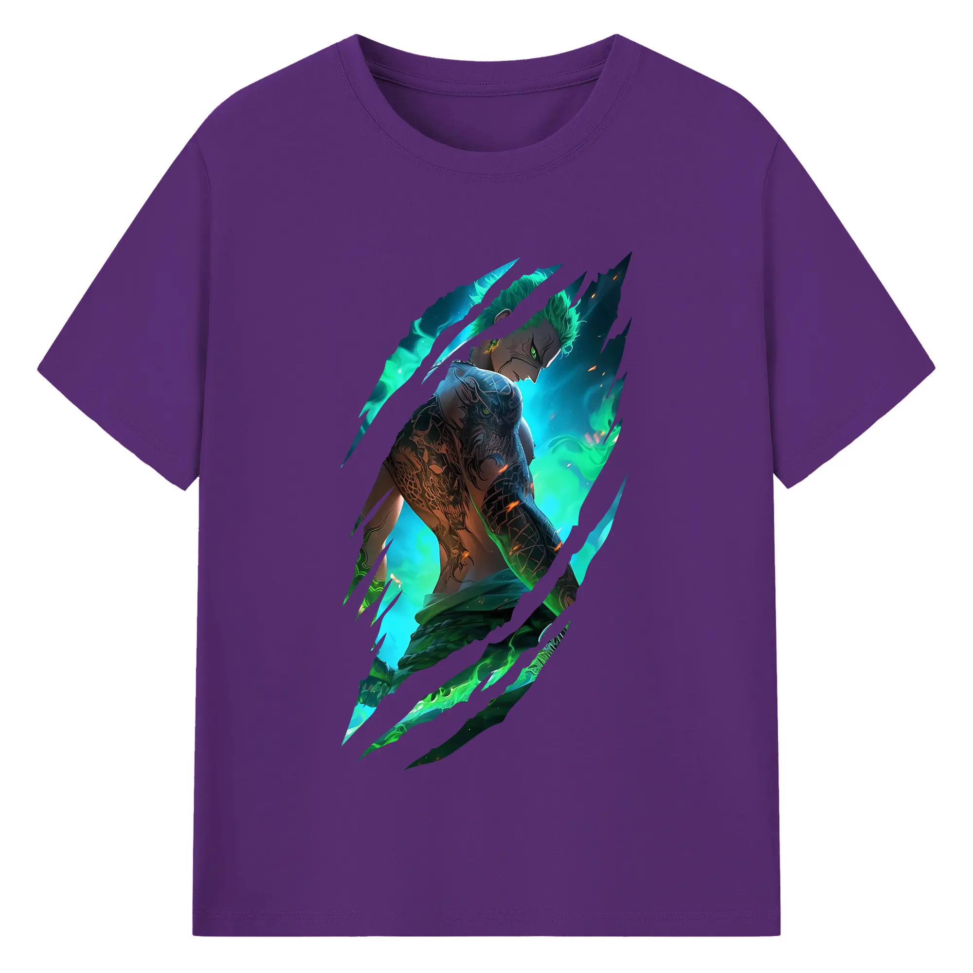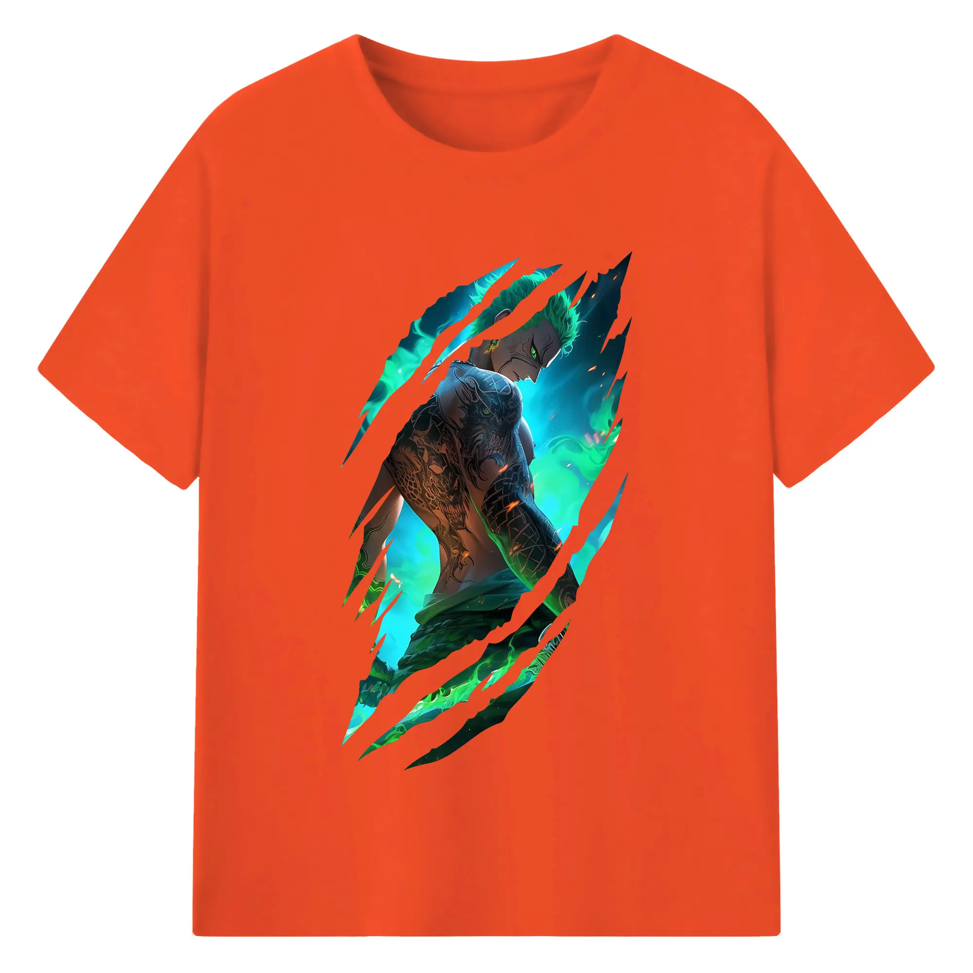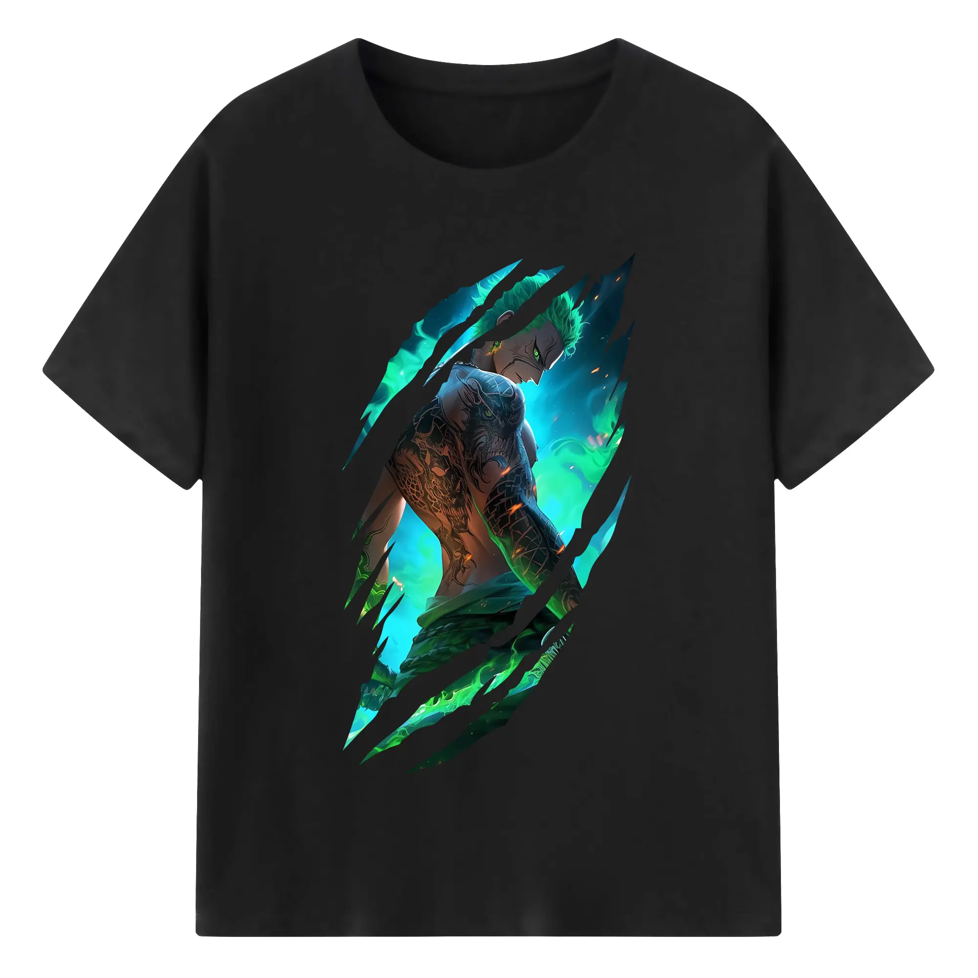 ワンピース グッズ ロロノア・ゾロ - 綿100% 半袖Tシャツ ・ バックプリント ・ 快適 通気性 ・ 日常使い 散歩 スポーツ用