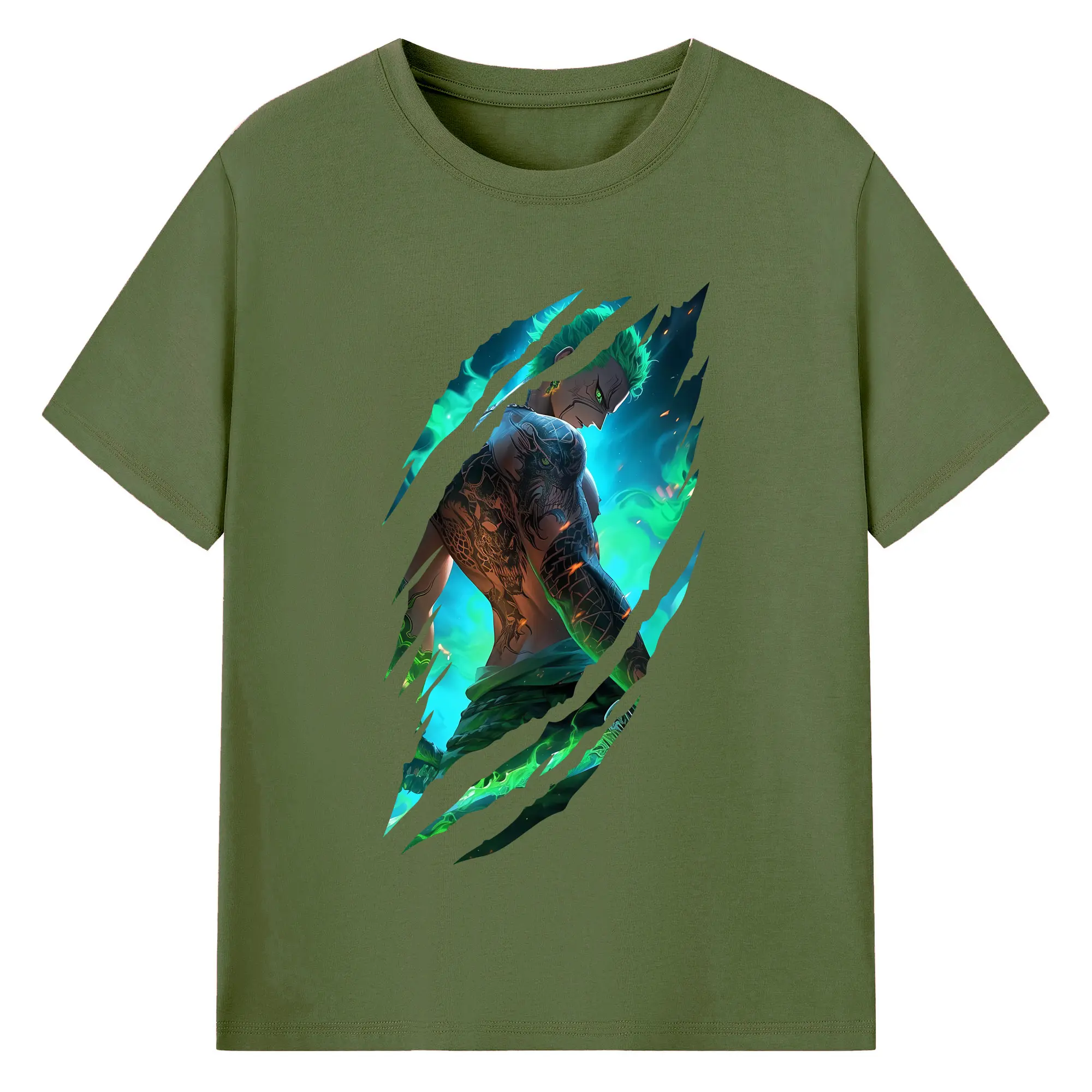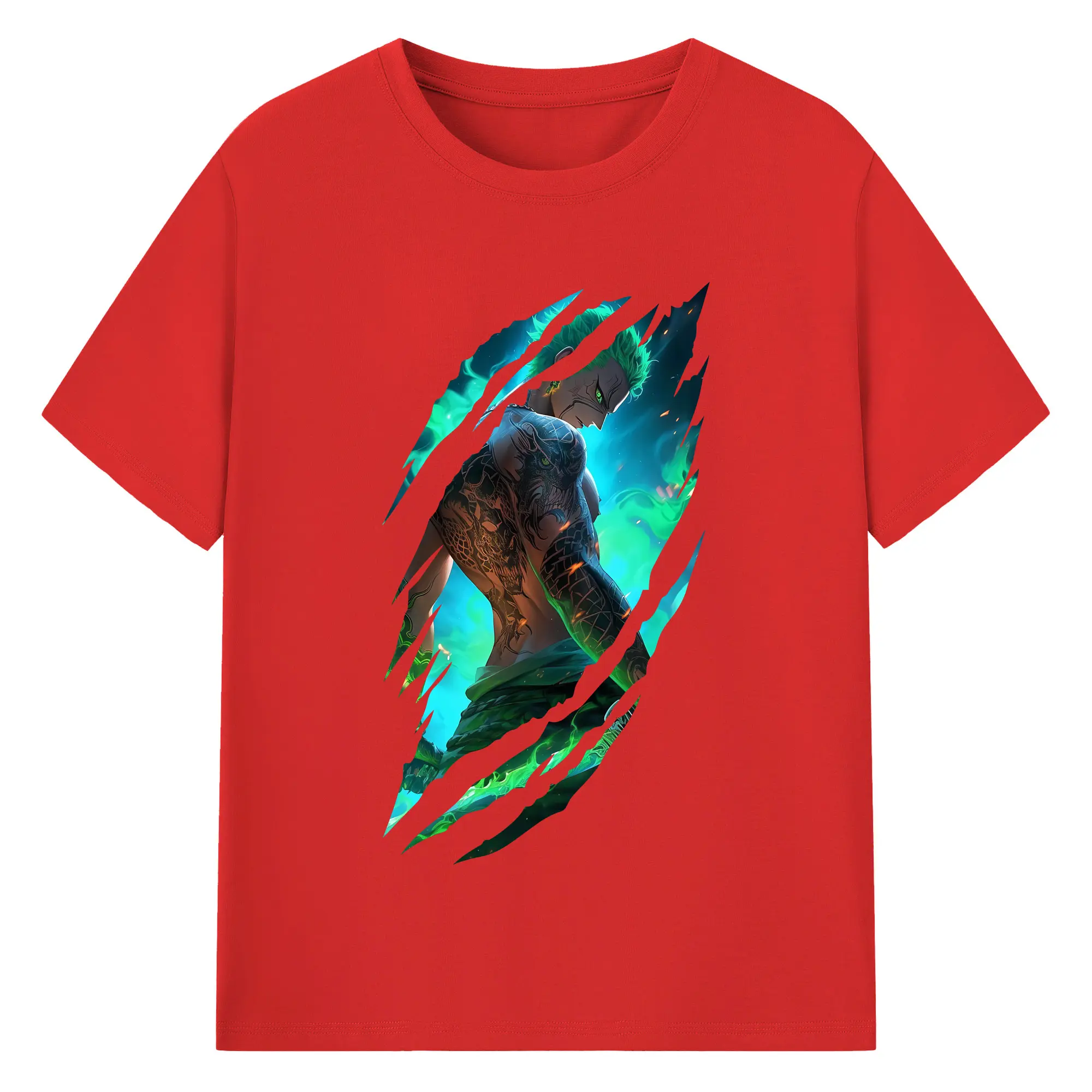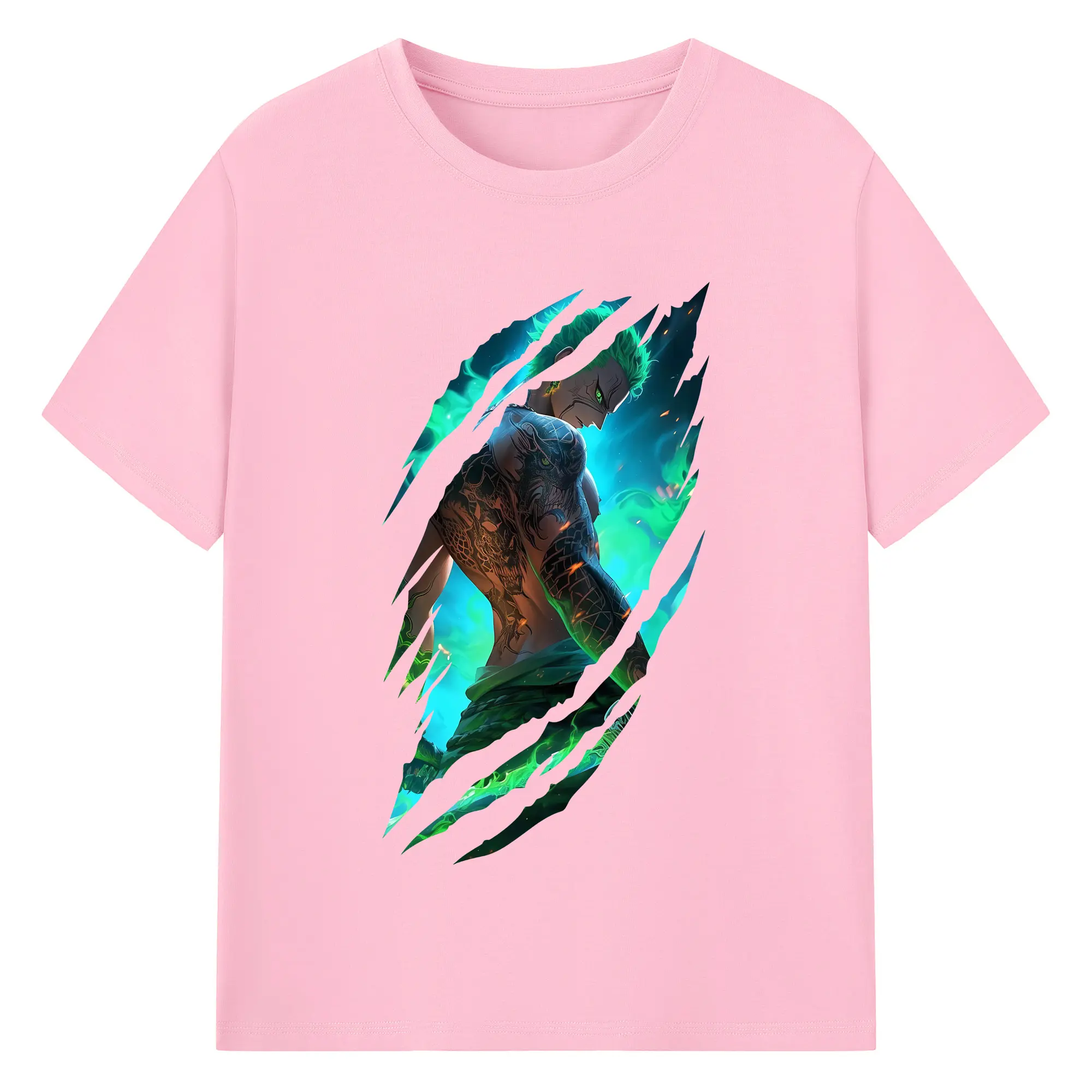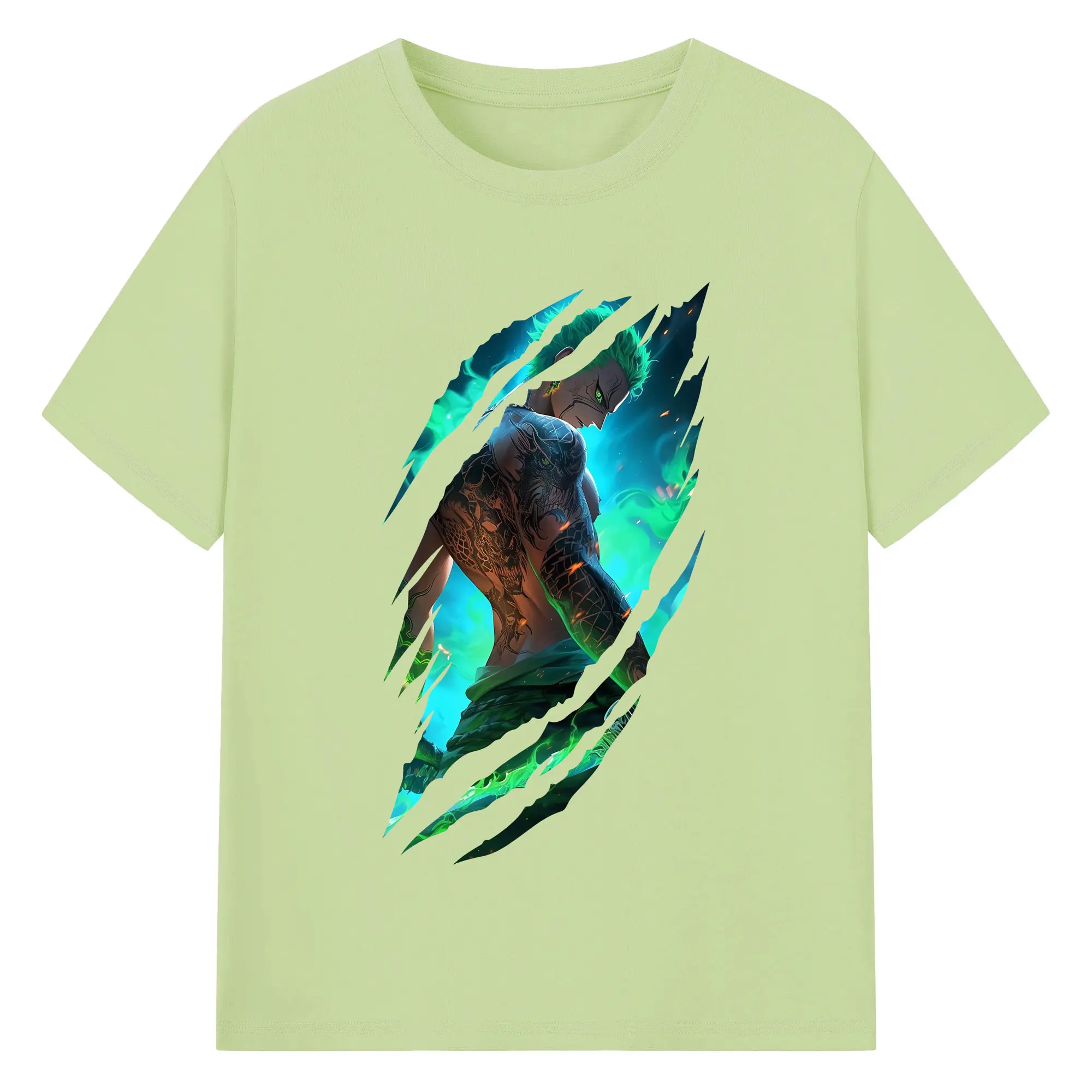 ワンピース グッズ ロロノア・ゾロ - 綿100% 半袖Tシャツ ・ バックプリント ・ 快適 通気性 ・ 日常使い 散歩 スポーツ用