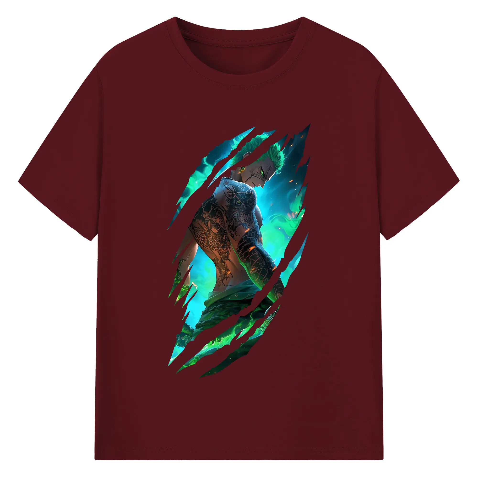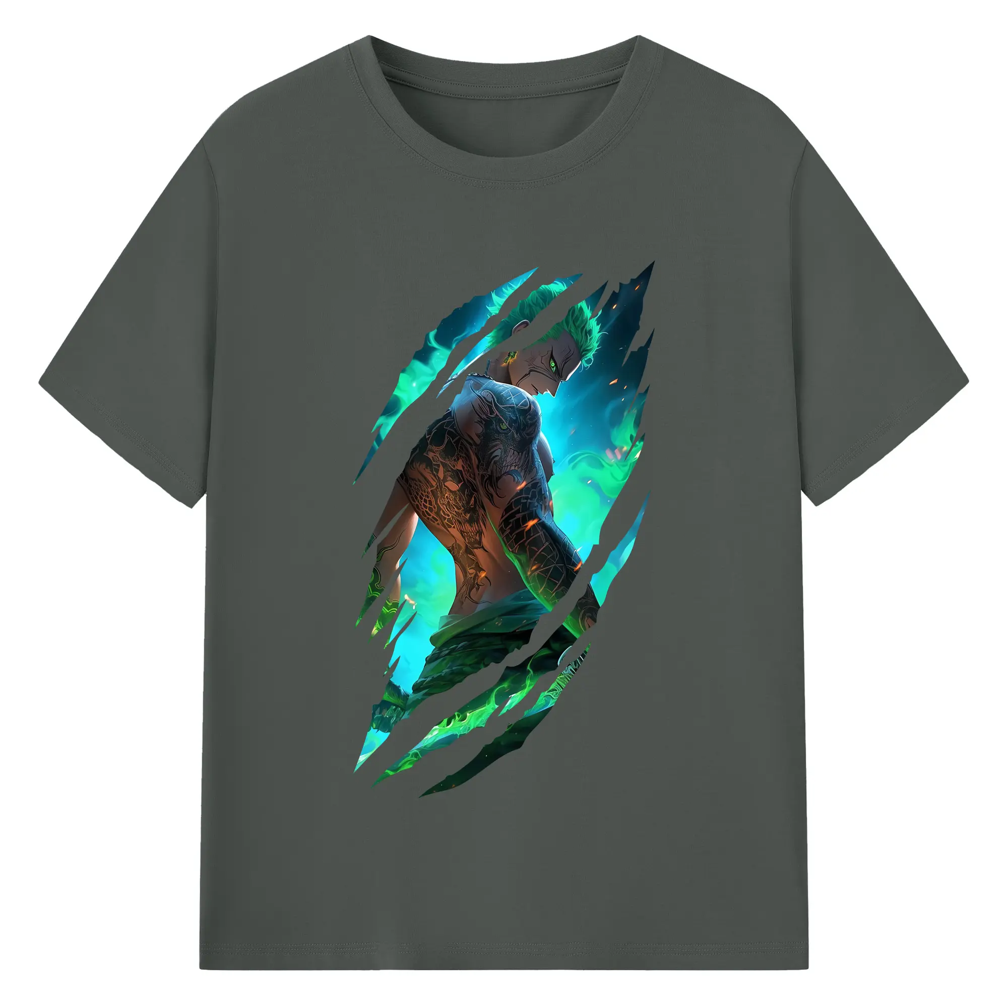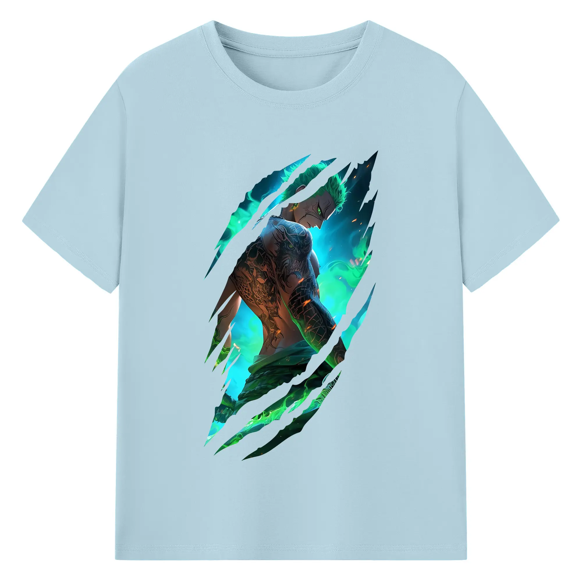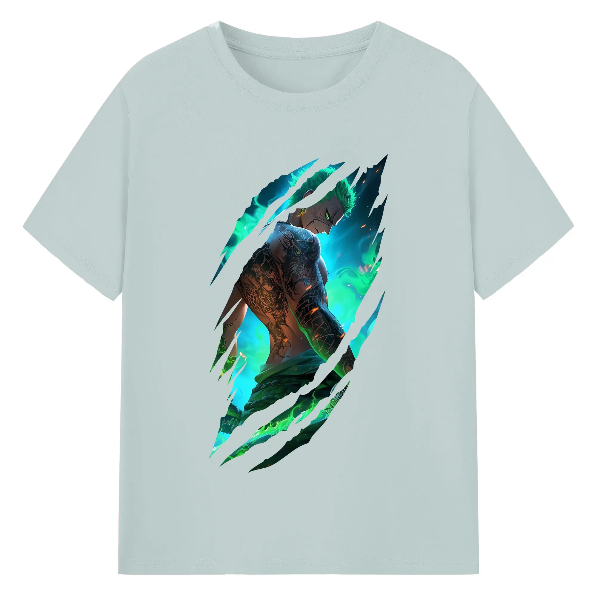 ワンピース グッズ ロロノア・ゾロ - 綿100% 半袖Tシャツ ・ バックプリント ・ 快適 通気性 ・ 日常使い 散歩 スポーツ用