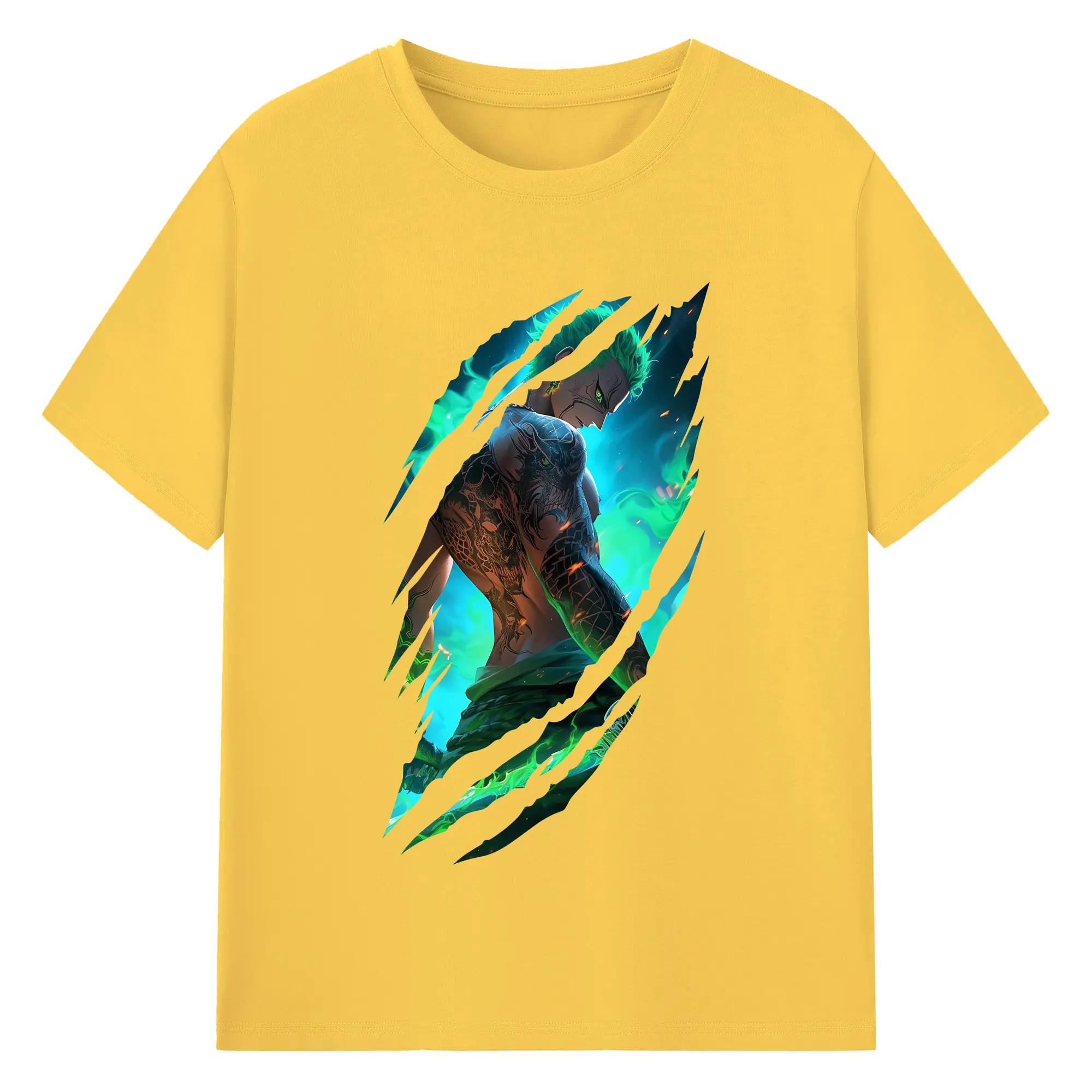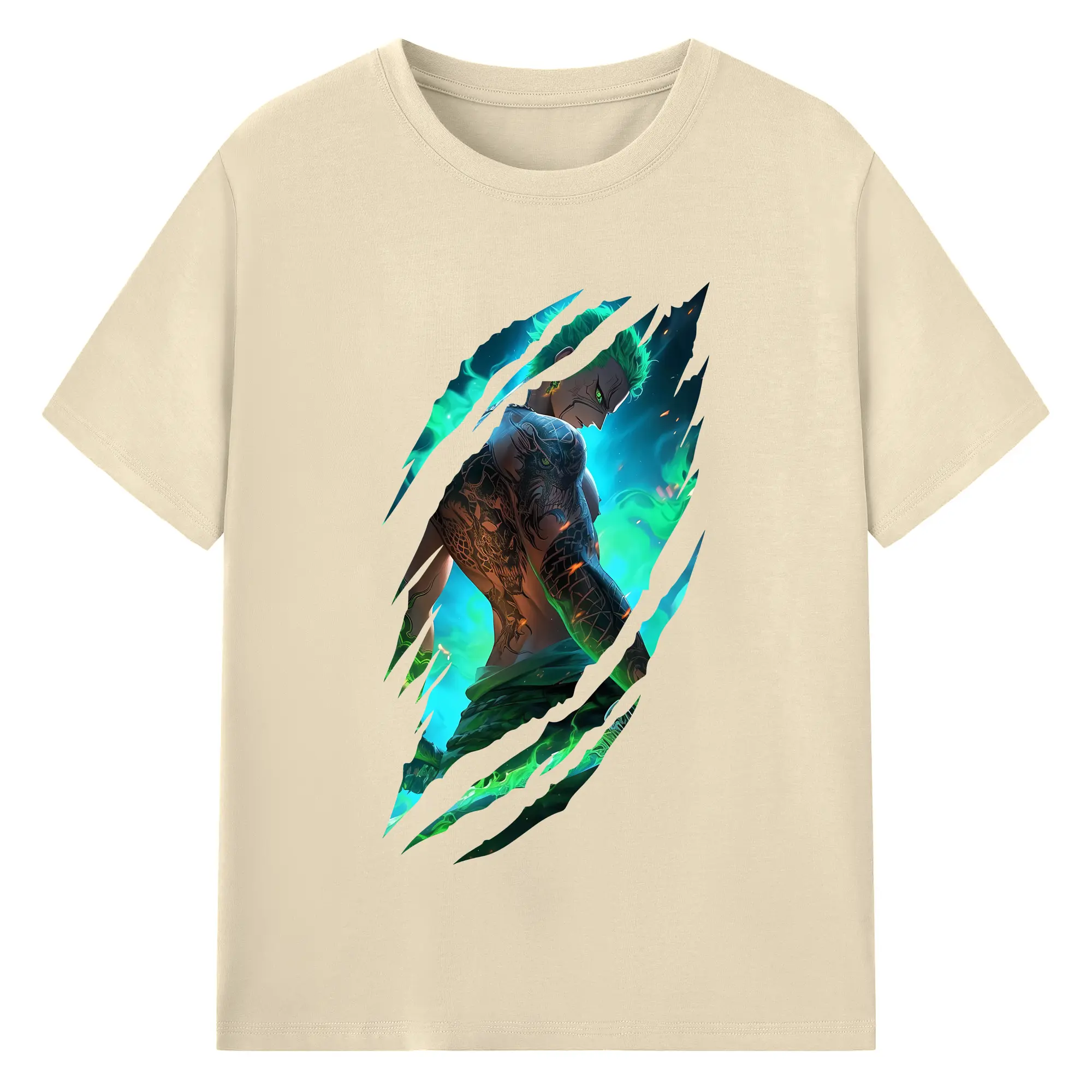 ワンピース グッズ ロロノア・ゾロ - 綿100% ヴィンテージ風 半袖Tシャツ ・ フロントプリント ・ 柔らか肌触り ・ 通気性 快適 ・ スポーツ カジュアル 外出用