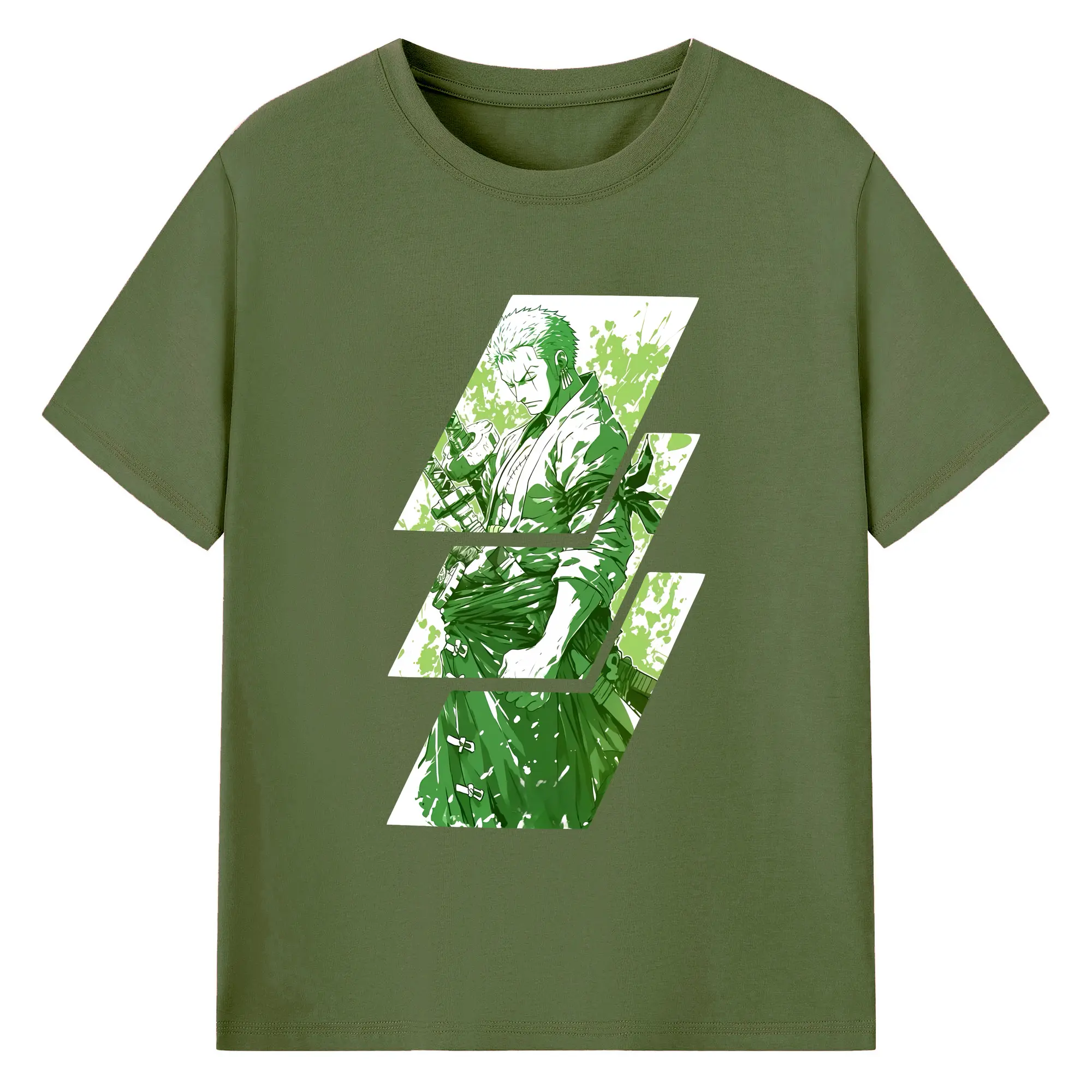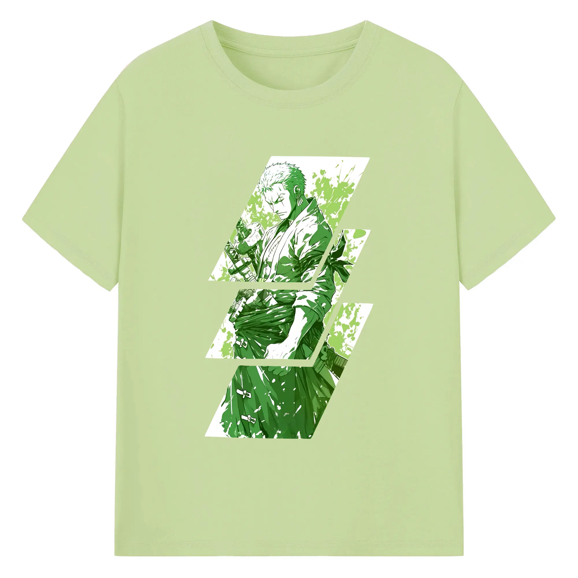ワンピース グッズ ロロノア・ゾロ - 綿100% ヴィンテージ風 半袖Tシャツ ・ フロントプリント ・ 柔らか肌触り ・ 通気性 快適 ・ スポーツ カジュアル 外出用