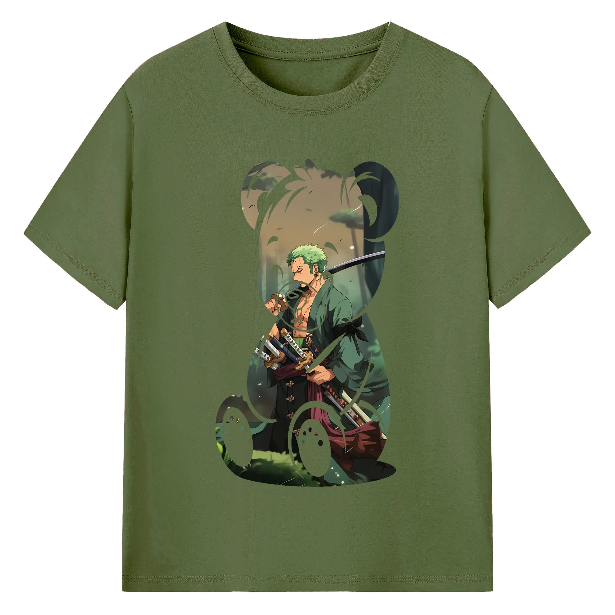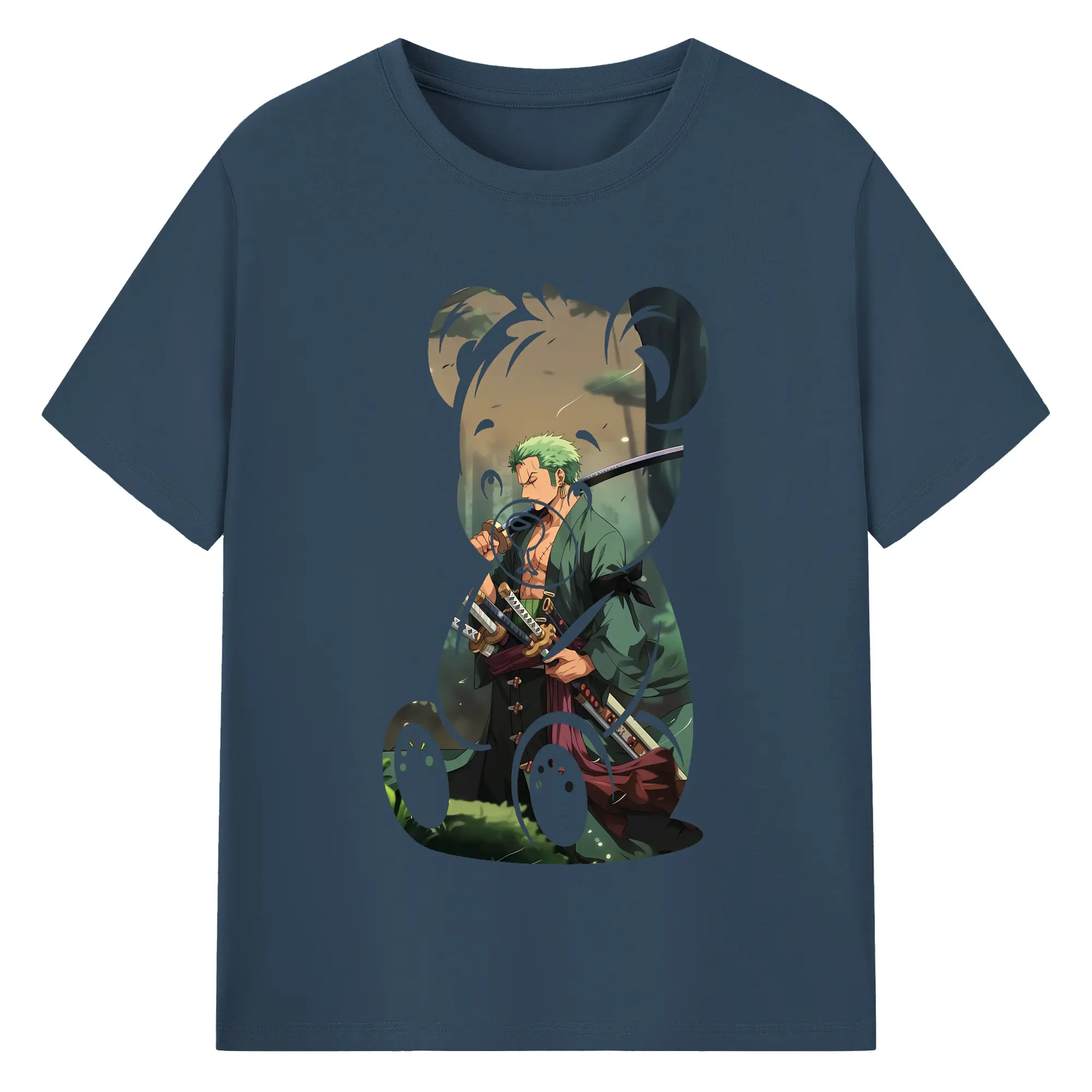 ワンピース グッズ ロロノア・ゾロ - 綿100% 半袖Tシャツ ・ バックプリント ・ 快適 通気性 ・ 日常使い 散歩 スポーツ用