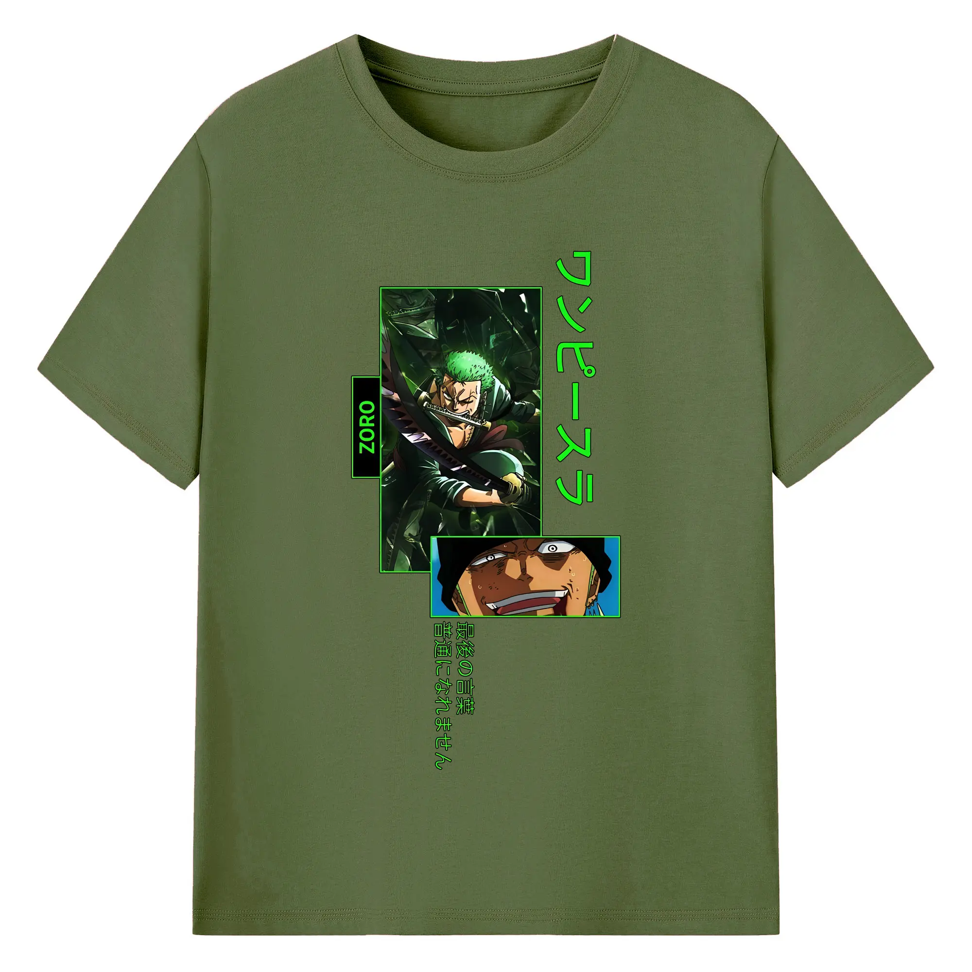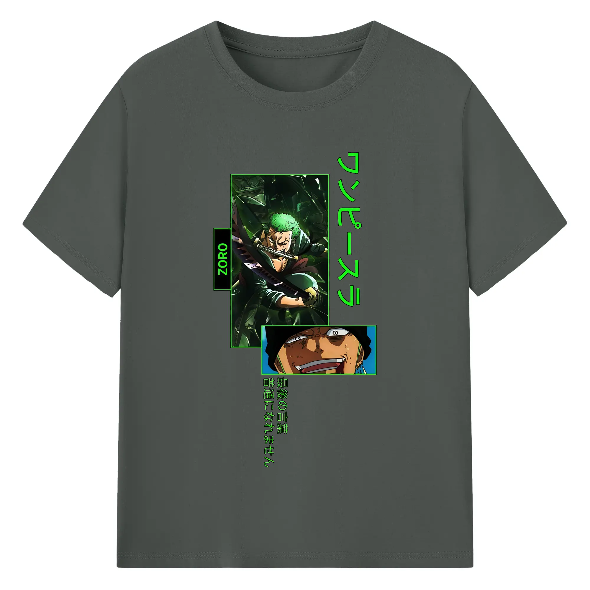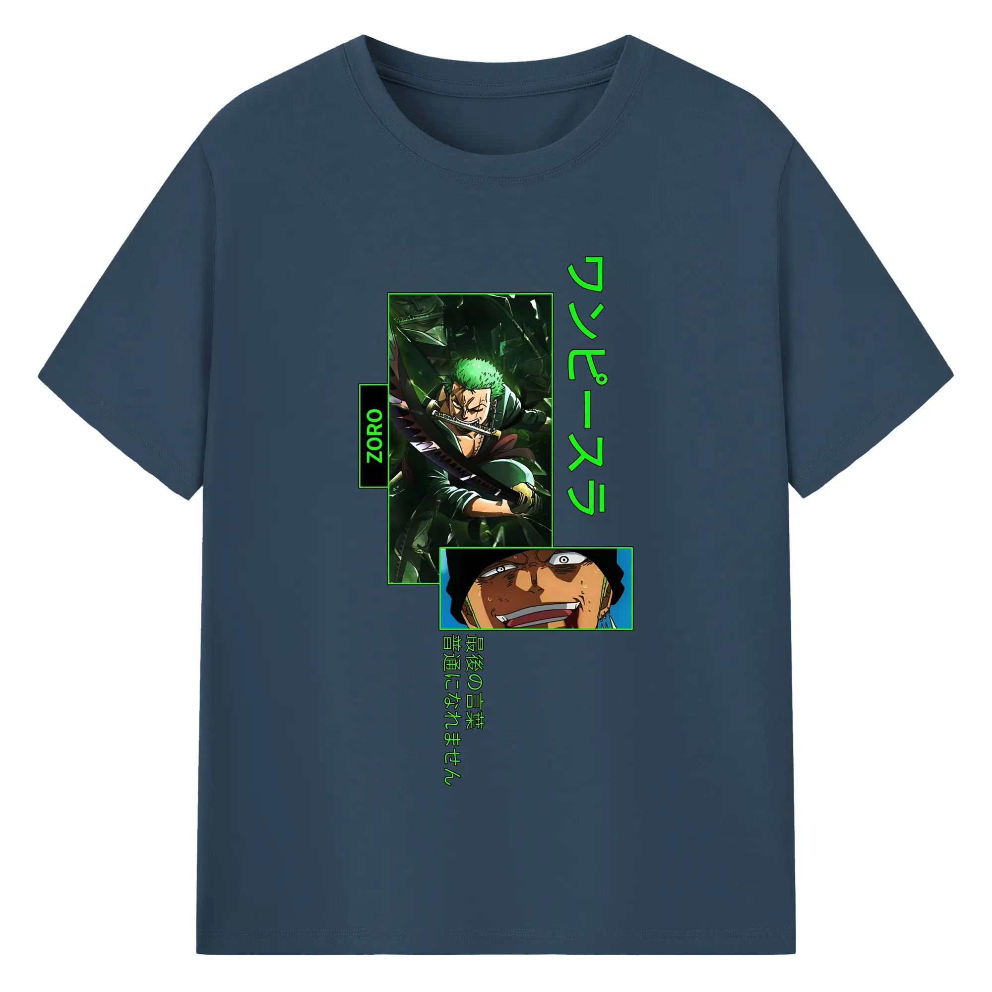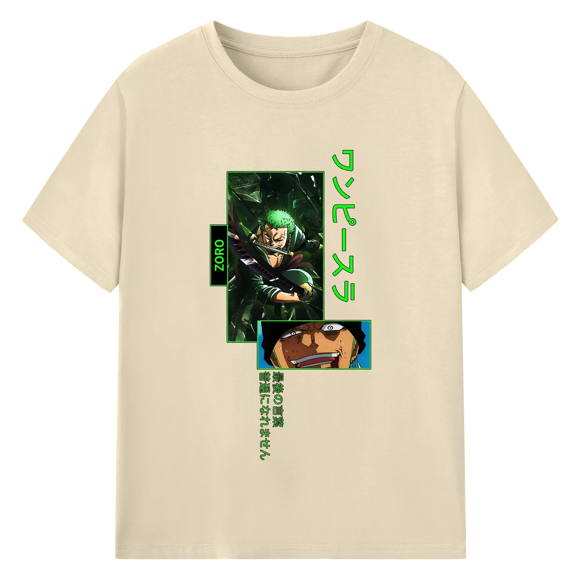 ワンピース グッズ ロロノア・ゾロ - 綿100% ヴィンテージ風 半袖Tシャツ ・ フロントプリント ・ 柔らか肌触り ・ 通気性 快適 ・ スポーツ カジュアル 外出用