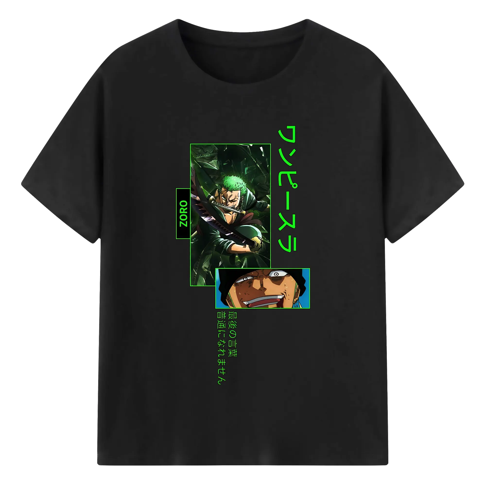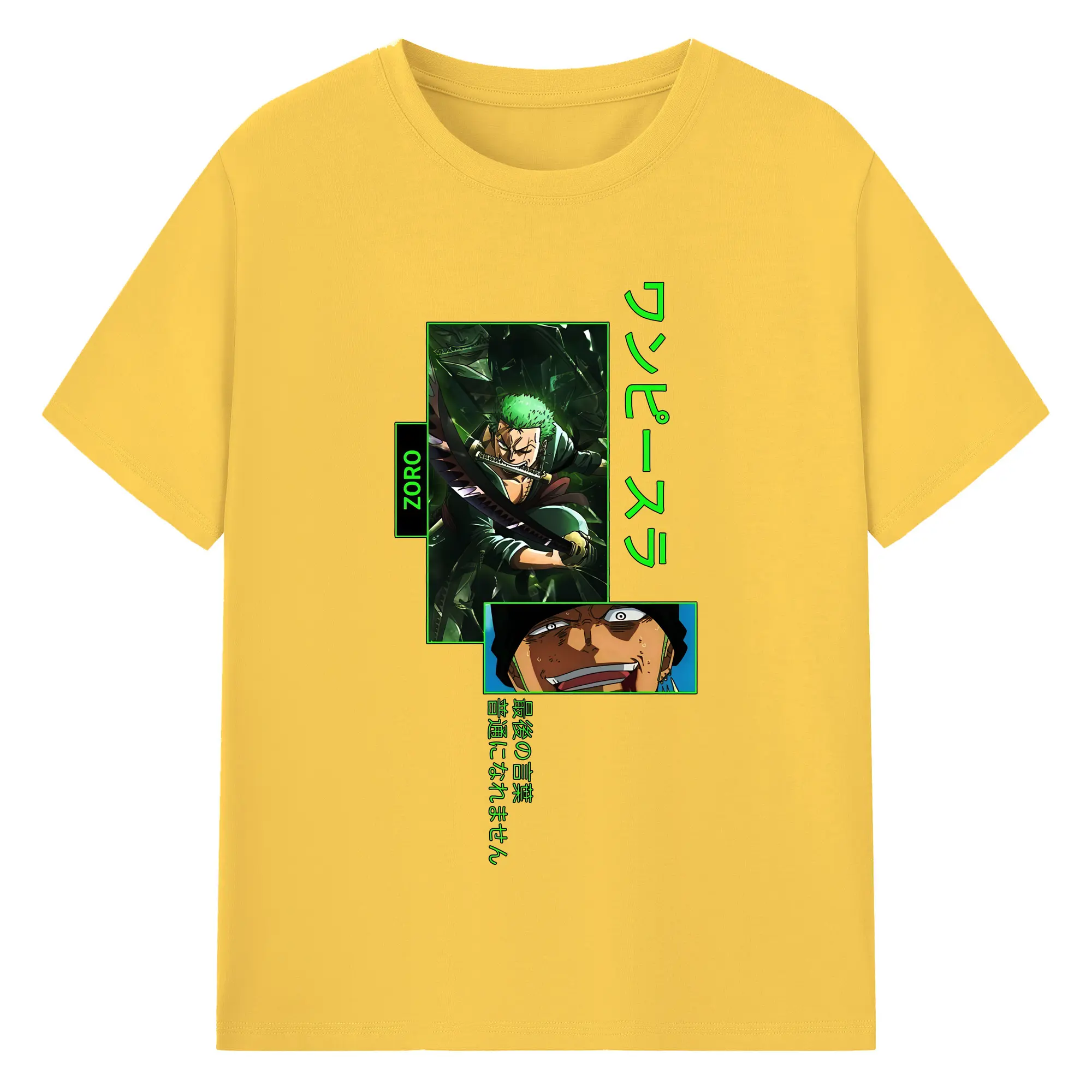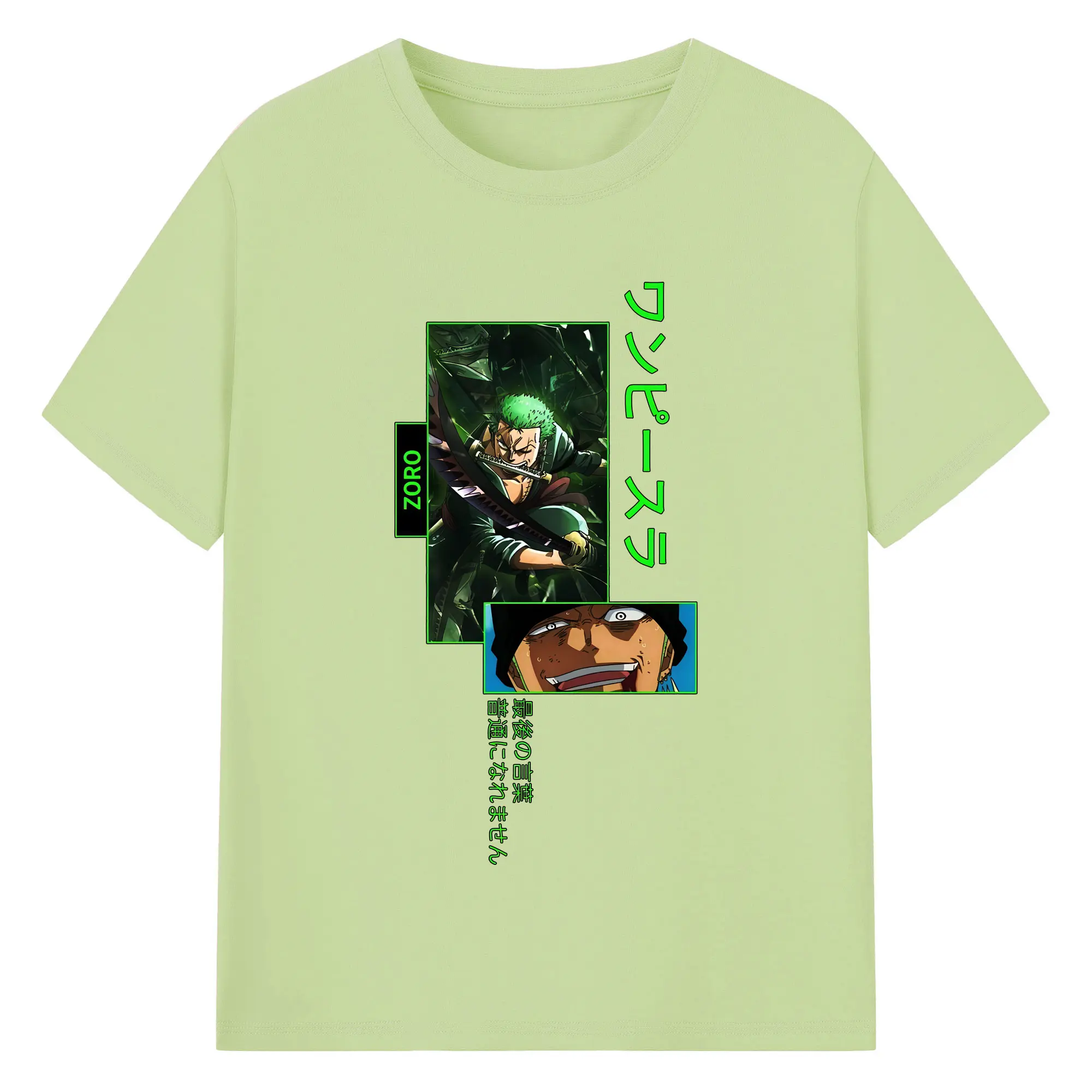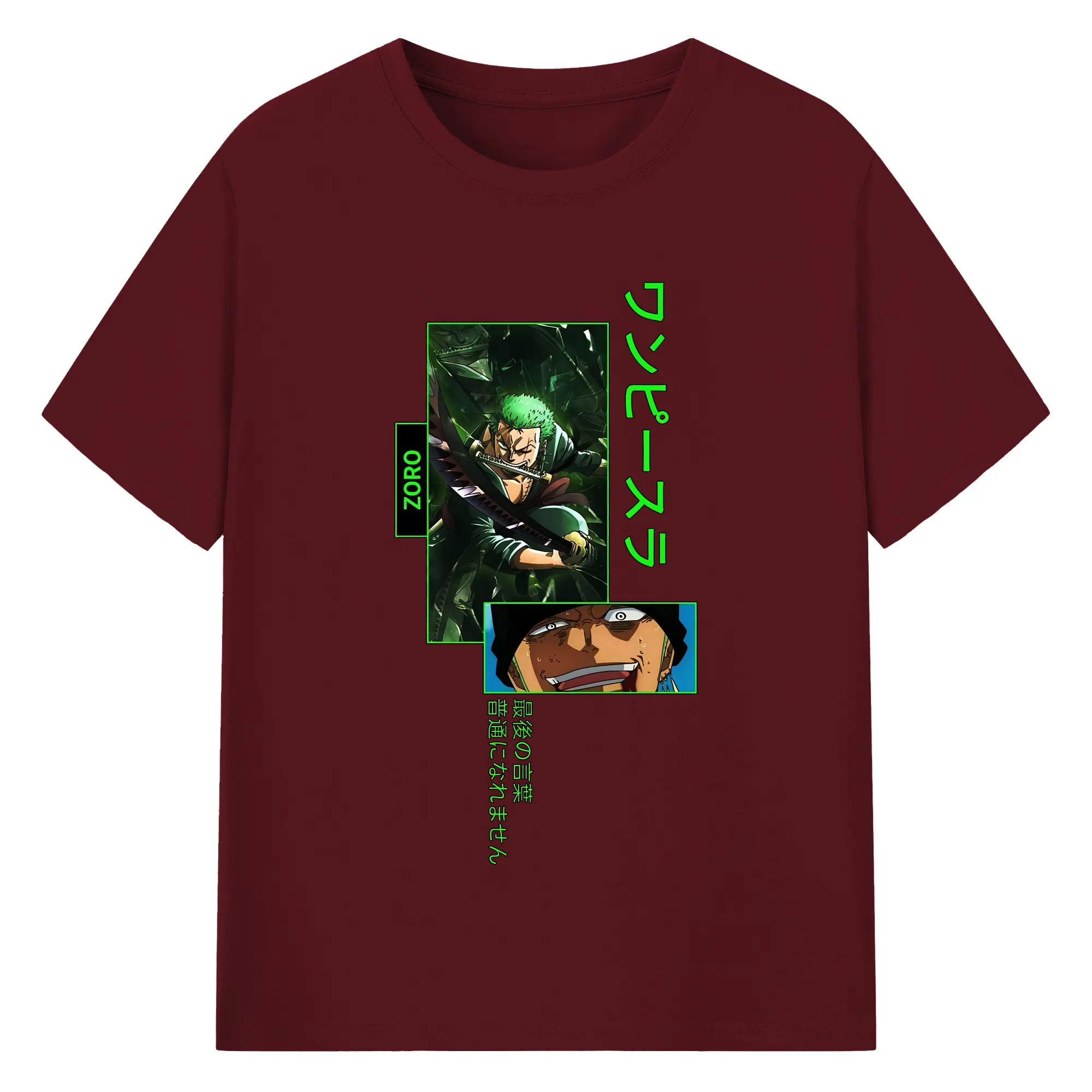 ワンピース グッズ ロロノア・ゾロ - 綿100% ヴィンテージ風 半袖Tシャツ ・ フロントプリント ・ 柔らか肌触り ・ 通気性 快適 ・ スポーツ カジュアル 外出用
