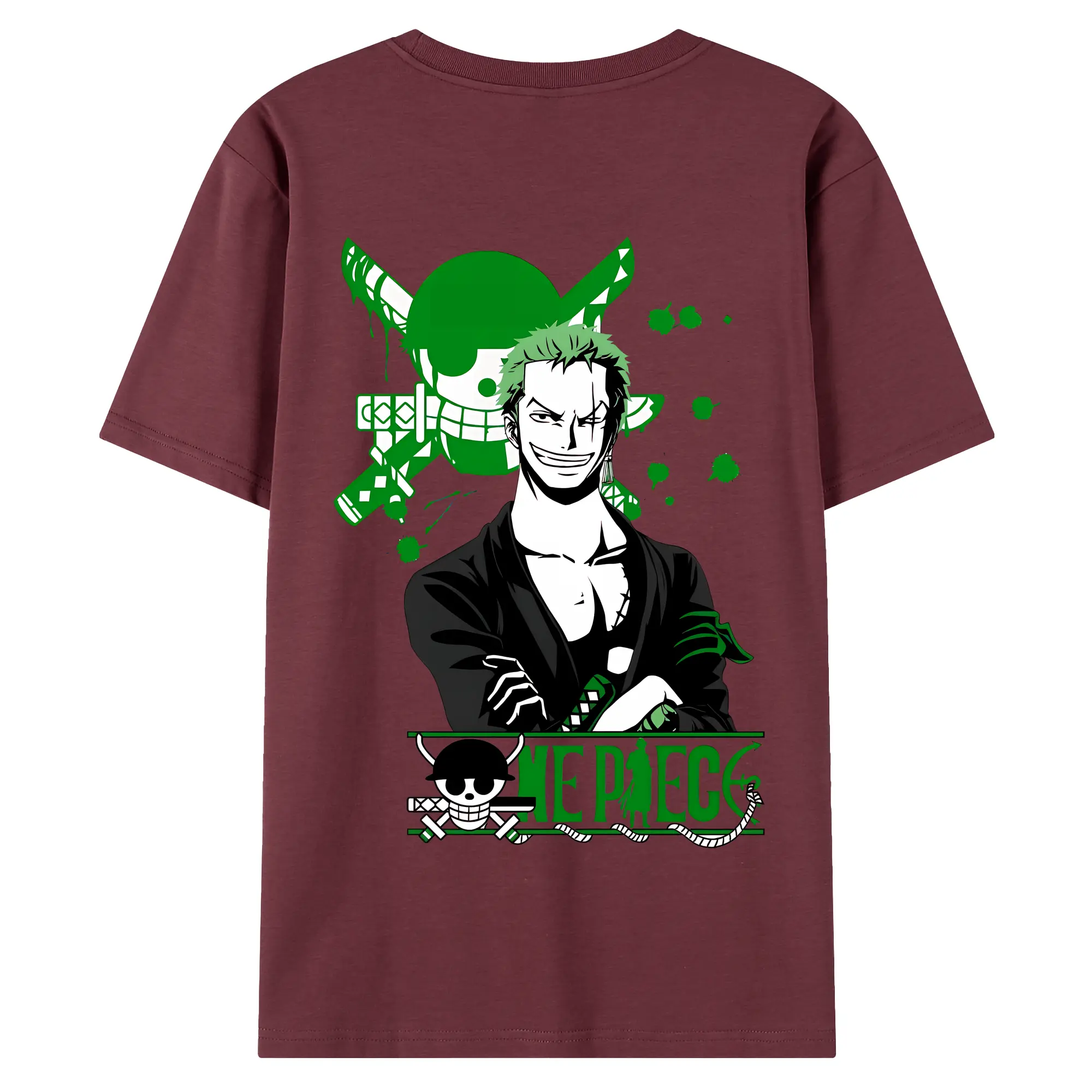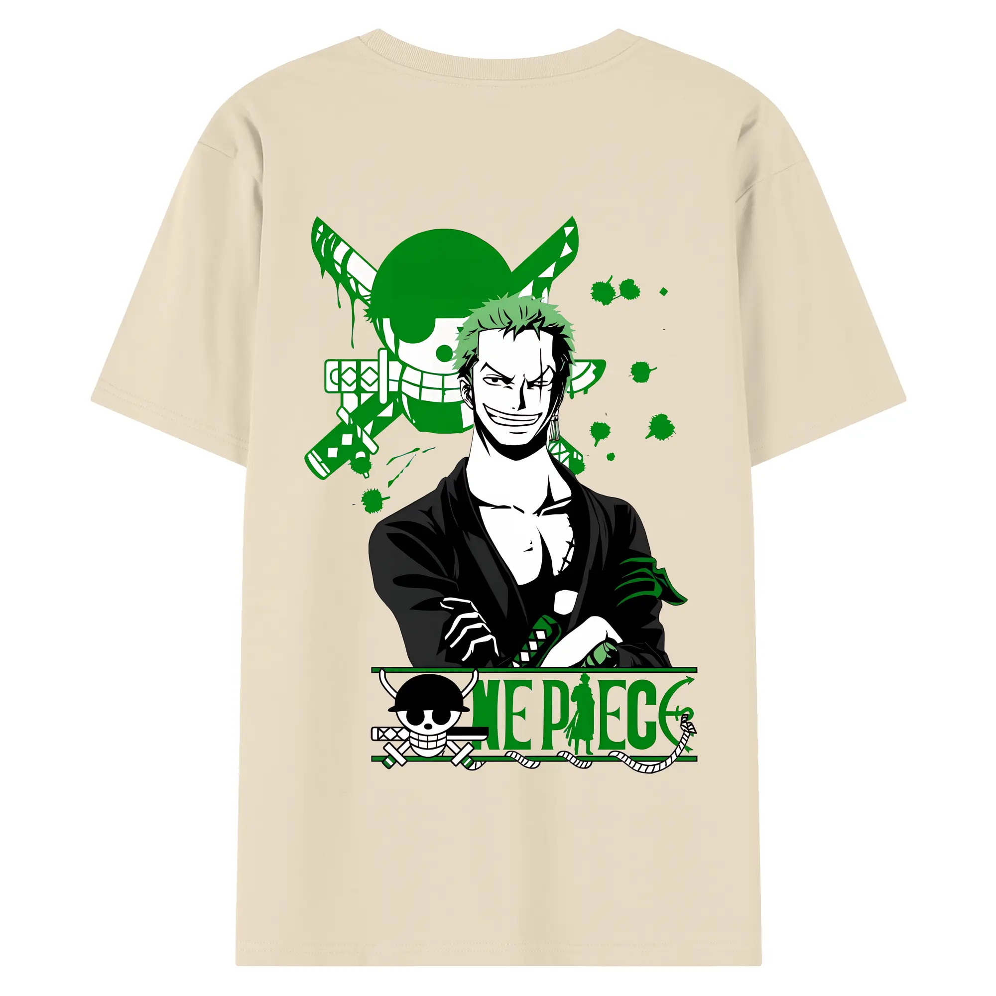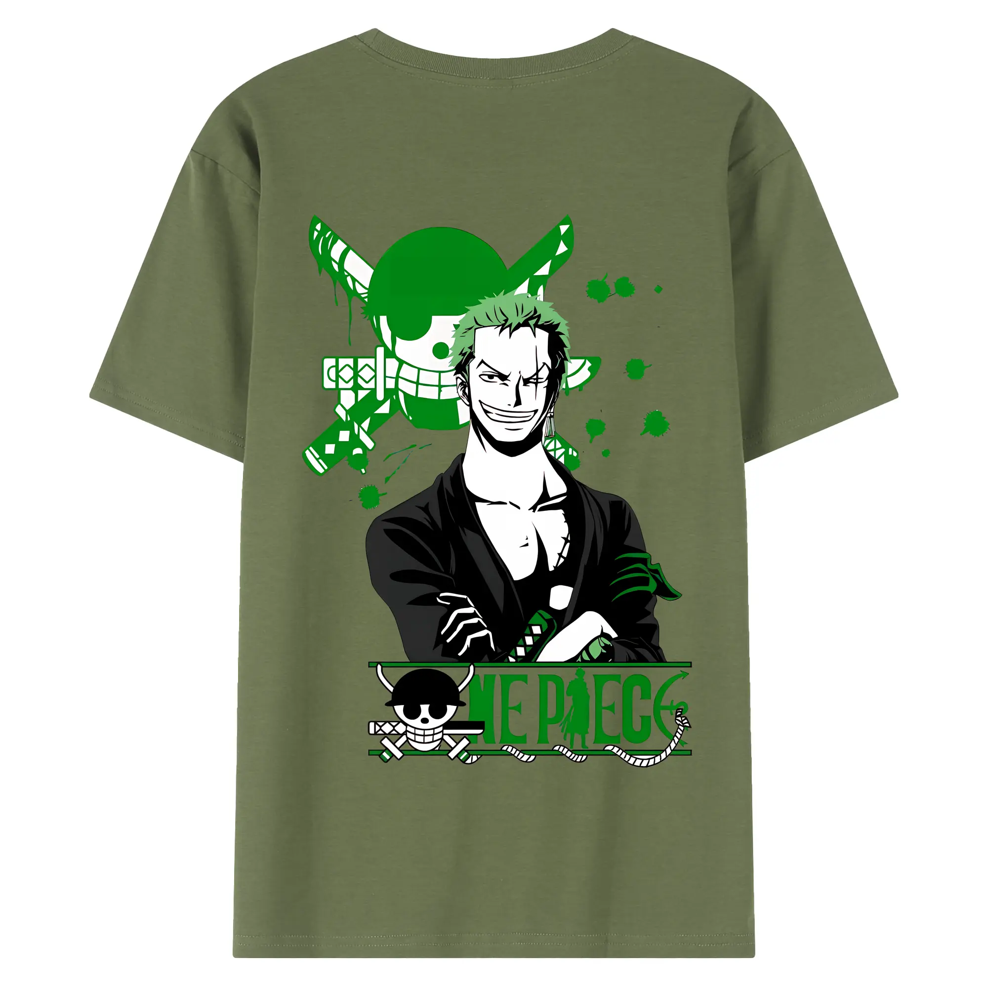 ワンピース グッズ ロロノア・ゾロ - 綿100% ヴィンテージ風 半袖Tシャツ ・ 背面プリント ・ 柔らか肌触り ・ 通気性 快適 ・ スポーツ カジュアル 外出用