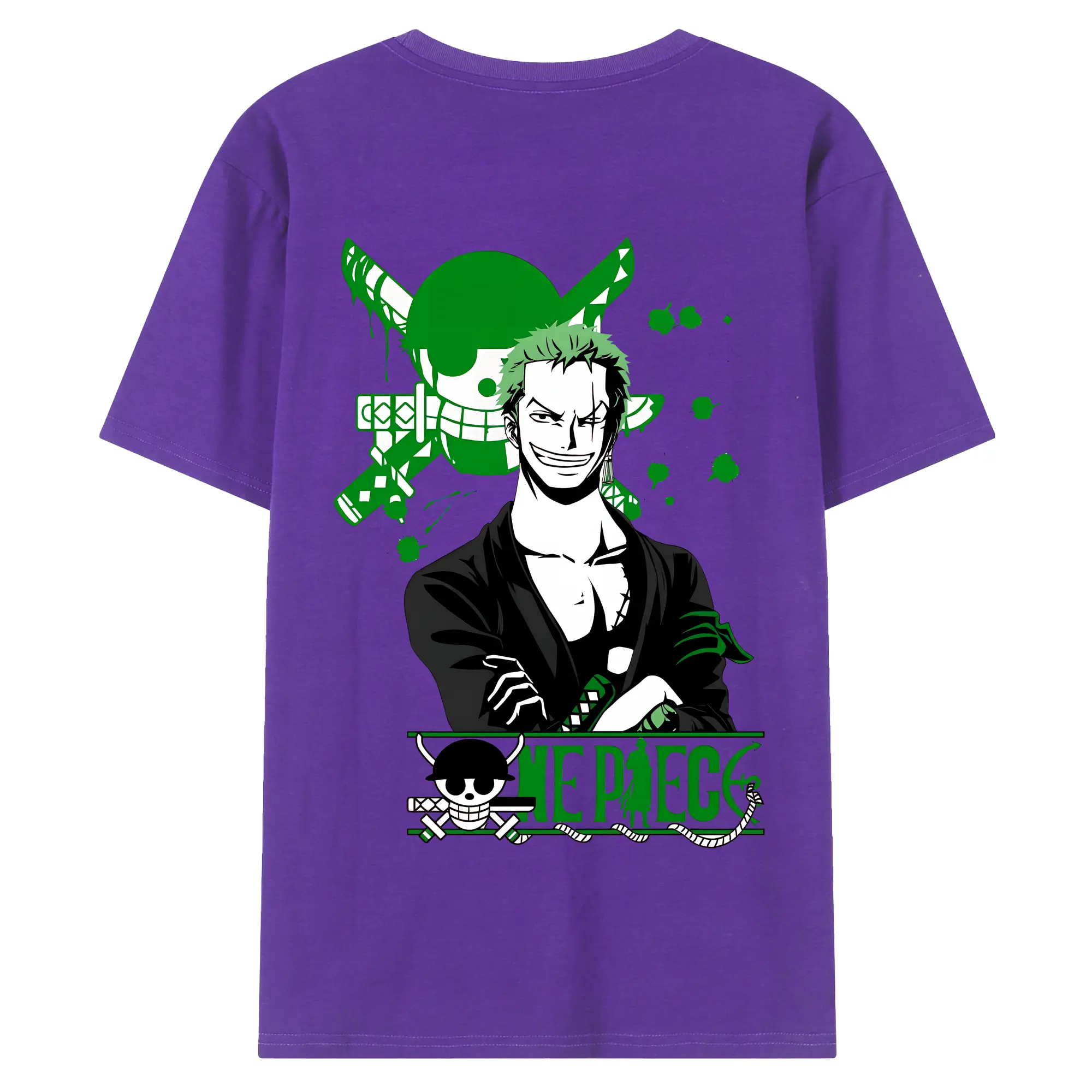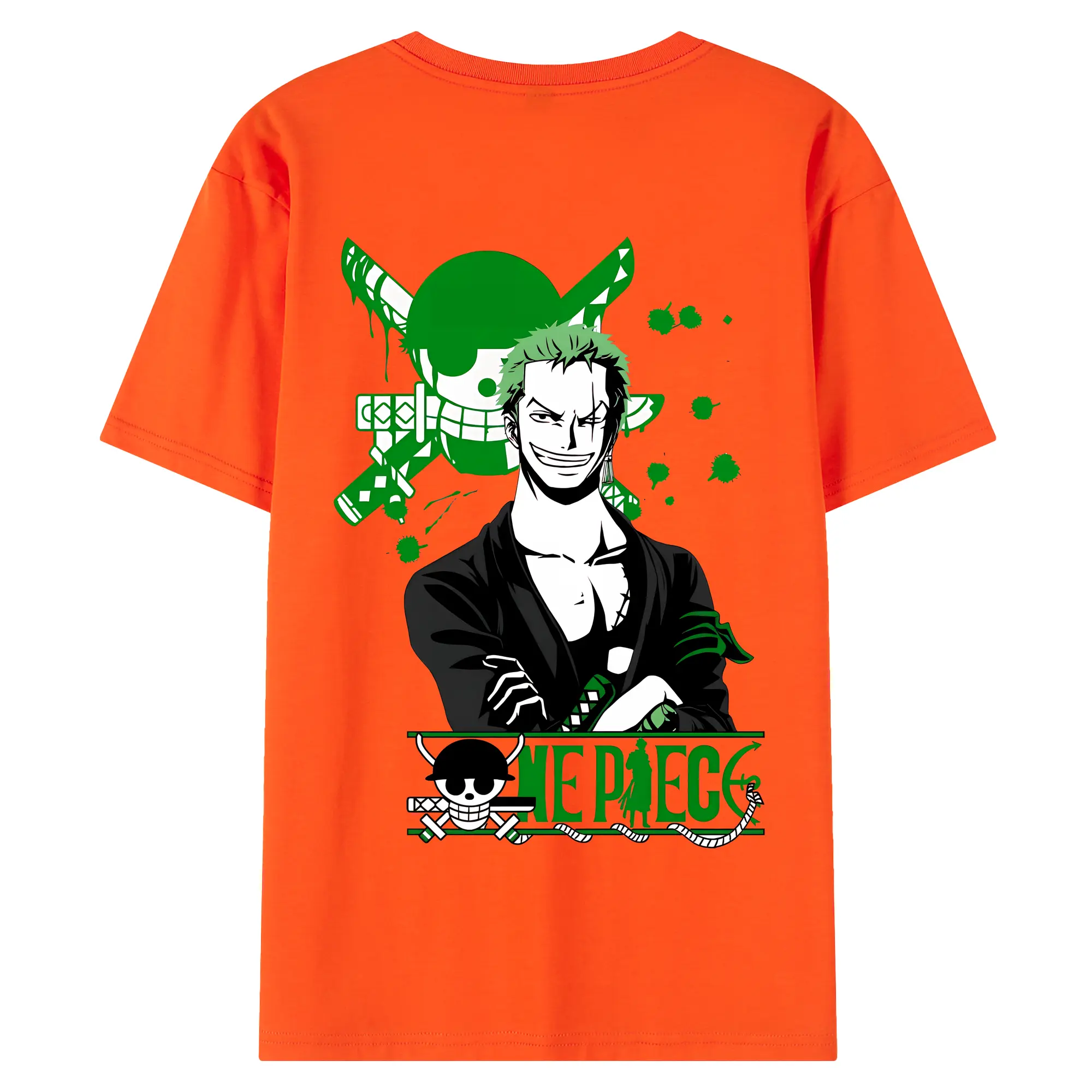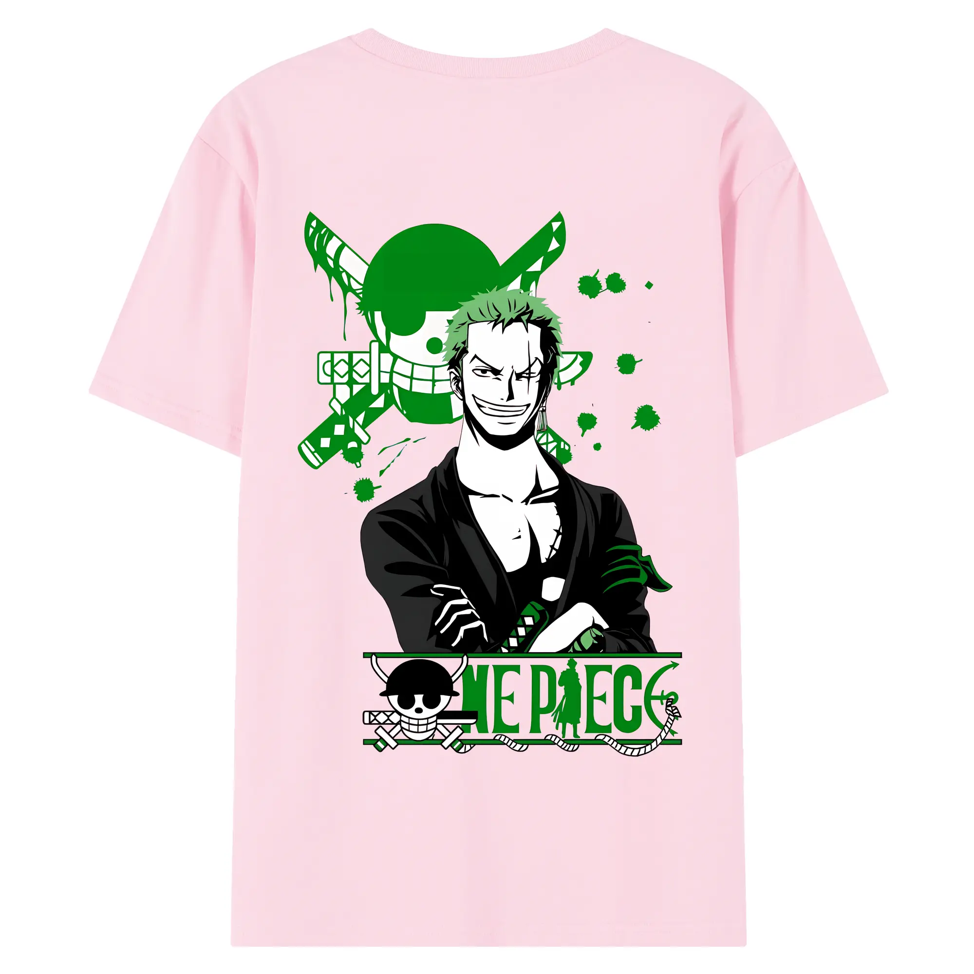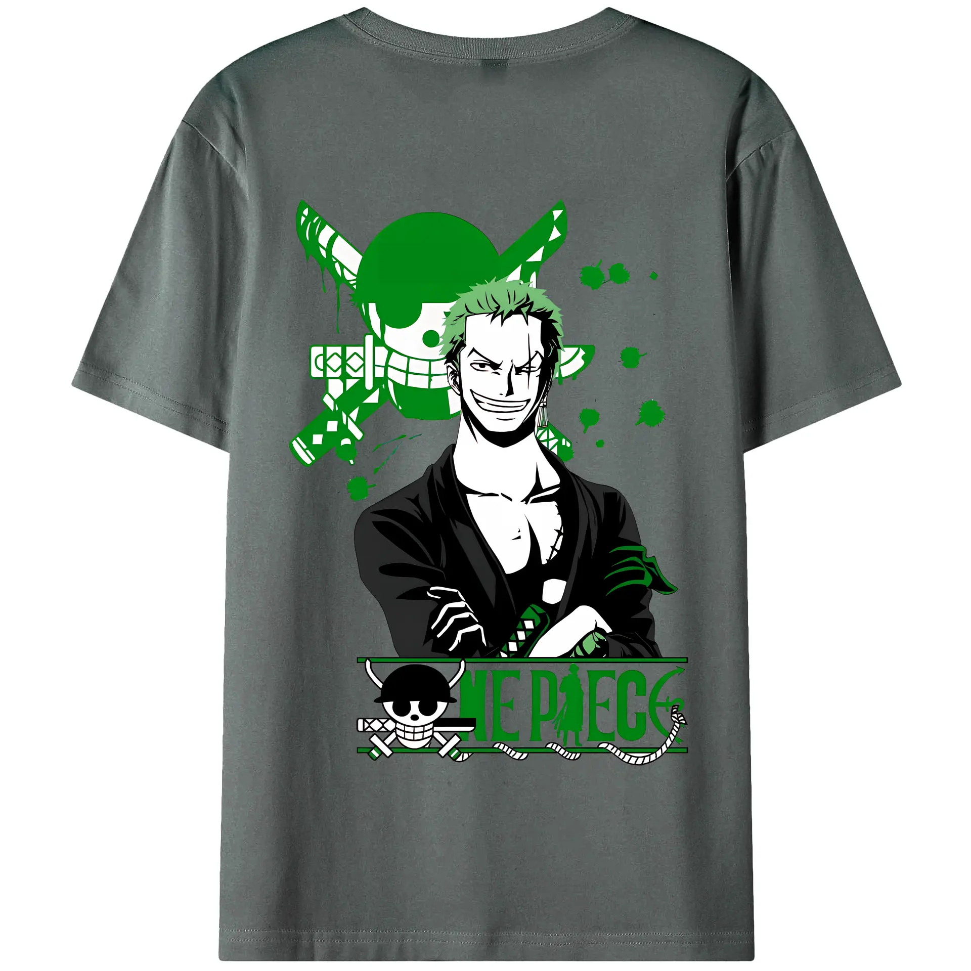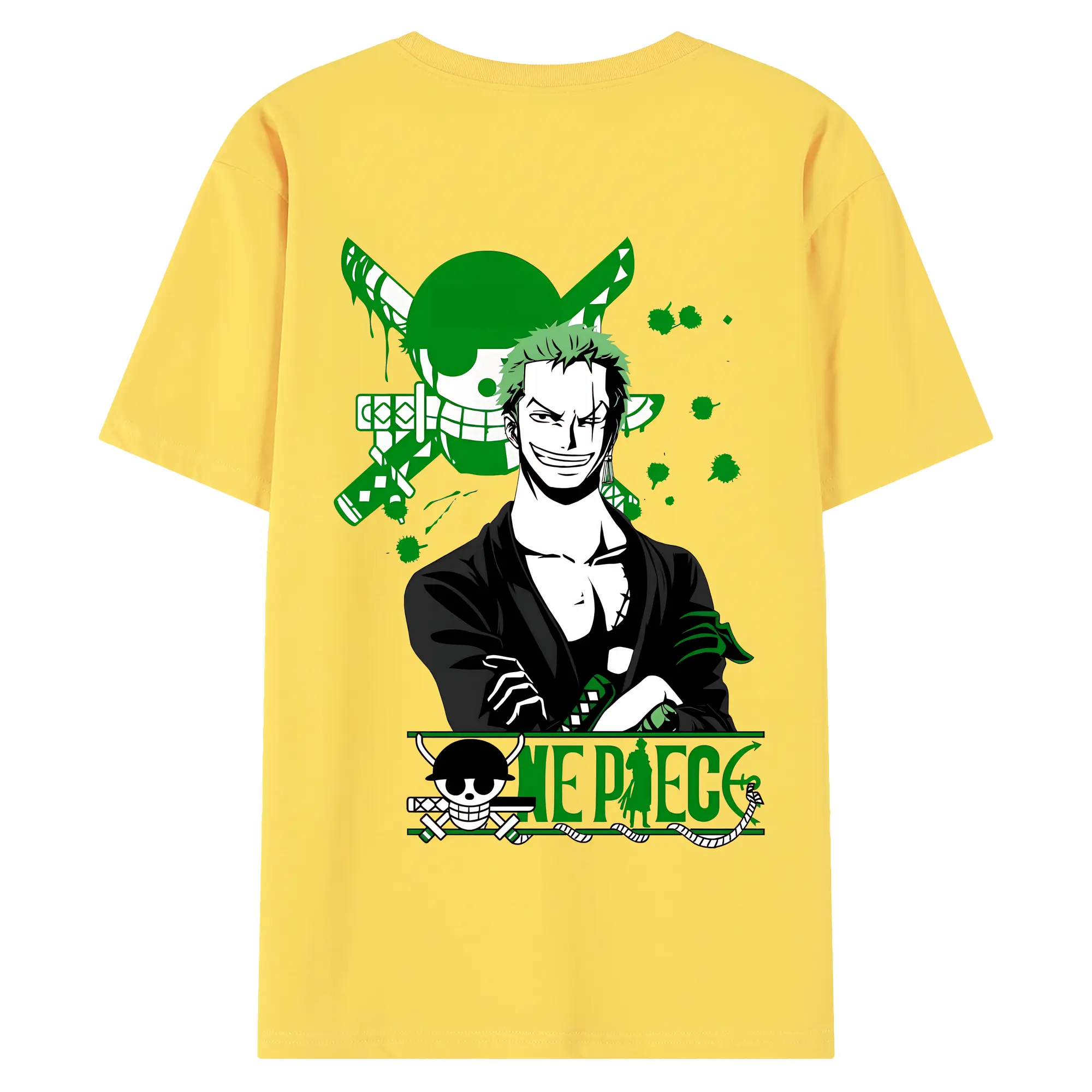 ワンピース グッズ ロロノア・ゾロ - 綿100% 半袖Tシャツ ・ フロントプリント ・ 快適 通気性 ・ 日常使い 散歩 スポーツ用