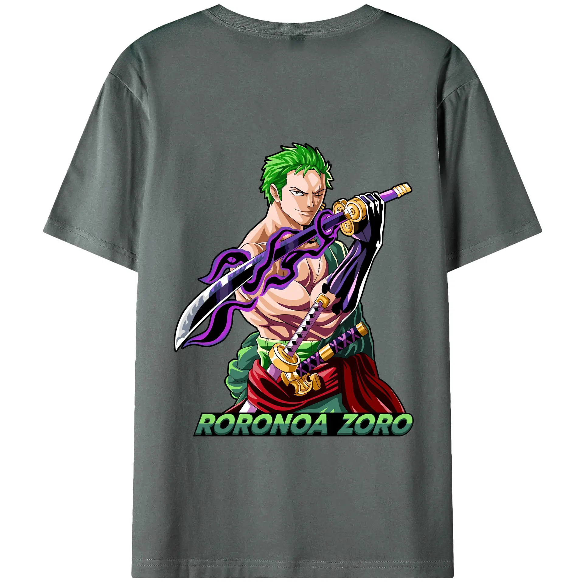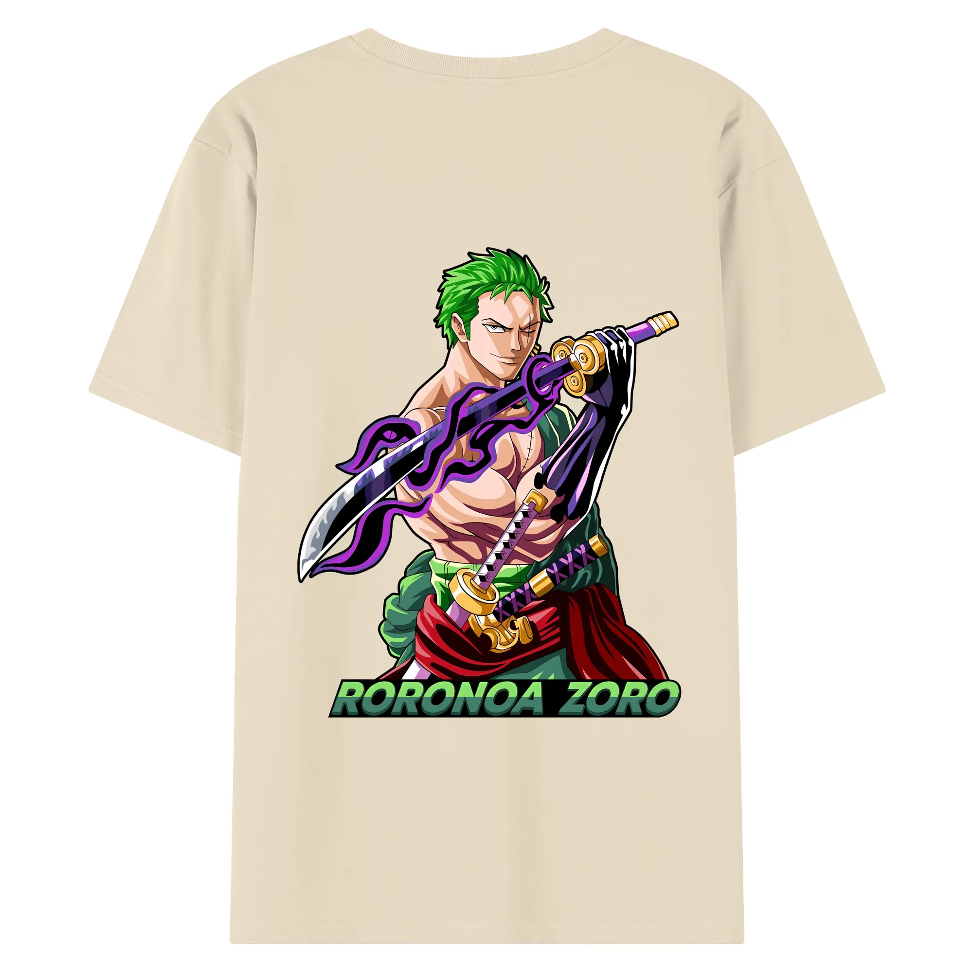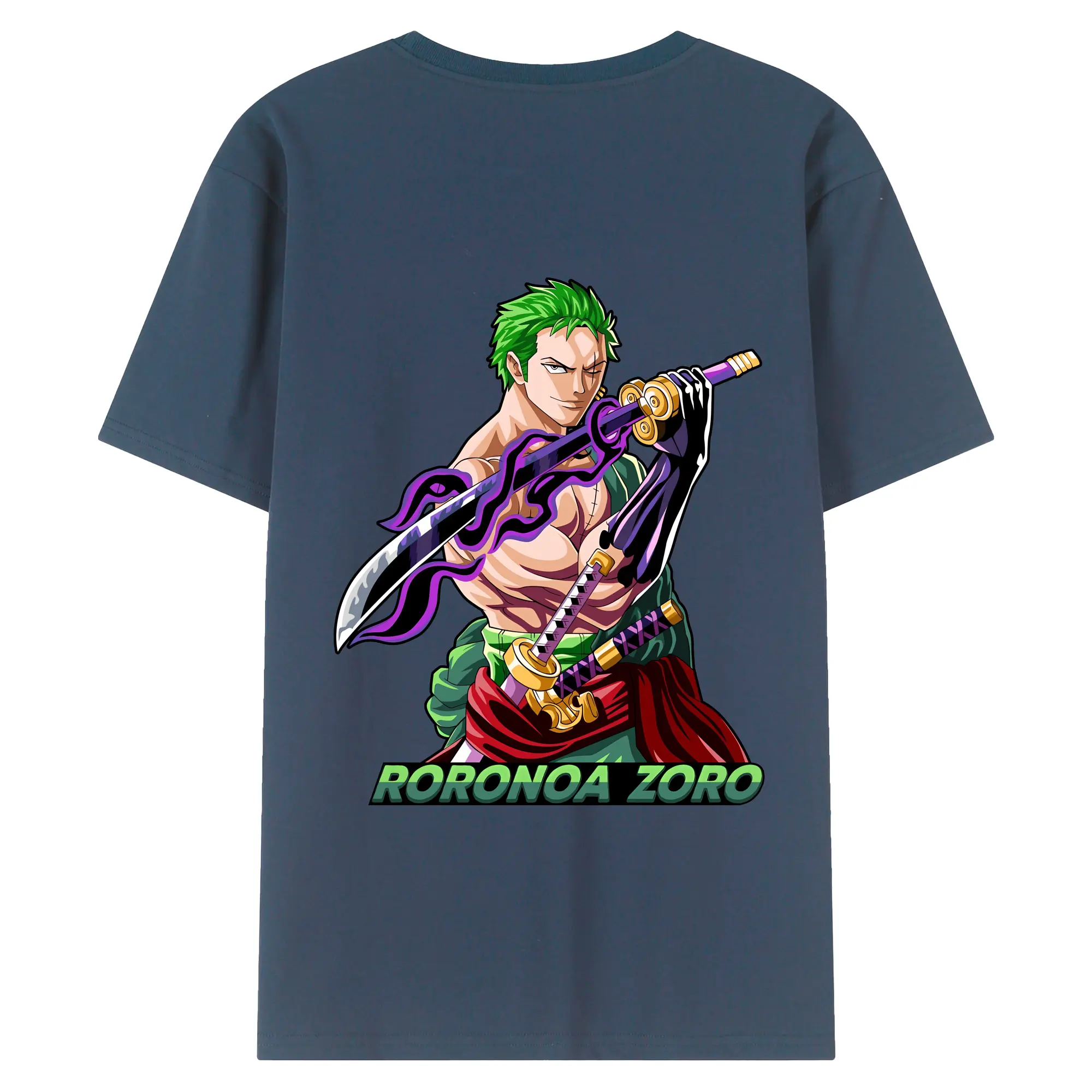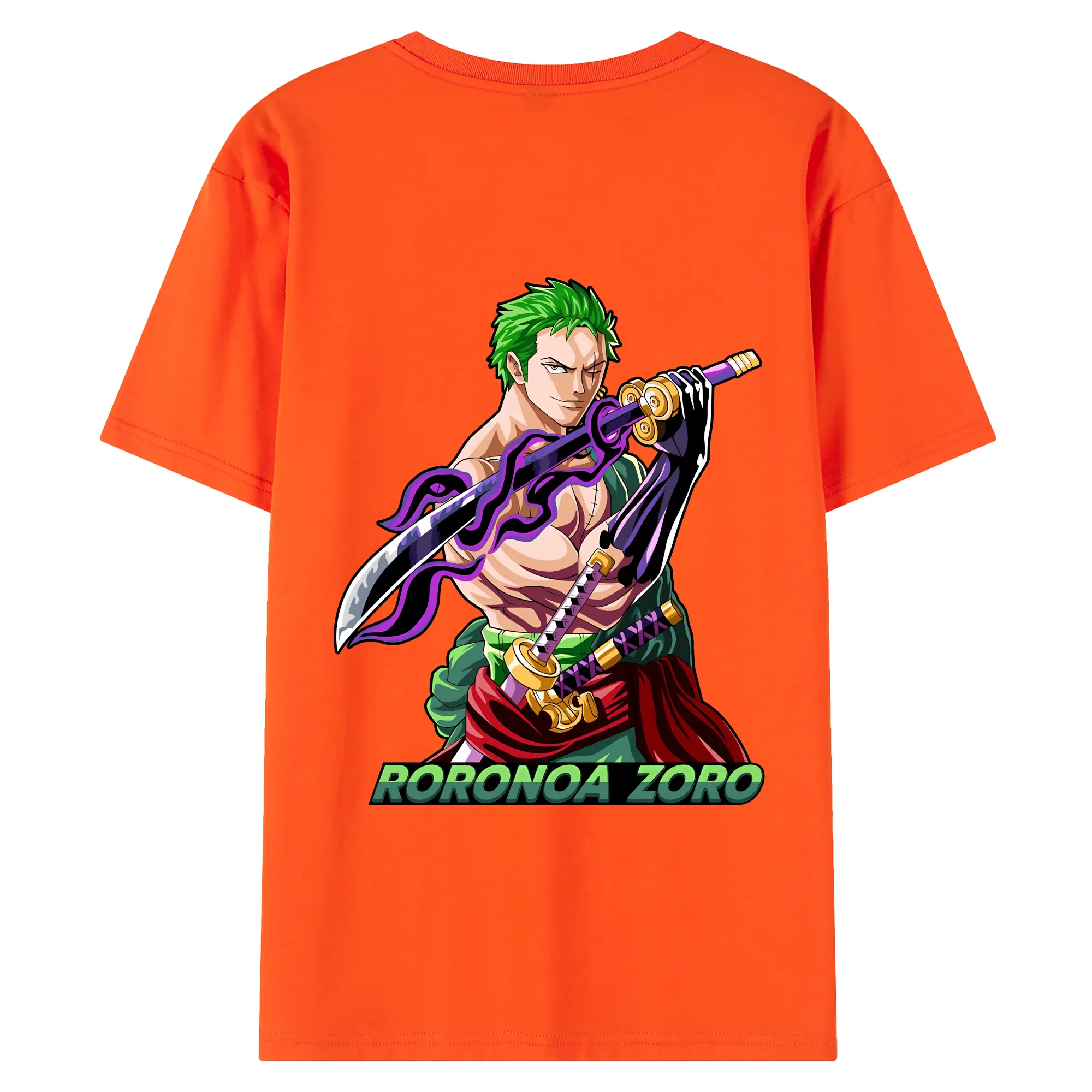 ワンピース グッズ ロロノア・ゾロ - 綿100% ヴィンテージ風 半袖Tシャツ ・ 背面プリント ・ 柔らか肌触り ・ 通気性 快適 ・ スポーツ カジュアル 外出用