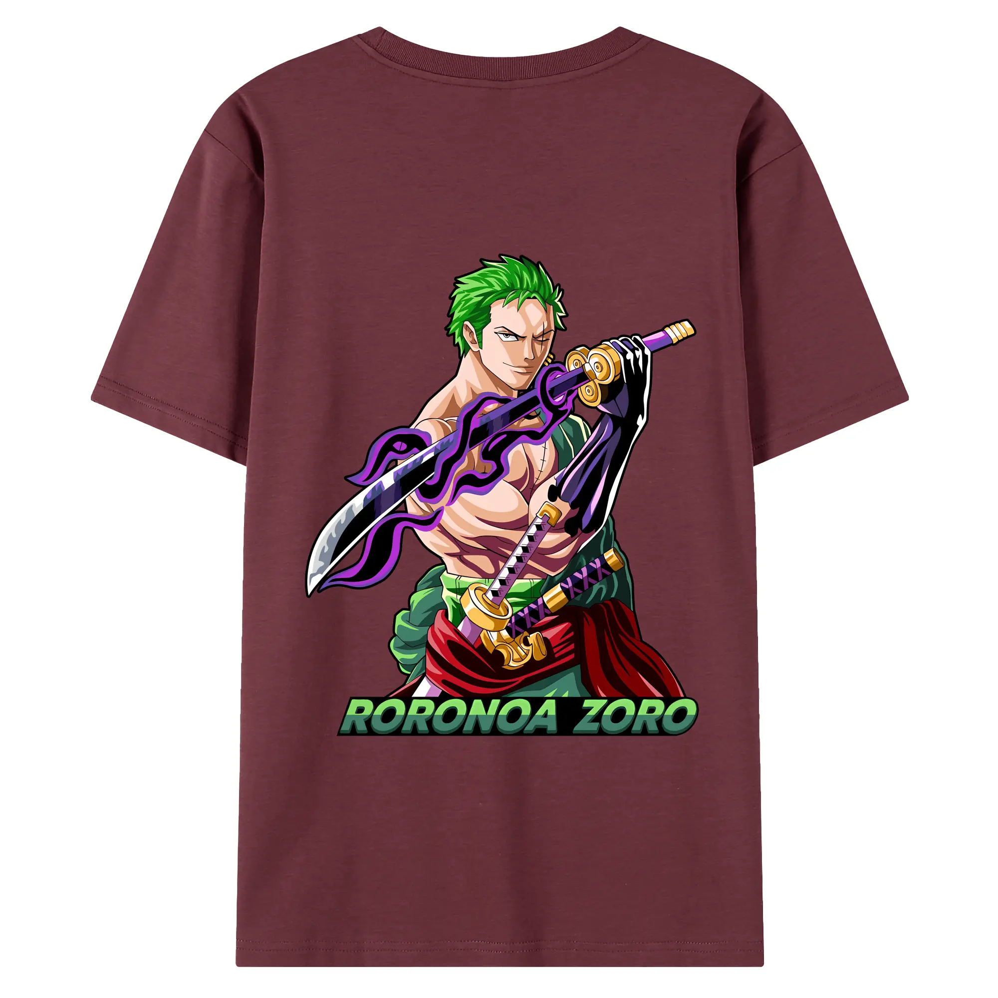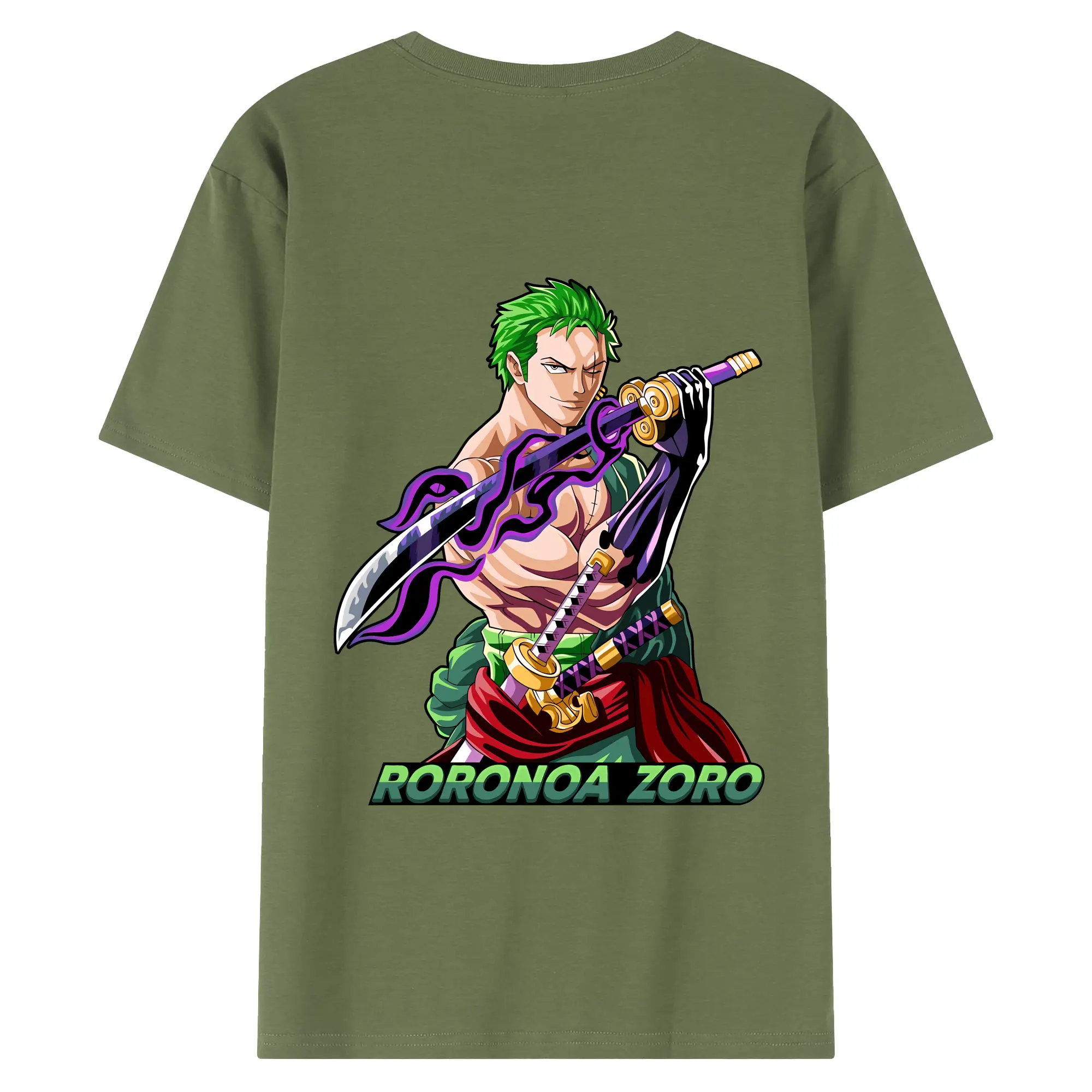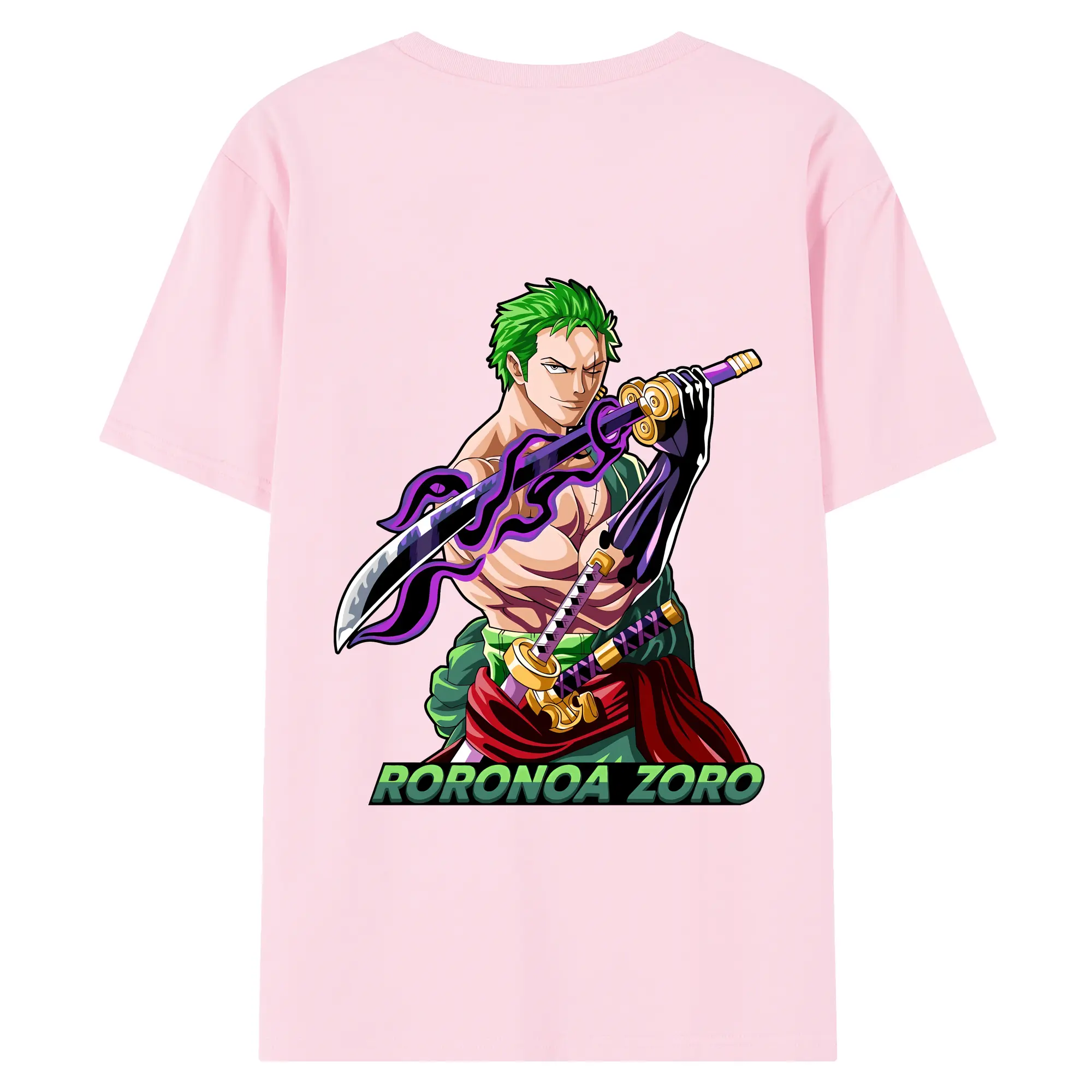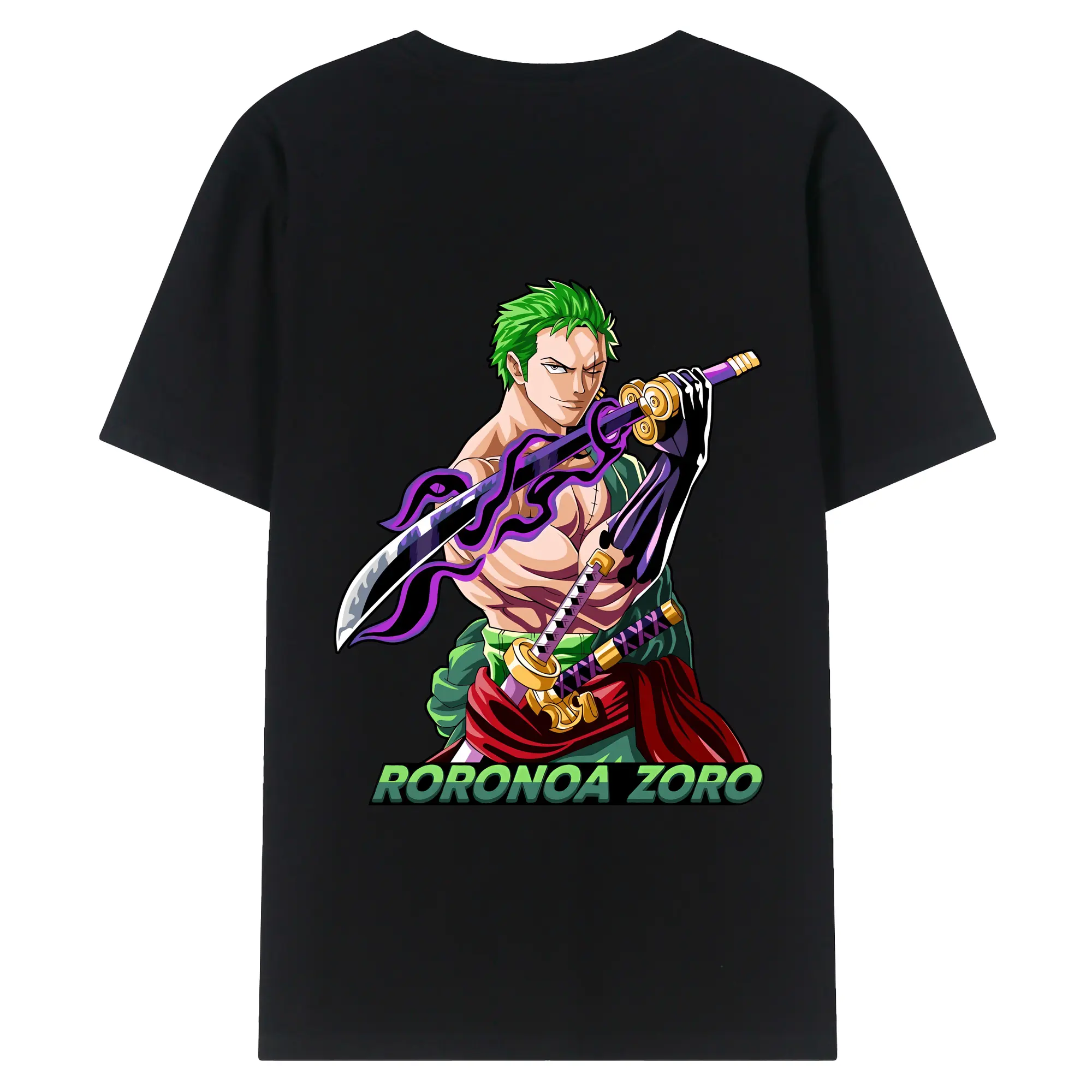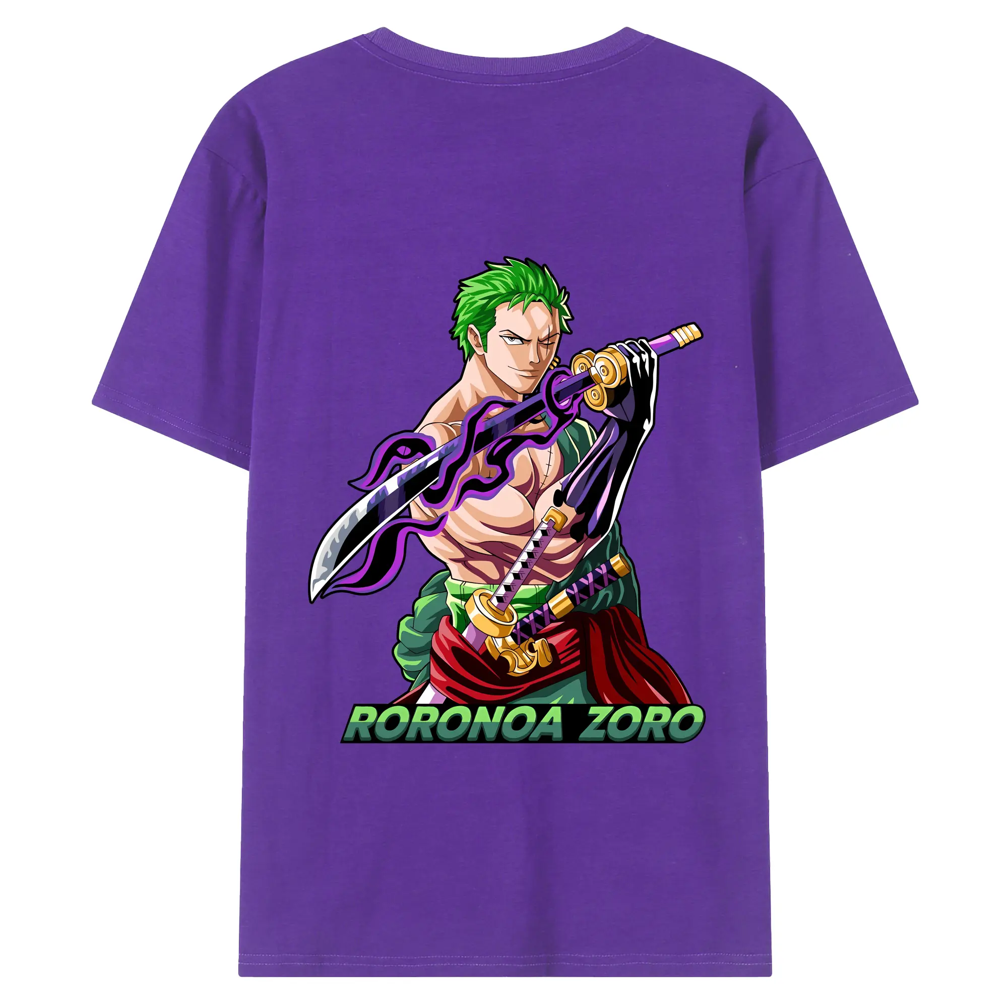 ワンピース グッズ ロロノア・ゾロ - 綿100% ヴィンテージ風 半袖Tシャツ ・ 背面プリント ・ 柔らか肌触り ・ 通気性 快適 ・ スポーツ カジュアル 外出用