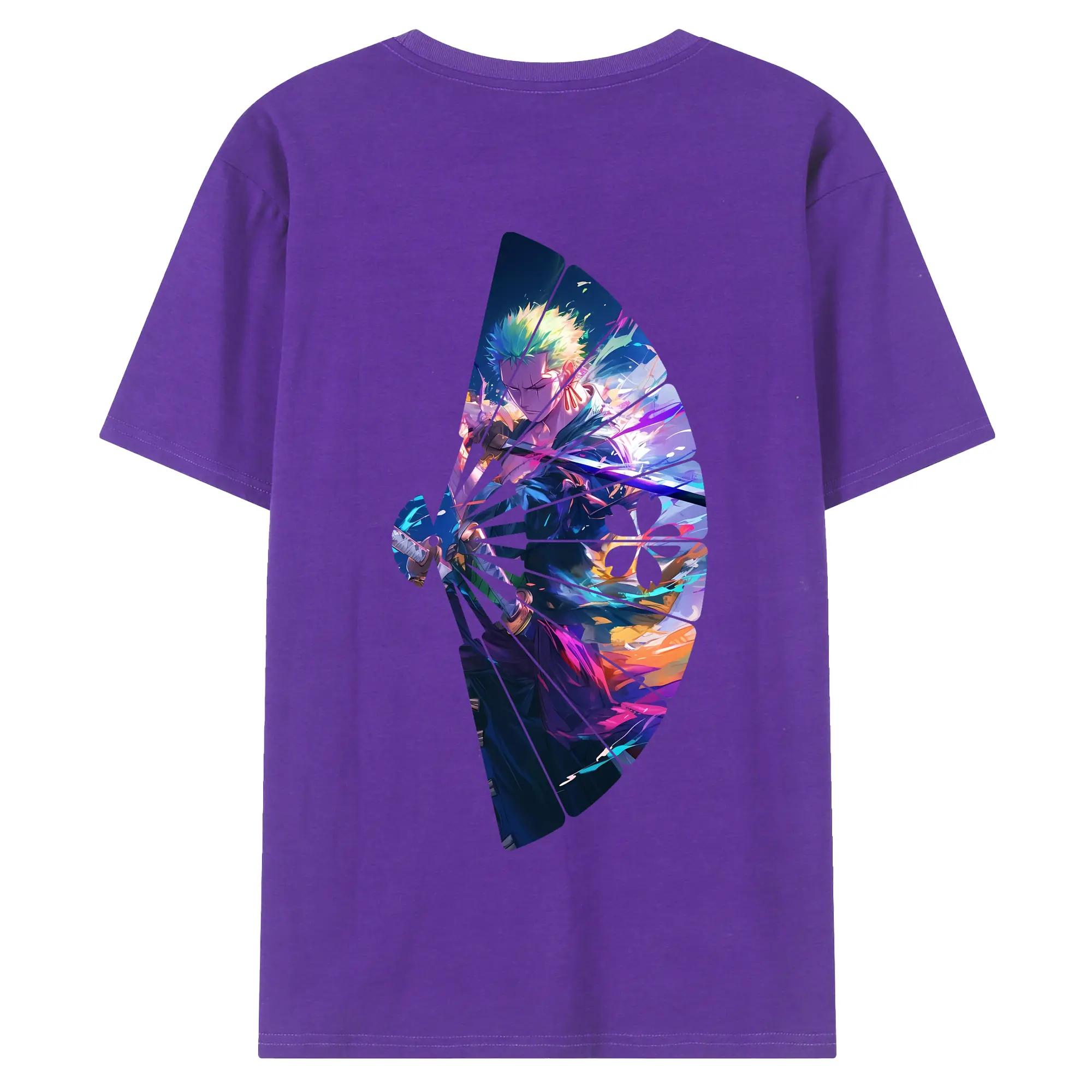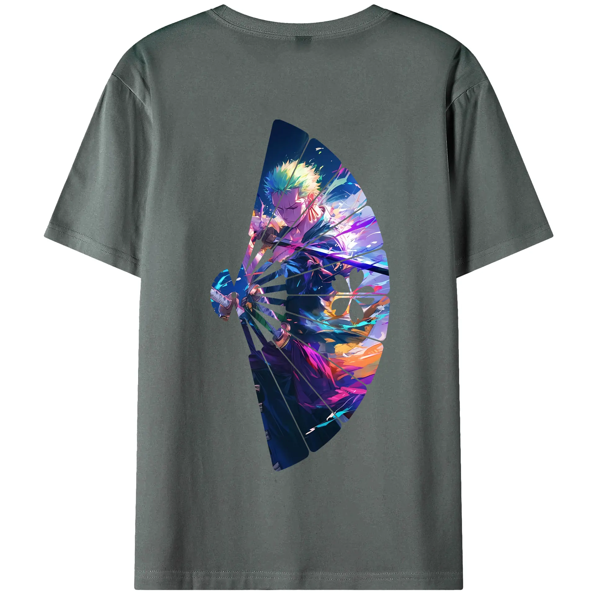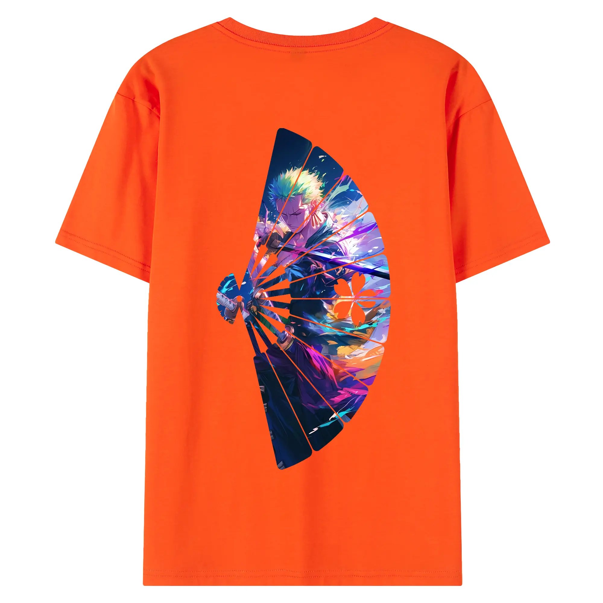 ワンピース グッズ ロロノア・ゾロ - 綿100% ヴィンテージ風 半袖Tシャツ ・ 背面プリント ・ 柔らか肌触り ・ 通気性 快適 ・ スポーツ カジュアル 外出用