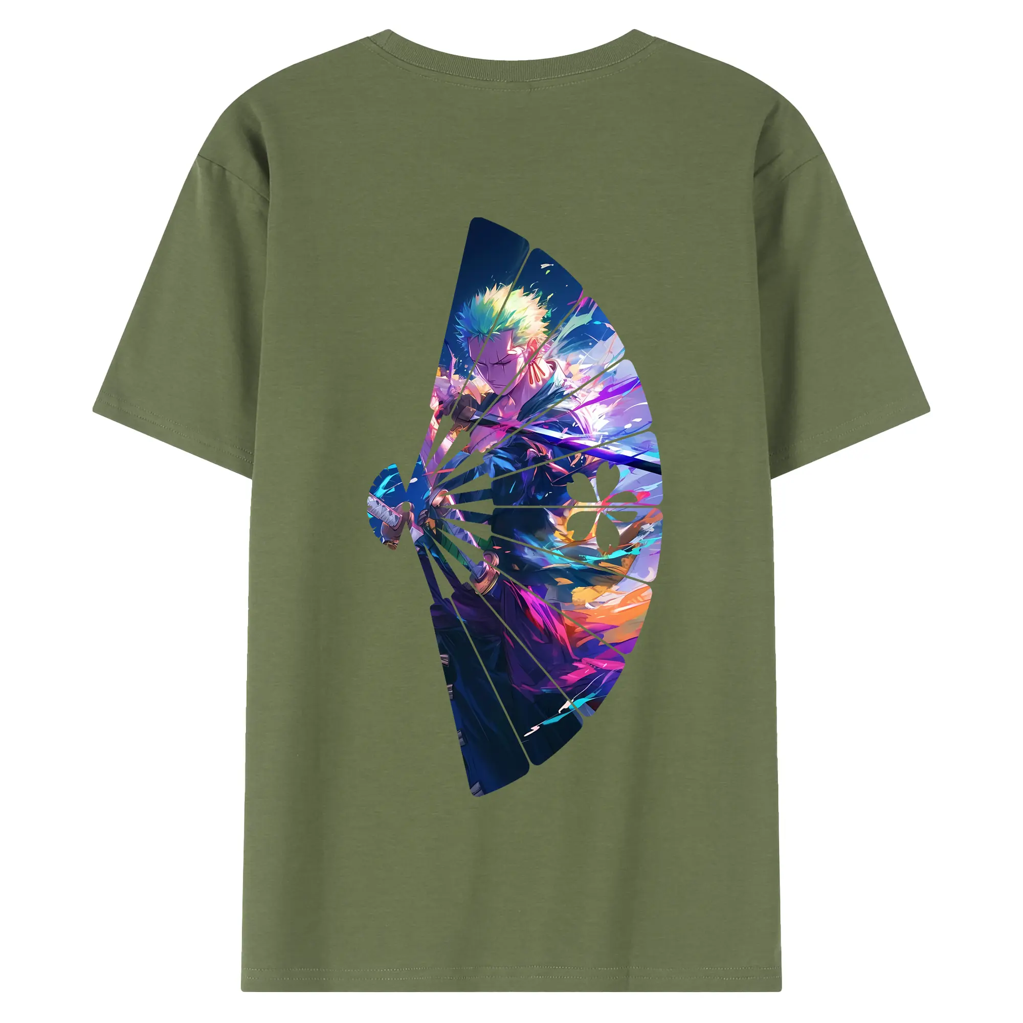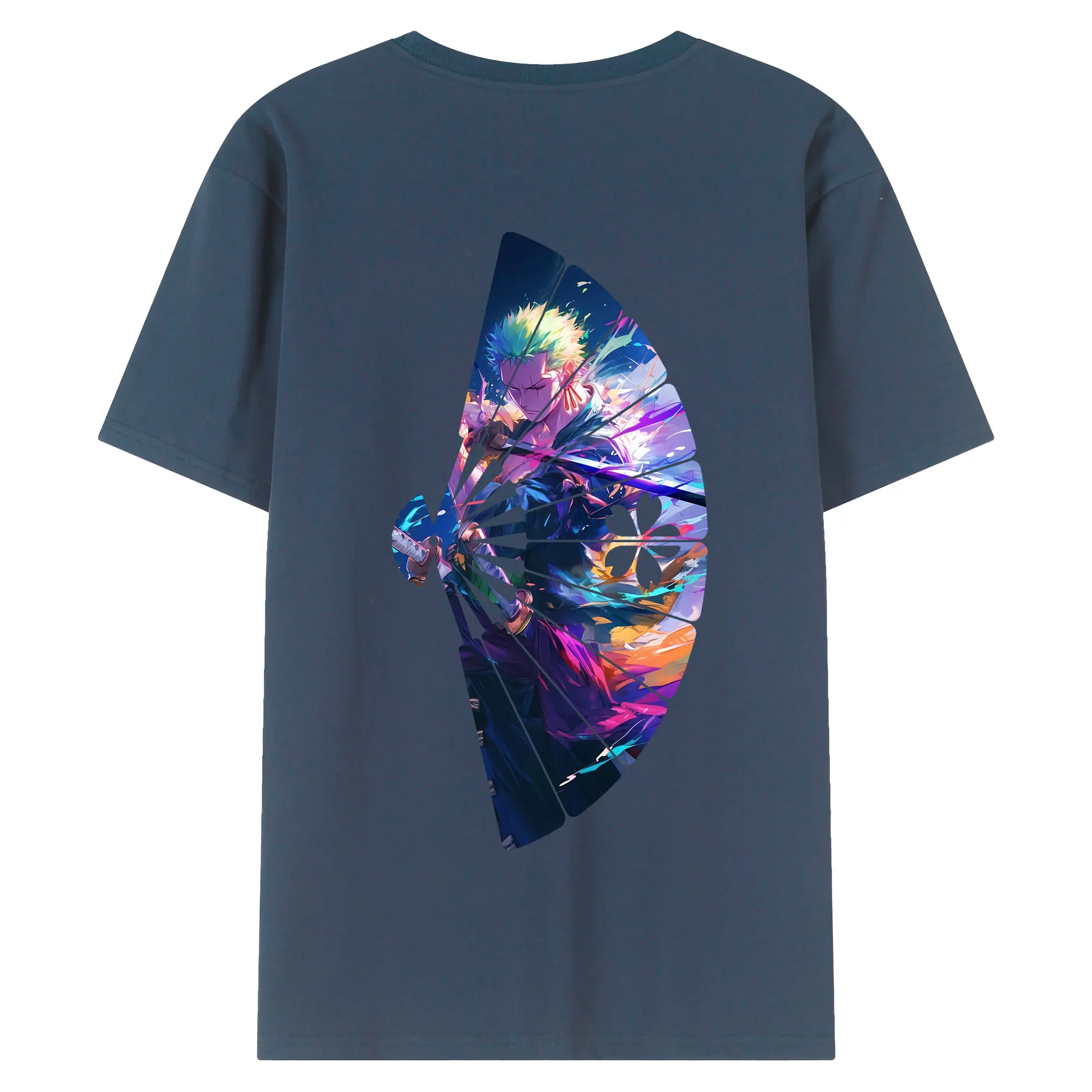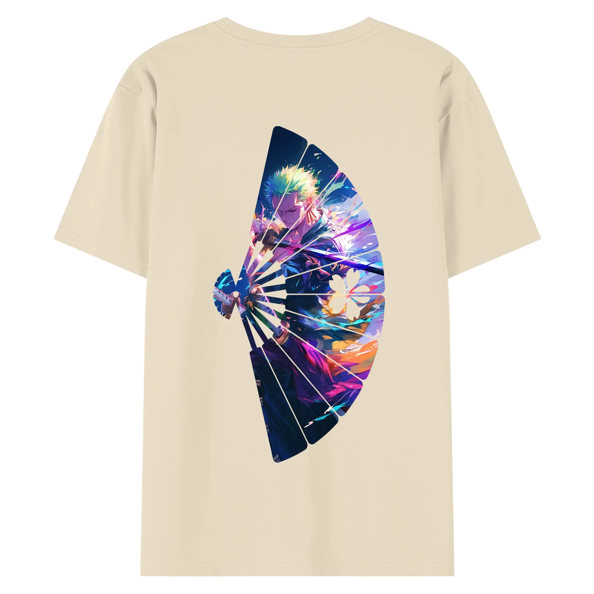 ワンピース グッズ ロロノア・ゾロ - 綿100% ヴィンテージ風 半袖Tシャツ ・ 背面プリント ・ 柔らか肌触り ・ 通気性 快適 ・ スポーツ カジュアル 外出用