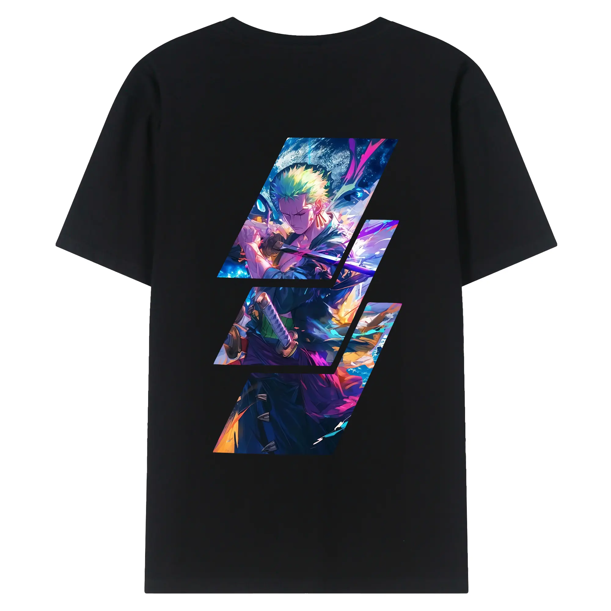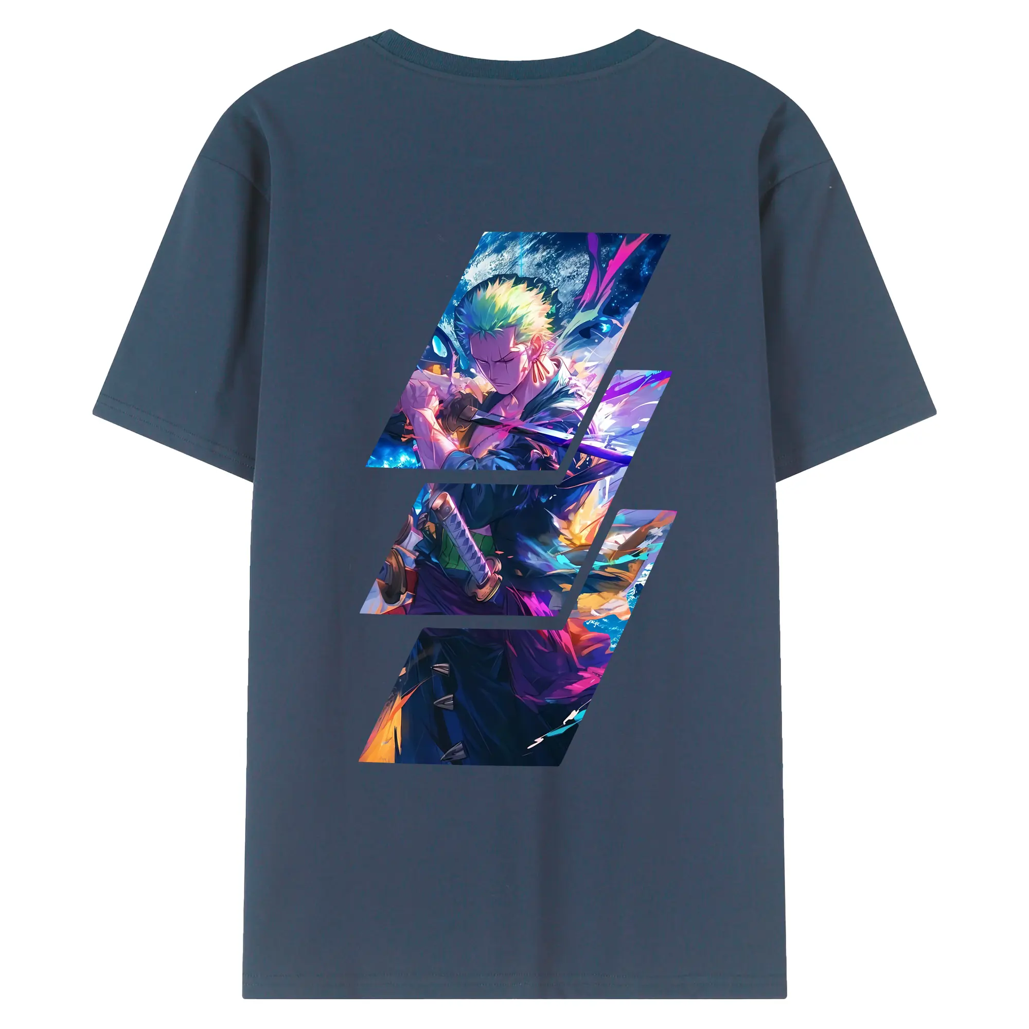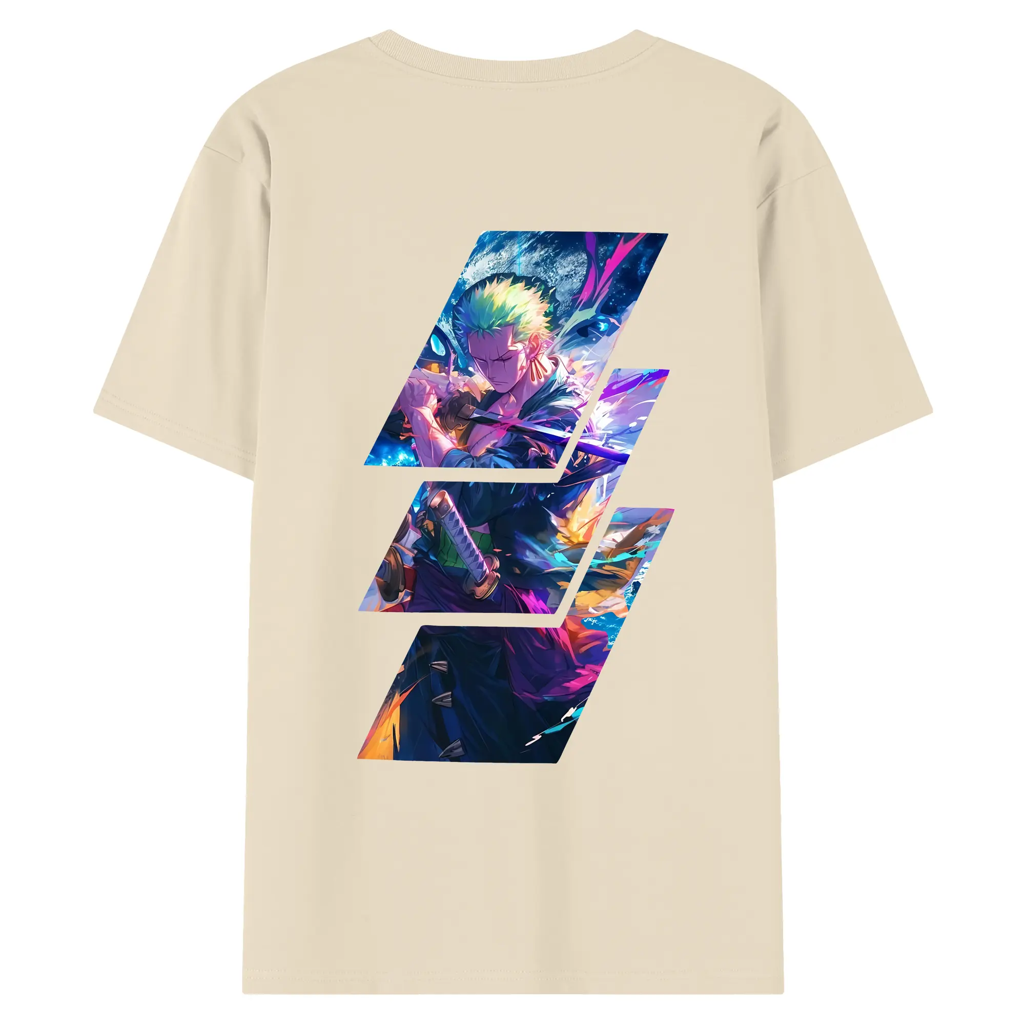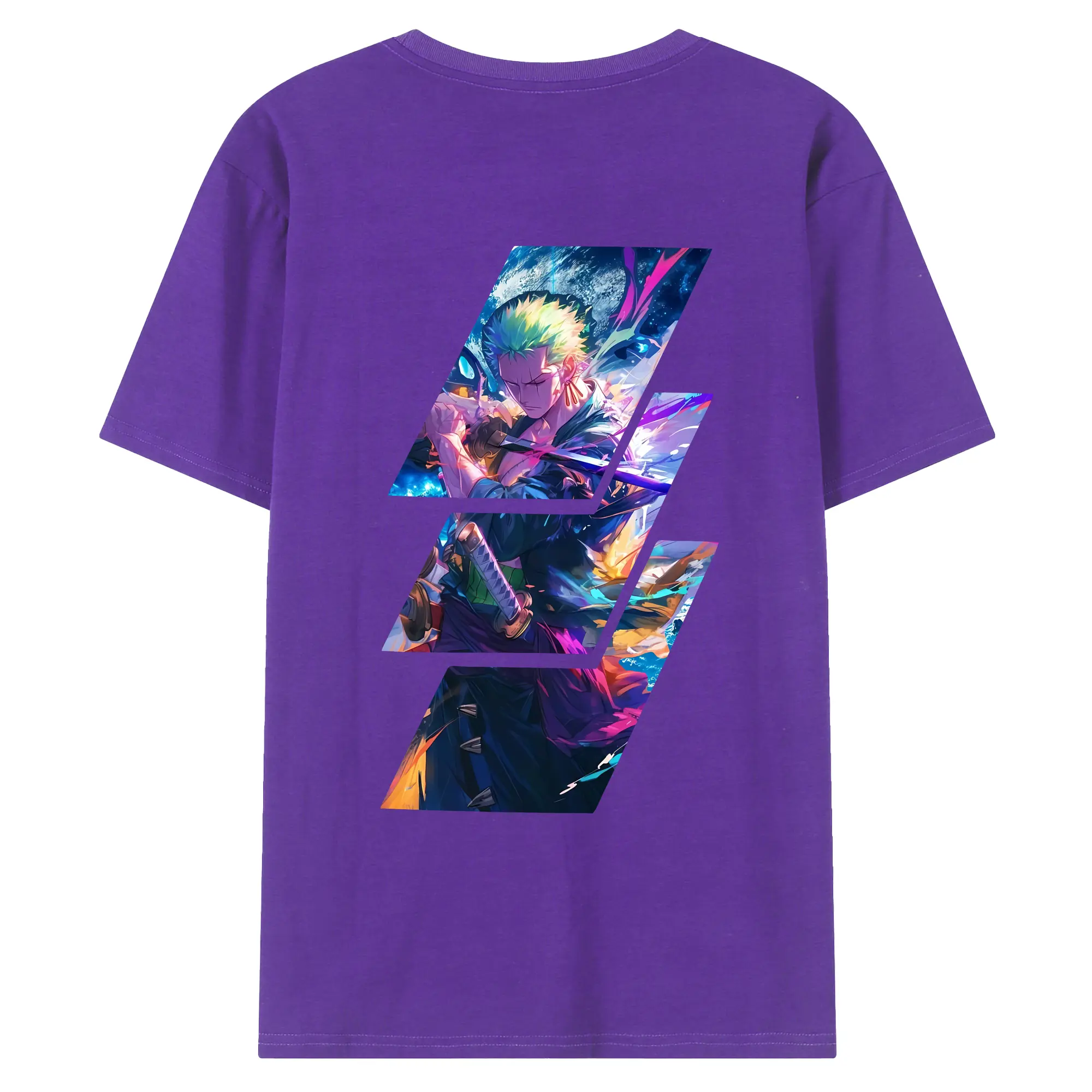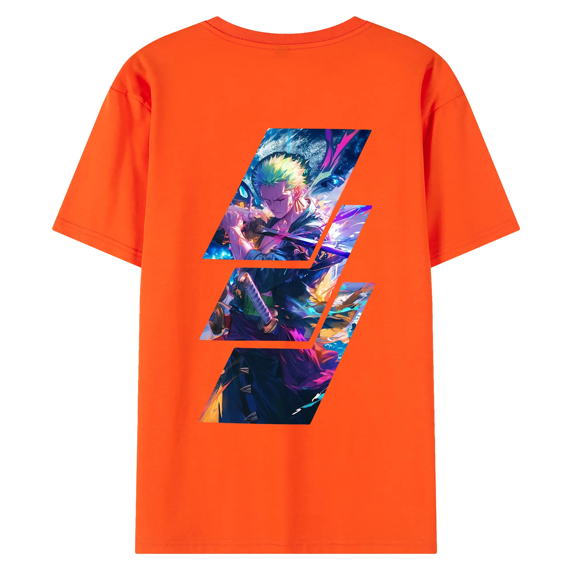ワンピース グッズ ロロノア・ゾロ - 綿100% ヴィンテージ風 半袖Tシャツ ・ 背面プリント ・ 柔らか肌触り ・ 通気性 快適 ・ スポーツ カジュアル 外出用