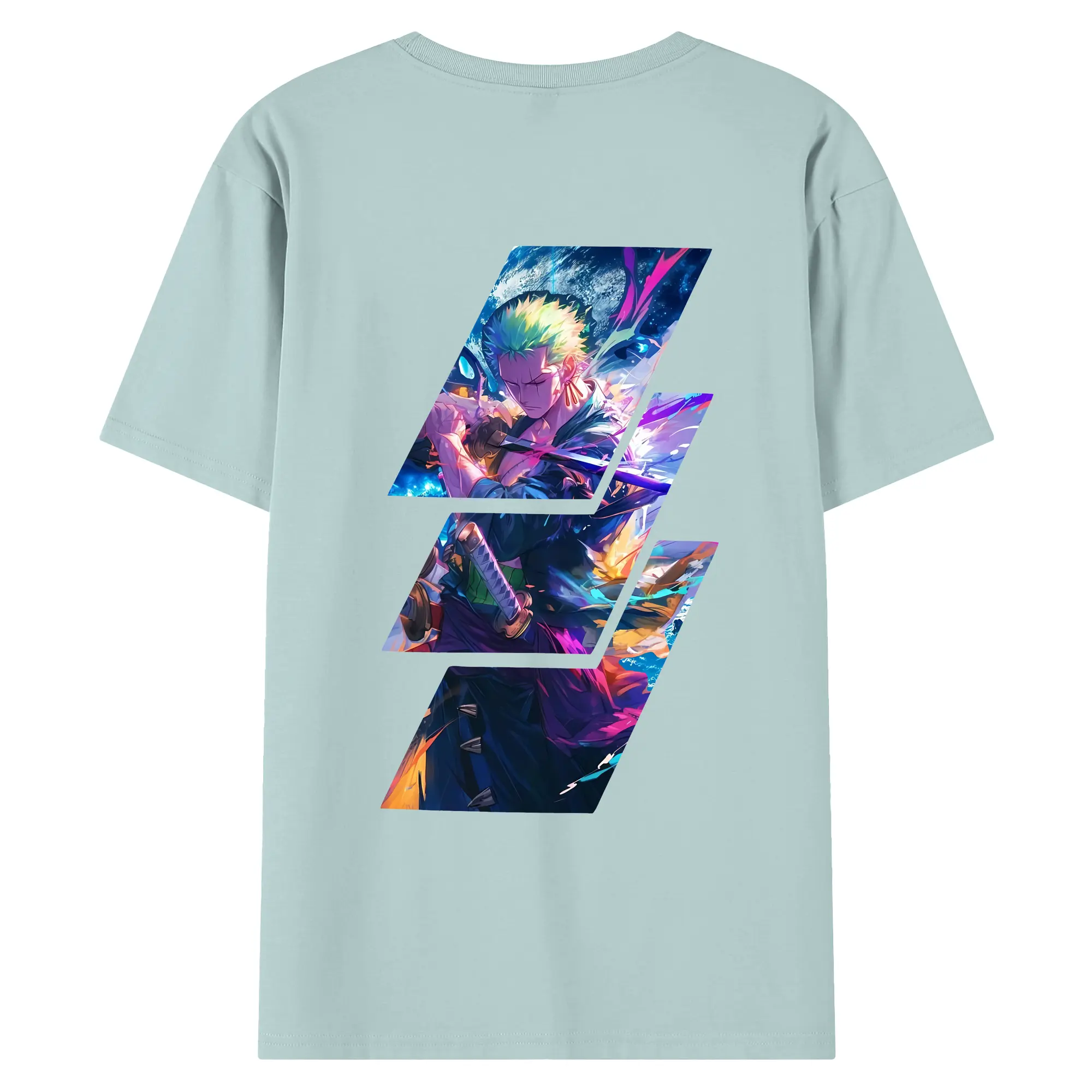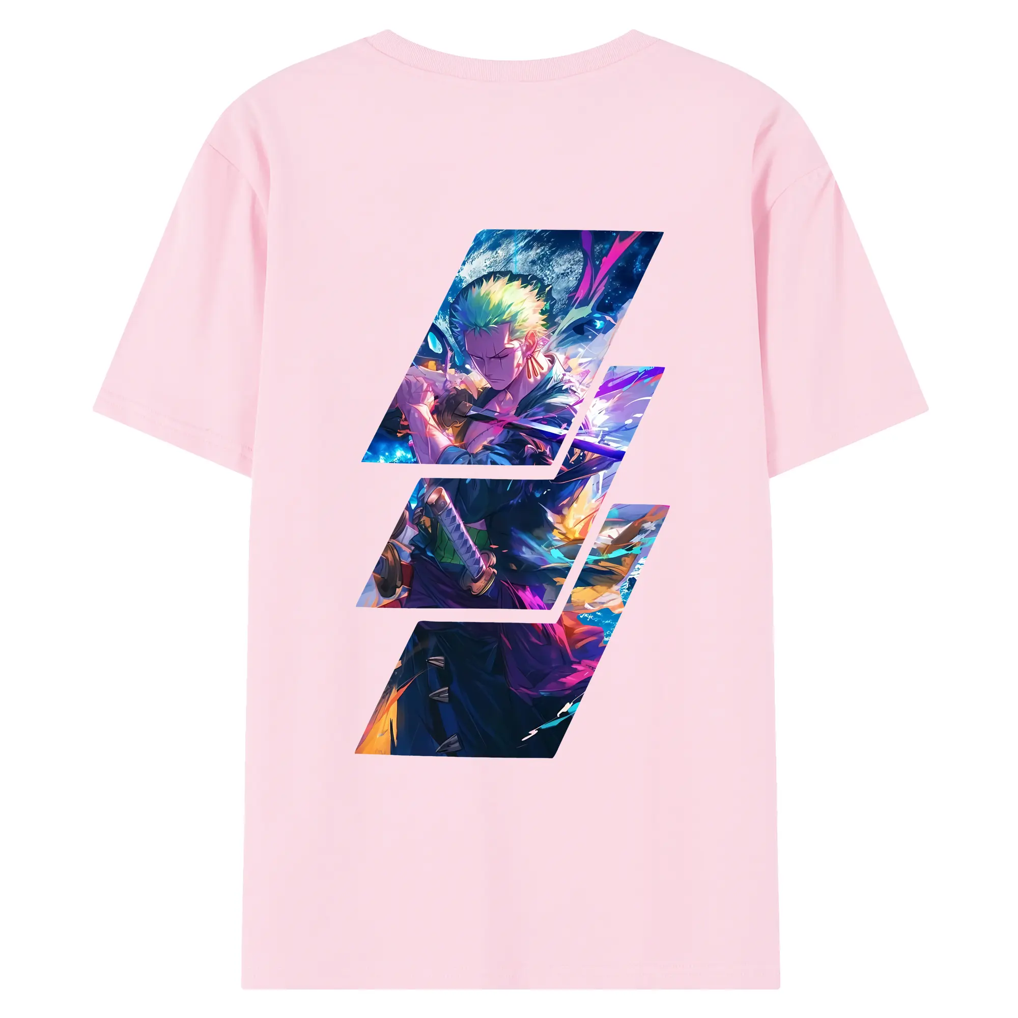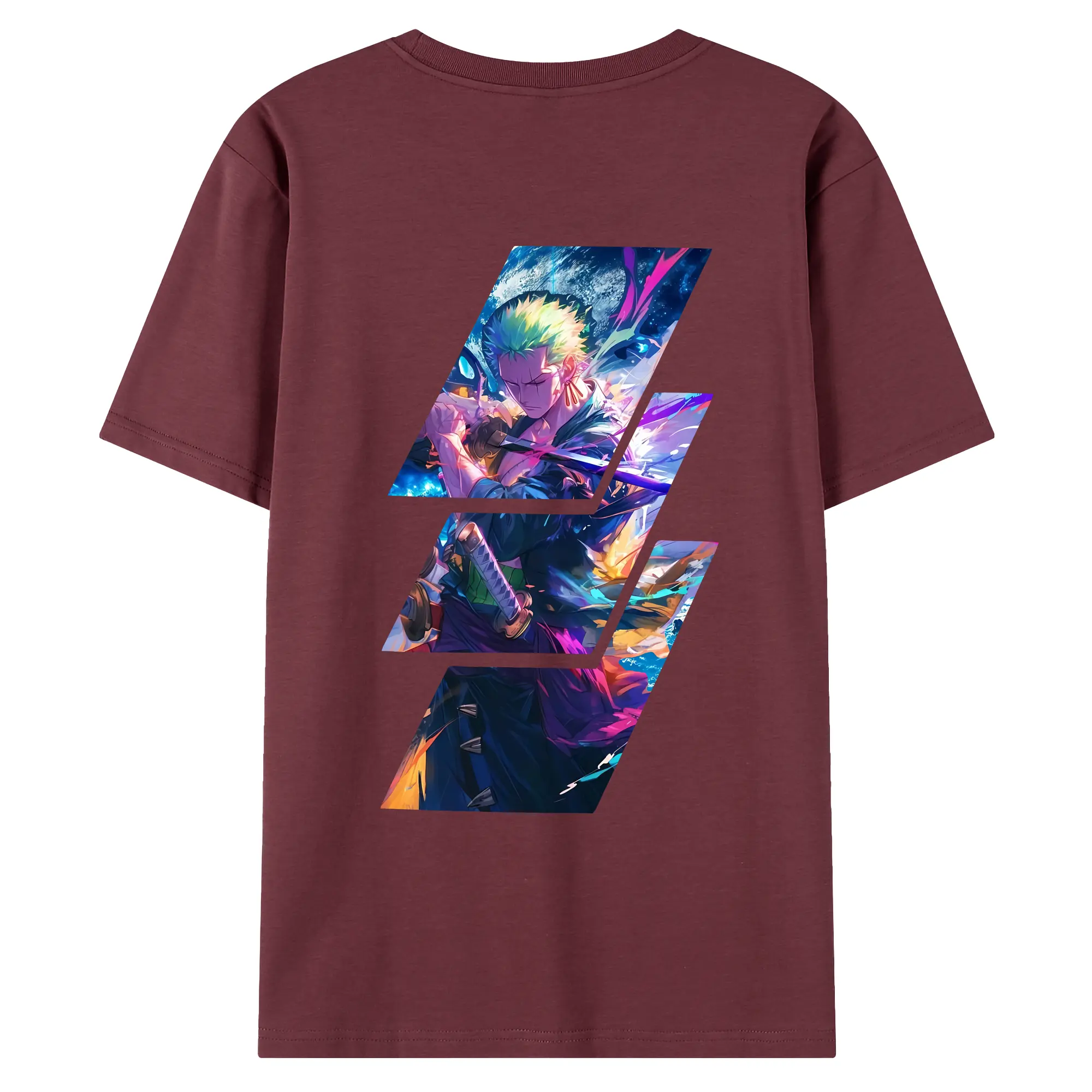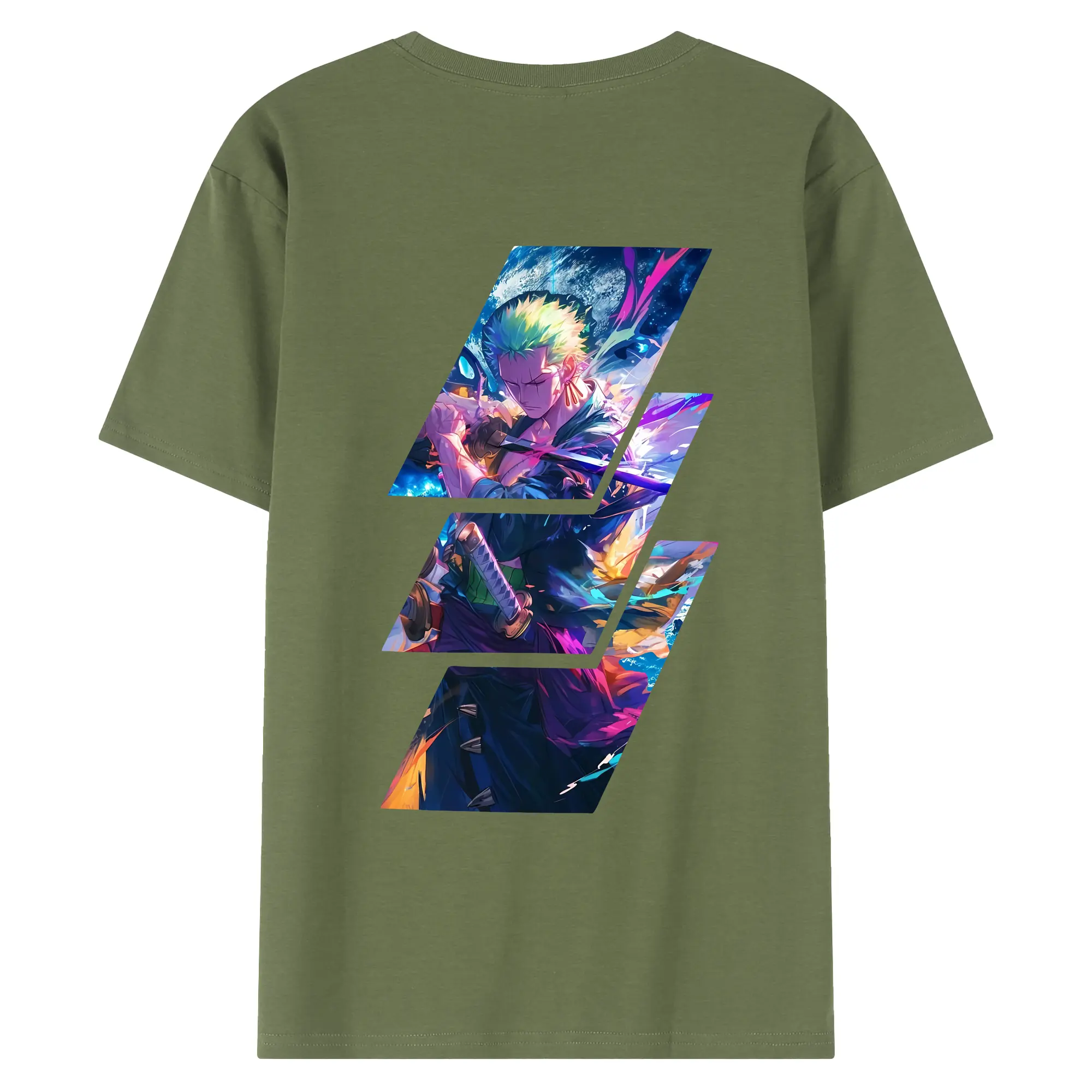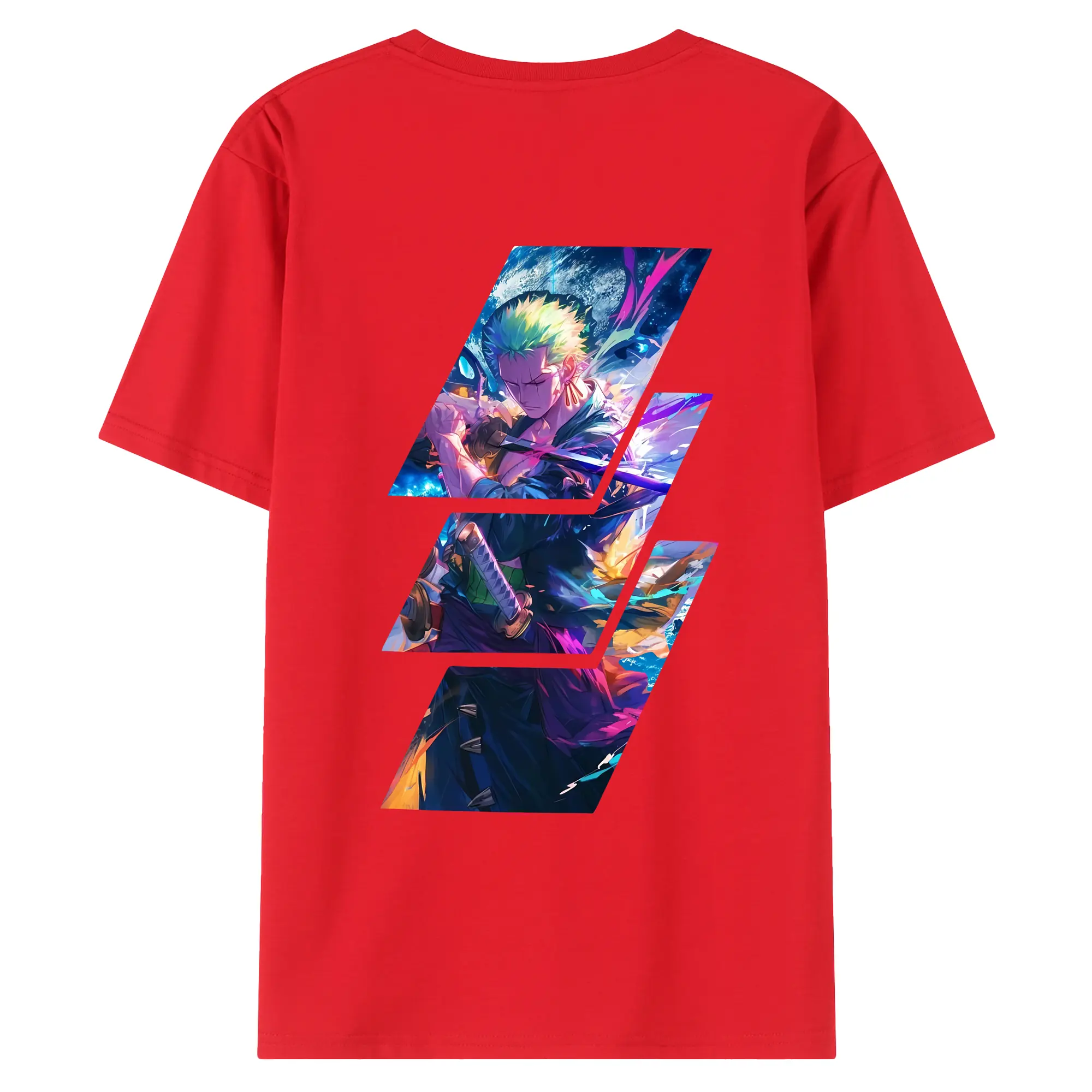 ワンピース グッズ ロロノア・ゾロ - 綿100% ヴィンテージ風 半袖Tシャツ ・ 背面プリント ・ 柔らか肌触り ・ 通気性 快適 ・ スポーツ カジュアル 外出用