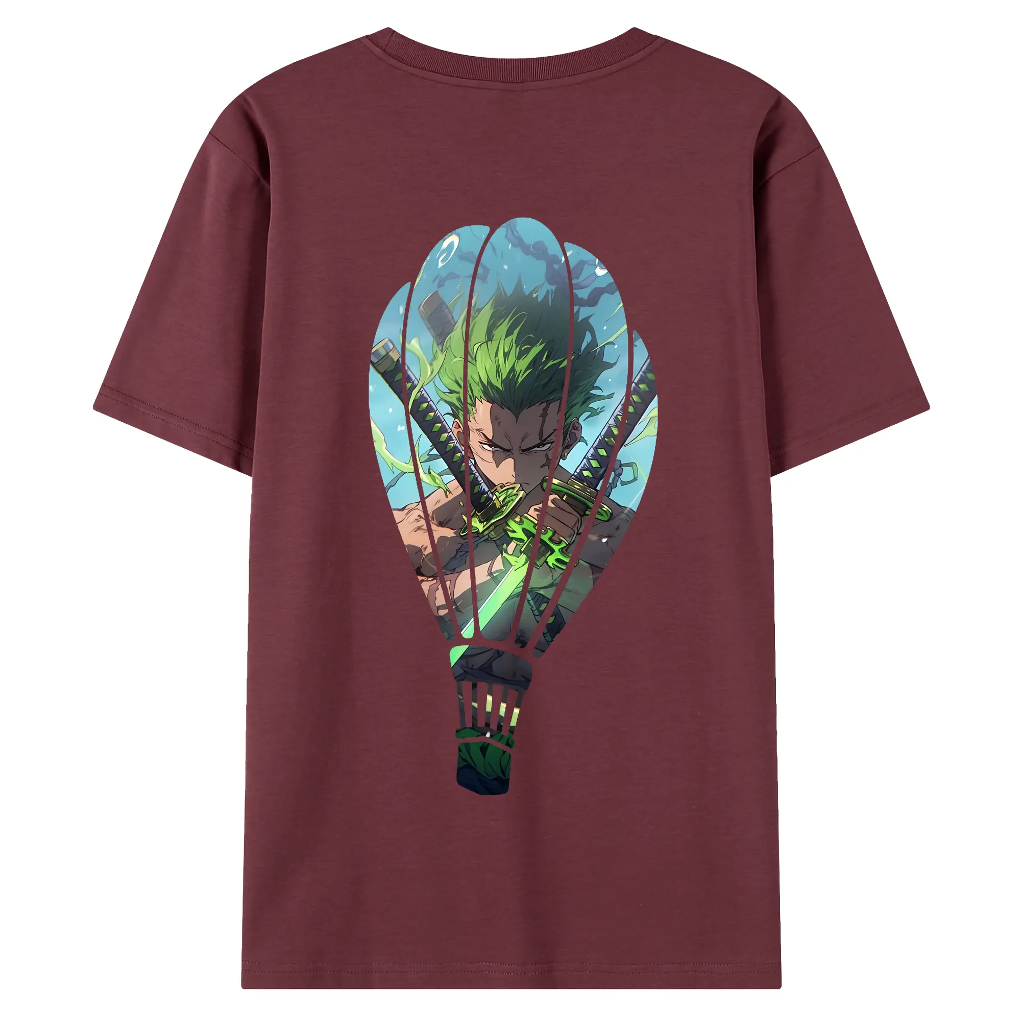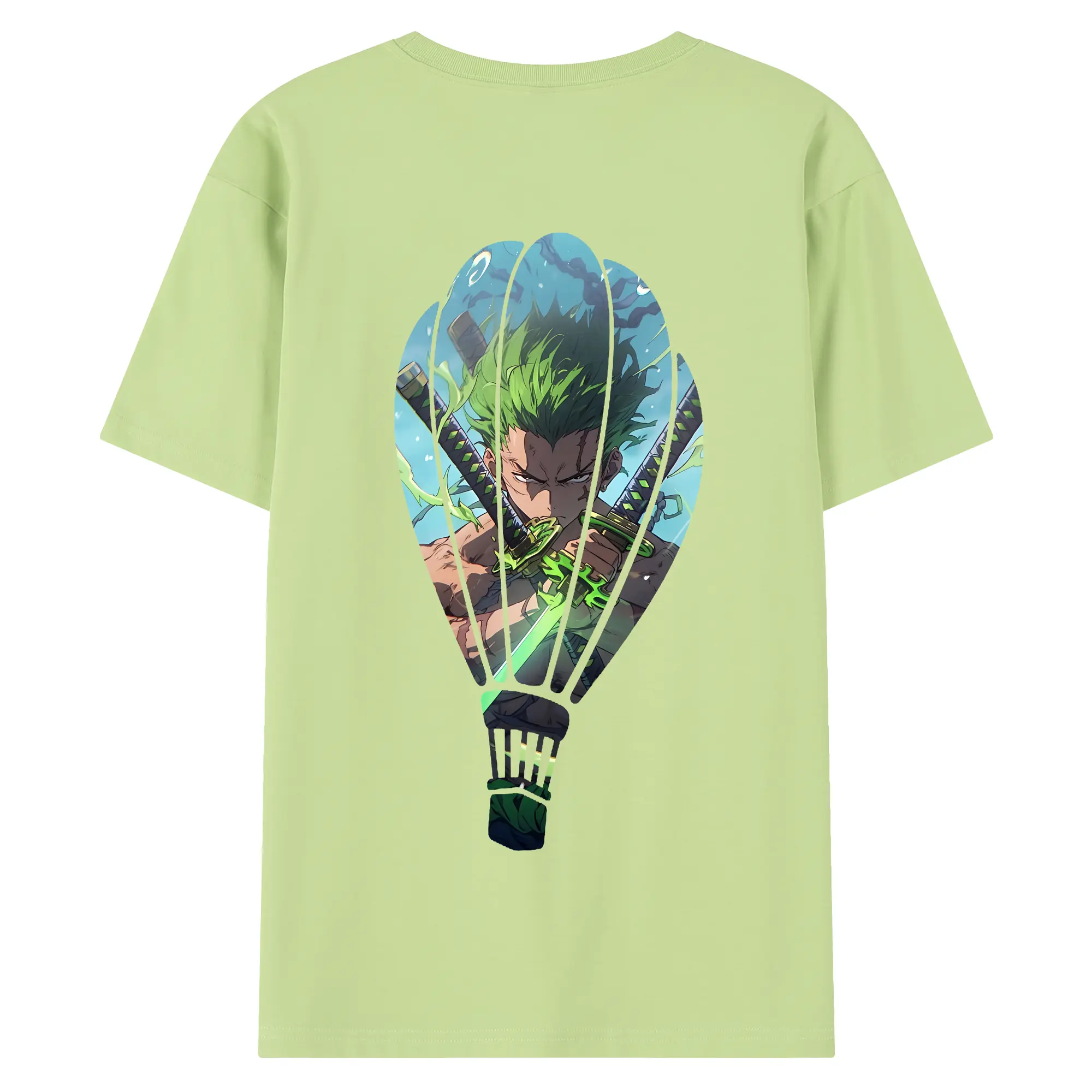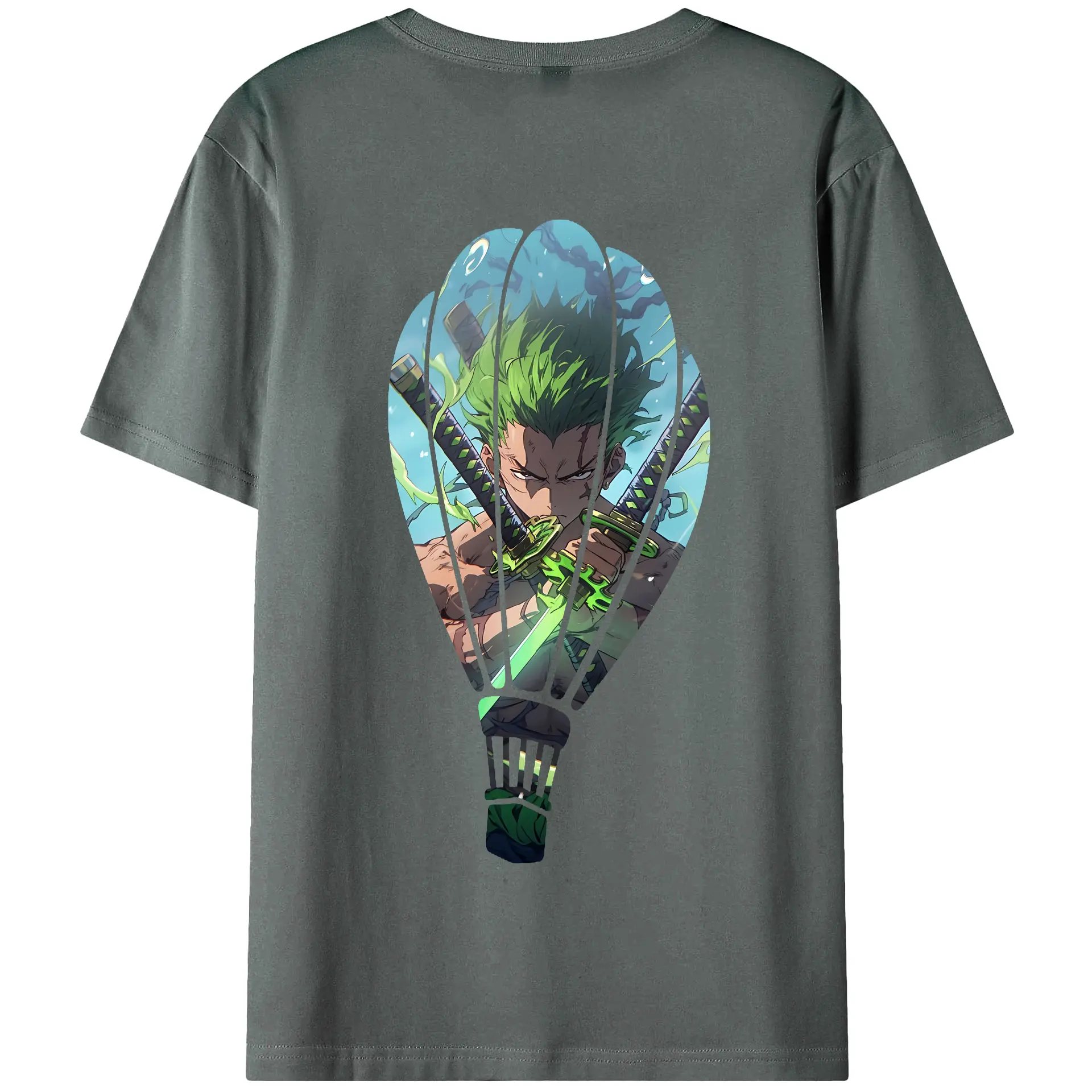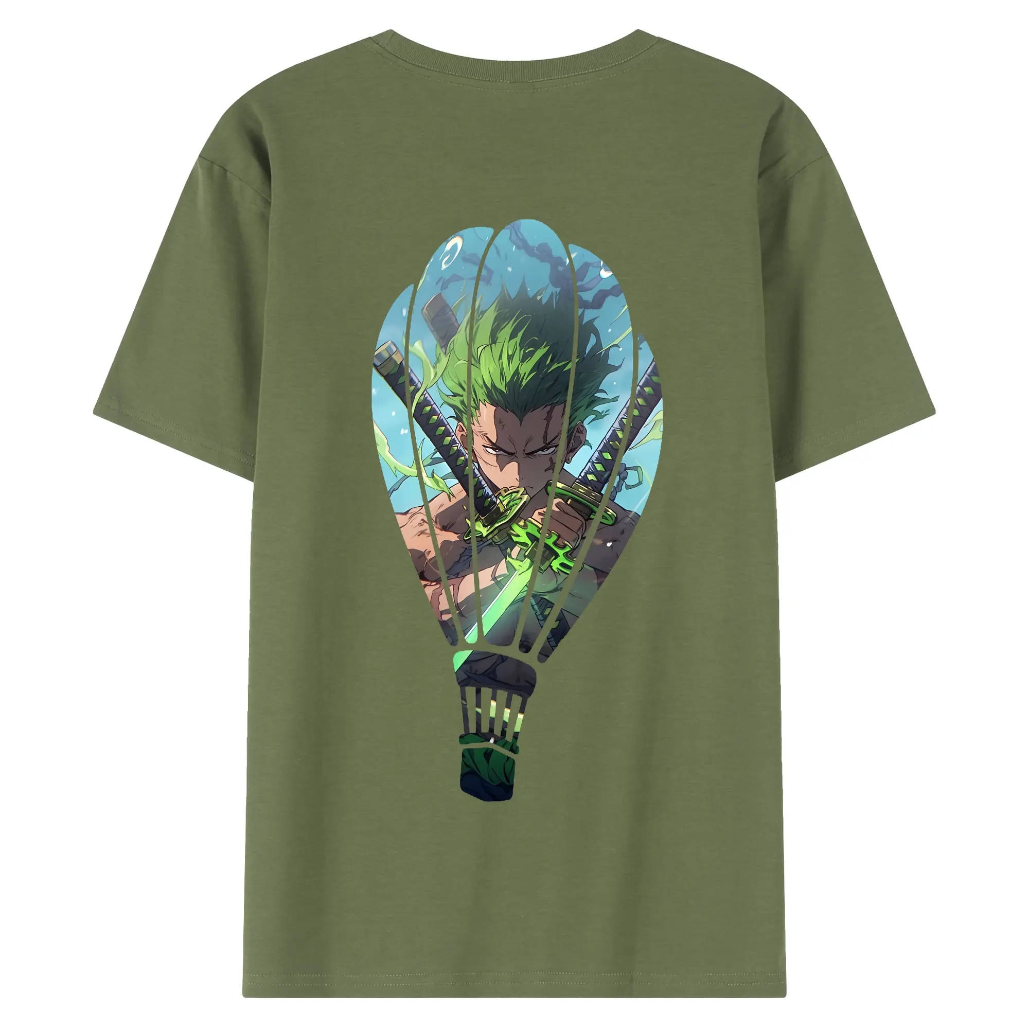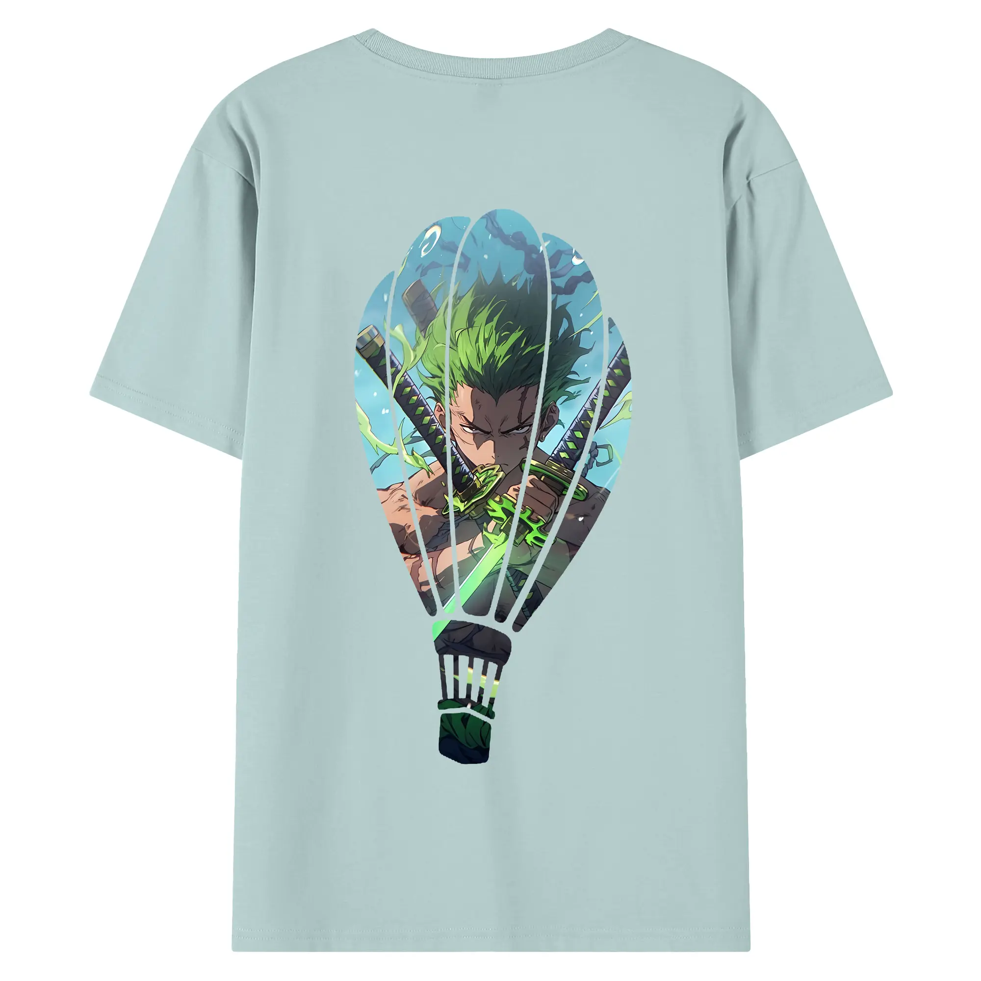 ワンピース グッズ ロロノア・ゾロ - 綿100% 半袖Tシャツ ・ フロントプリント ・ 快適 通気性 ・ 日常使い 散歩 スポーツ用