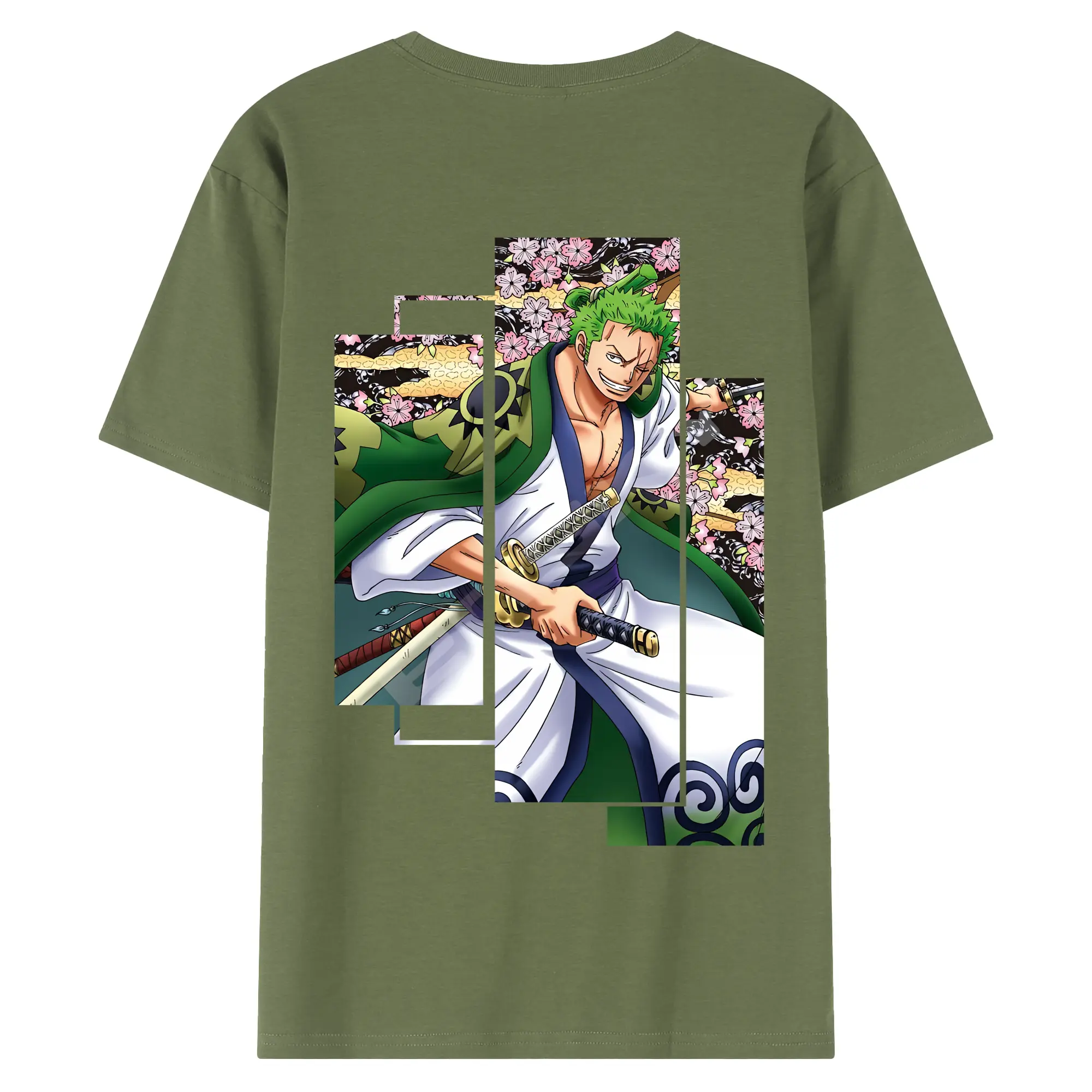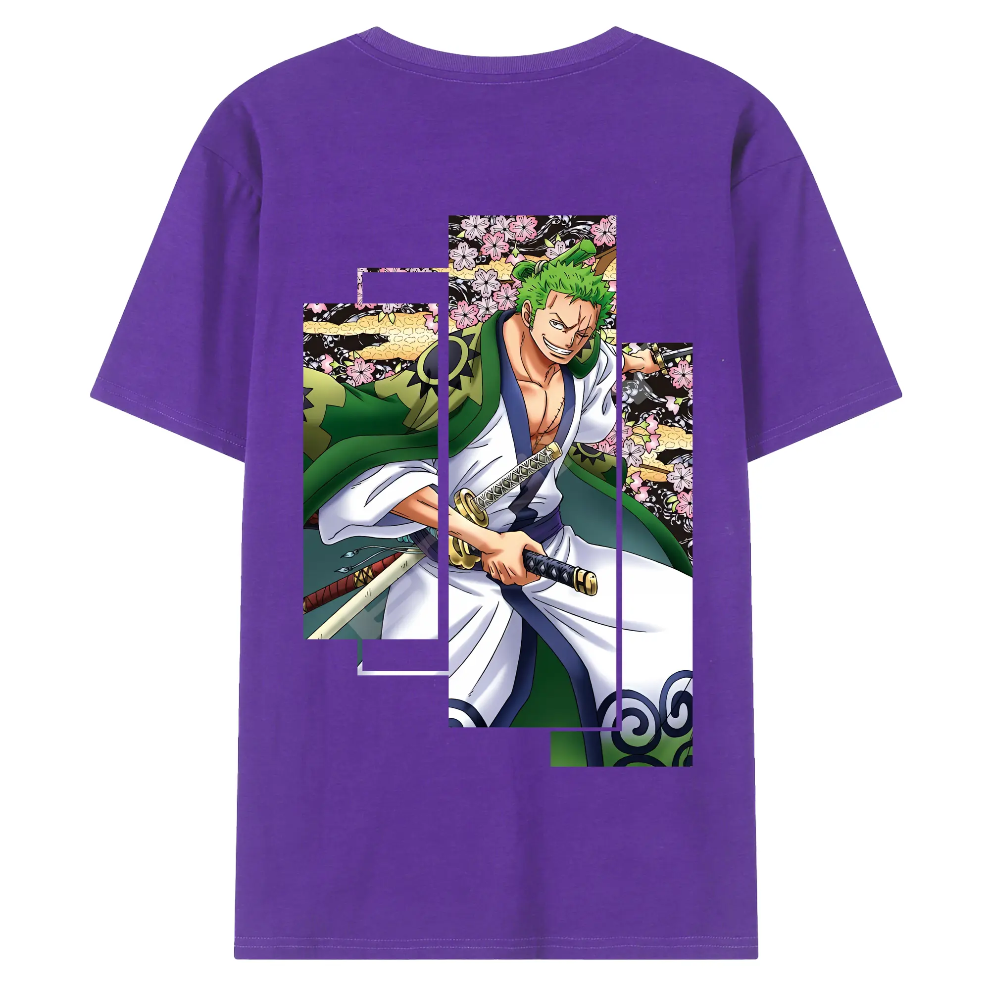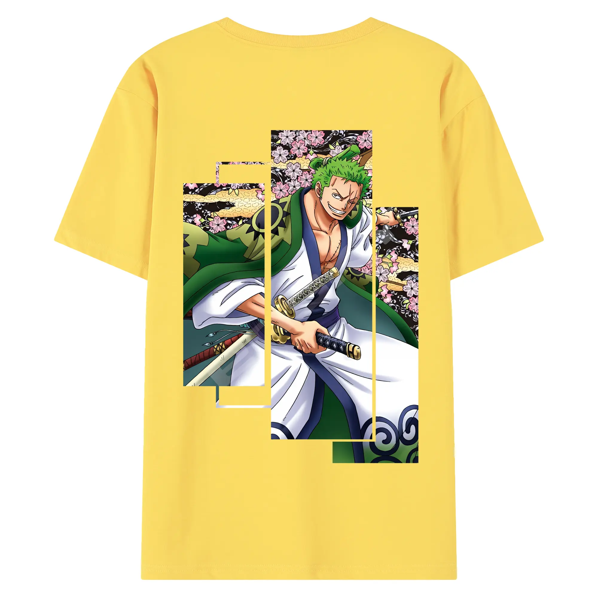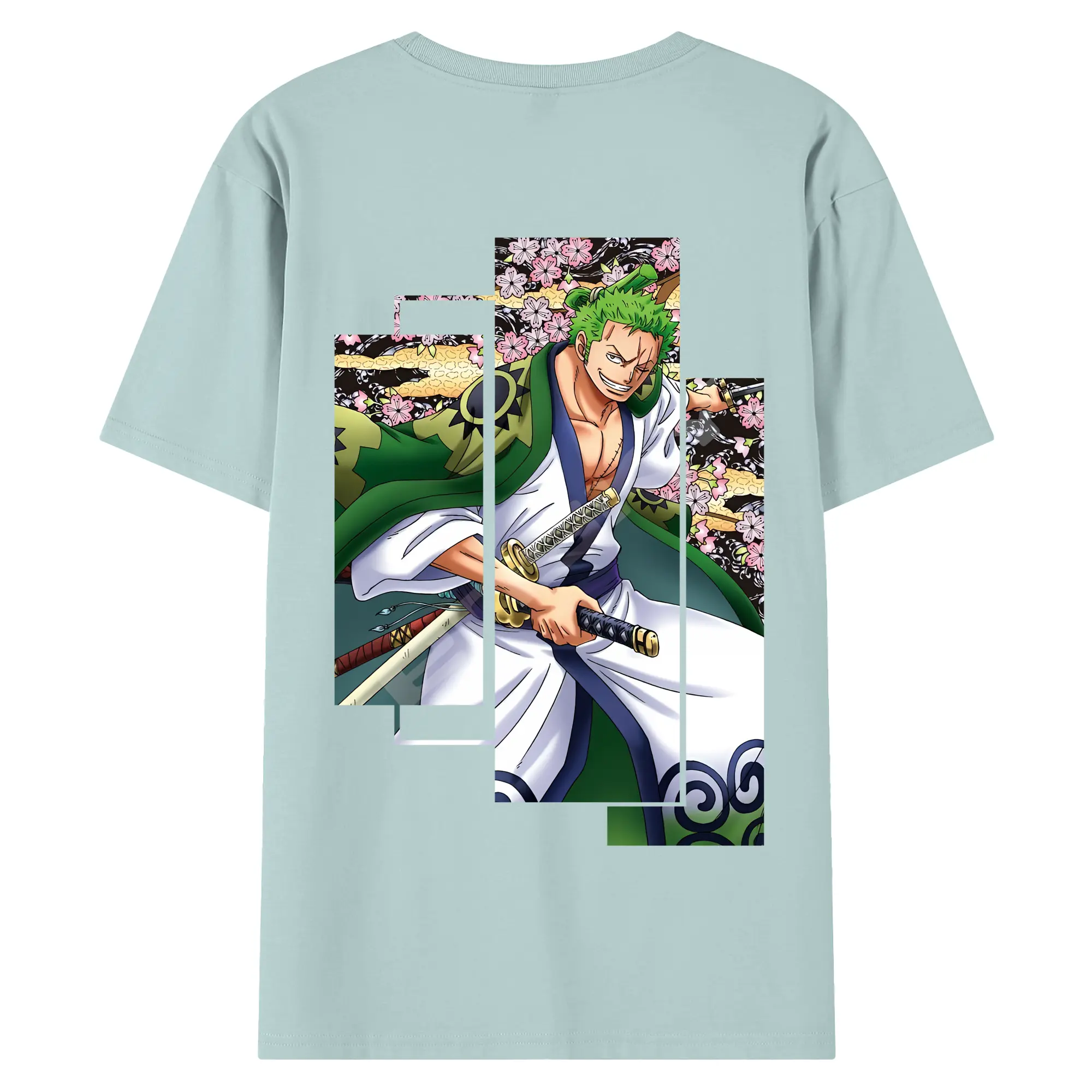 ワンピース グッズ ロロノア・ゾロ - 綿100% 半袖Tシャツ ・ フロントプリント ・ 快適 通気性 ・ 日常使い 散歩 スポーツ用