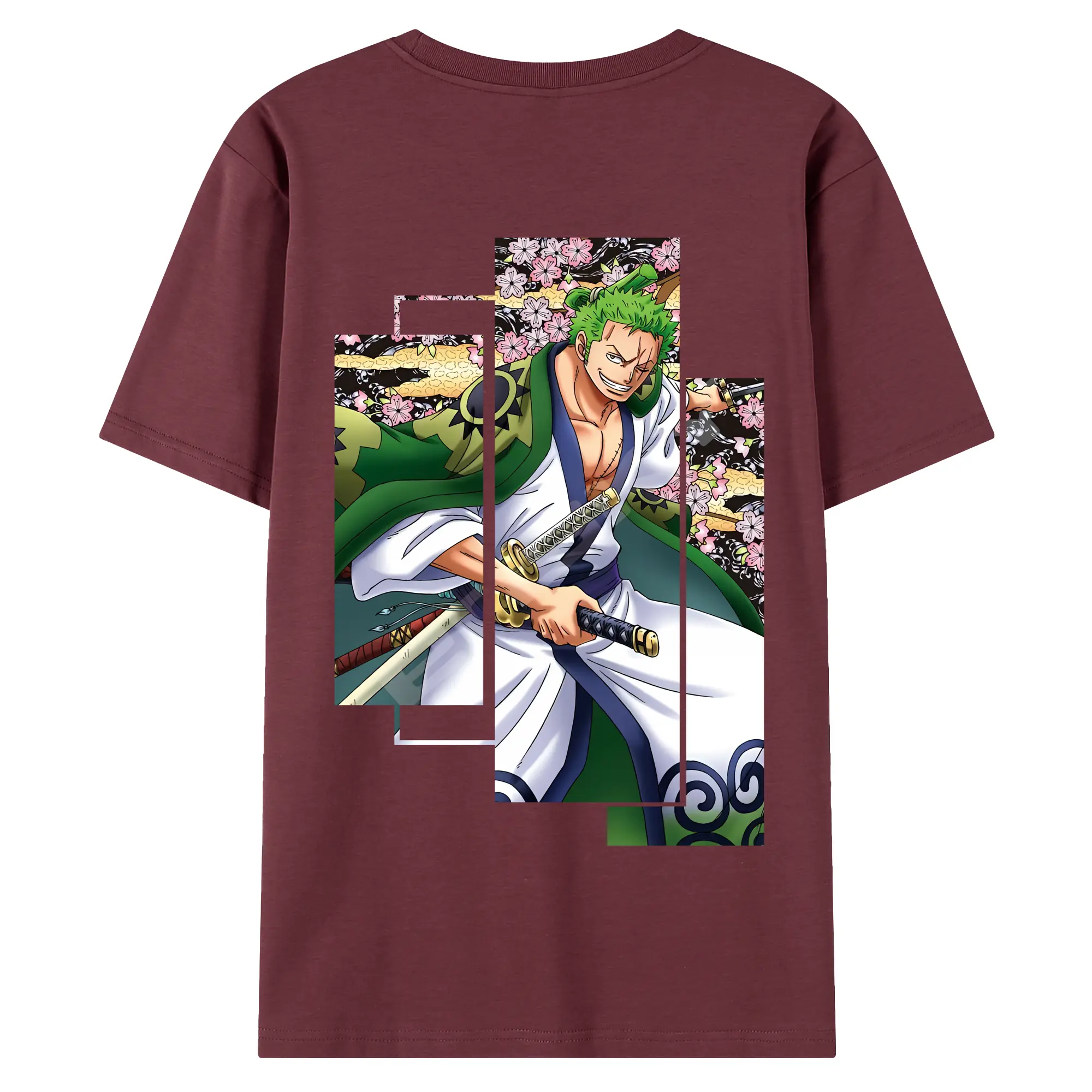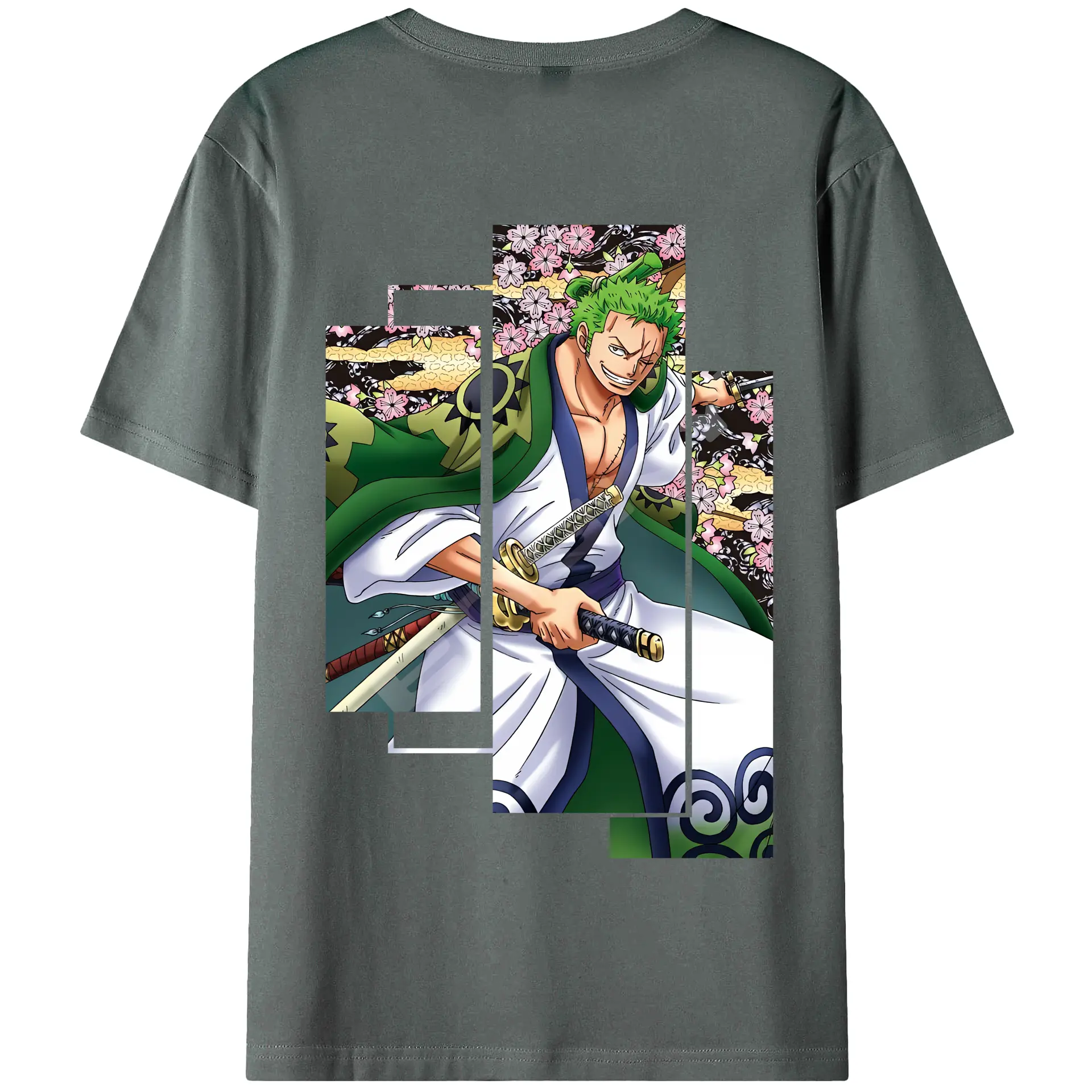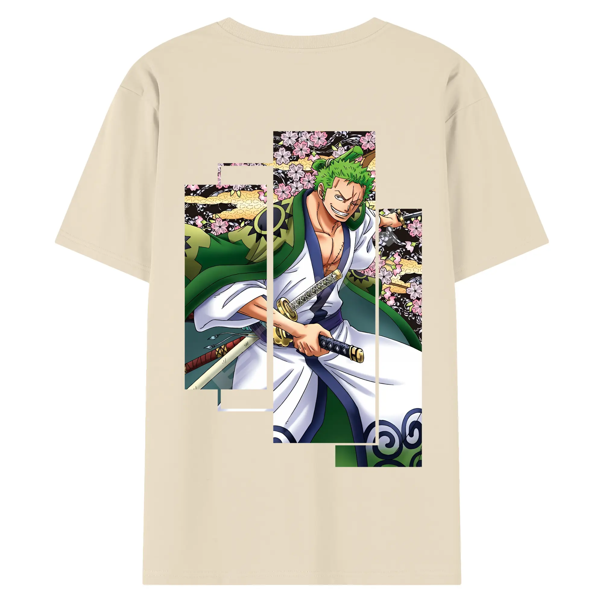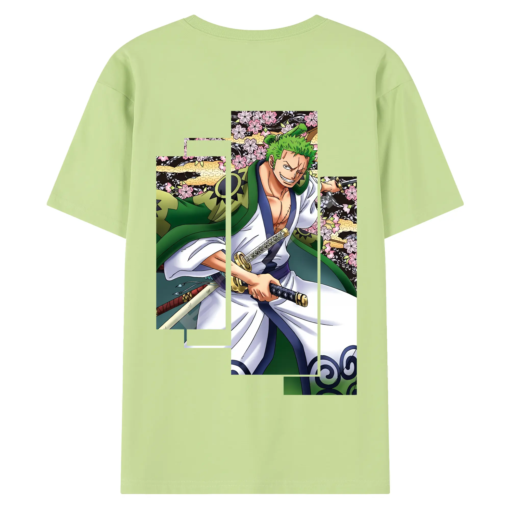 ワンピース グッズ ロロノア・ゾロ - 綿100% ヴィンテージ風 半袖Tシャツ ・ 背面プリント ・ 柔らか肌触り ・ 通気性 快適 ・ スポーツ カジュアル 外出用