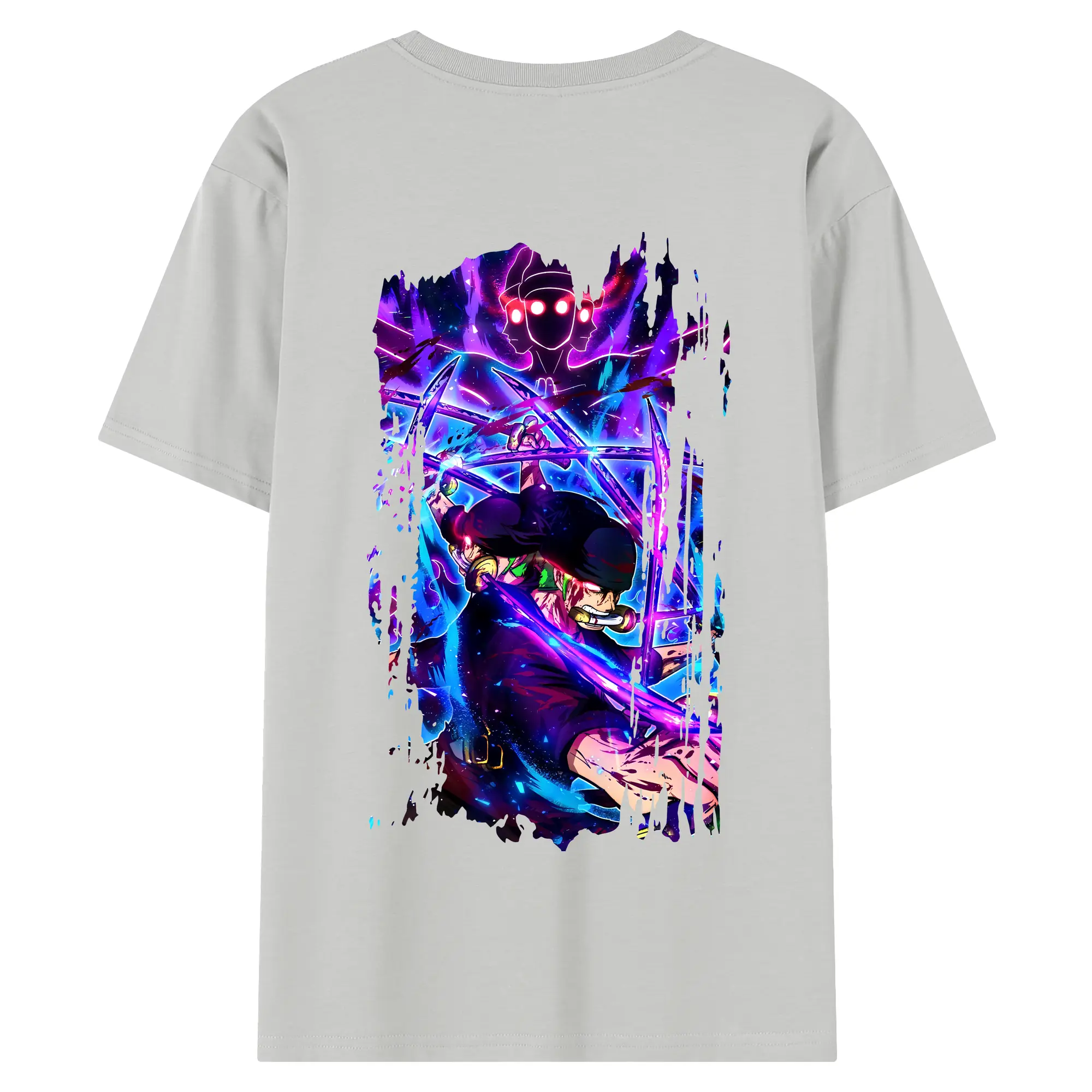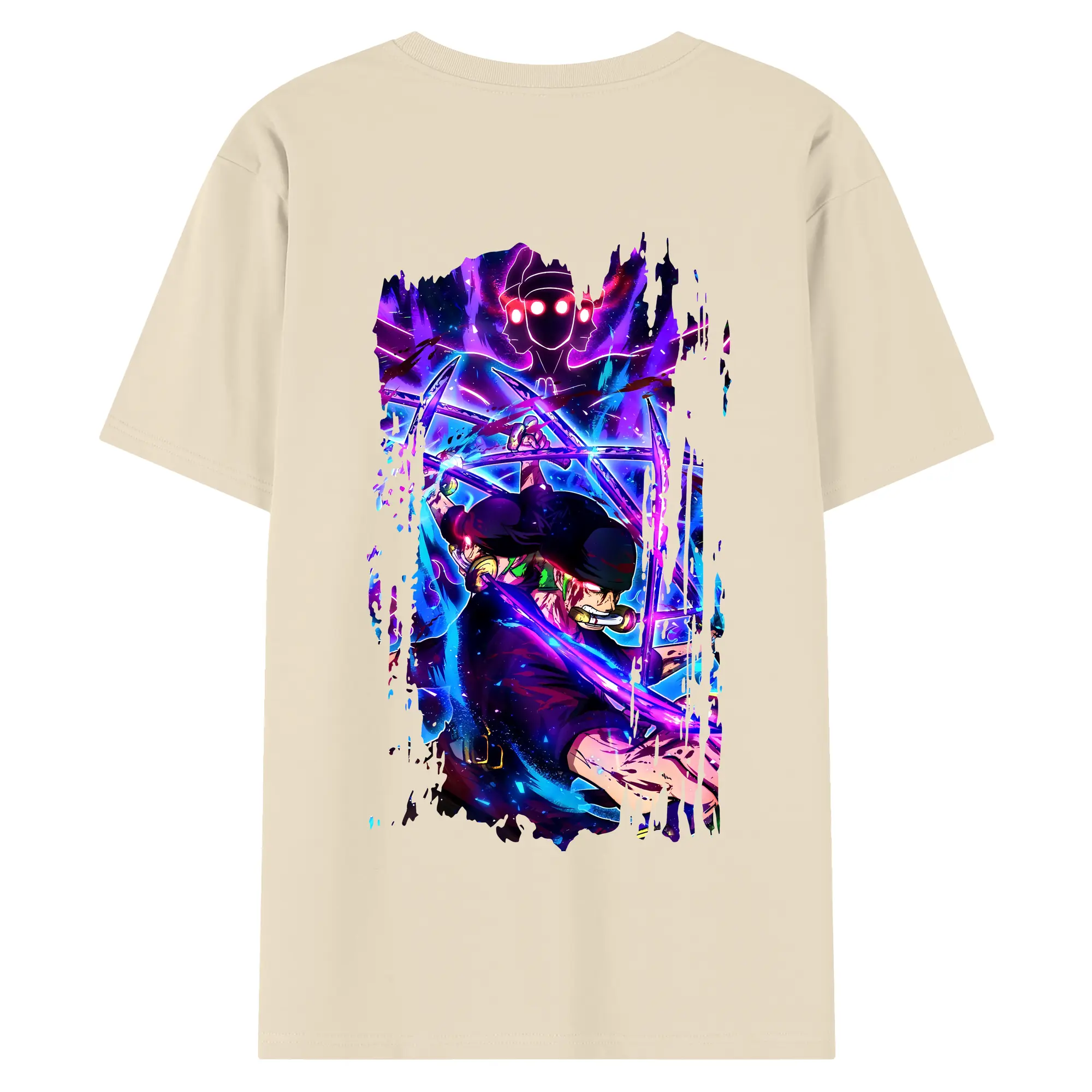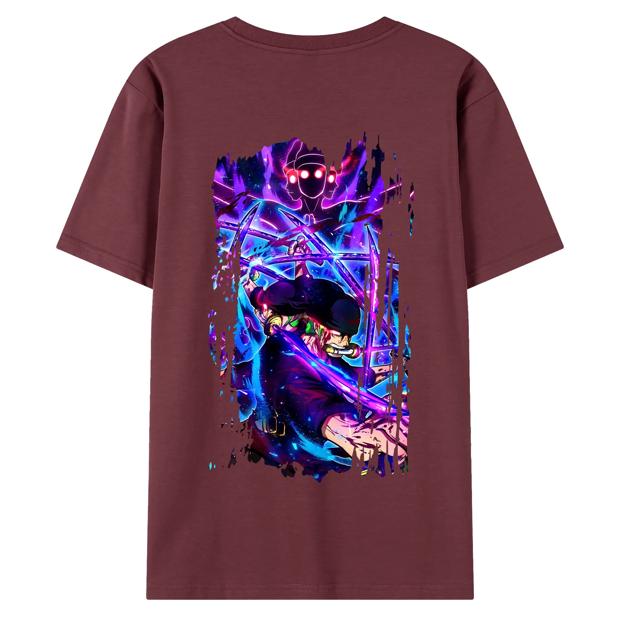 ワンピース グッズ ロロノア・ゾロ - 綿100% ヴィンテージ風 半袖Tシャツ ・ 背面プリント ・ 柔らか肌触り ・ 通気性 快適 ・ スポーツ カジュアル 外出用