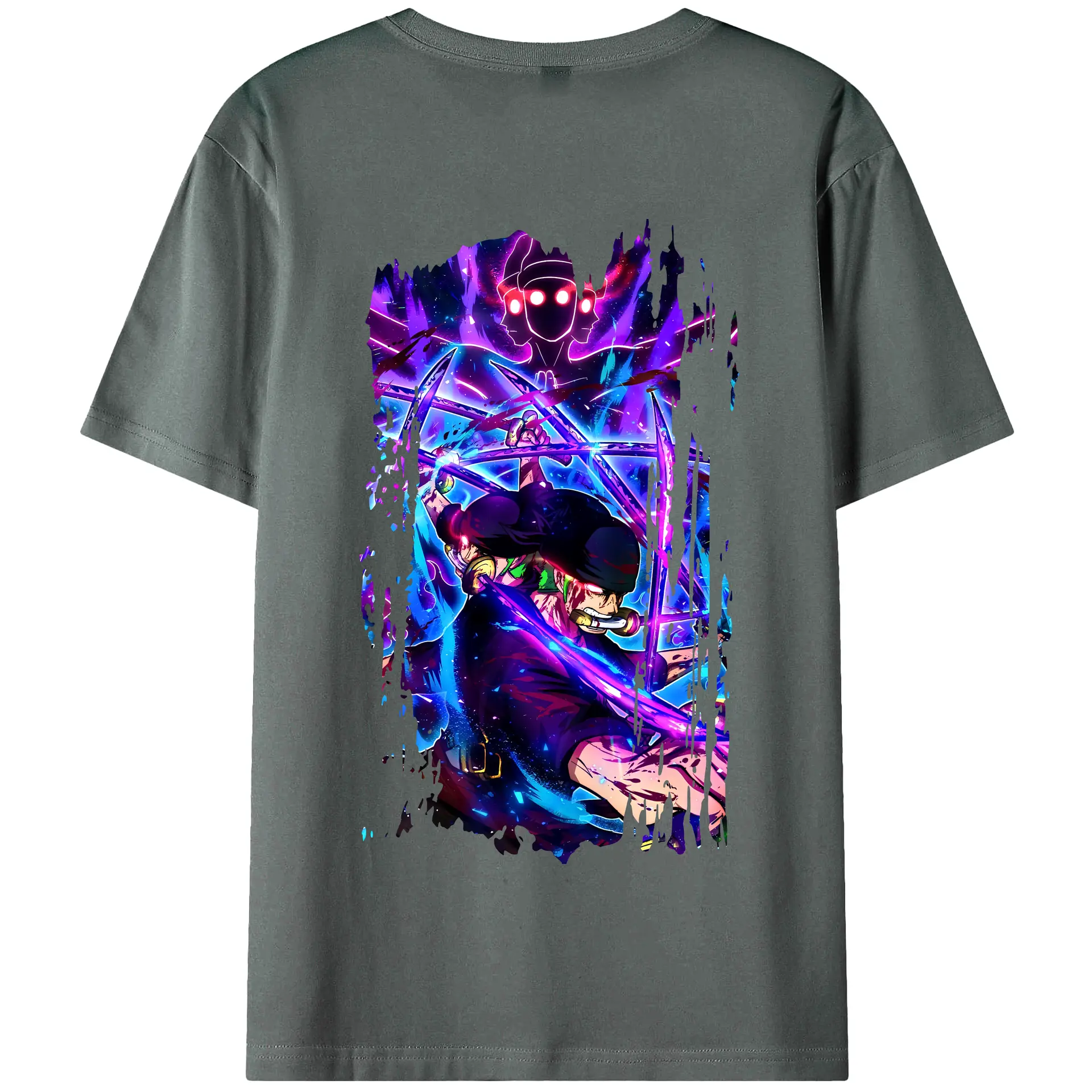 ワンピース グッズ ロロノア・ゾロ - 綿100% 半袖Tシャツ ・ フロントプリント ・ 快適 通気性 ・ 日常使い 散歩 スポーツ用