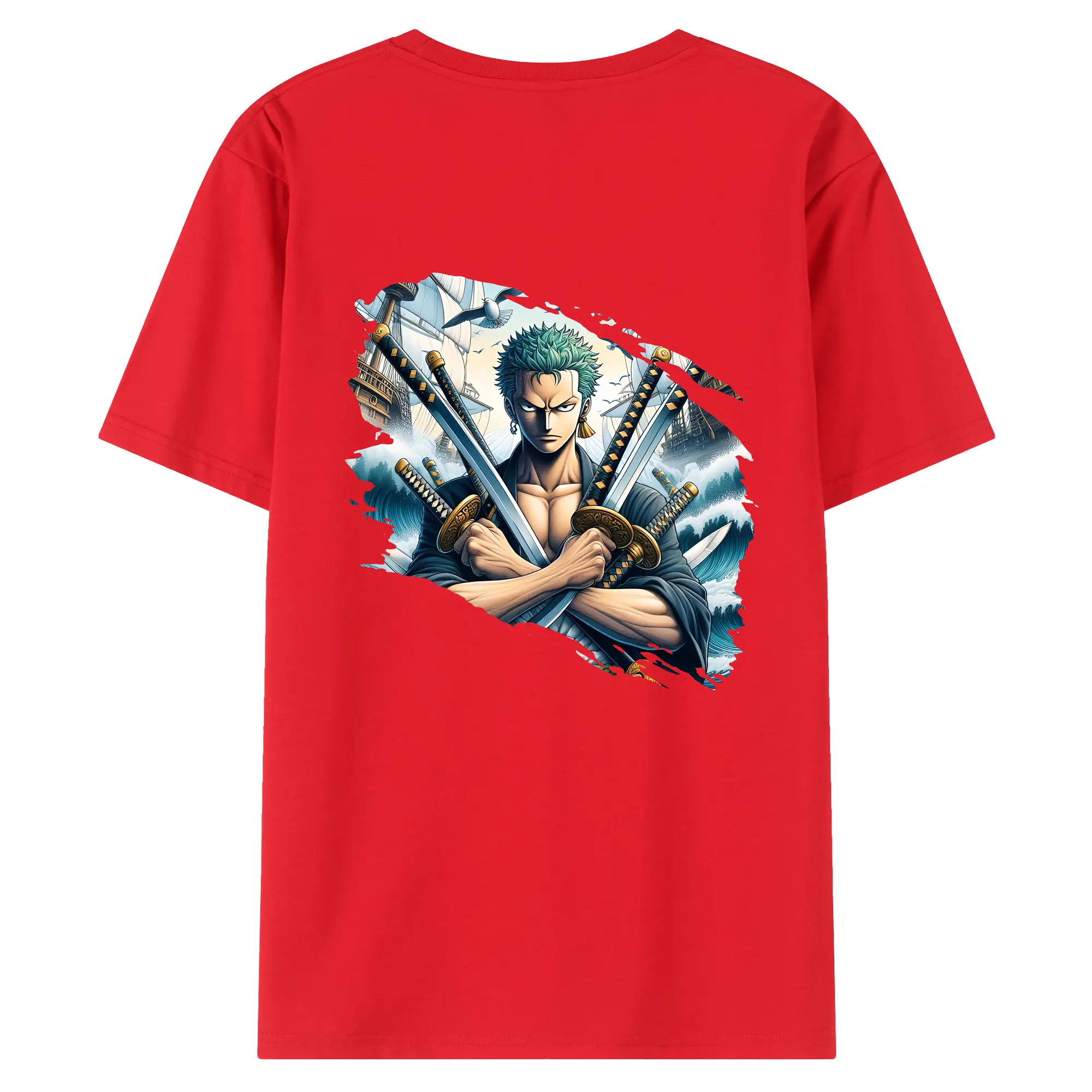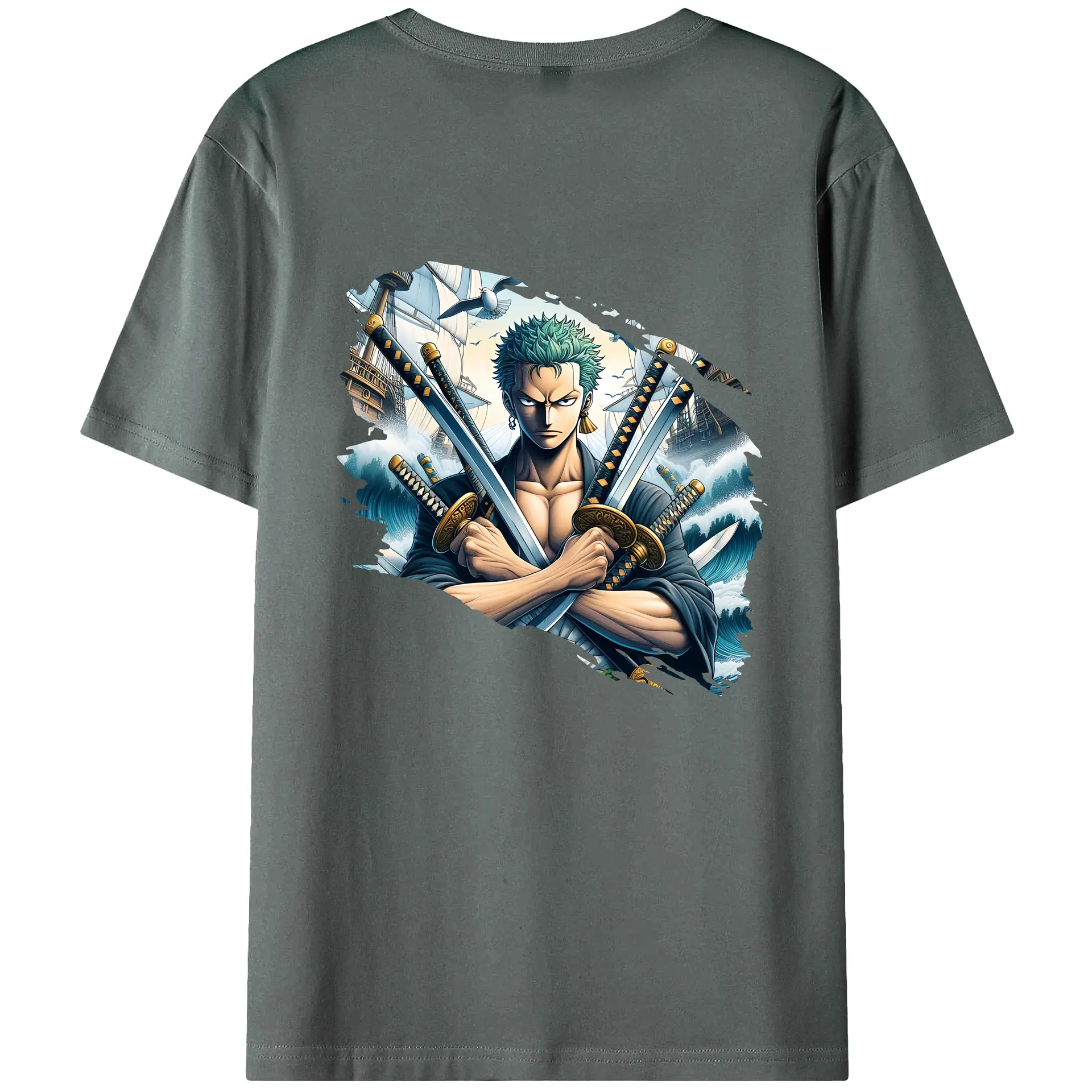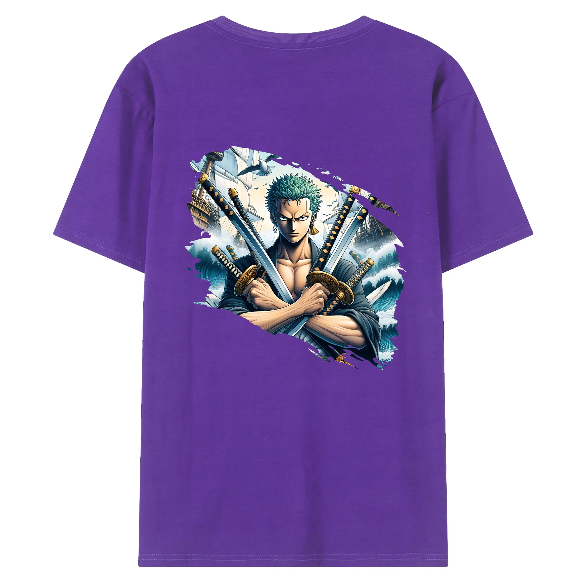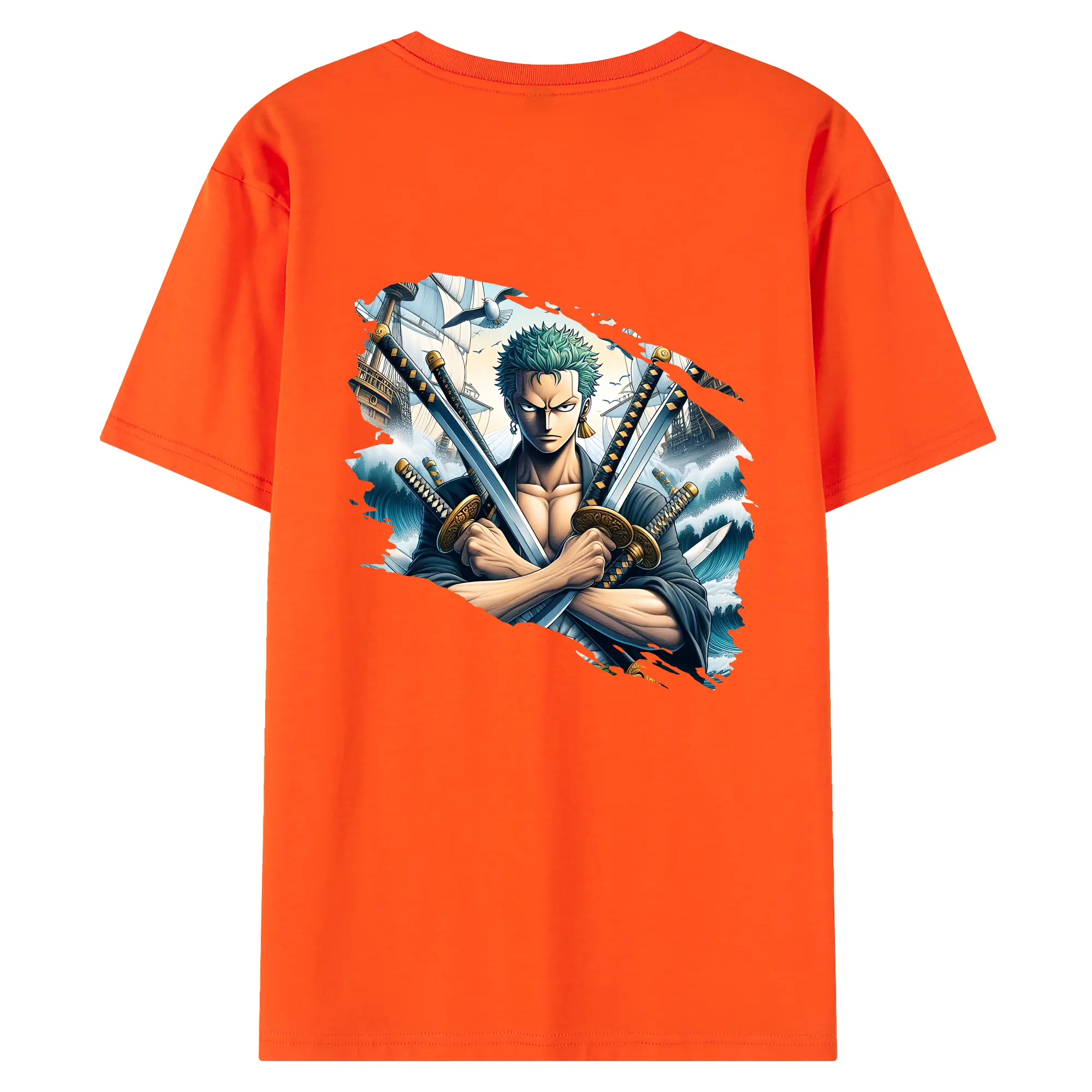 ワンピース グッズ ロロノア・ゾロ - 綿100% ヴィンテージ風 半袖Tシャツ ・ 背面プリント ・ 柔らか肌触り ・ 通気性 快適 ・ スポーツ カジュアル 外出用