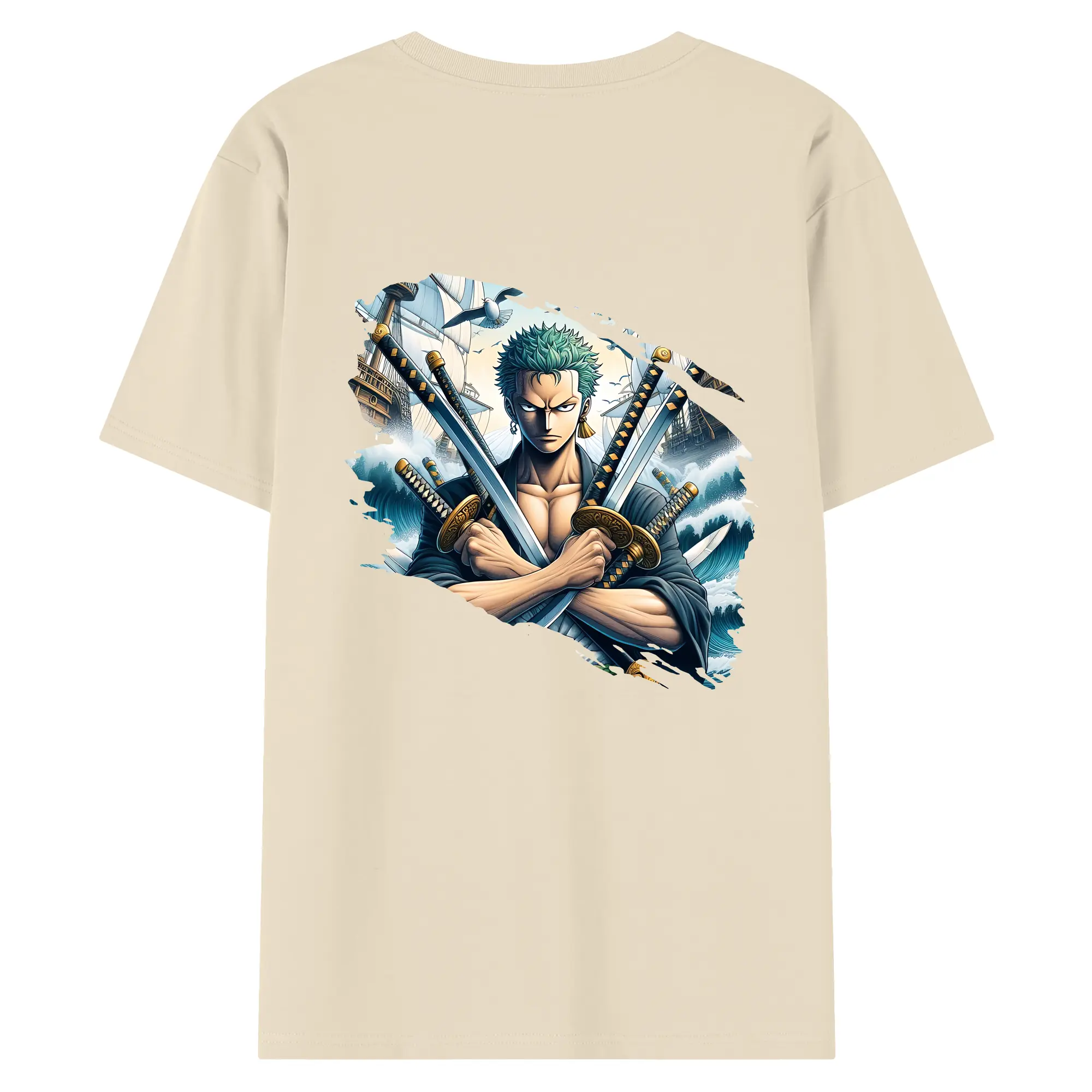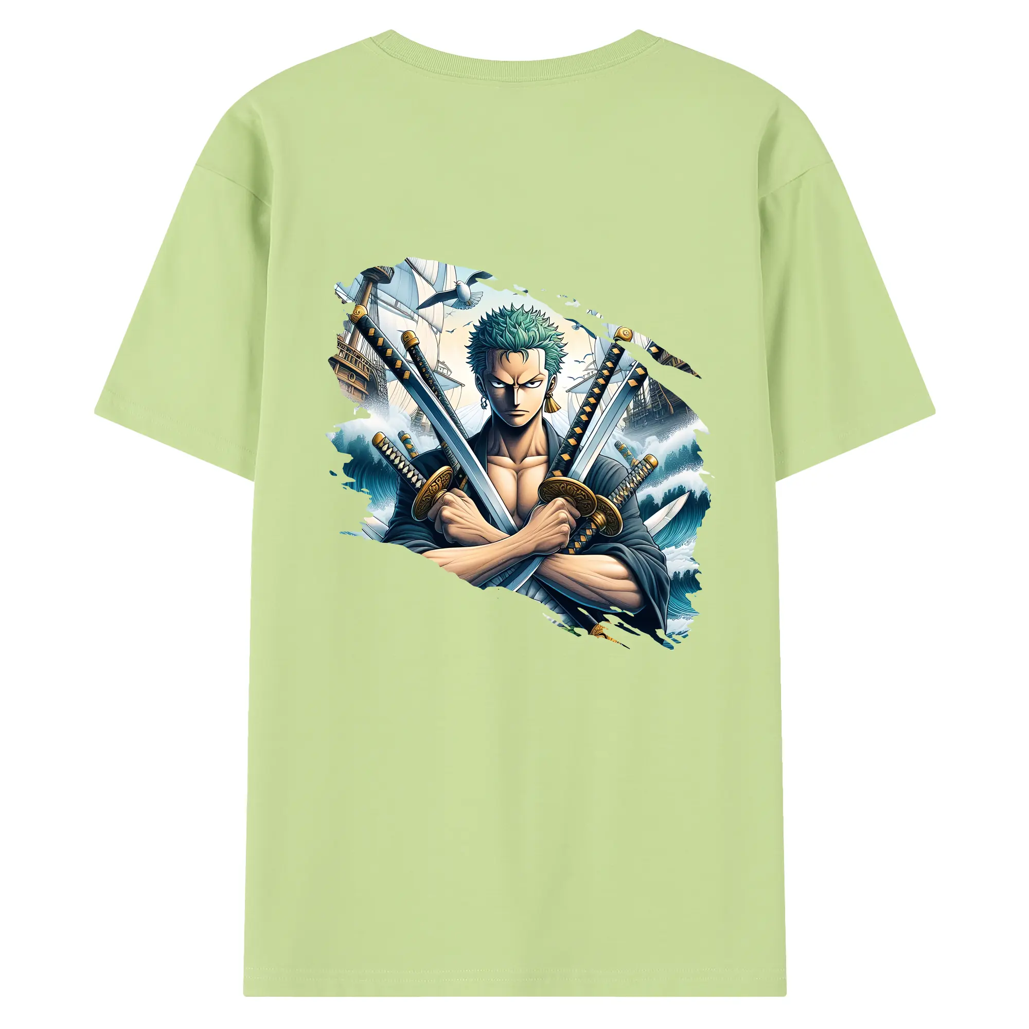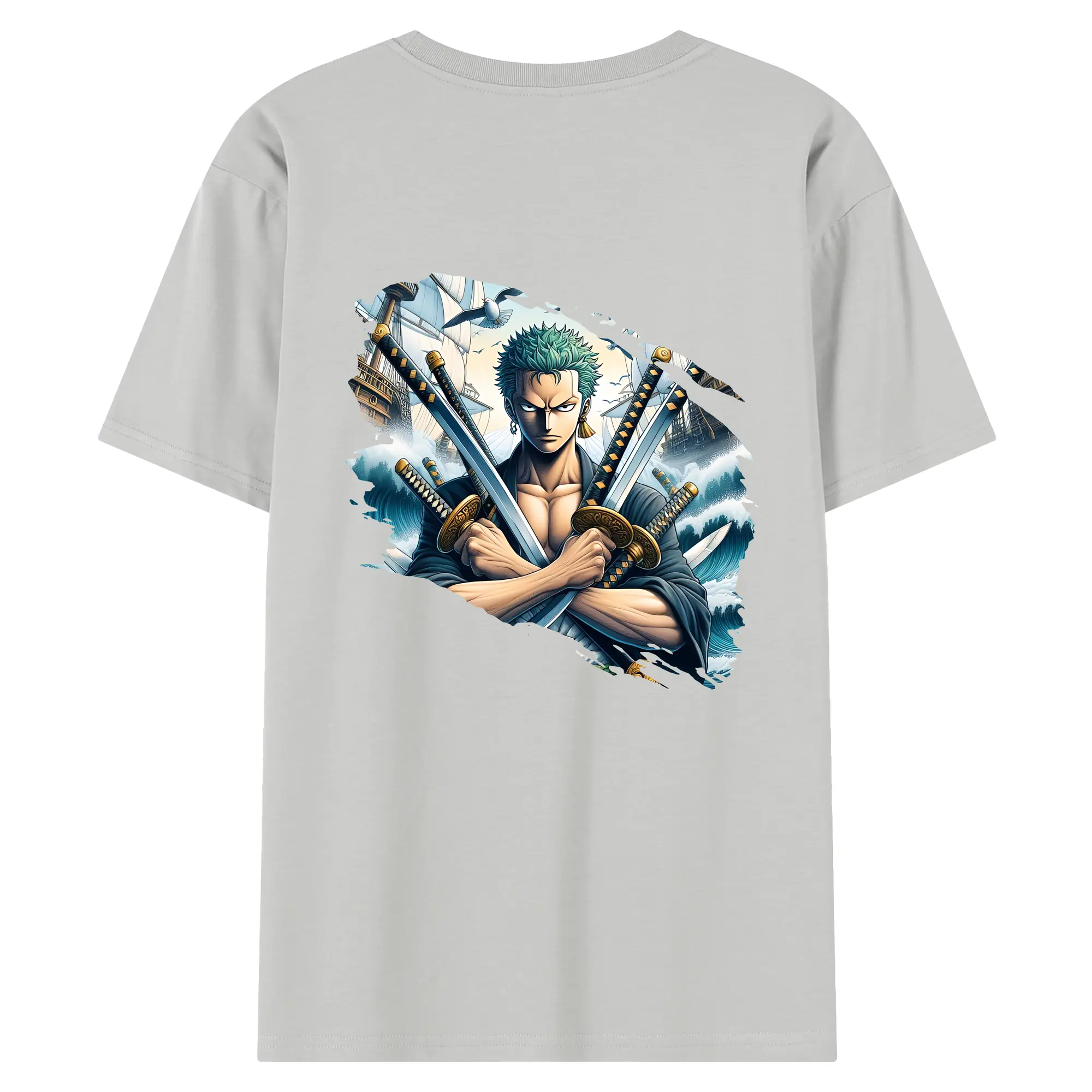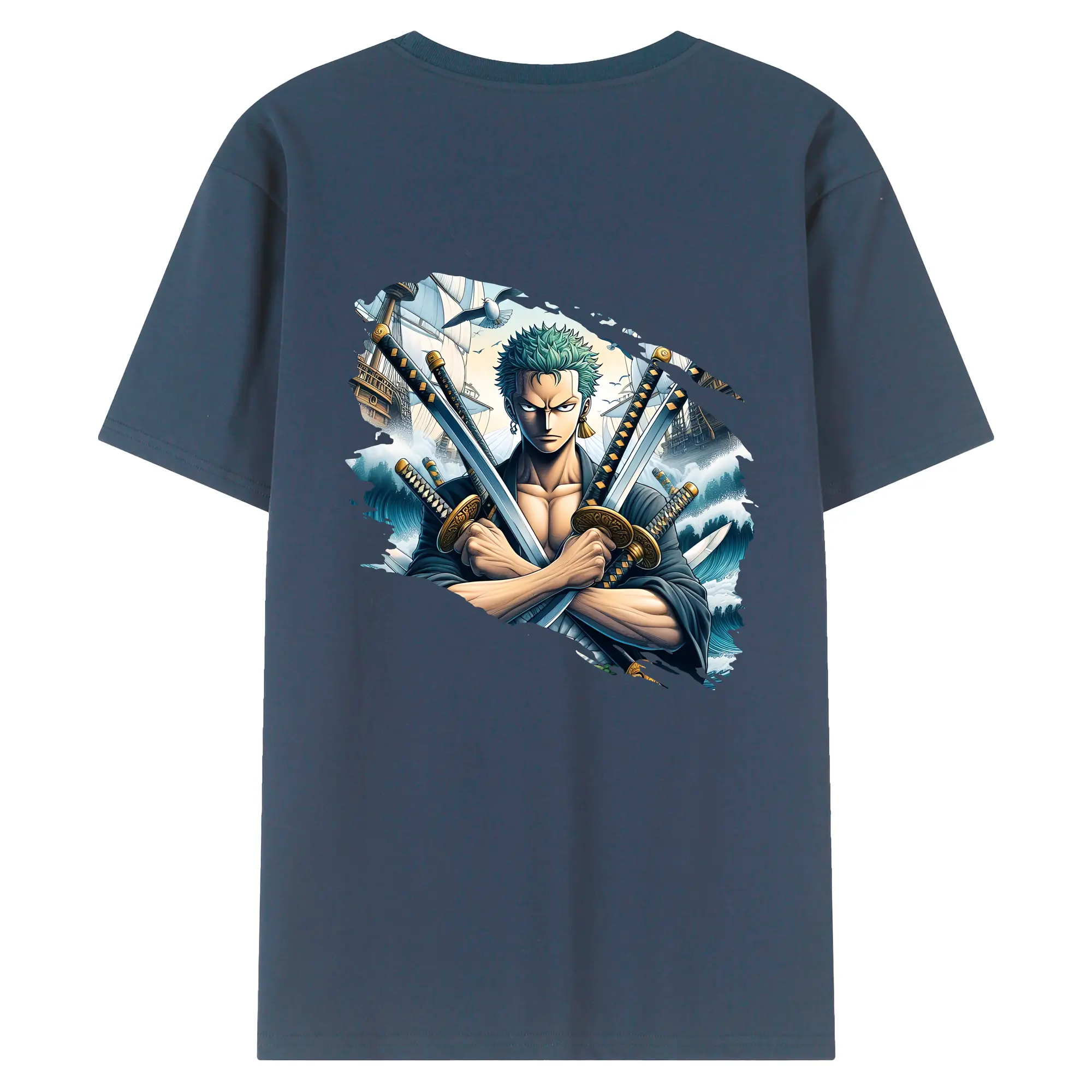 ワンピース グッズ ロロノア・ゾロ - 綿100% ヴィンテージ風 半袖Tシャツ ・ 背面プリント ・ 柔らか肌触り ・ 通気性 快適 ・ スポーツ カジュアル 外出用