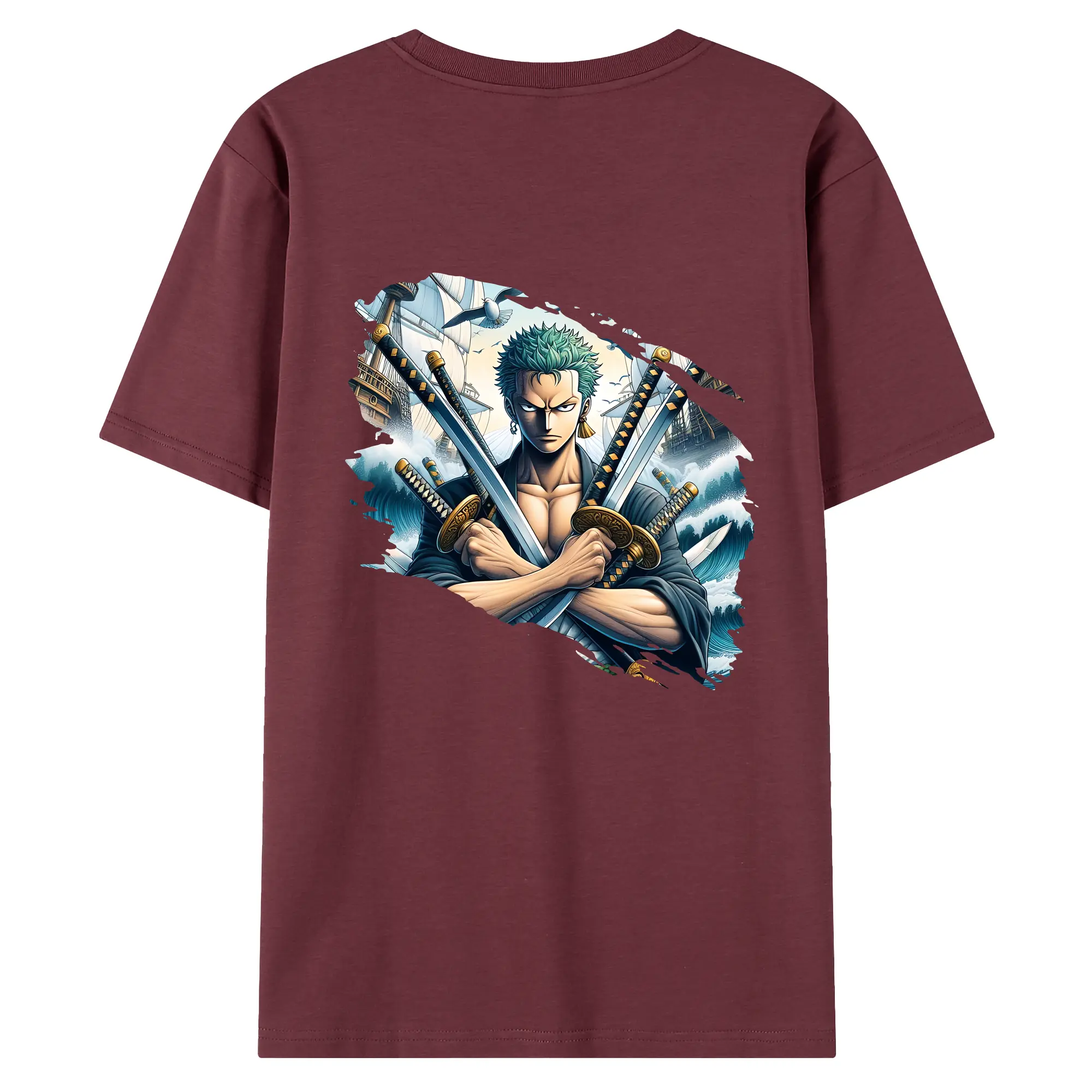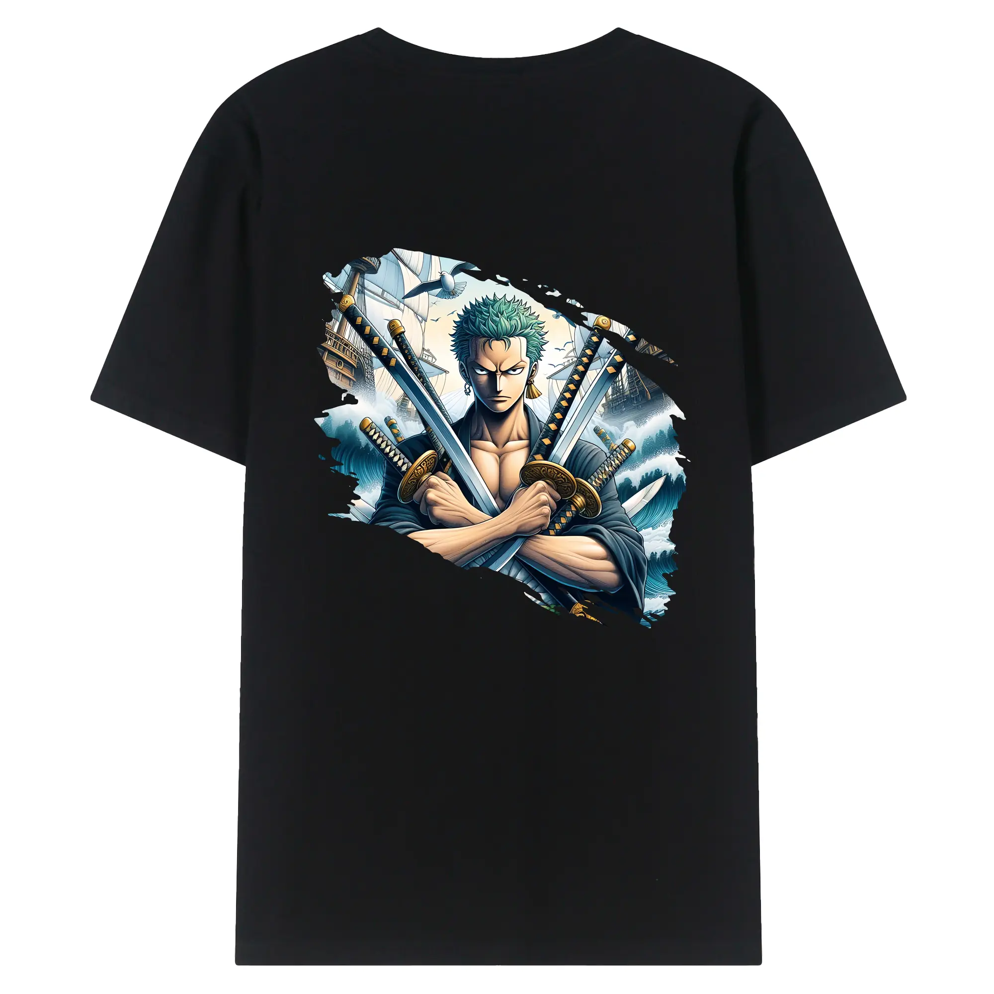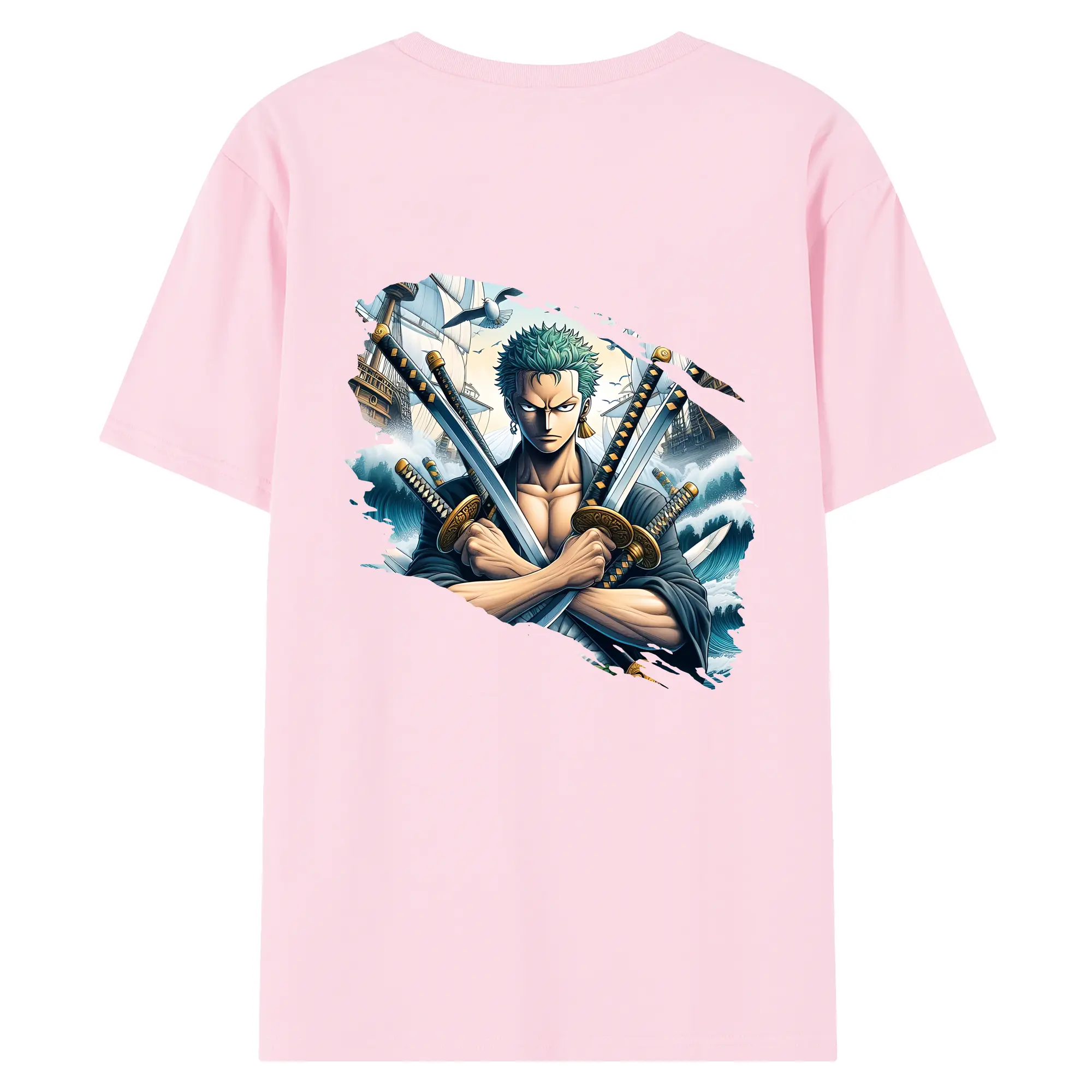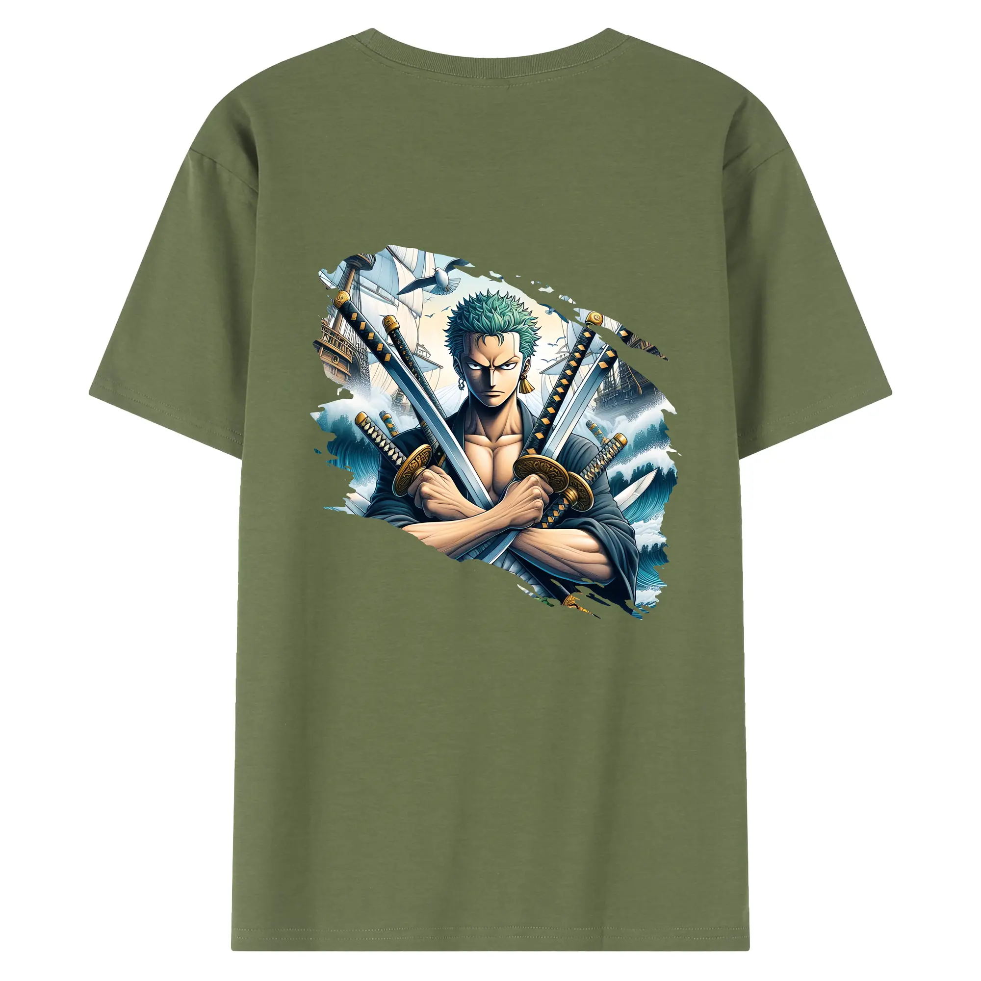 ワンピース グッズ ロロノア・ゾロ - 綿100% ヴィンテージ風 半袖Tシャツ ・ 背面プリント ・ 柔らか肌触り ・ 通気性 快適 ・ スポーツ カジュアル 外出用