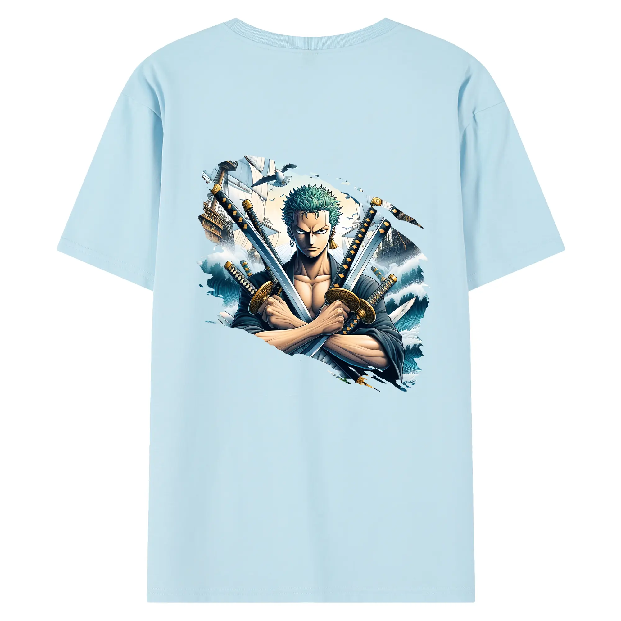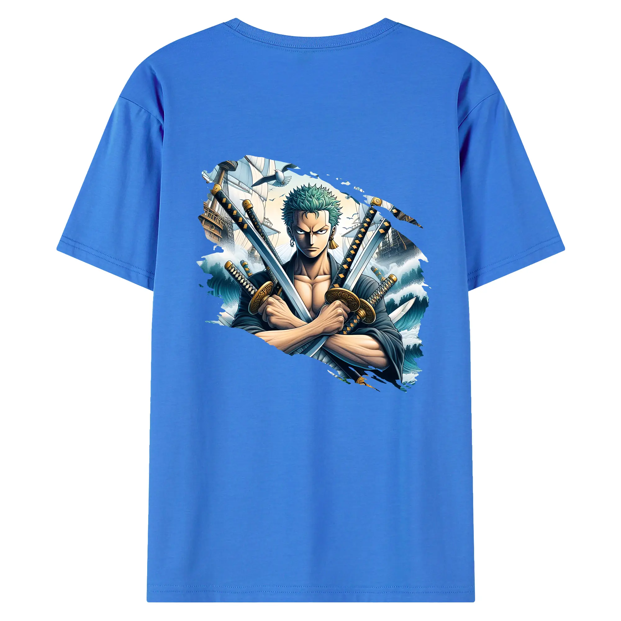 ワンピース グッズ ロロノア・ゾロ - 綿100% 半袖Tシャツ ・ フロントプリント ・ 快適 通気性 ・ 日常使い 散歩 スポーツ用