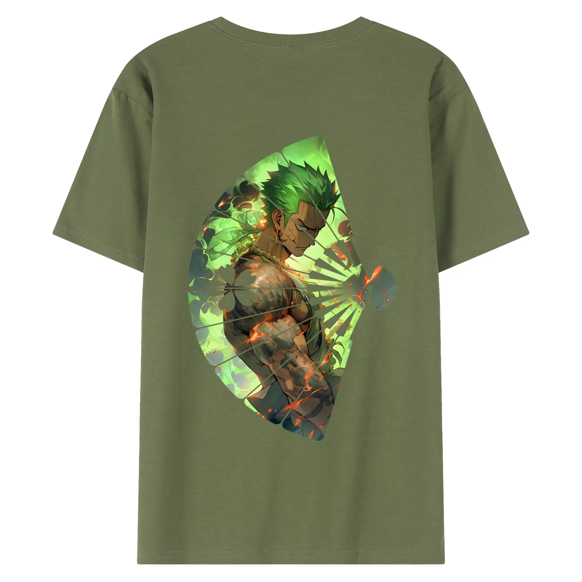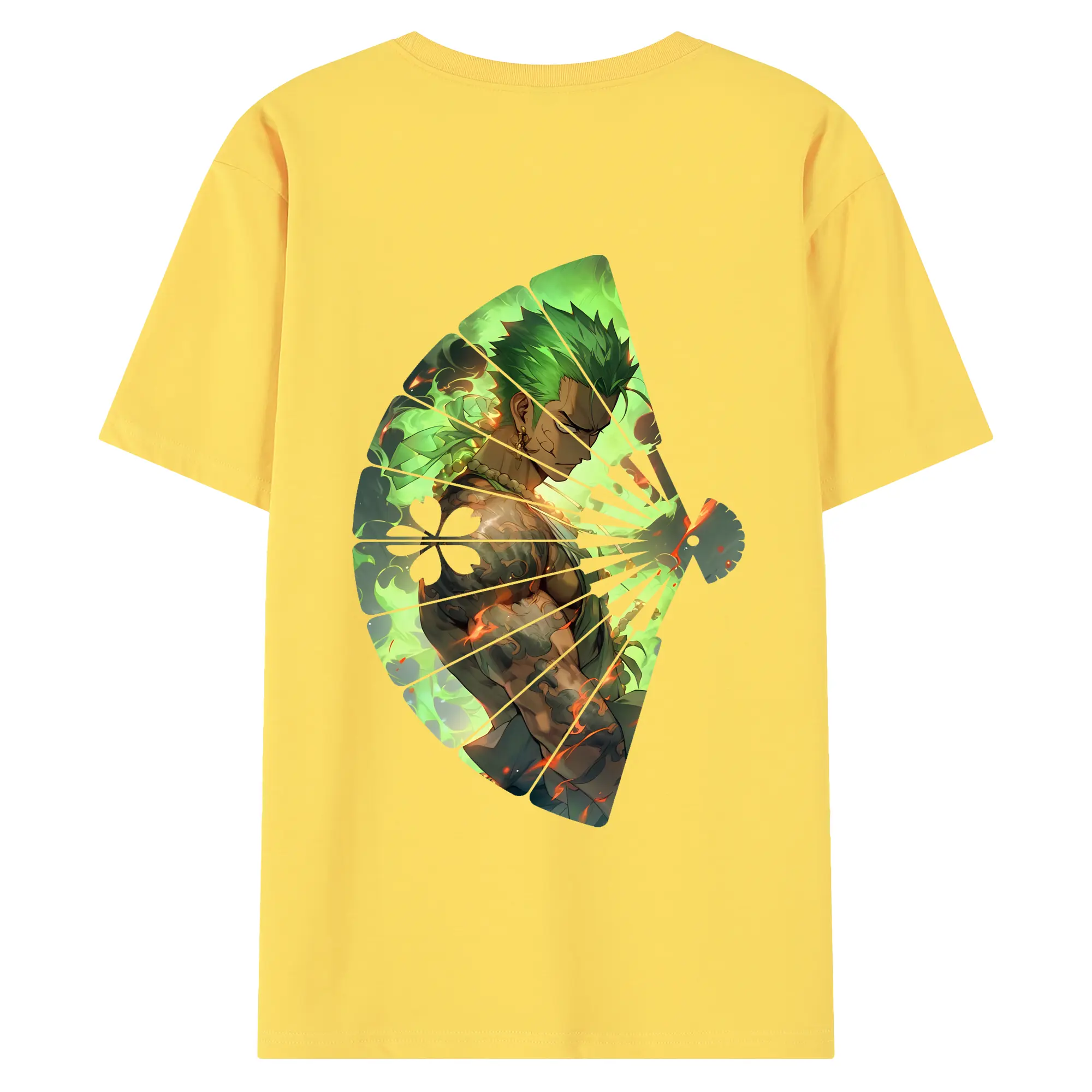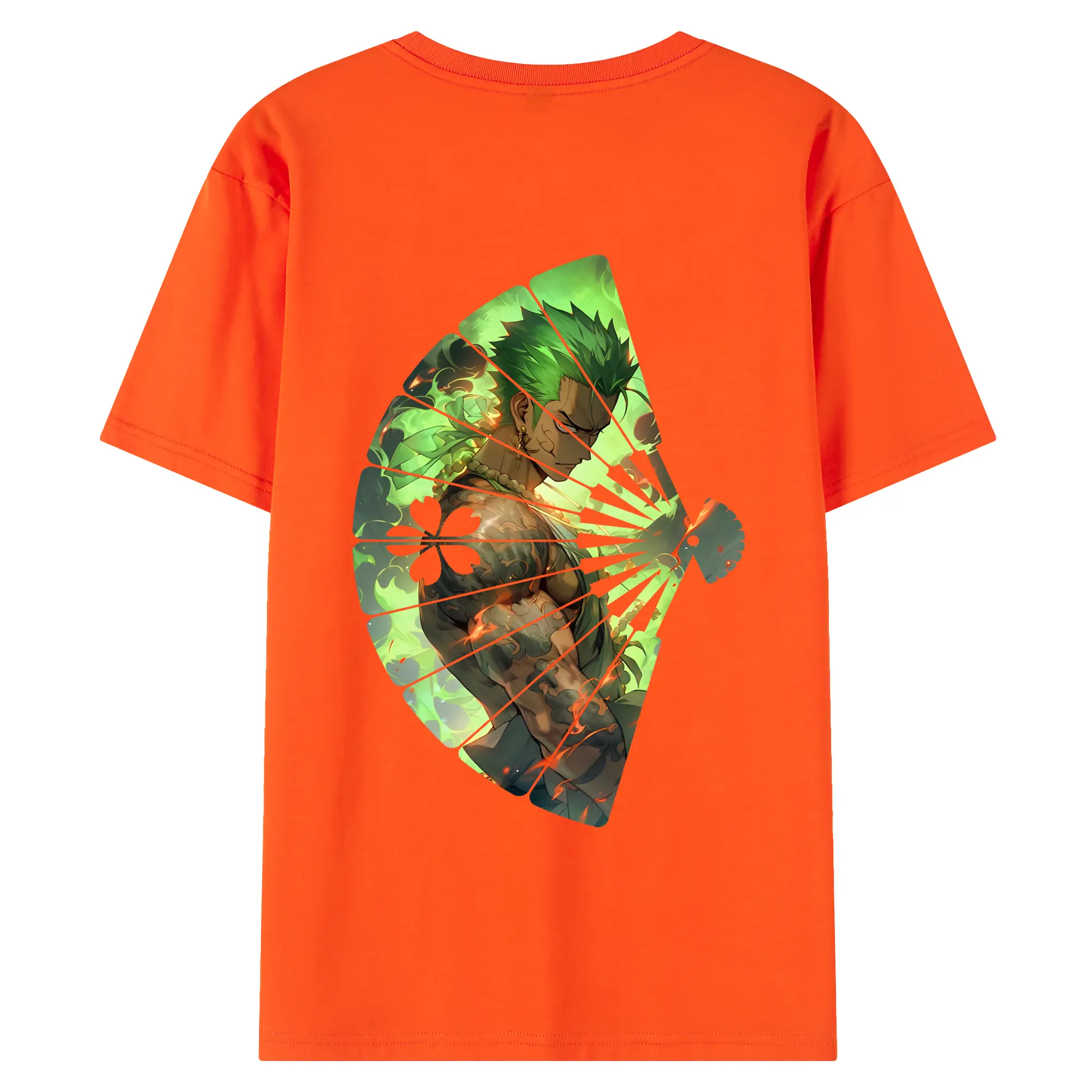 ワンピース グッズ ロロノア・ゾロ - 綿100% 半袖Tシャツ ・ フロントプリント ・ 快適 通気性 ・ 日常使い 散歩 スポーツ用