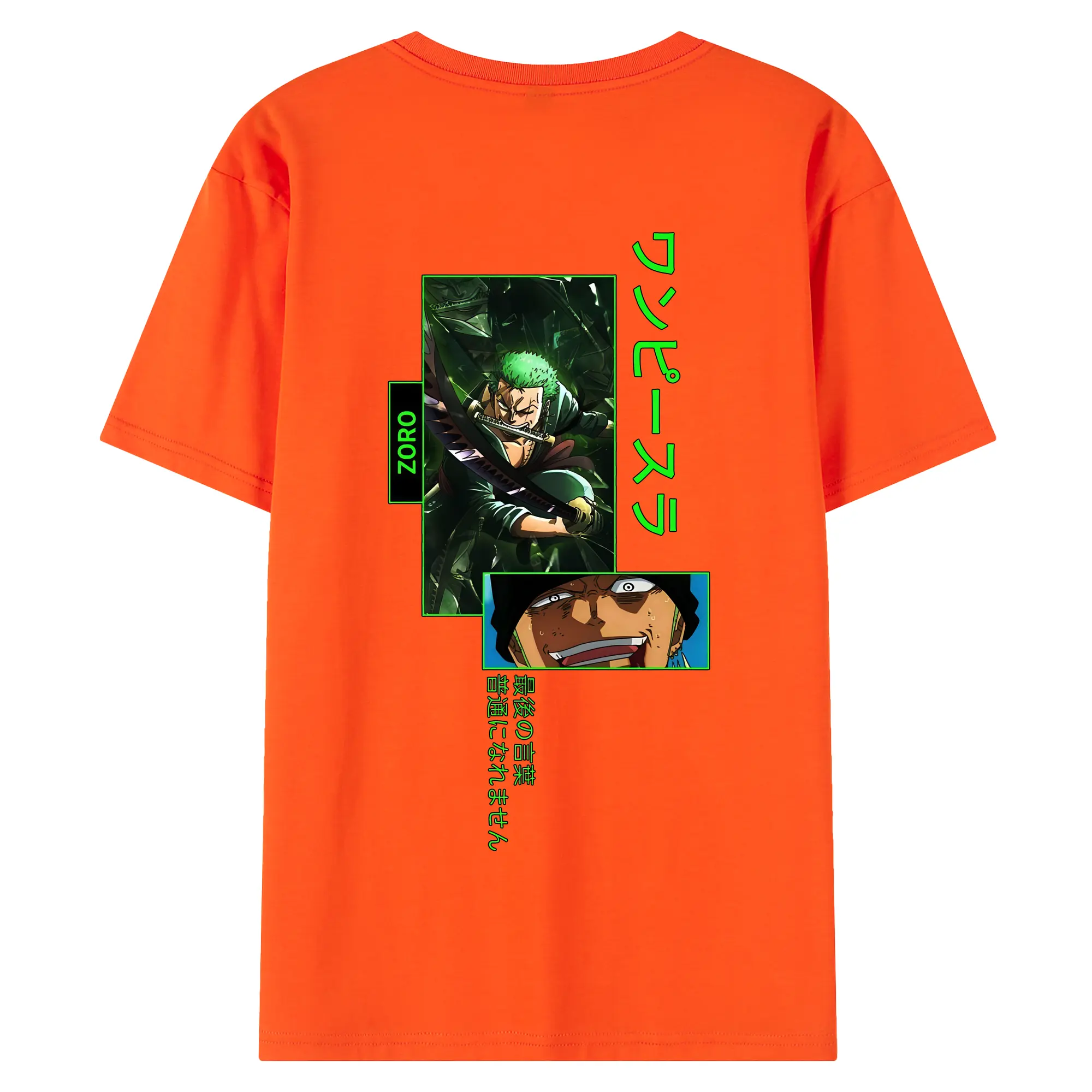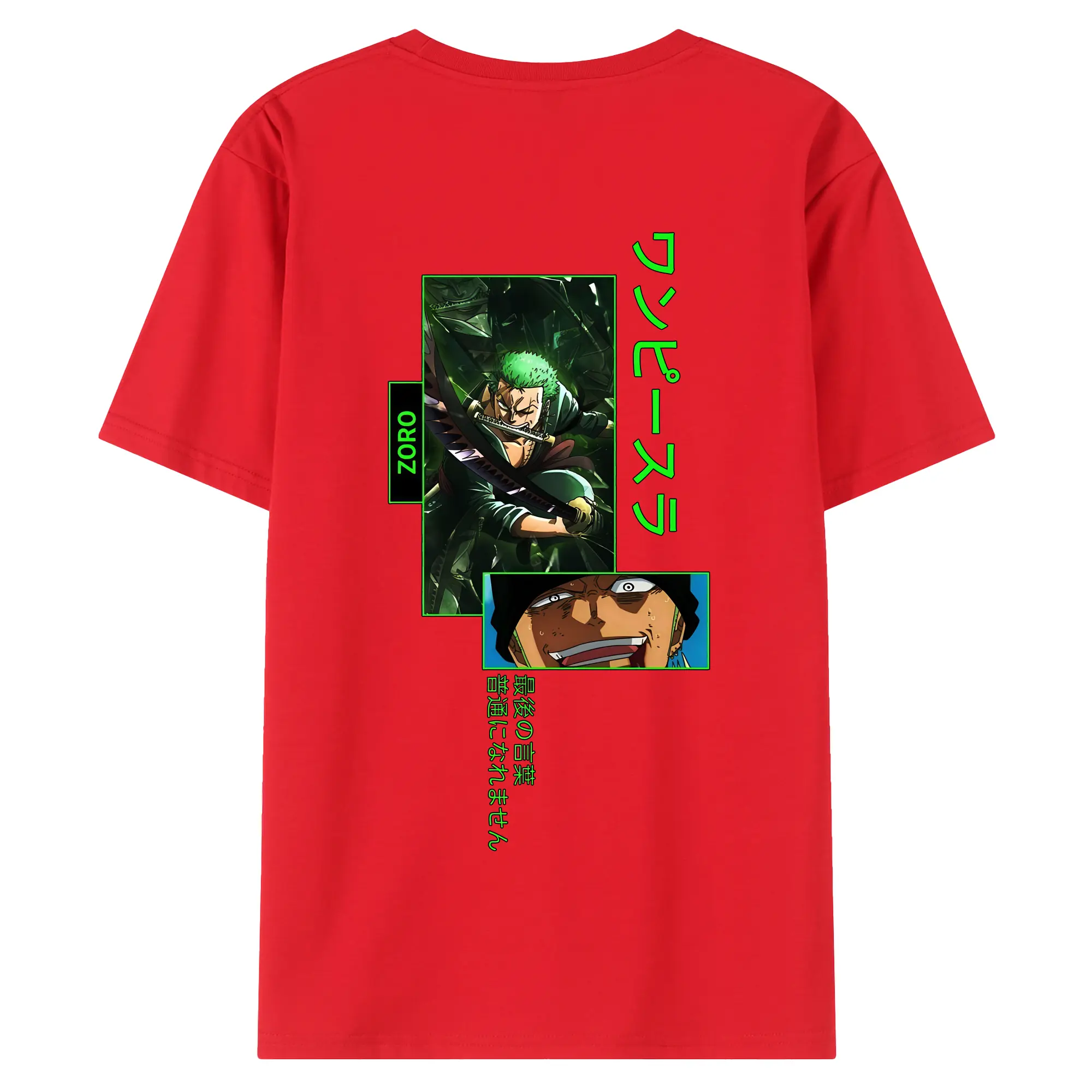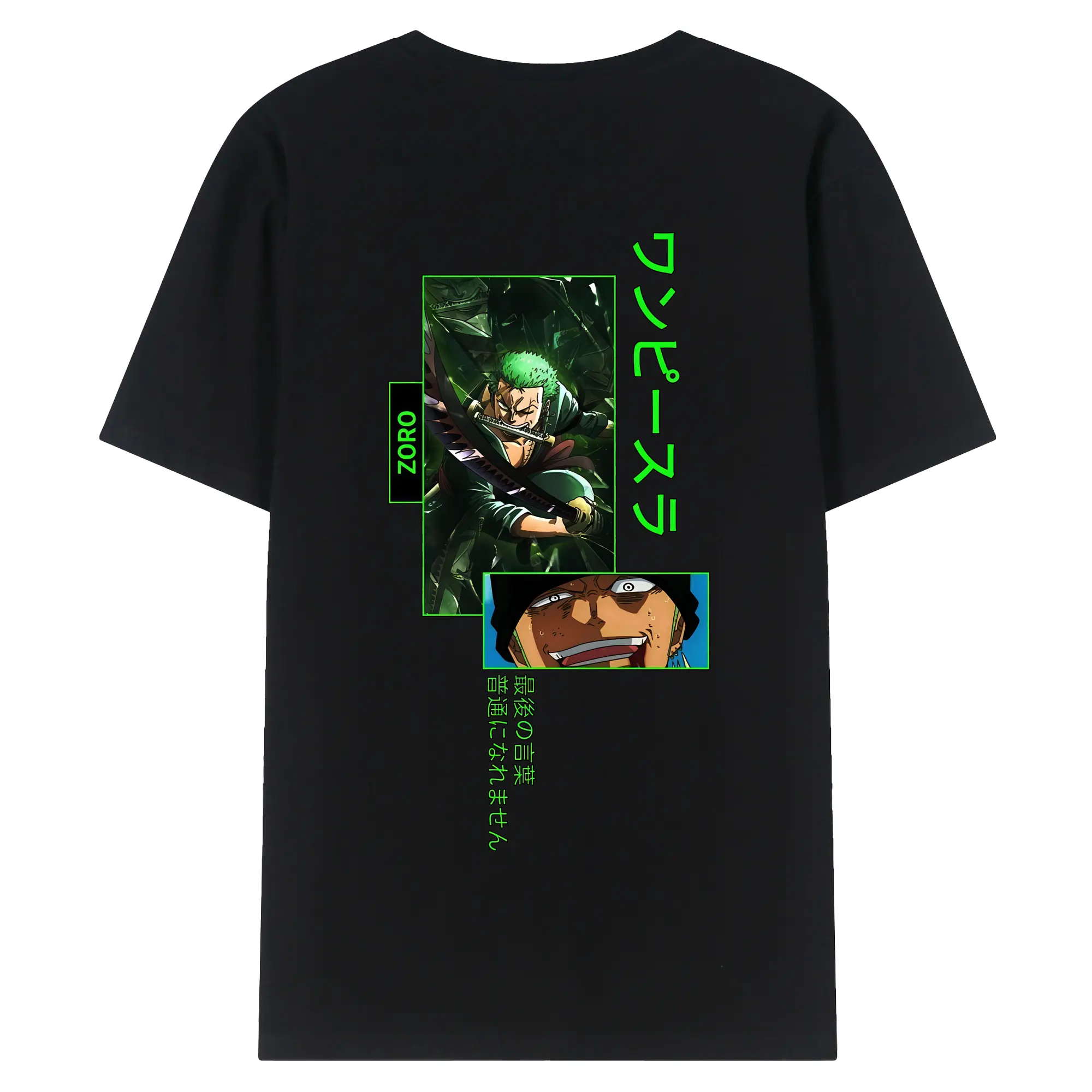 ワンピース グッズ ロロノア・ゾロ - 綿100% ヴィンテージ風 半袖Tシャツ ・ 背面プリント ・ 柔らか肌触り ・ 通気性 快適 ・ スポーツ カジュアル 外出用
