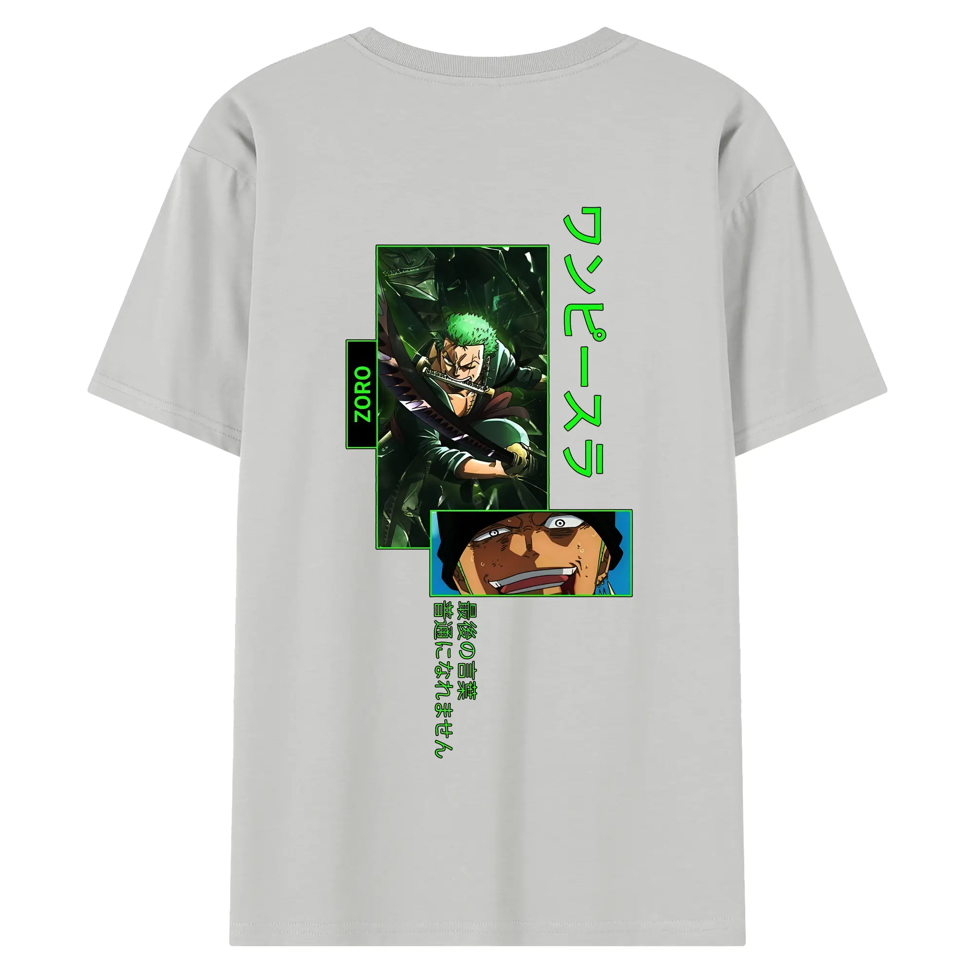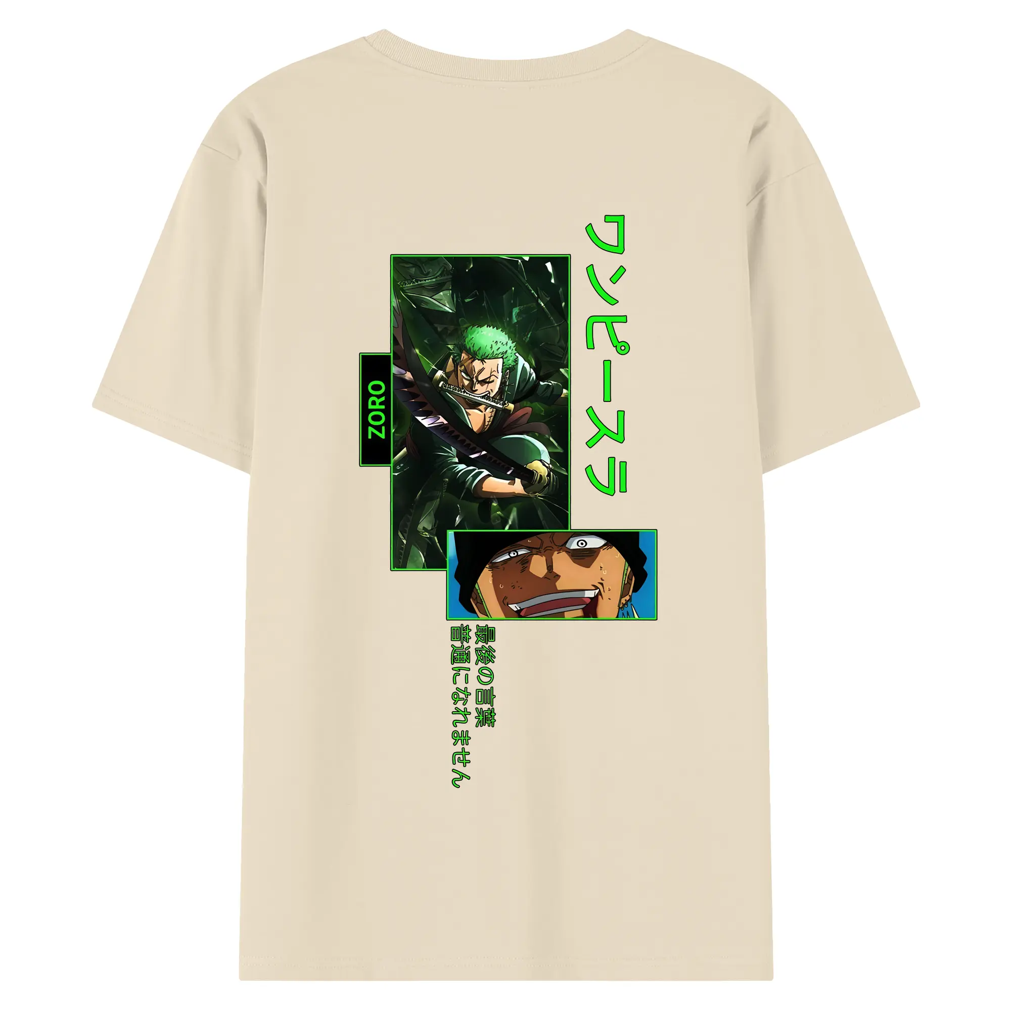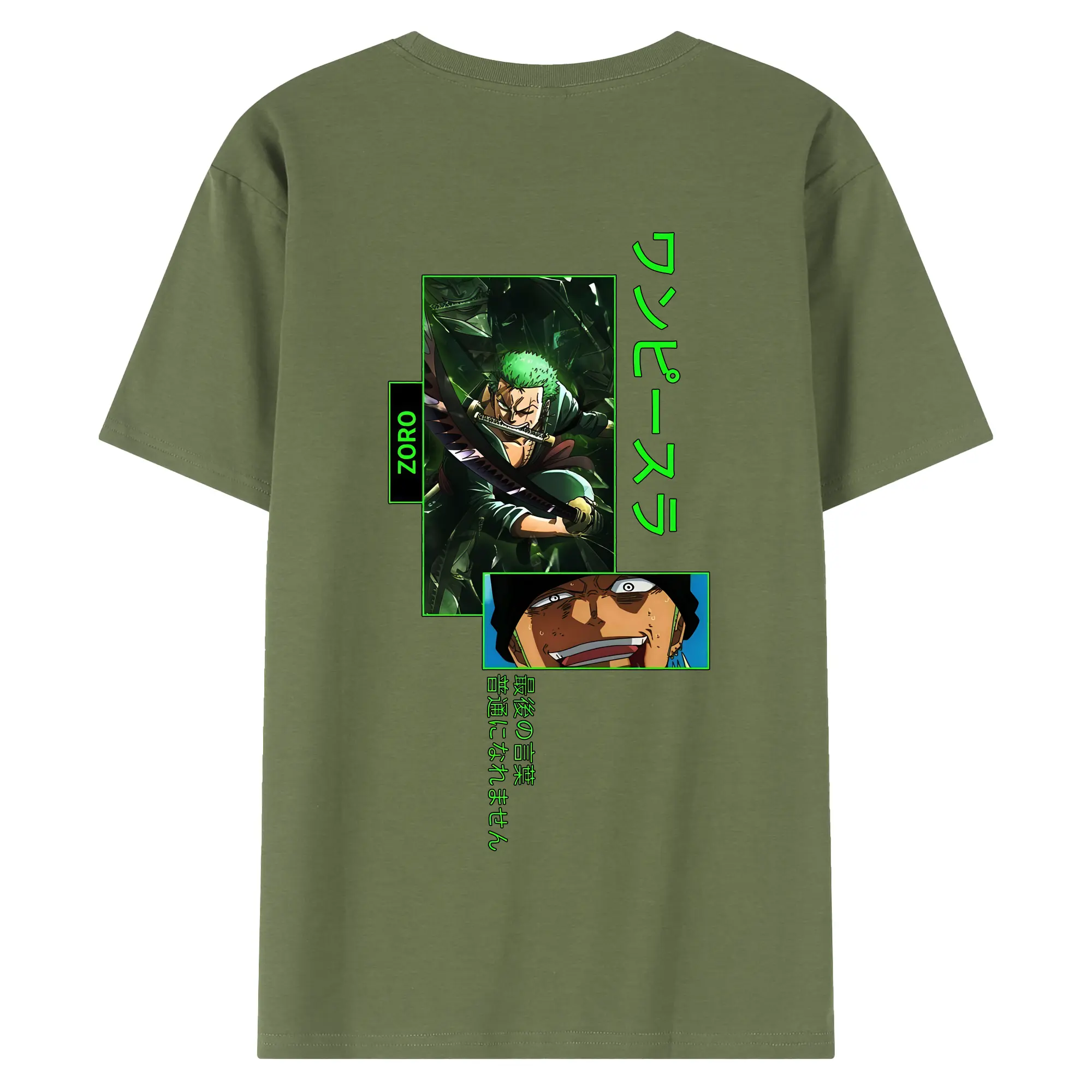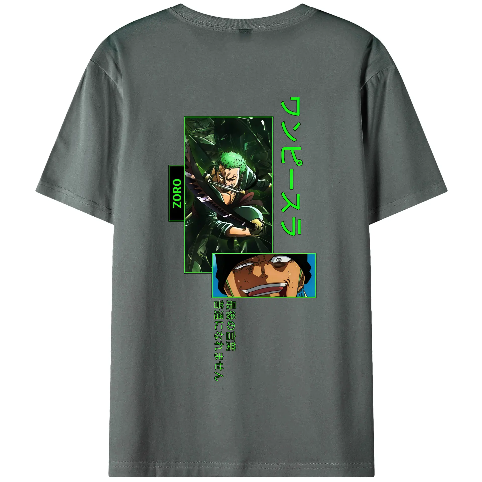 ワンピース グッズ ロロノア・ゾロ - 綿100% ヴィンテージ風 半袖Tシャツ ・ 背面プリント ・ 柔らか肌触り ・ 通気性 快適 ・ スポーツ カジュアル 外出用