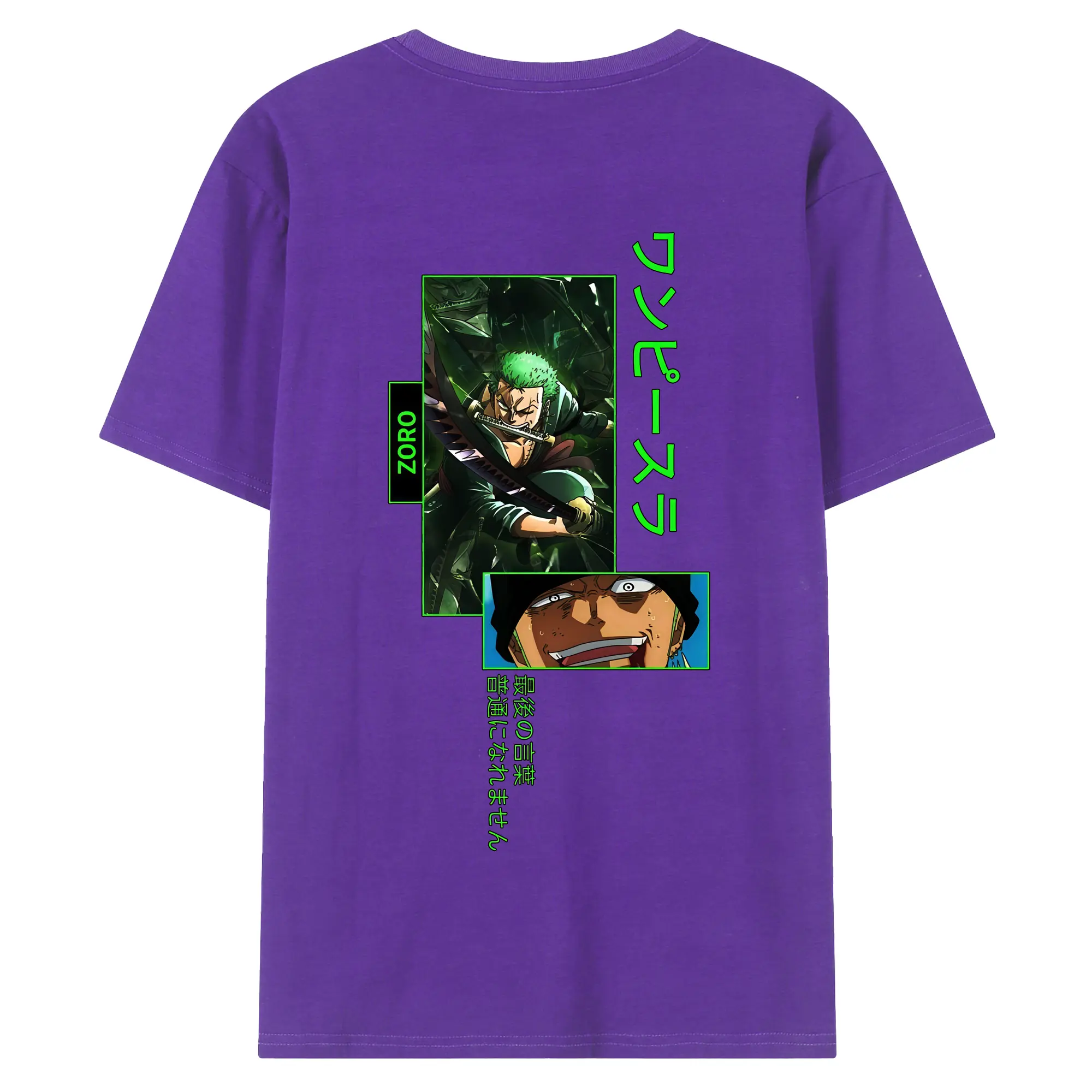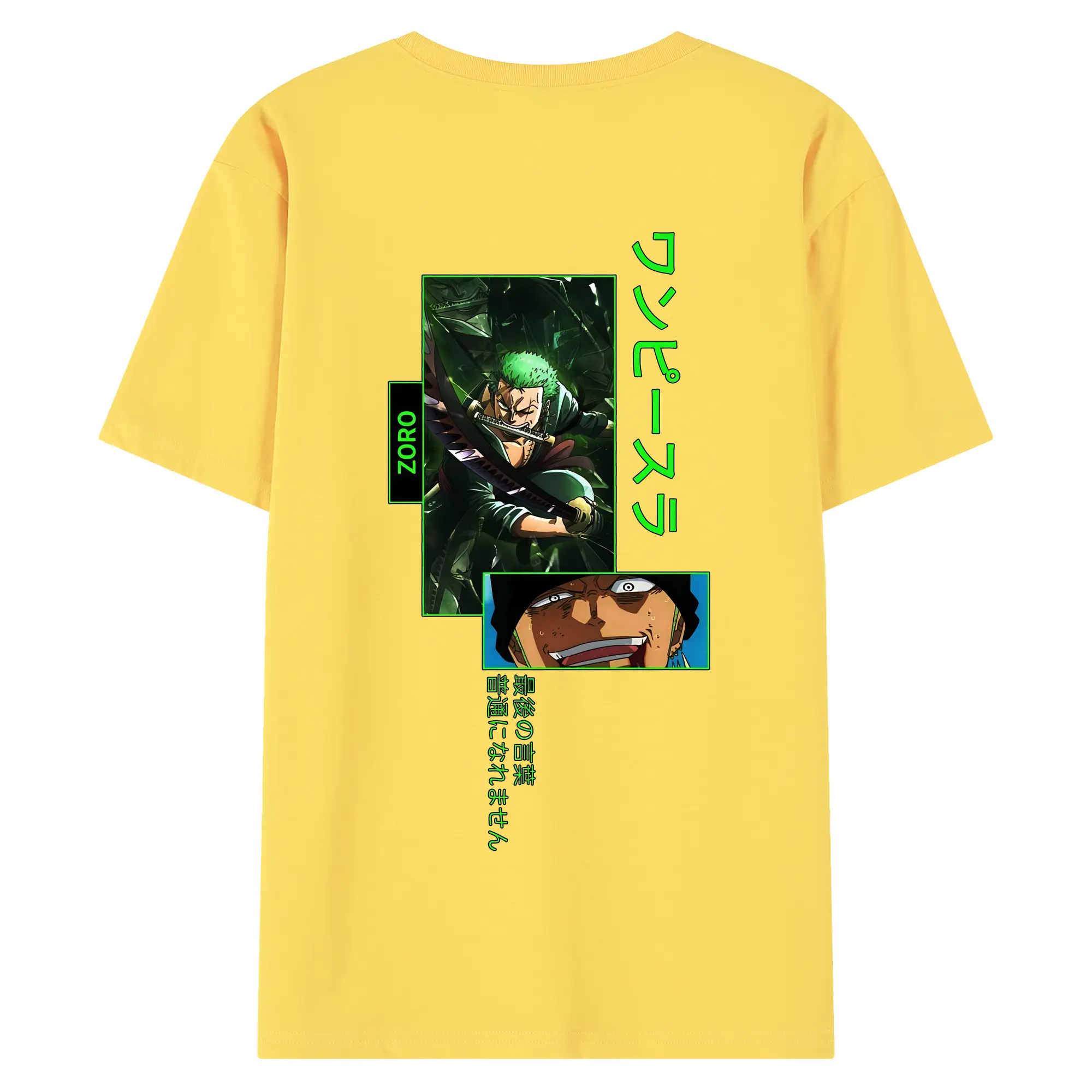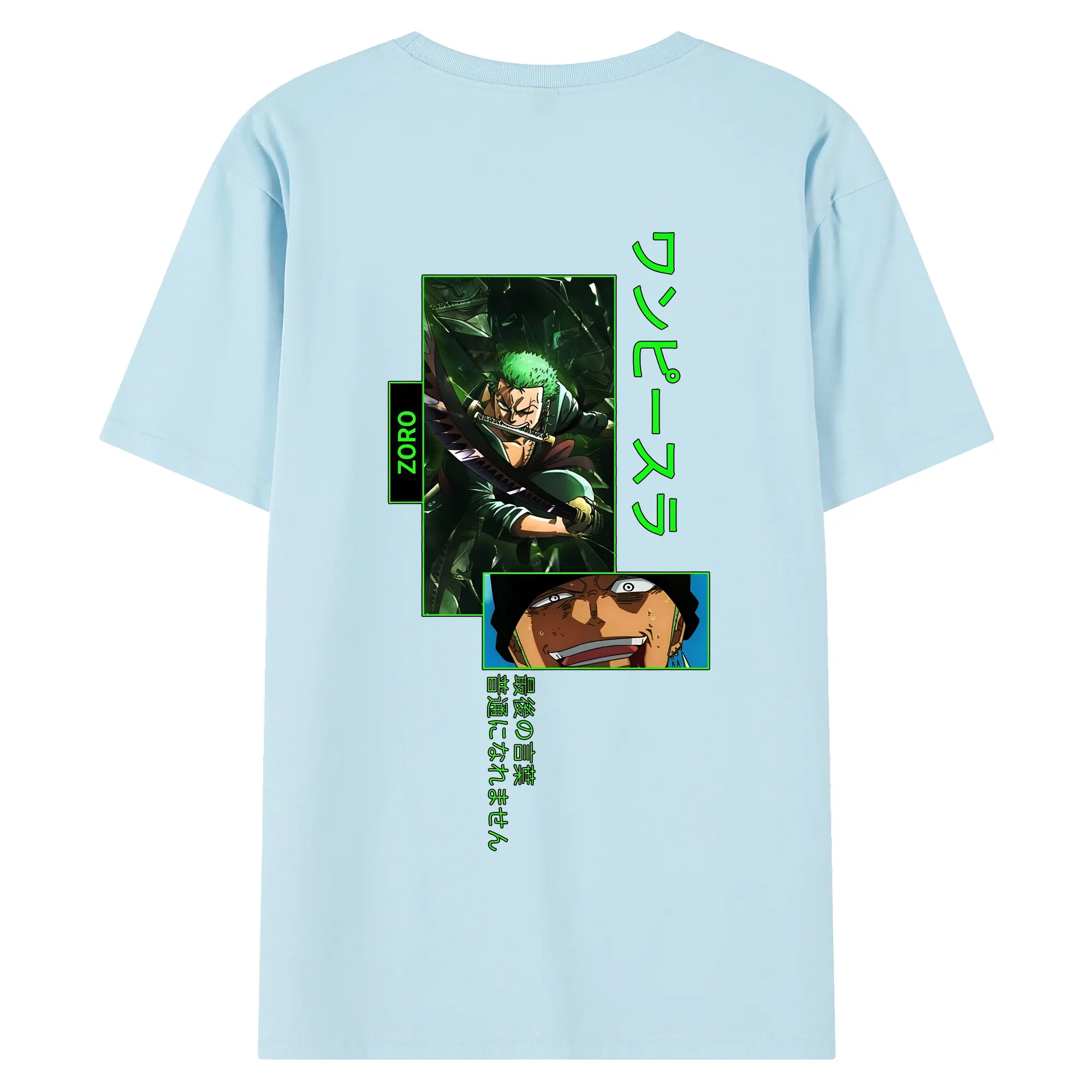 ワンピース グッズ ロロノア・ゾロ - 綿100% 半袖Tシャツ ・ フロントプリント ・ 快適 通気性 ・ 日常使い 散歩 スポーツ用