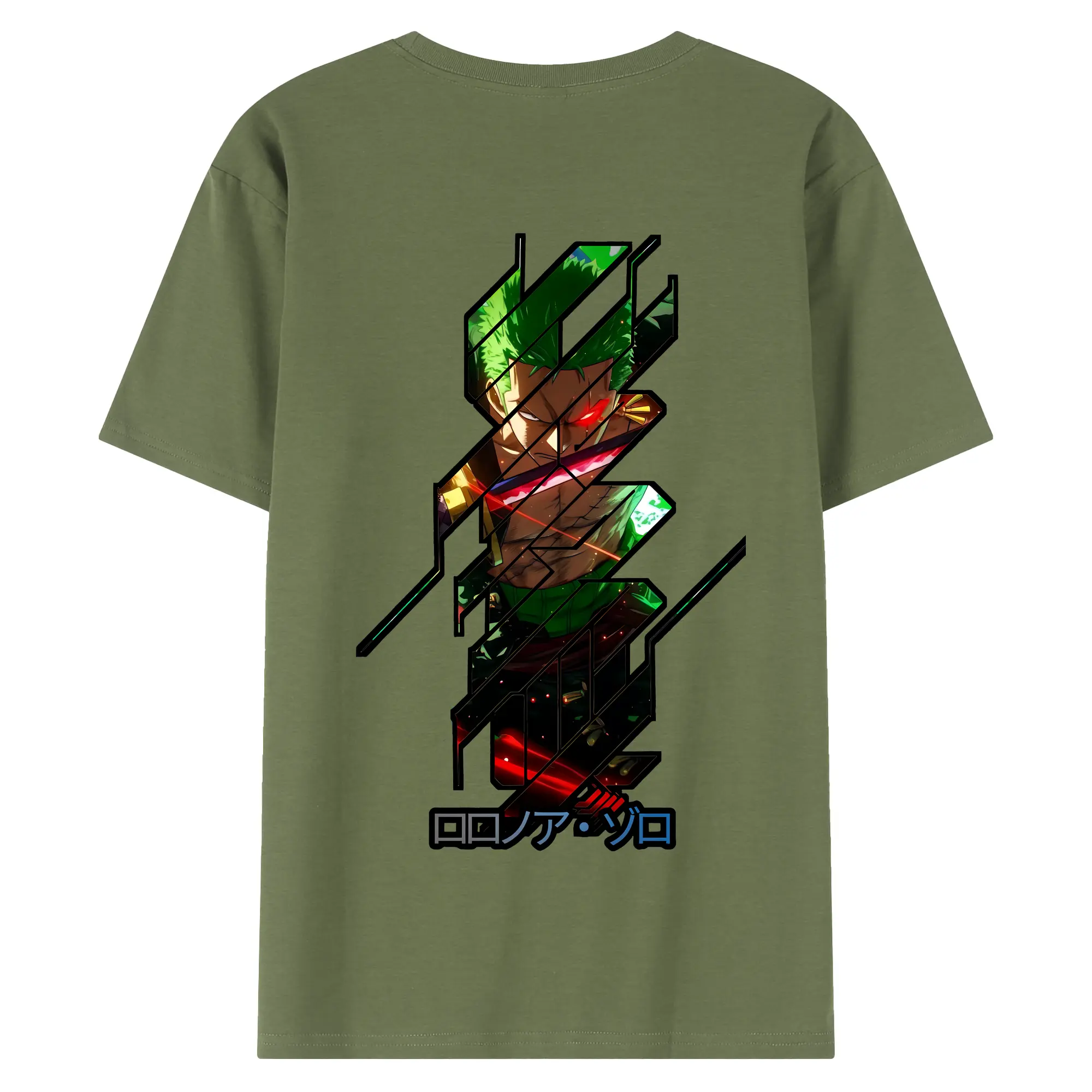 ワンピース グッズ ロロノア・ゾロ - 綿100% 半袖Tシャツ ・ フロントプリント ・ 快適 通気性 ・ 日常使い 散歩 スポーツ用