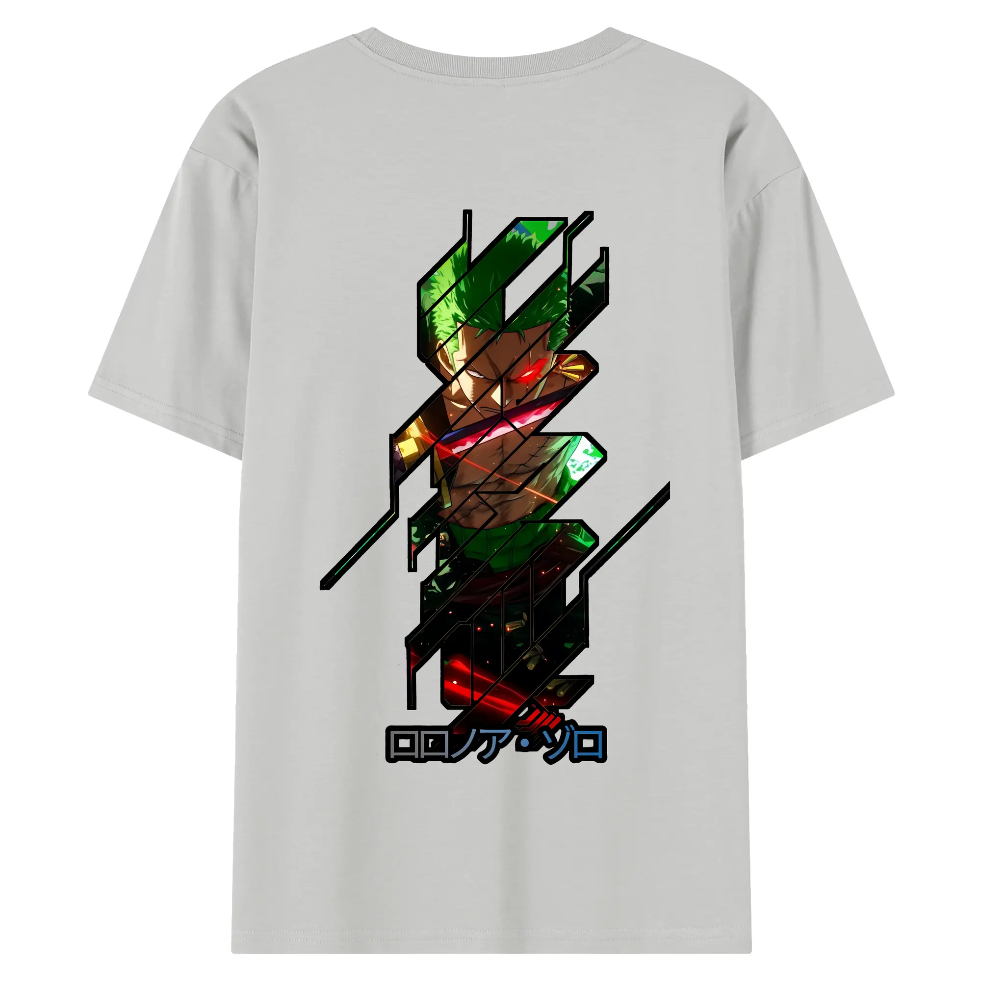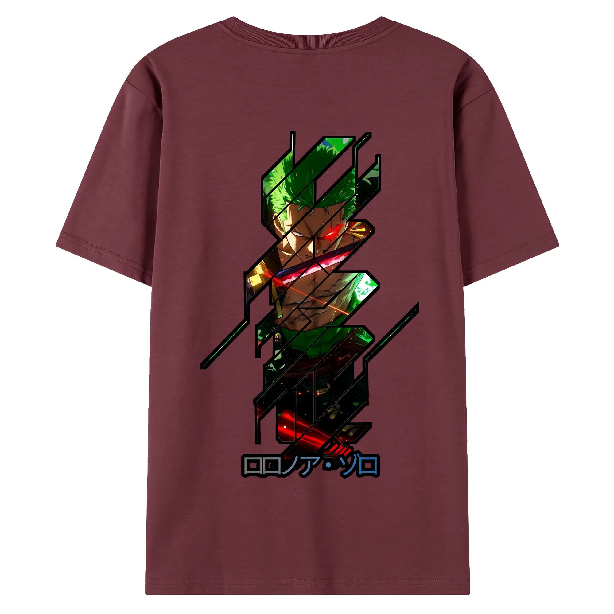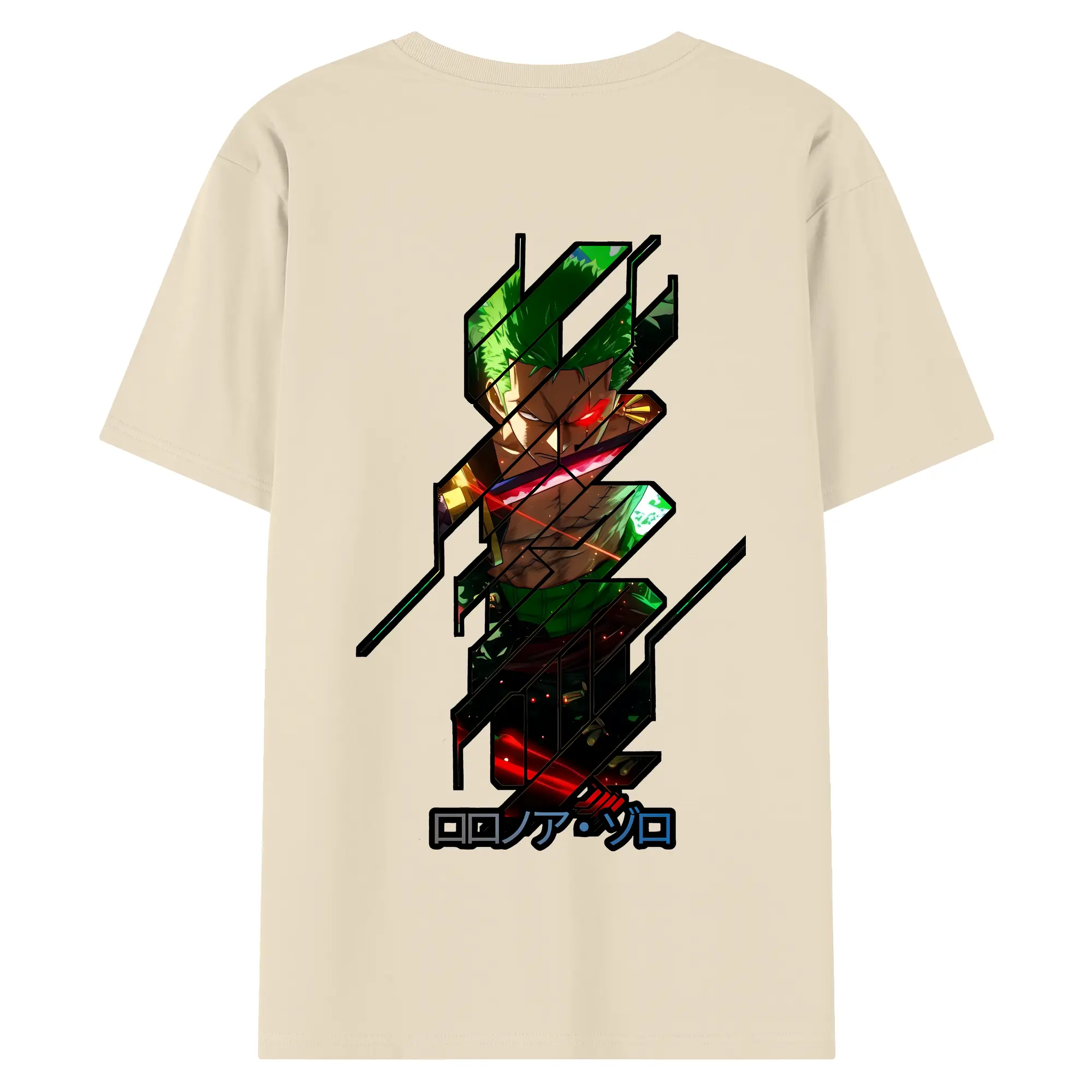 ワンピース グッズ ロロノア・ゾロ - 綿100% ヴィンテージ風 半袖Tシャツ ・ 背面プリント ・ 柔らか肌触り ・ 通気性 快適 ・ スポーツ カジュアル 外出用