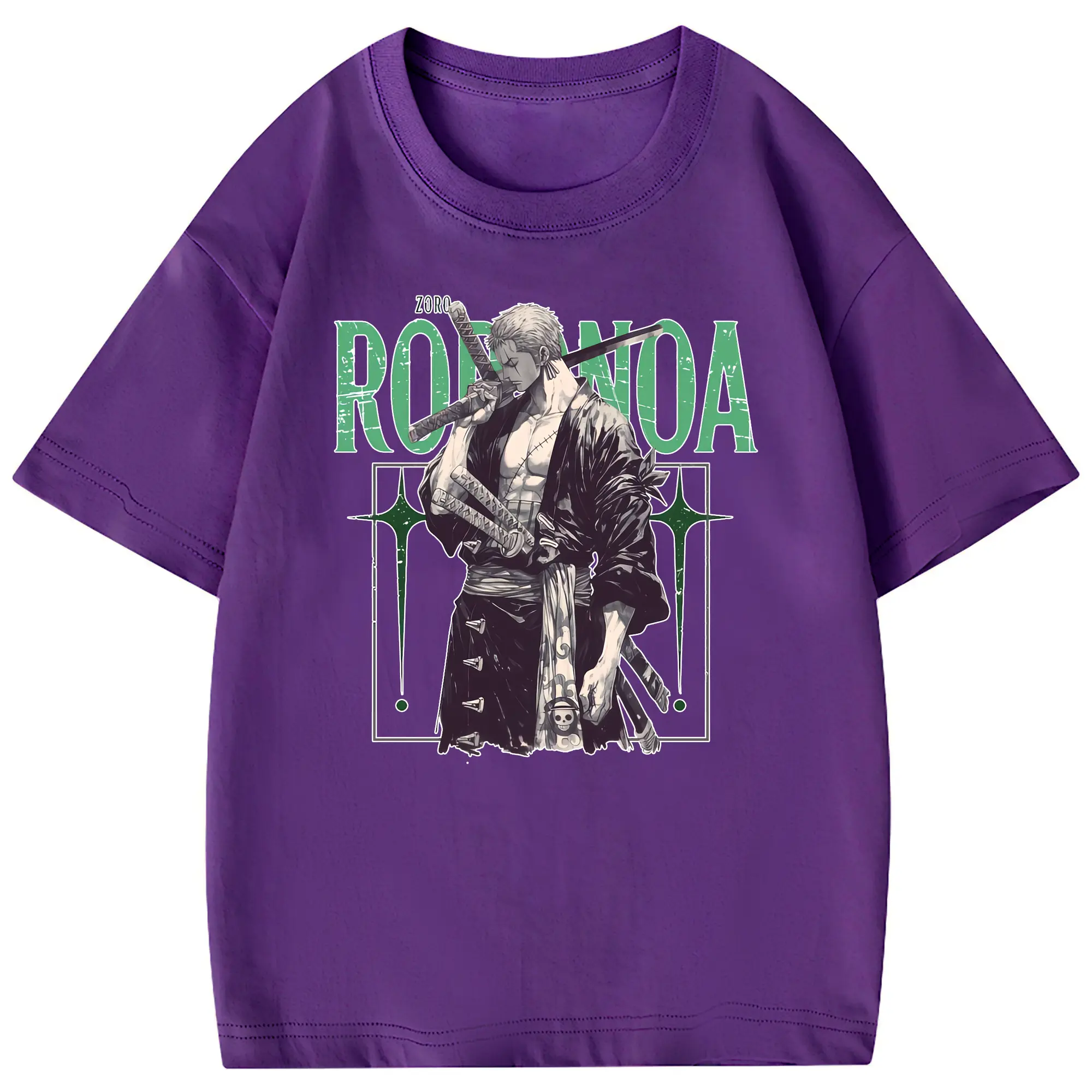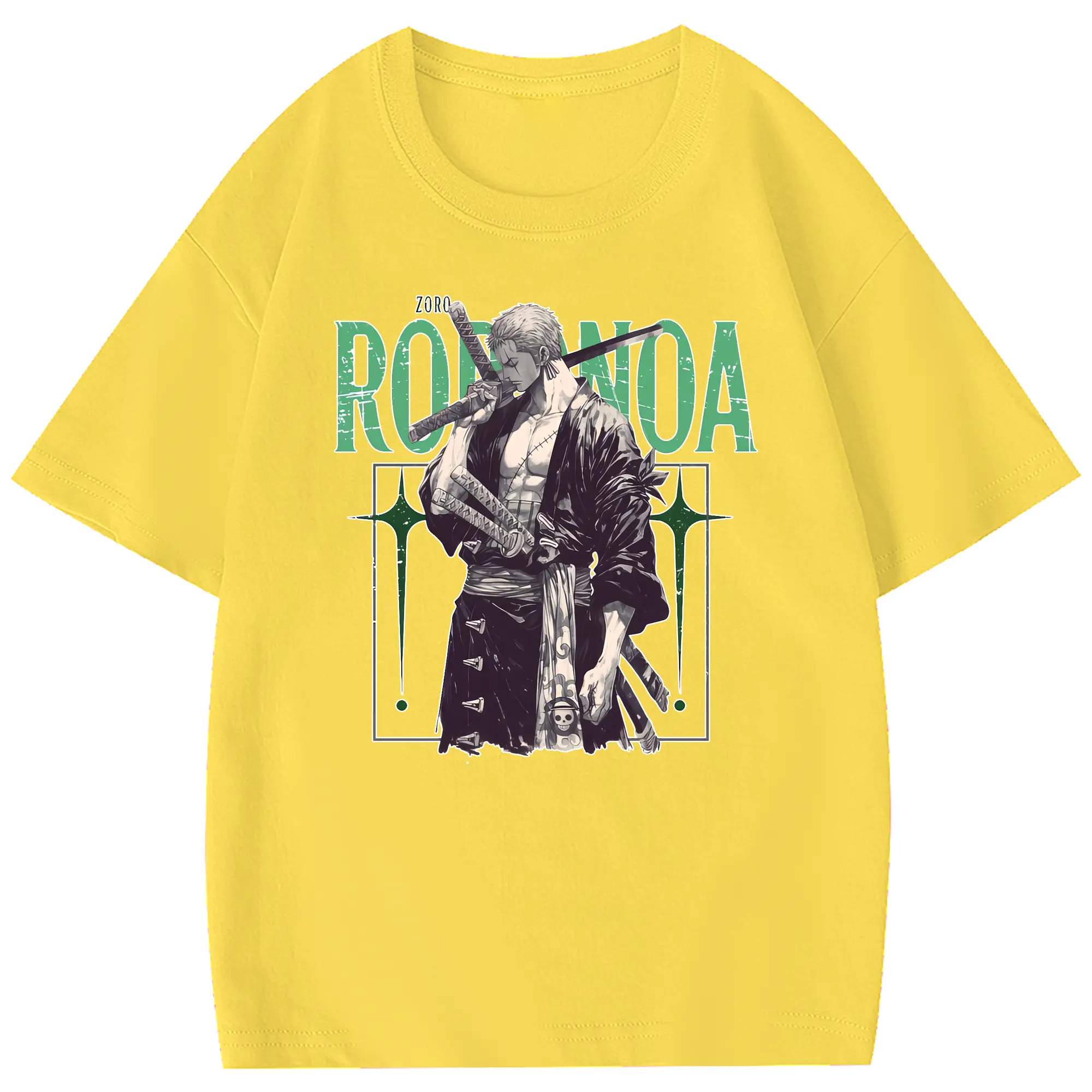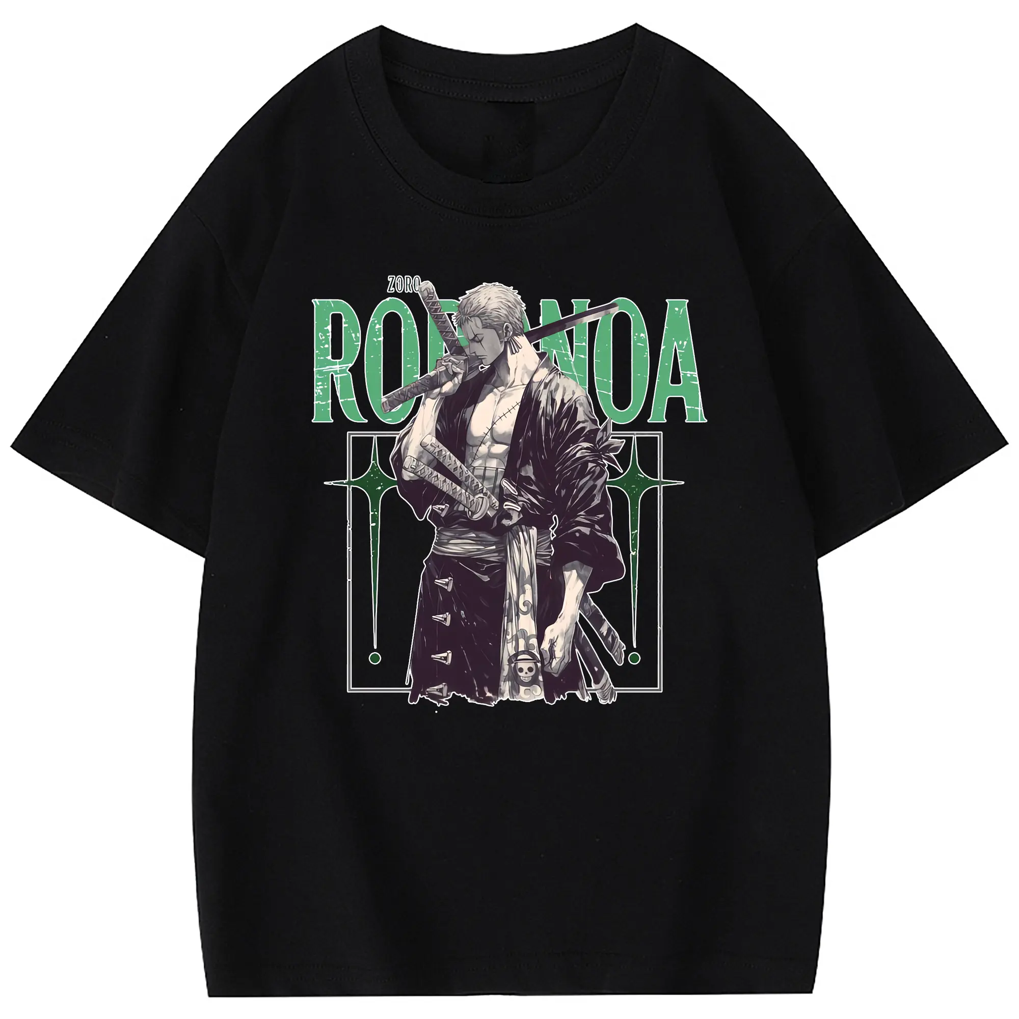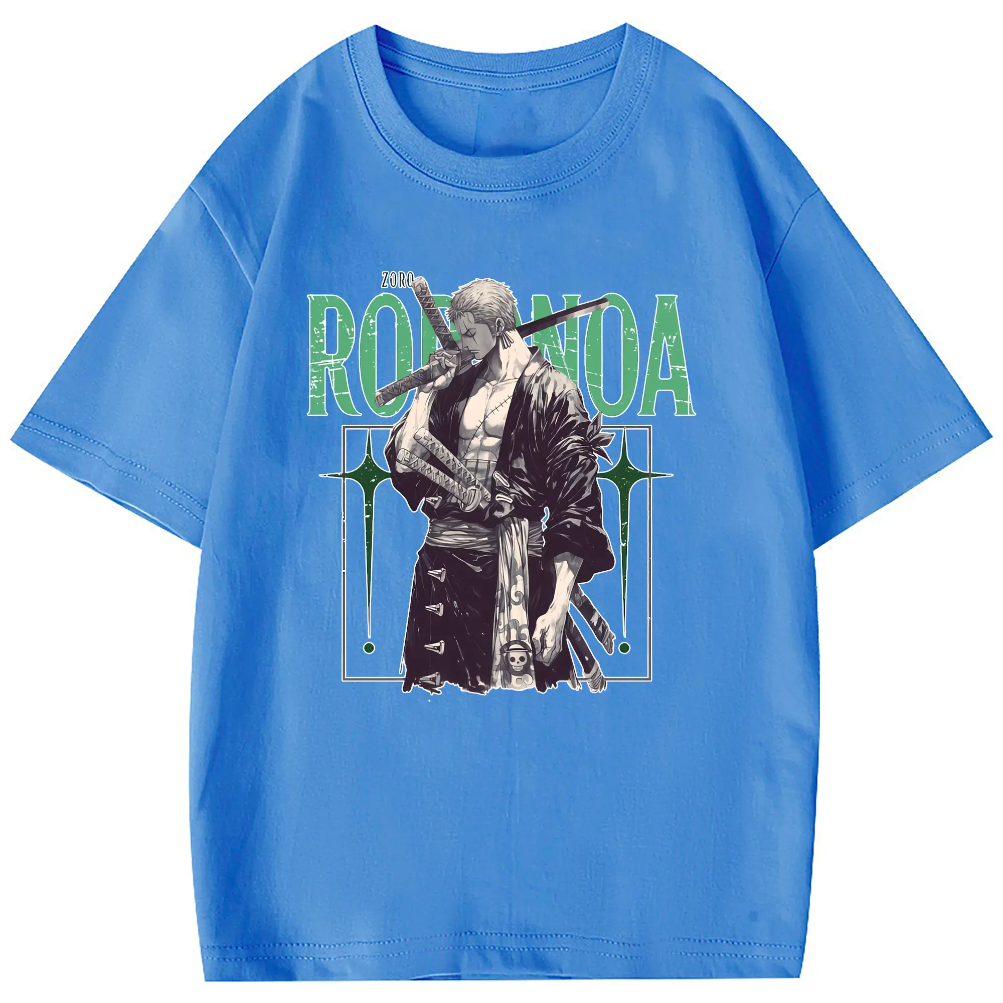 ワンピース グッズ ロロノア・ゾロ - 綿100% 半袖Tシャツ ・ フロントプリント ・ 快適 通気性 ・ 日常使い 散歩 スポーツ用