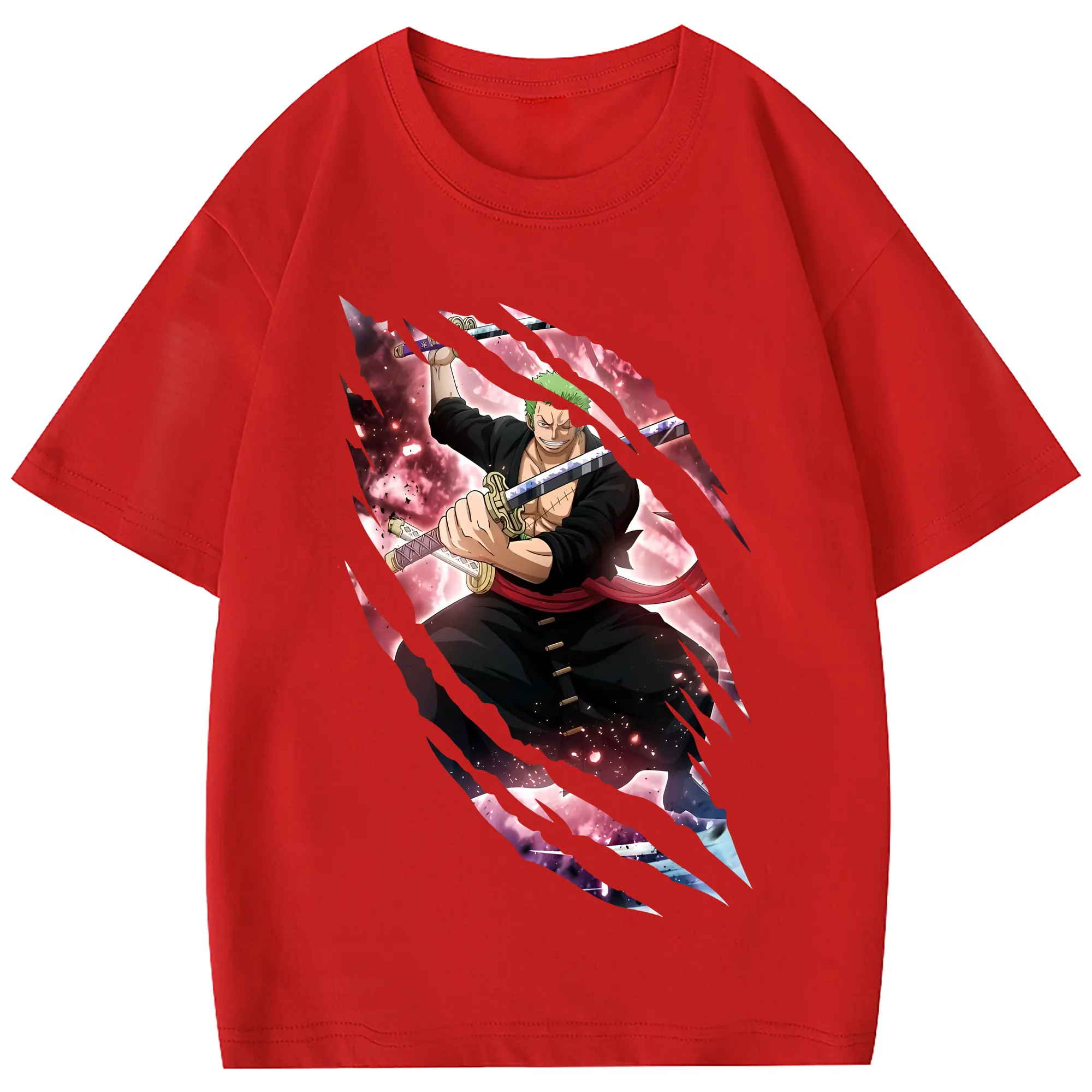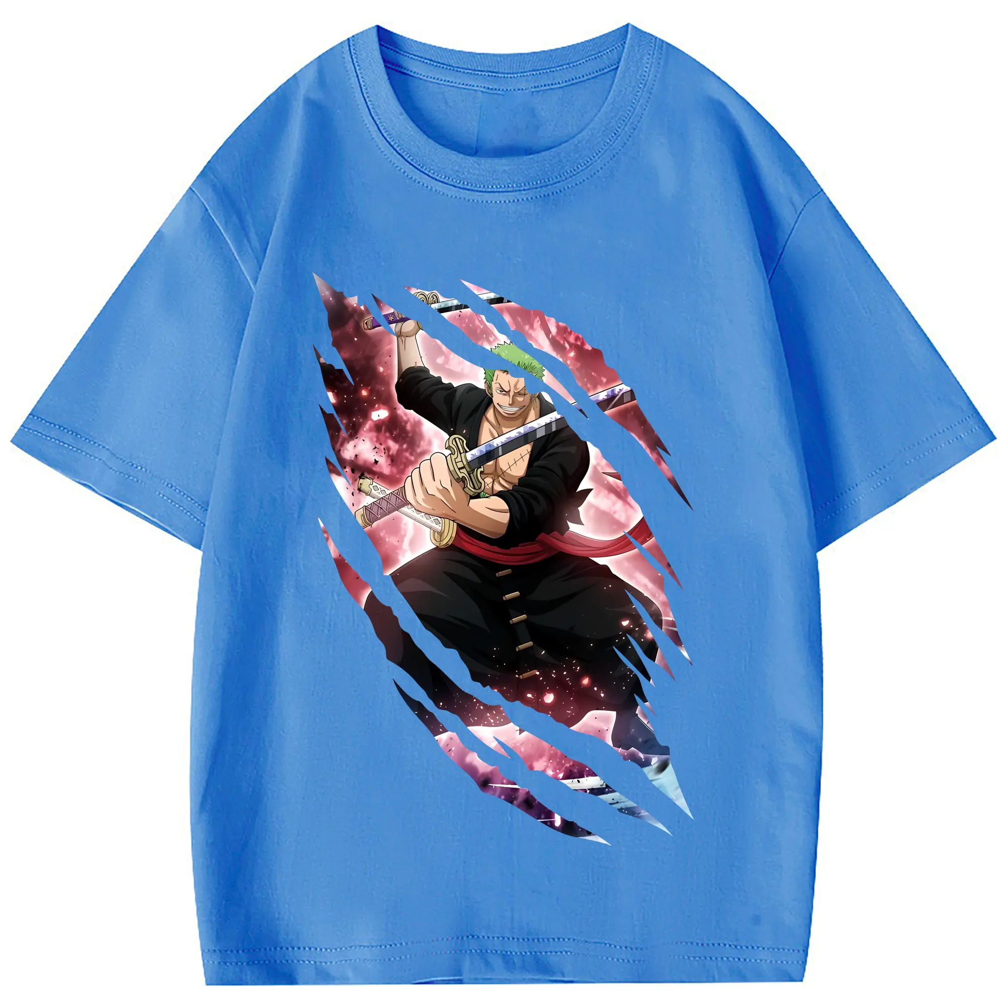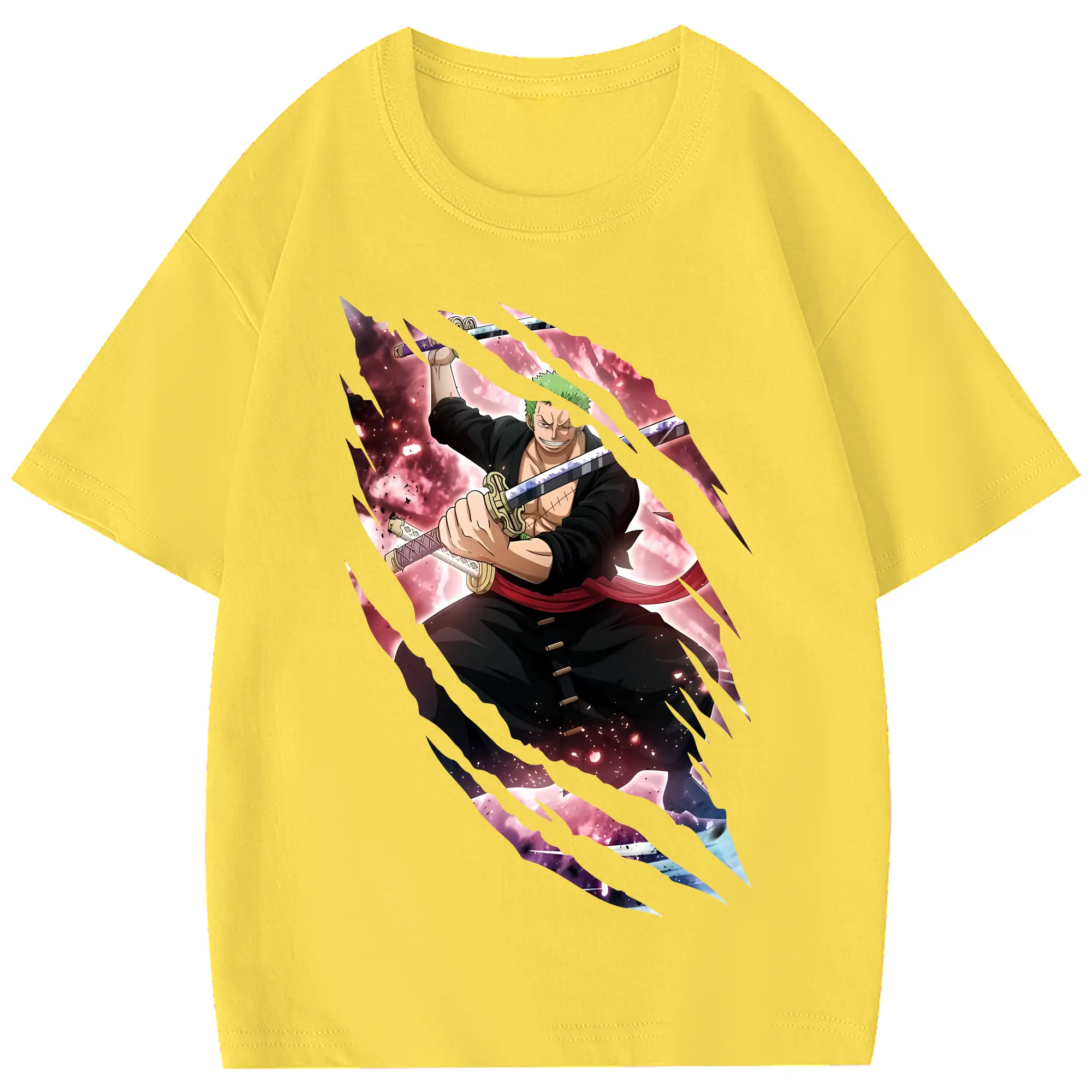 ワンピース グッズ ロロノア・ゾロ - 綿100% 半袖Tシャツ ・ フロントプリント ・ 快適 通気性 ・ 日常使い 散歩 スポーツ用