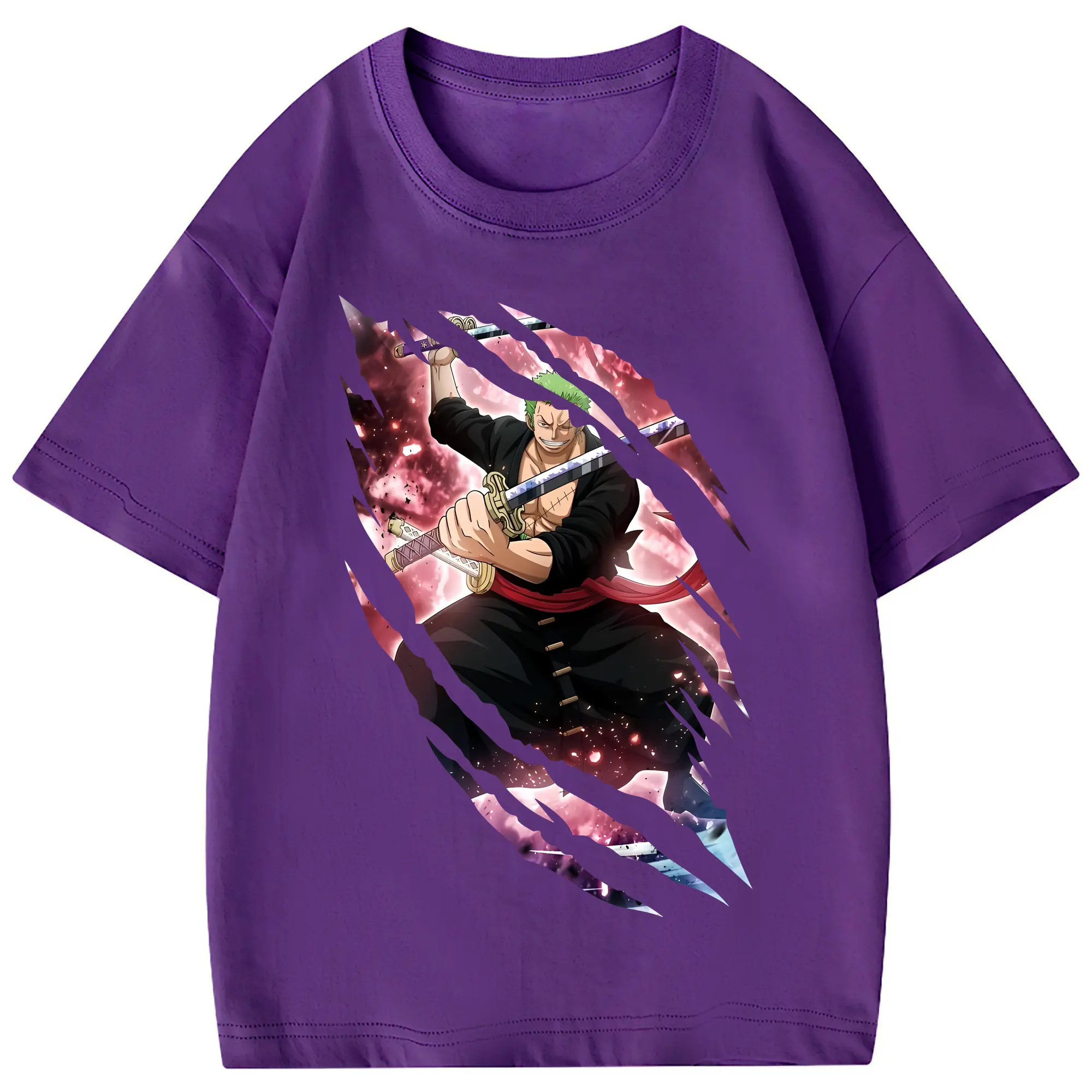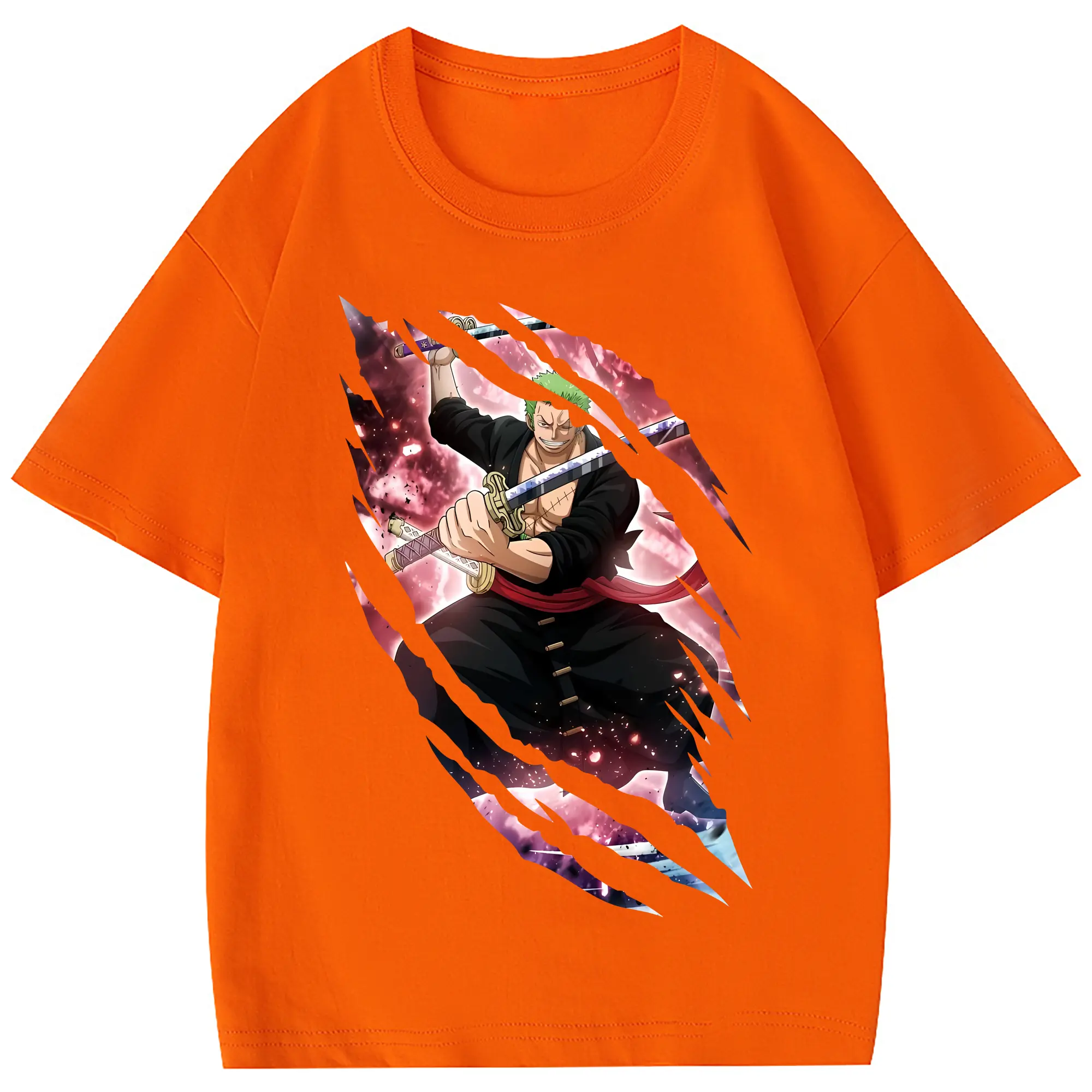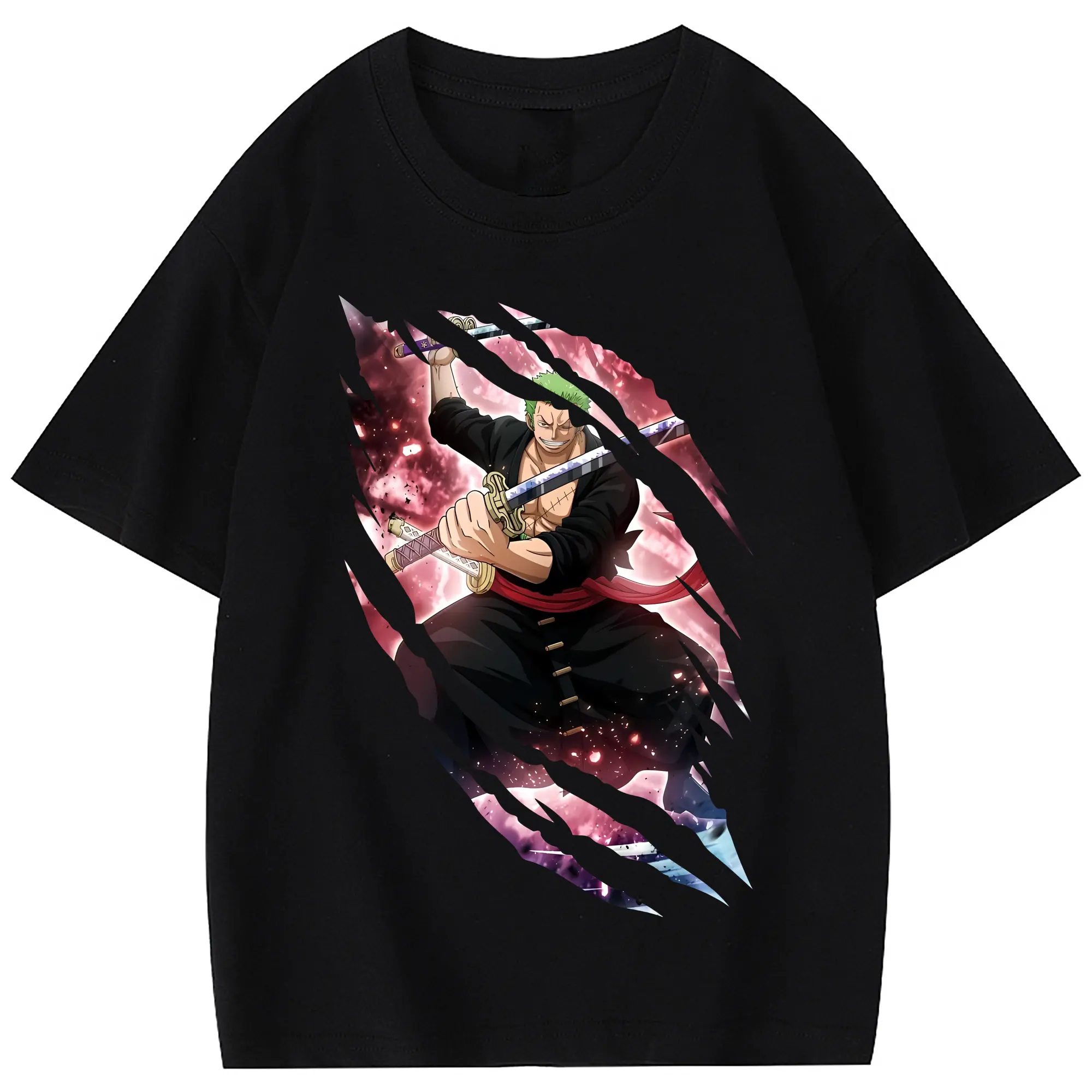 ワンピース グッズ ロロノア・ゾロ - 綿100% 半袖Tシャツ ・ フロントプリント ・ 快適 通気性 ・ 日常使い 散歩 スポーツ用