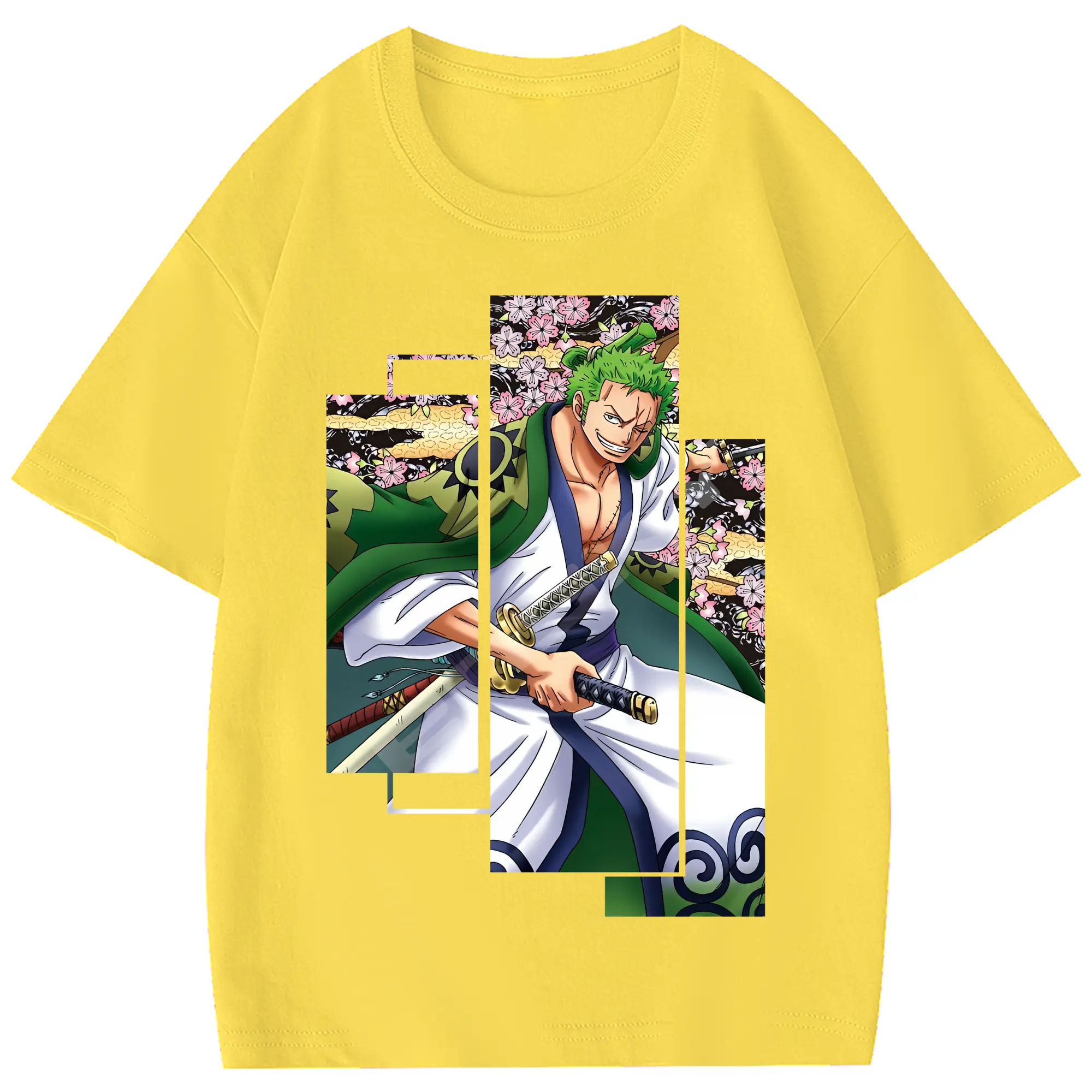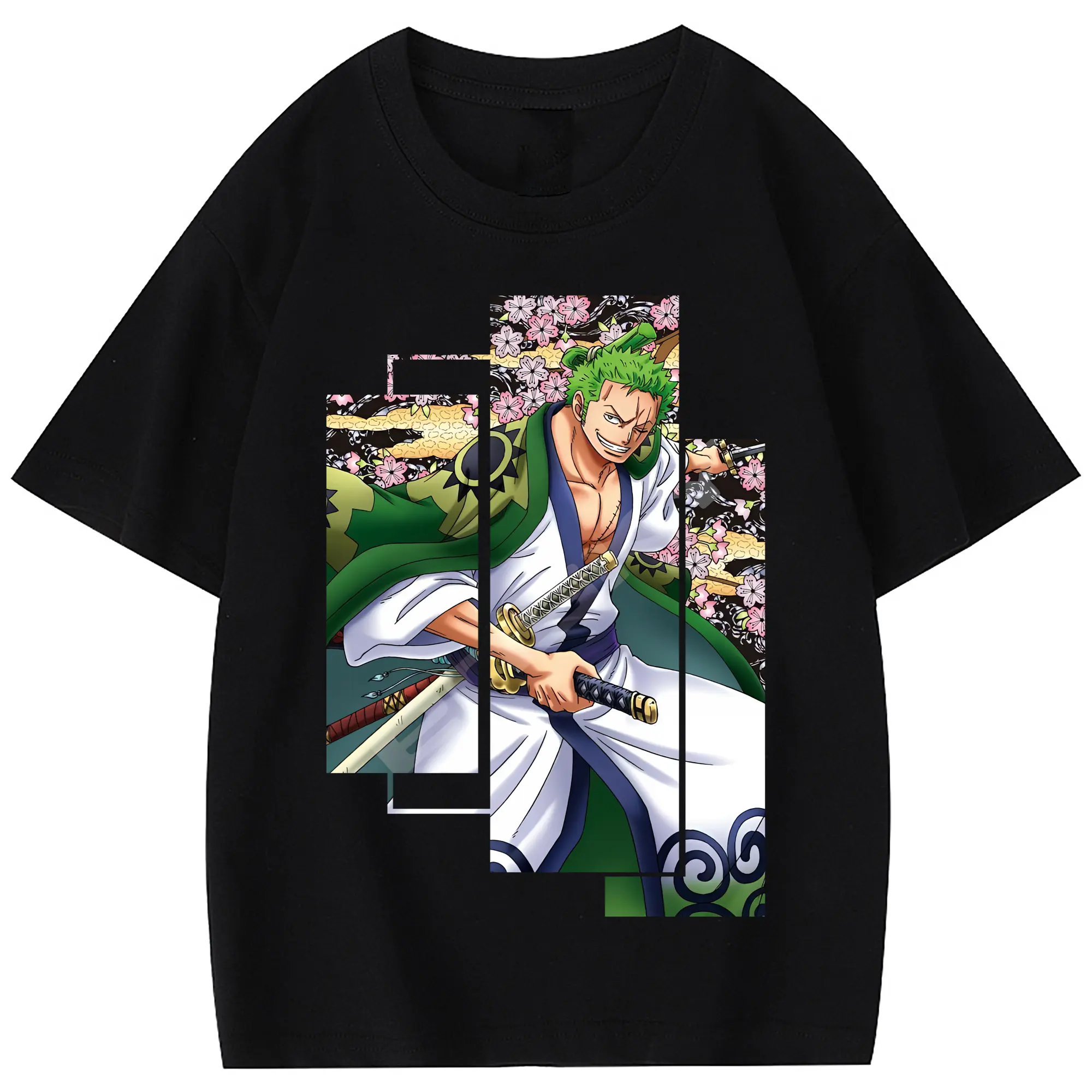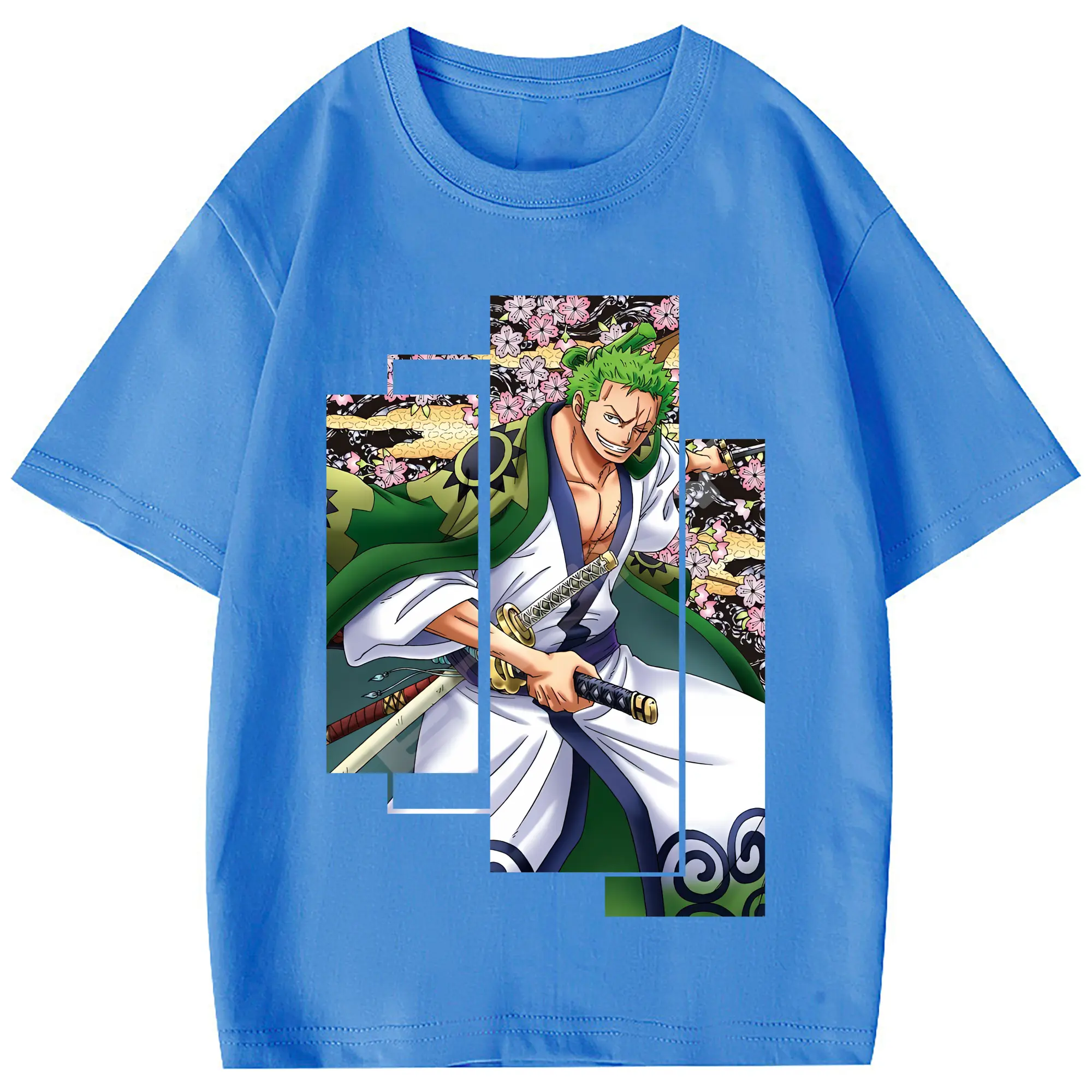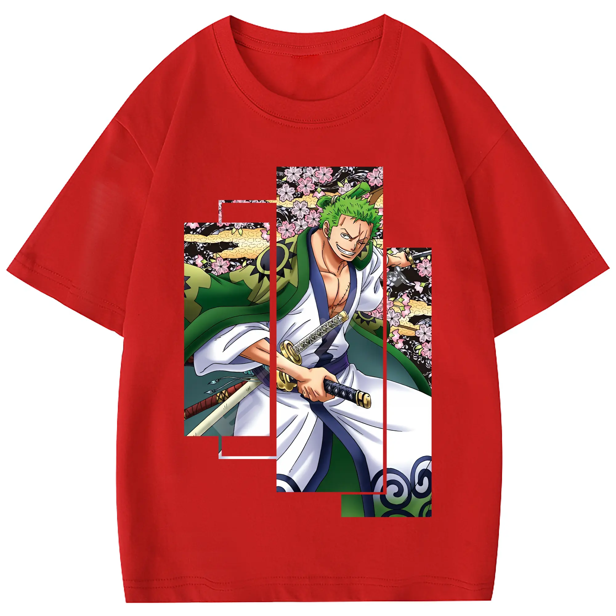 ワンピース グッズ ロロノア・ゾロ - 綿100% 半袖Tシャツ ・ フロントプリント ・ 快適 通気性 ・ 日常使い 散歩 スポーツ用