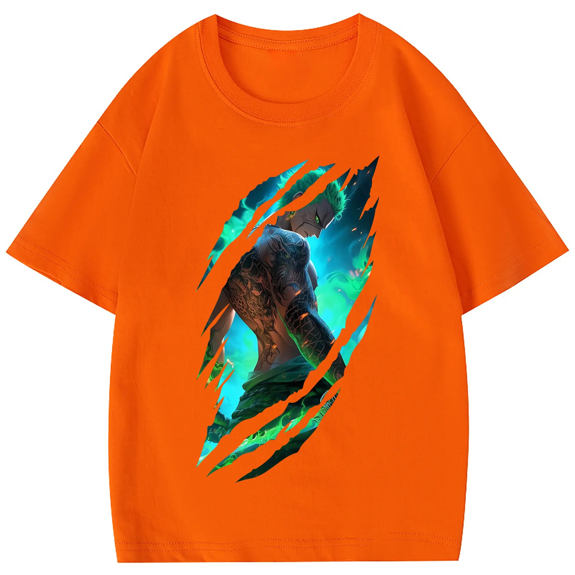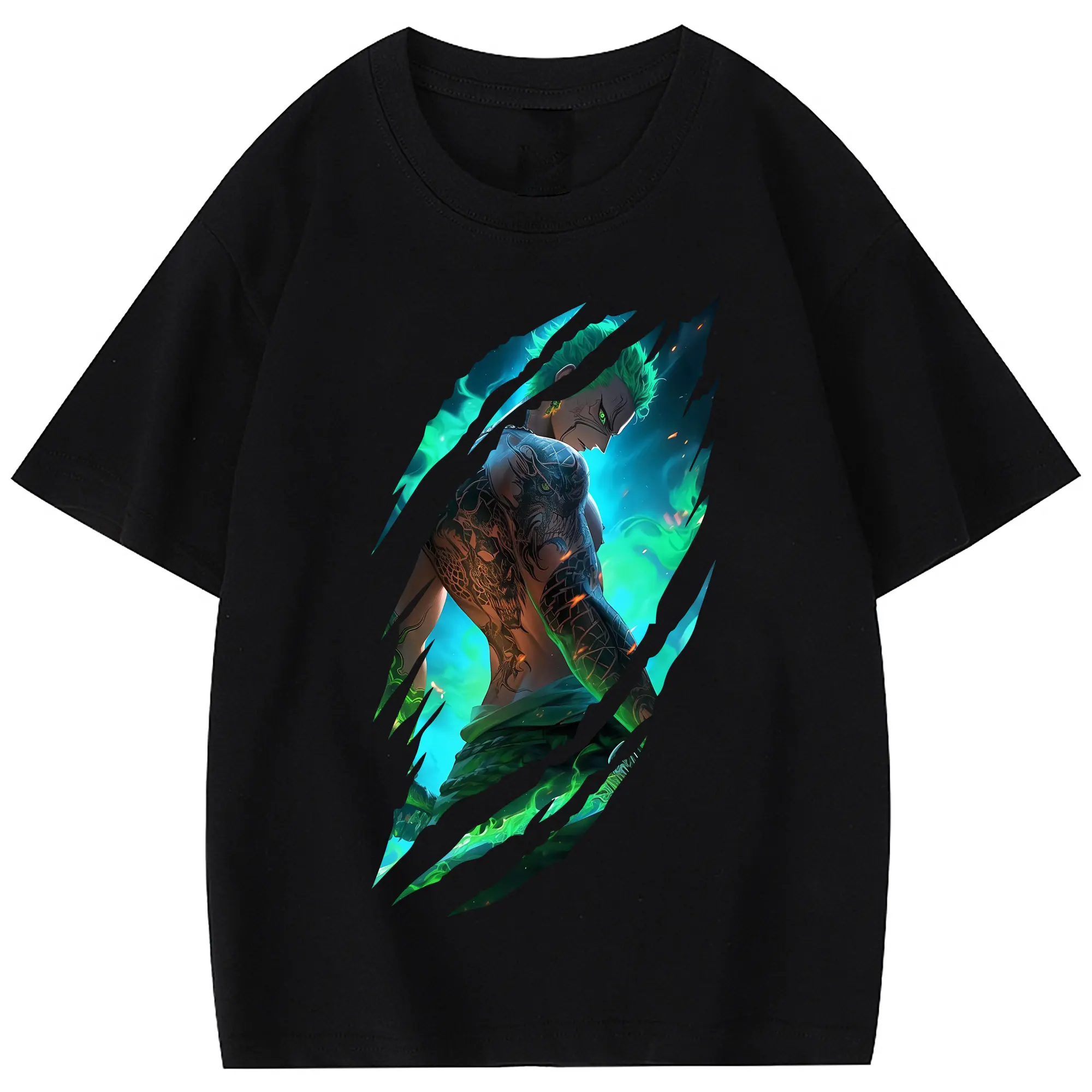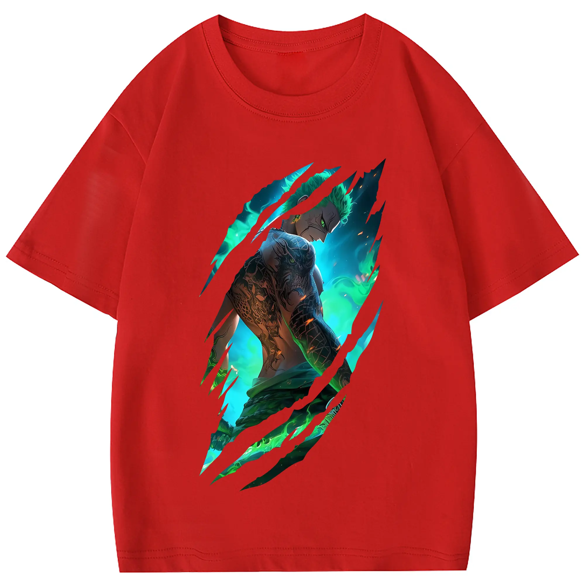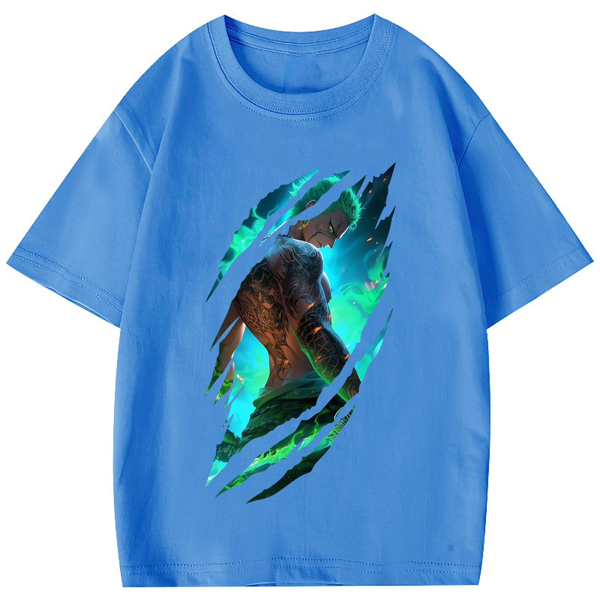 ワンピース グッズ ロロノア・ゾロ - 綿100% 半袖Tシャツ ・ フロントプリント ・ 快適 通気性 ・ 日常使い 散歩 スポーツ用