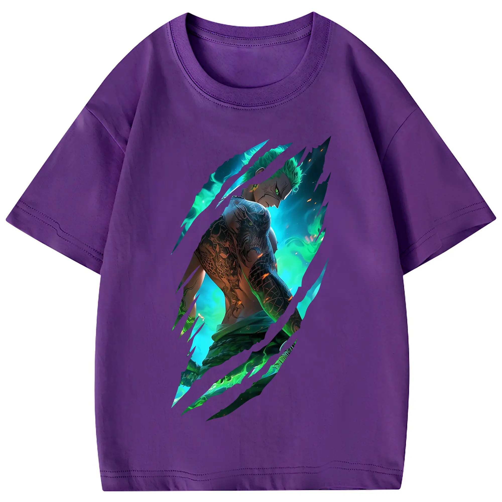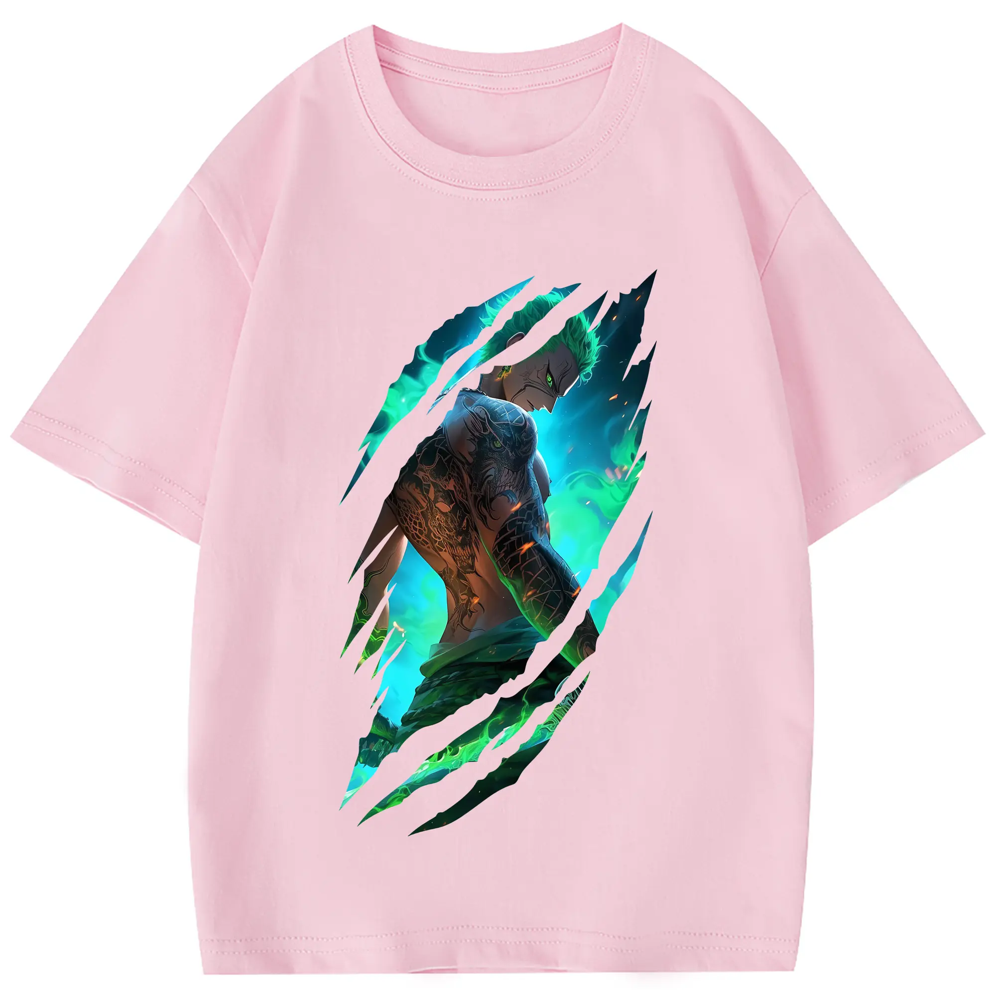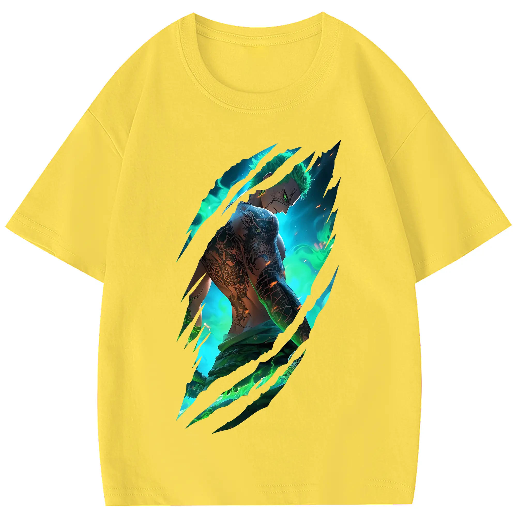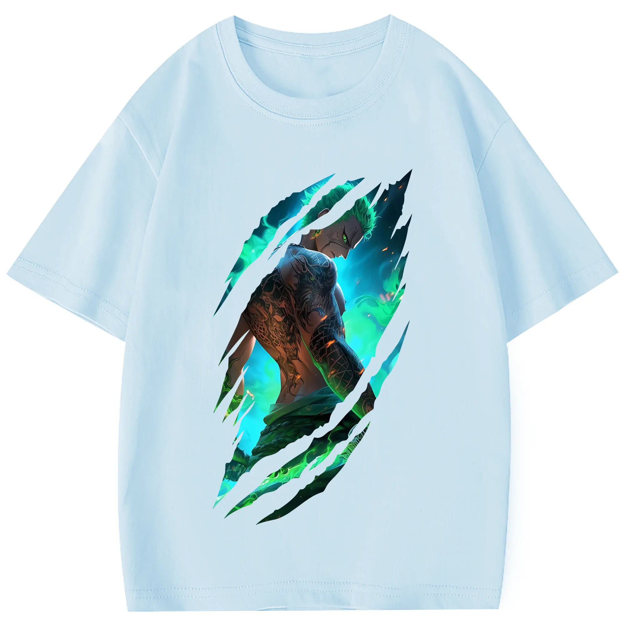 ワンピース グッズ ロロノア・ゾロ - 綿100% 半袖Tシャツ ・ フロントプリント ・ 快適 通気性 ・ 日常使い 散歩 スポーツ用