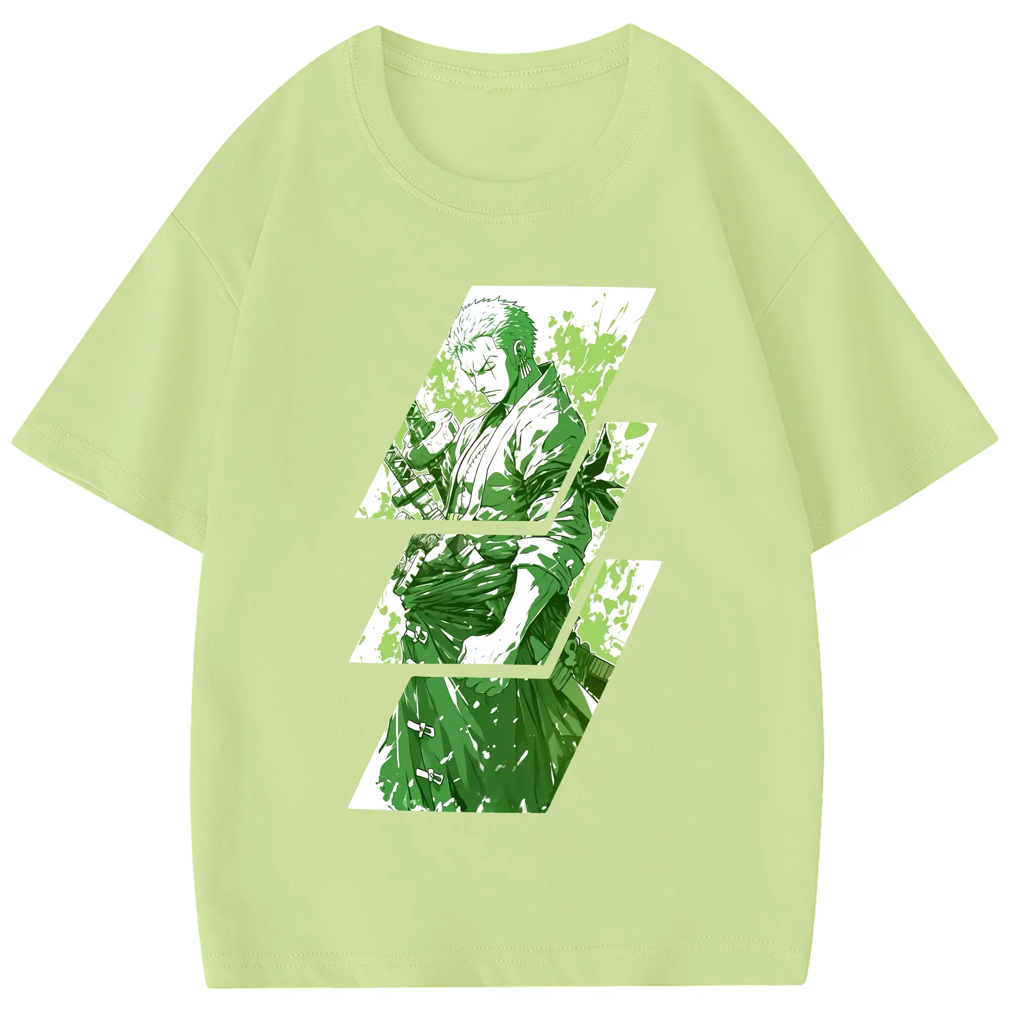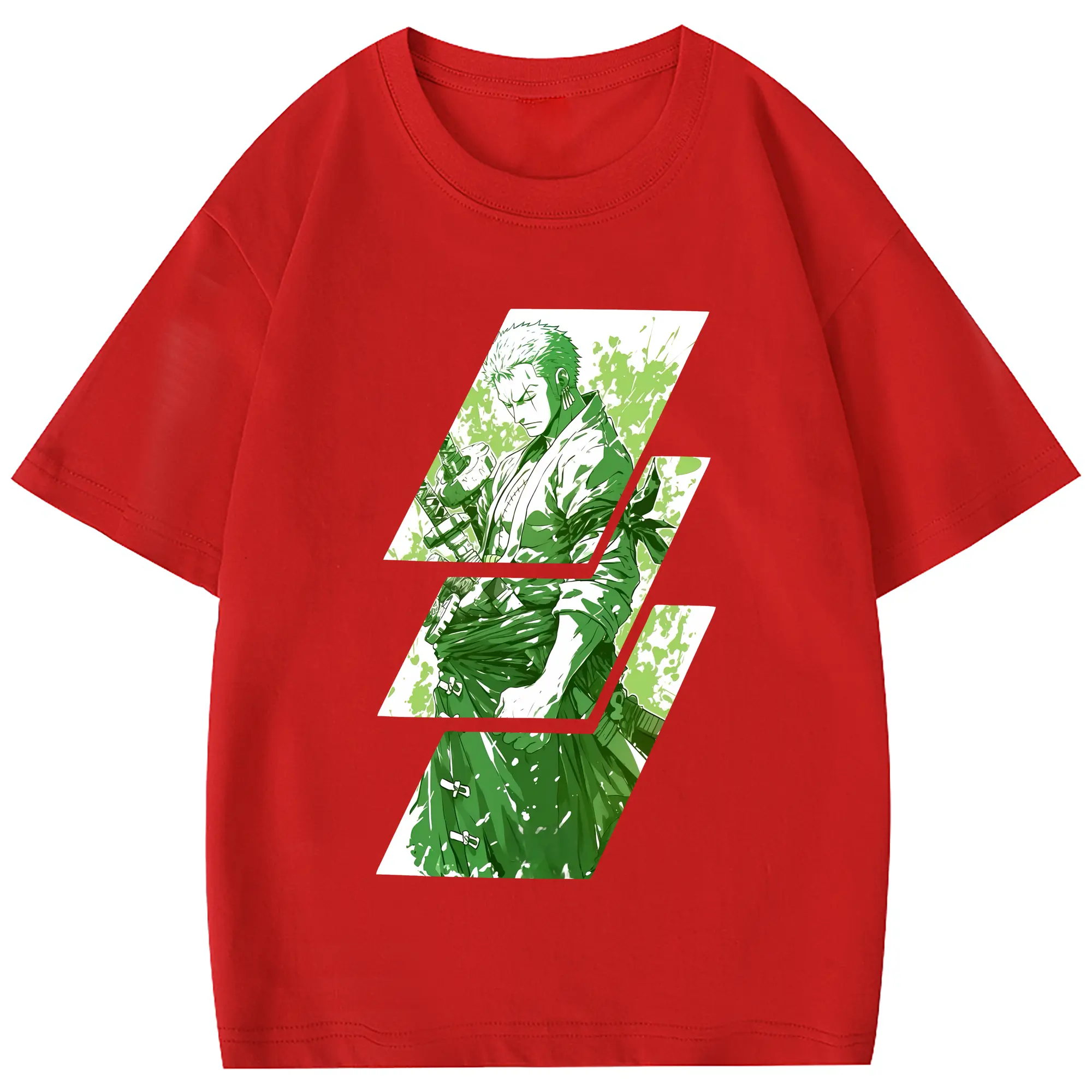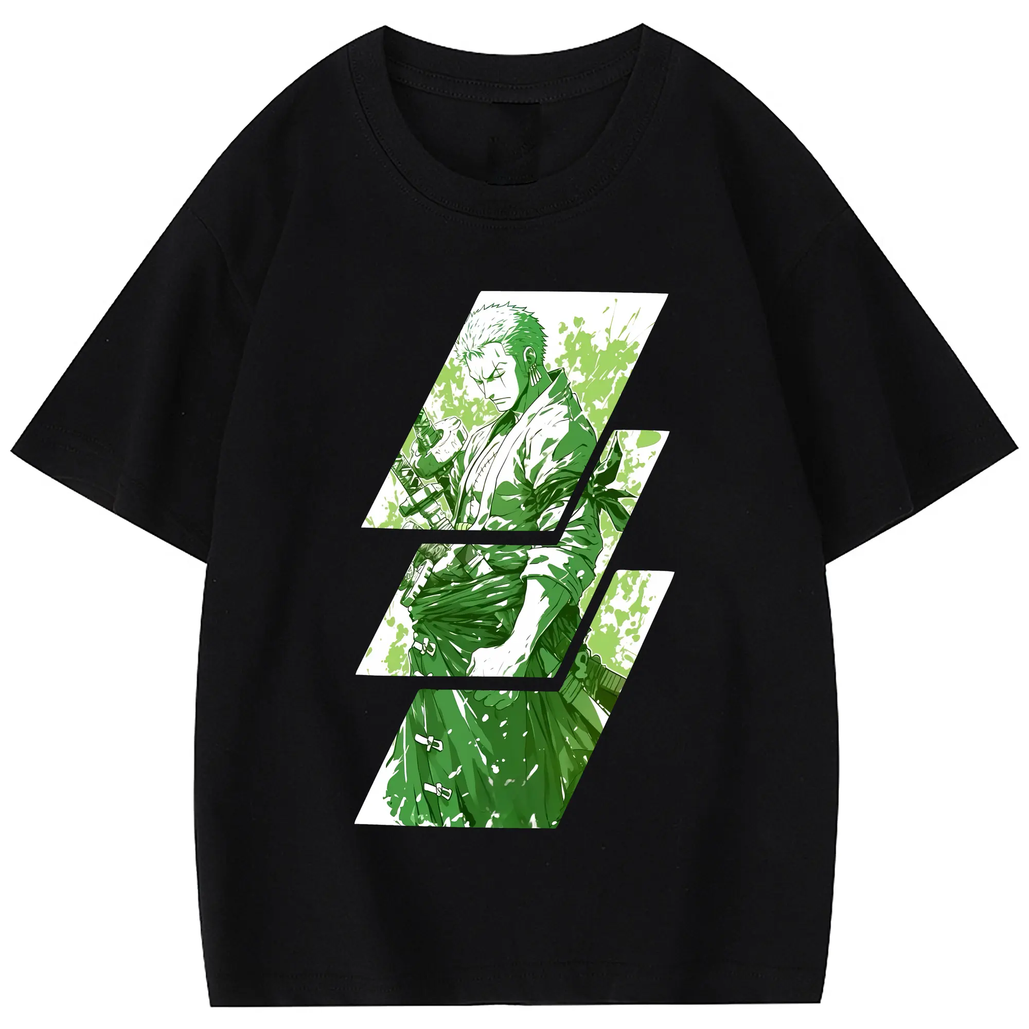 ワンピース グッズ ロロノア・ゾロ - 綿100% 半袖Tシャツ ・ フロントプリント ・ 快適 通気性 ・ 日常使い 散歩 スポーツ用