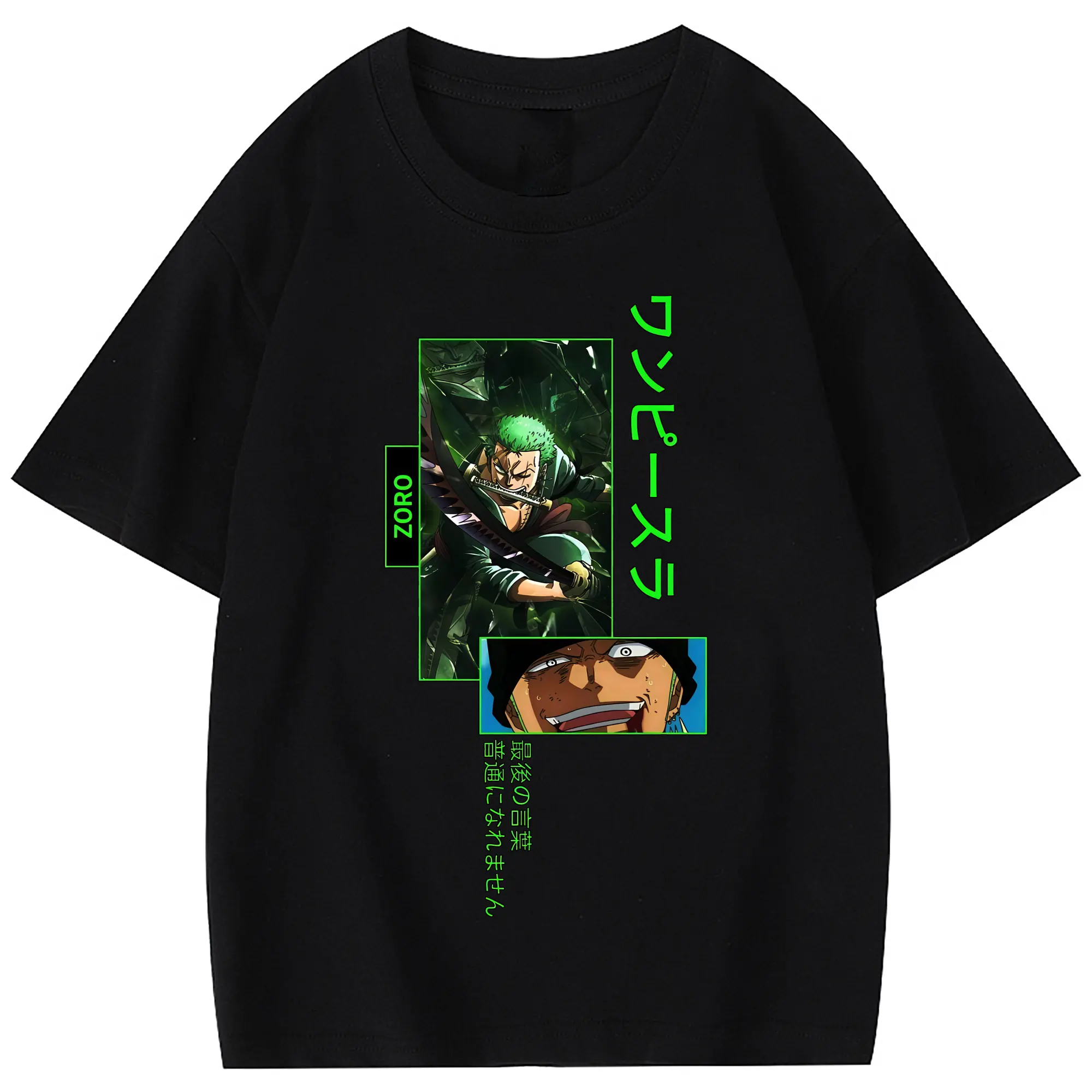 ワンピース グッズ ロロノア・ゾロ - 綿100% 半袖Tシャツ ・ フロントプリント ・ 快適 通気性 ・ 日常使い 散歩 スポーツ用