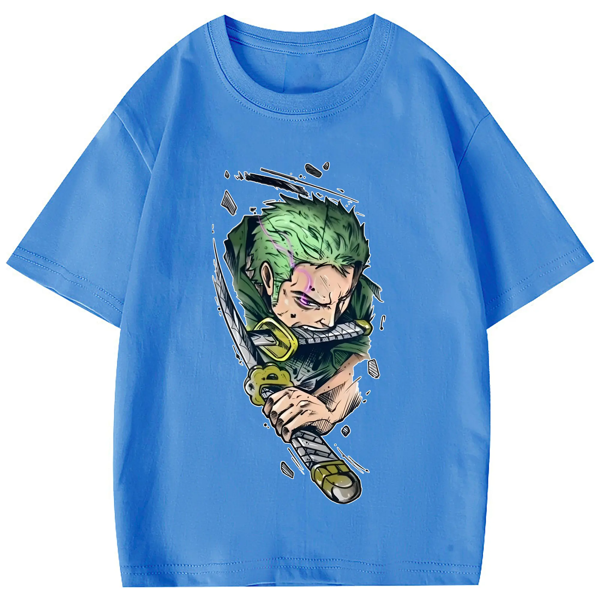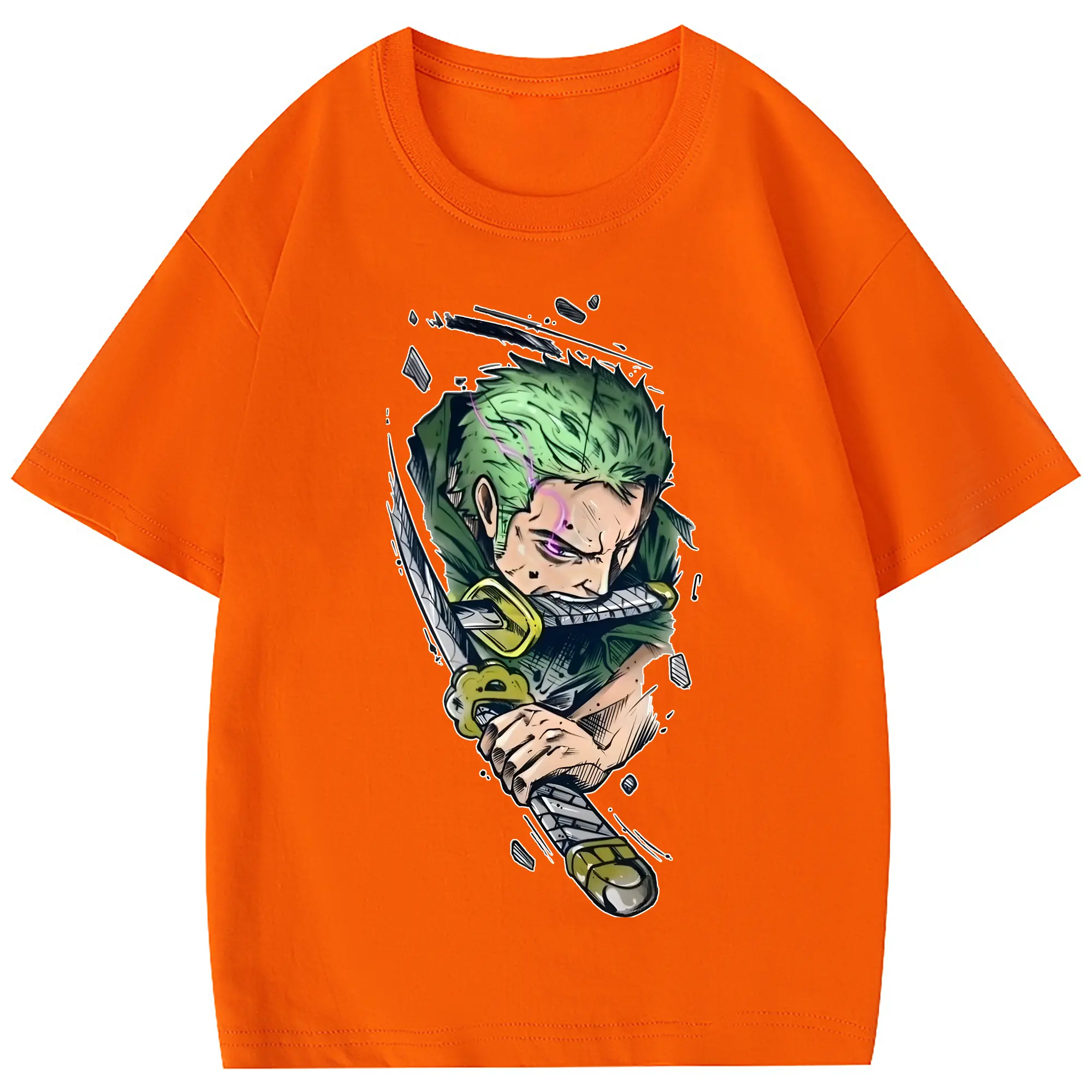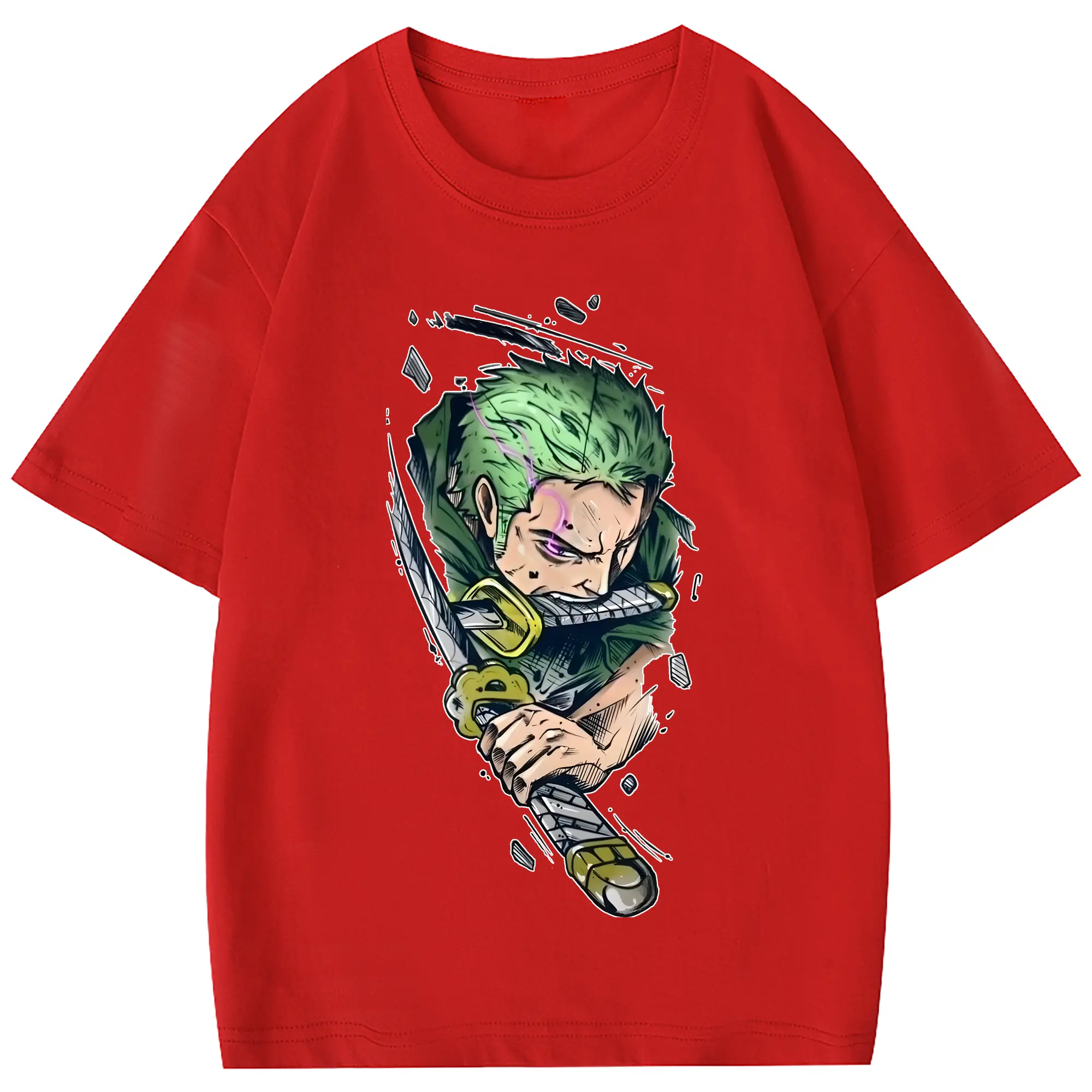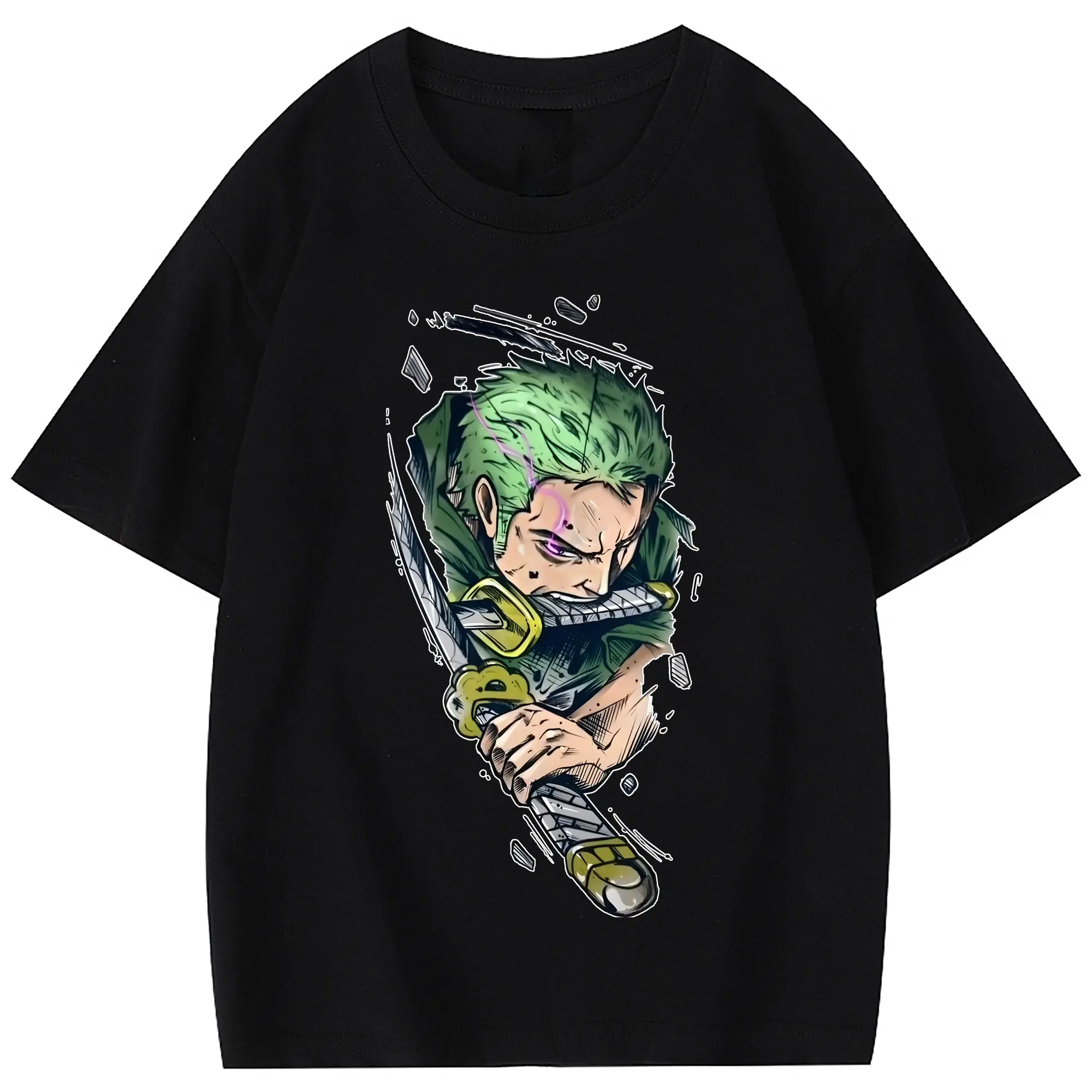 ワンピース グッズ ロロノア・ゾロ - 綿100% 半袖Tシャツ ・ フロントプリント ・ 快適 通気性 ・ 日常使い 散歩 スポーツ用